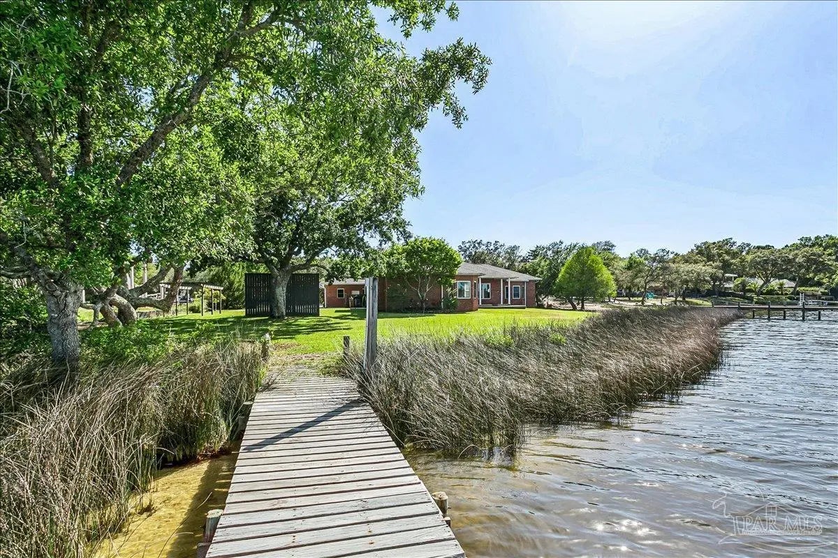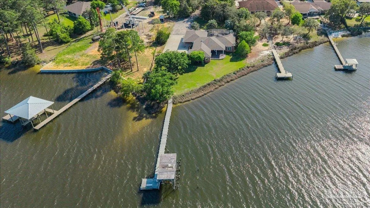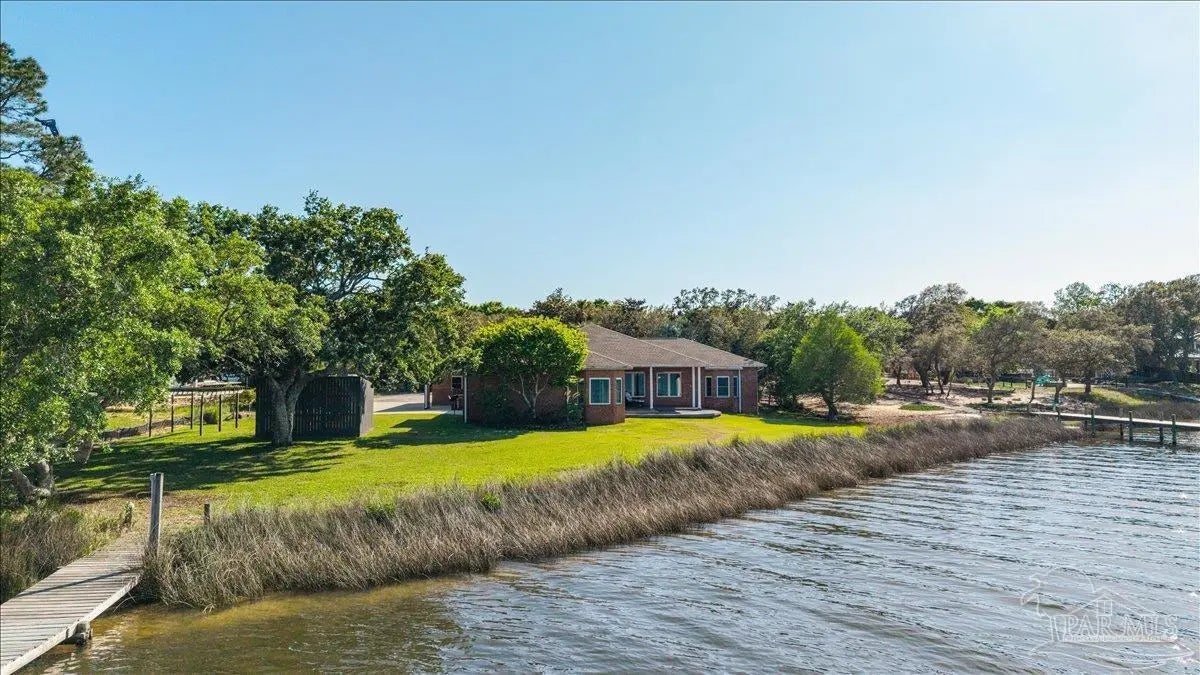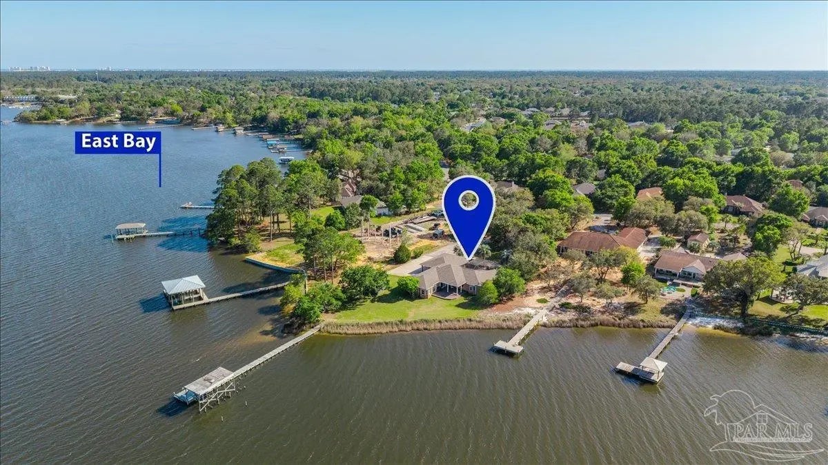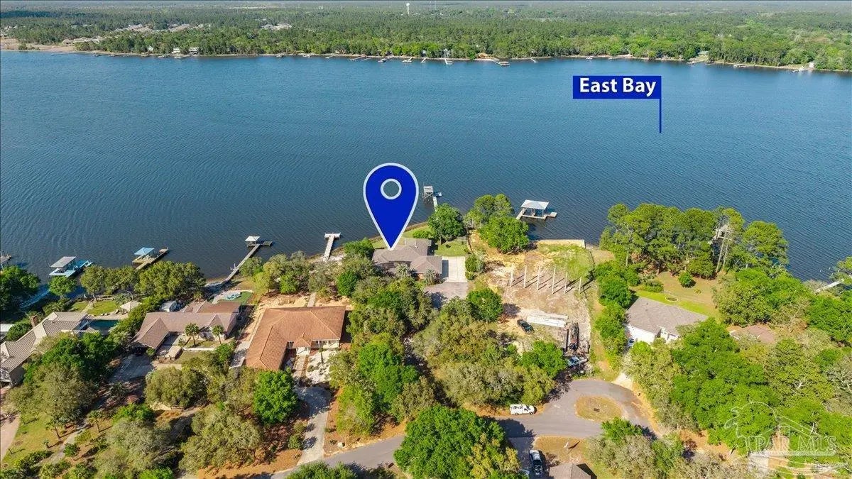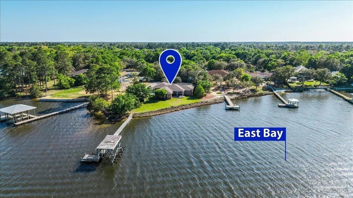 Experience this one-of-a-kind waterfront estate on East Bay, set on 1.3 acres with an impressive 189 feet of shoreline. Exceptional property features a private dock with boat lift, making it perfect for enjoying life on the water. The home offers 4 bedrooms, 2.5 baths, a 3-car garage, plus an additional carport. Step inside to discover soaring 10-foot ceilings and a thoughtfully designed layout. The spacious living room showcases stunning water views and flows seamlessly into the dining area and gourmet kitchen. The chef’s kitchen is truly remarkable, featuring a curved breakfast bar, granite countertops, abundant cabinetry, a Wolf gas cooktop, Sub-Zero refrigerator, and double wall ovens. Just beyond, a long hallway offers extensive floor-to-ceiling storage, pull-out drawers, a full-size commercial freezer, and an additional full-size refrigerator. The waterfront primary suite is a private retreat, complete with a bayed sitting area and dual entrances leading to separate half baths with organized closet systems. Additional highlights include commercial-grade luxury vinyl flooring with cork backing throughout, a guest bath with direct courtyard access, and numerous upgrades across the home. Outdoor living is equally impressive with a 37' x 50' courtyard featuring a hot tub, a covered porch, and an open patio—perfect for entertaining or relaxing while enjoying a lifestyle of boating, fishing & kayaking. This is a rare opportunity to own a truly unique waterfront property on East Bay.
