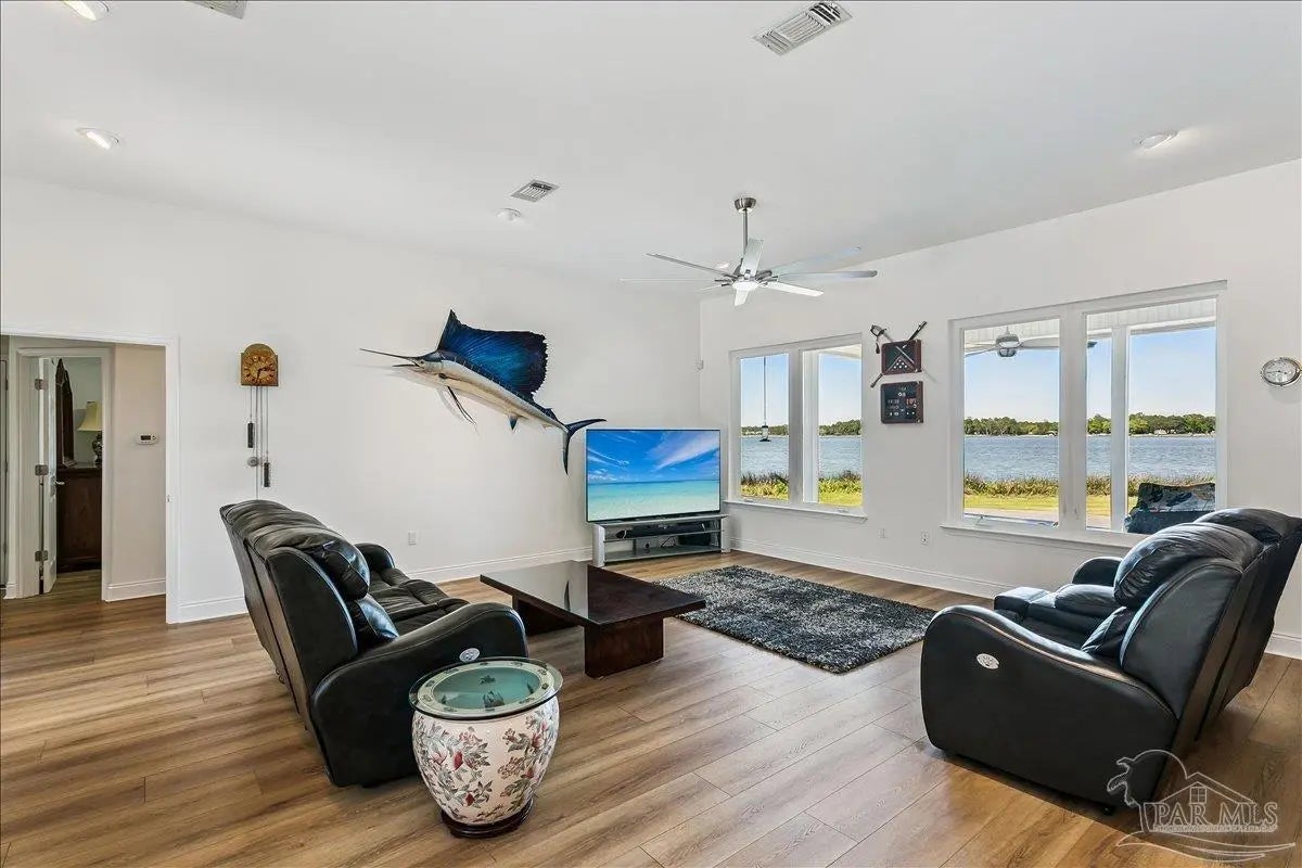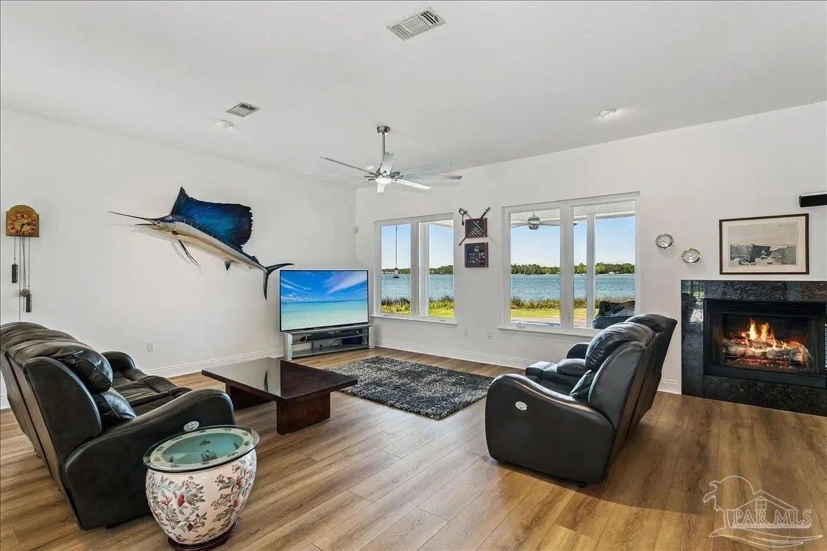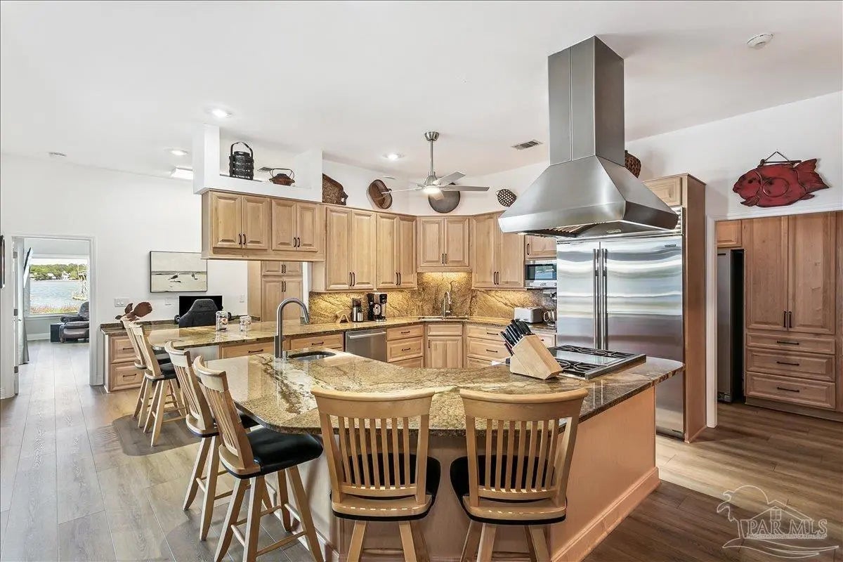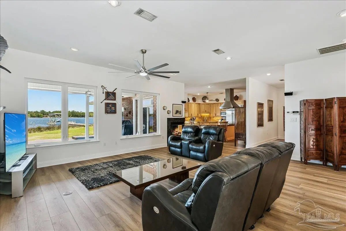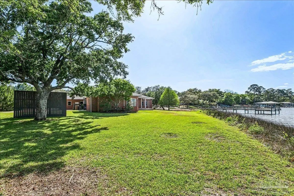 Experience this one-of-a-kind waterfront estate on East Bay, set on 1.3 acres with an impressive 189 feet of shoreline. Exceptional property features a private dock with boat lift, making it perfect for enjoying life on the water. The home offers 4 bedrooms, 2.5 baths, a 3-car garage, plus an additional carport. Step inside to discover soaring 10-foot ceilings and a thoughtfully designed layout. The spacious living room showcases stunning water views and flows seamlessly into the dining area and gourmet kitchen. The chef’s kitchen is truly remarkable, featuring a curved breakfast bar, granite countertops, abundant cabinetry, a Wolf gas cooktop, Sub-Zero refrigerator, and double wall ovens. Just beyond, a long hallway offers extensive floor-to-ceiling storage, pull-out drawers, a full-size commercial freezer, and an additional full-size refrigerator. The waterfront primary suite is a private retreat, complete with a bayed sitting area and dual entrances leading to separate half baths with organized closet systems. Additional highlights include commercial-grade luxury vinyl flooring with cork backing throughout, a guest bath with direct courtyard access, and numerous upgrades across the home. Outdoor living is equally impressive with a 37' x 50' courtyard featuring a hot tub, a covered porch, and an open patio—perfect for entertaining or relaxing while enjoying a lifestyle of boating, fishing & kayaking. This is a rare opportunity to own a truly unique waterfront property on East Bay.
