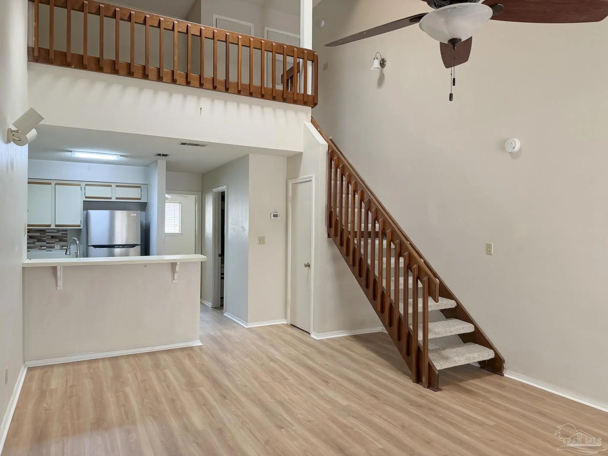 Well-maintained 1BR/1BA condo with loft in the heart of Northeast Pensacola, featuring new wood-look LVP flooring and new carpet. Ideally located just minutes from the airport, Pensacola State College, Cordova Mall, and Sacred Heart, offering convenient access to shopping, dining, and medical facilities. The open living area includes a fireplace, vaulted ceilings, and a skylight that brings in natural light. The kitchen is equipped with stainless steel appliances. Upstairs, the loft provides flexible space for a home office, guest area, or bonus room. Additional features include a 1-car garage with opener, washer and dryer hookups, and access to the community pool. Garbage collection is included.
