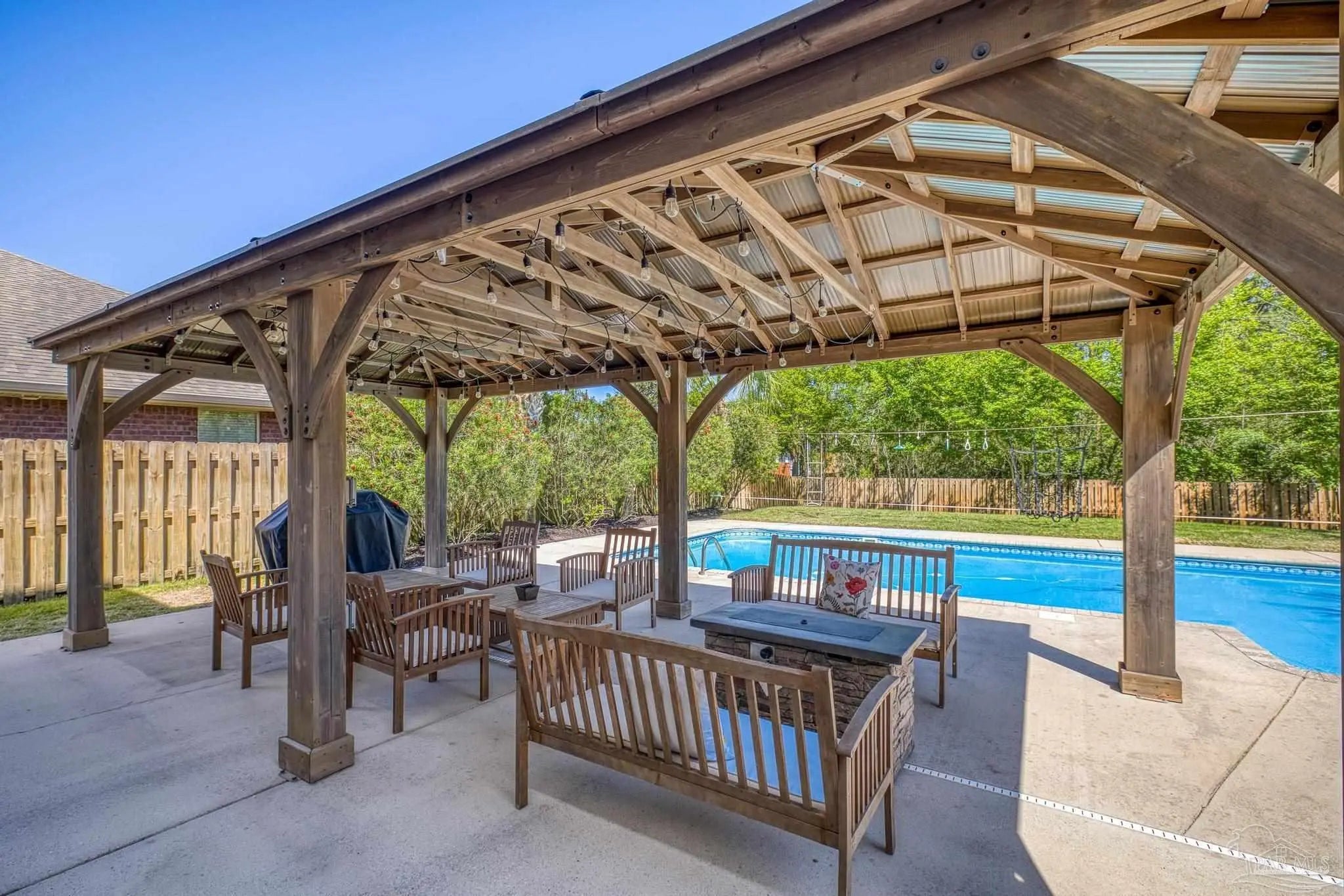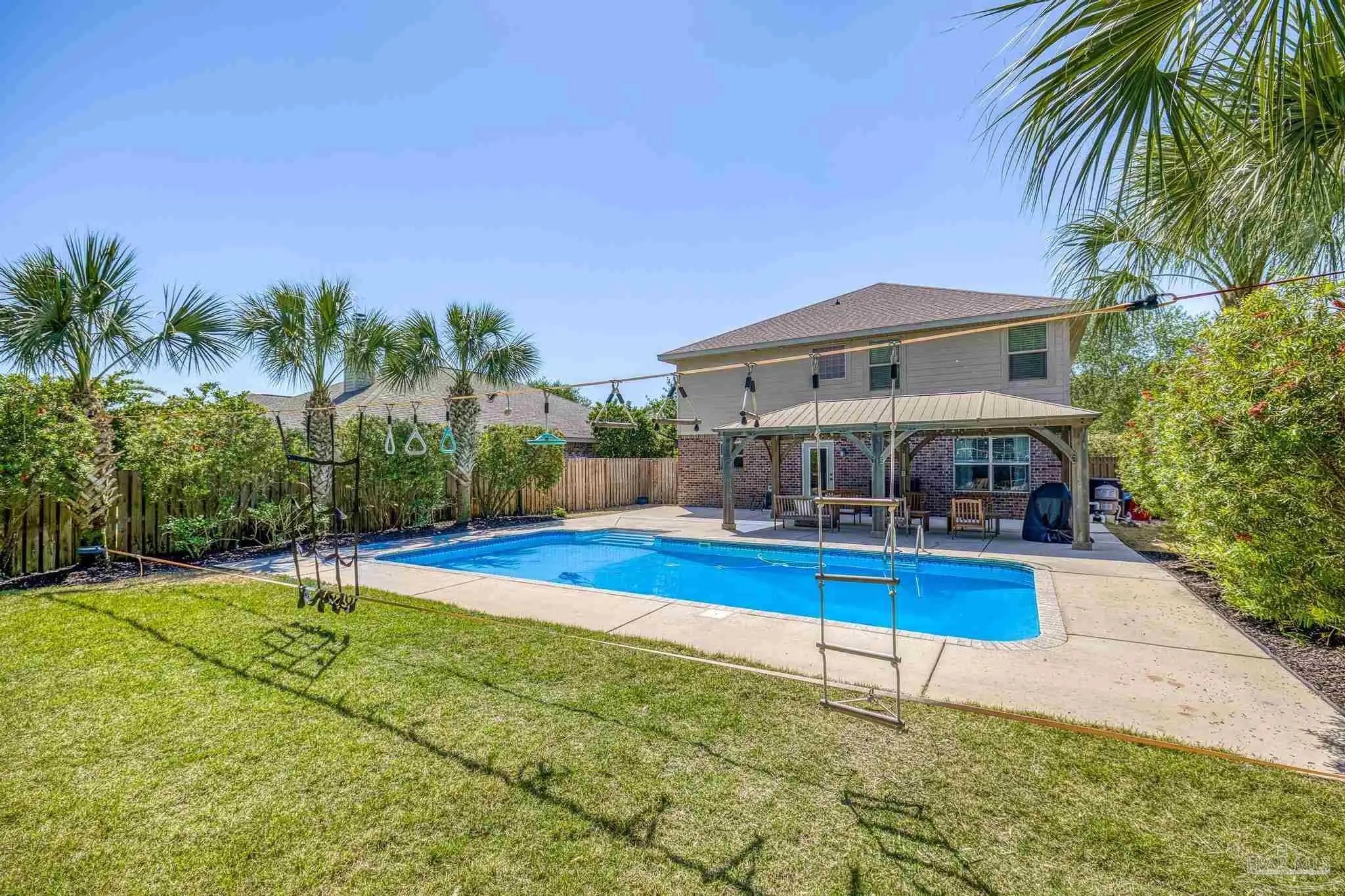 Motivated Sellers!!! Discover this stunning modern coastal contemporary two-story home in the highly sought-after Woodlawn Heights community of Gulf Breeze. Boasting 5 spacious bedrooms, 3 full baths, a generous family room, and a versatile bonus loft, this 2015-built residence offers approximately 2,288 square feet of thoughtfully designed living space. Inside, enjoy updated features and high-end finishes throughout, including a chef-friendly kitchen with granite counters, stainless steel appliances, a breakfast bar, and an open layout perfect for entertaining. The bright, airy interiors create a welcoming atmosphere ideal for both relaxing and hosting. Step outside to your private backyard oasis — a true resort-style retreat featuring mature palm trees, lush tropical landscaping, and a large heated saltwater pool. Gather around the lighted scenic pavilion with its cozy fire pit for unforgettable evenings under the stars. Whether you’re swimming year-round or entertaining family and friends, this outdoor space delivers everyday luxury. Woodlawn Heights offers an exceptional lifestyle with community ponds, a playground, walking trails, and sidewalks throughout. A public boat launch is conveniently located within a half mile, making it easy to enjoy Santa Rosa Sound and the Gulf. The neighborhood is situated just 15 minutes from Navarre Beach, 20 minutes from Pensacola Beach, and less than 30 minutes from both downtown Pensacola and Hurlburt Field. Everyday conveniences are even closer — Walmart, Publix, and Lowe’s are all less than 10 minutes away. This prime location combines coastal charm, modern comfort, and unbeatable access to beaches, bases, shopping, dining, and top-rated schools. Don’t miss your chance to make this move-in-ready home yours!”