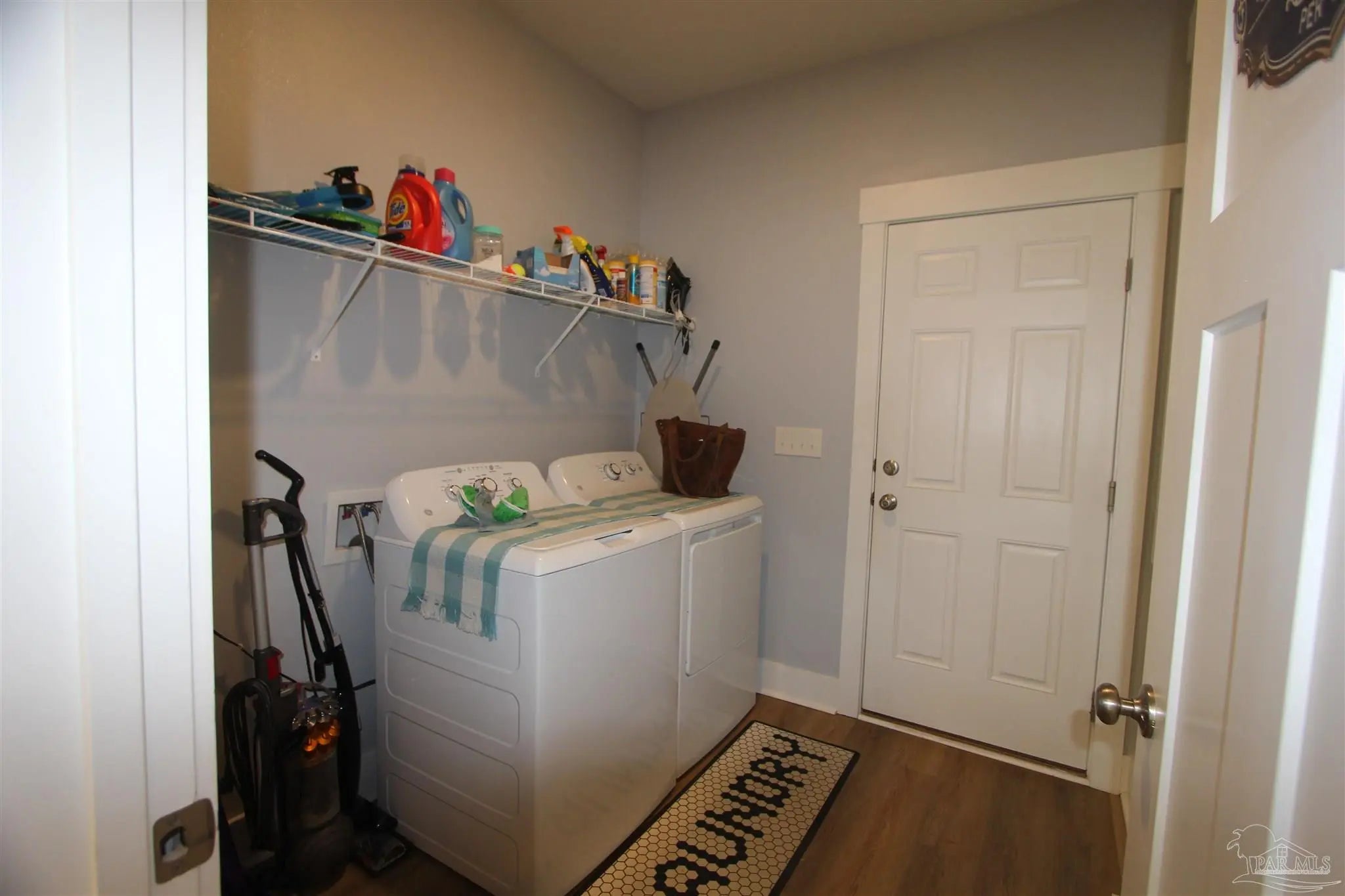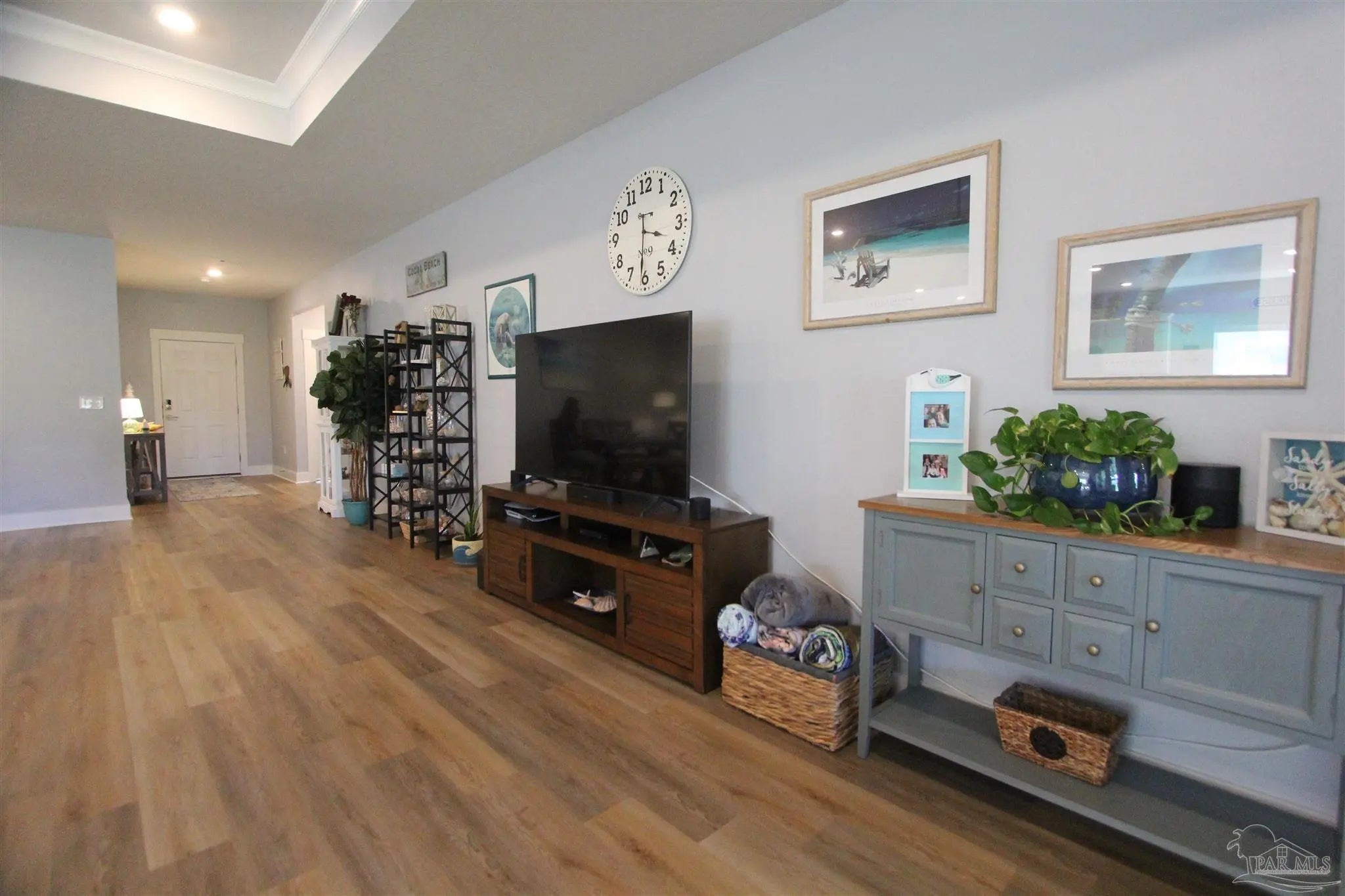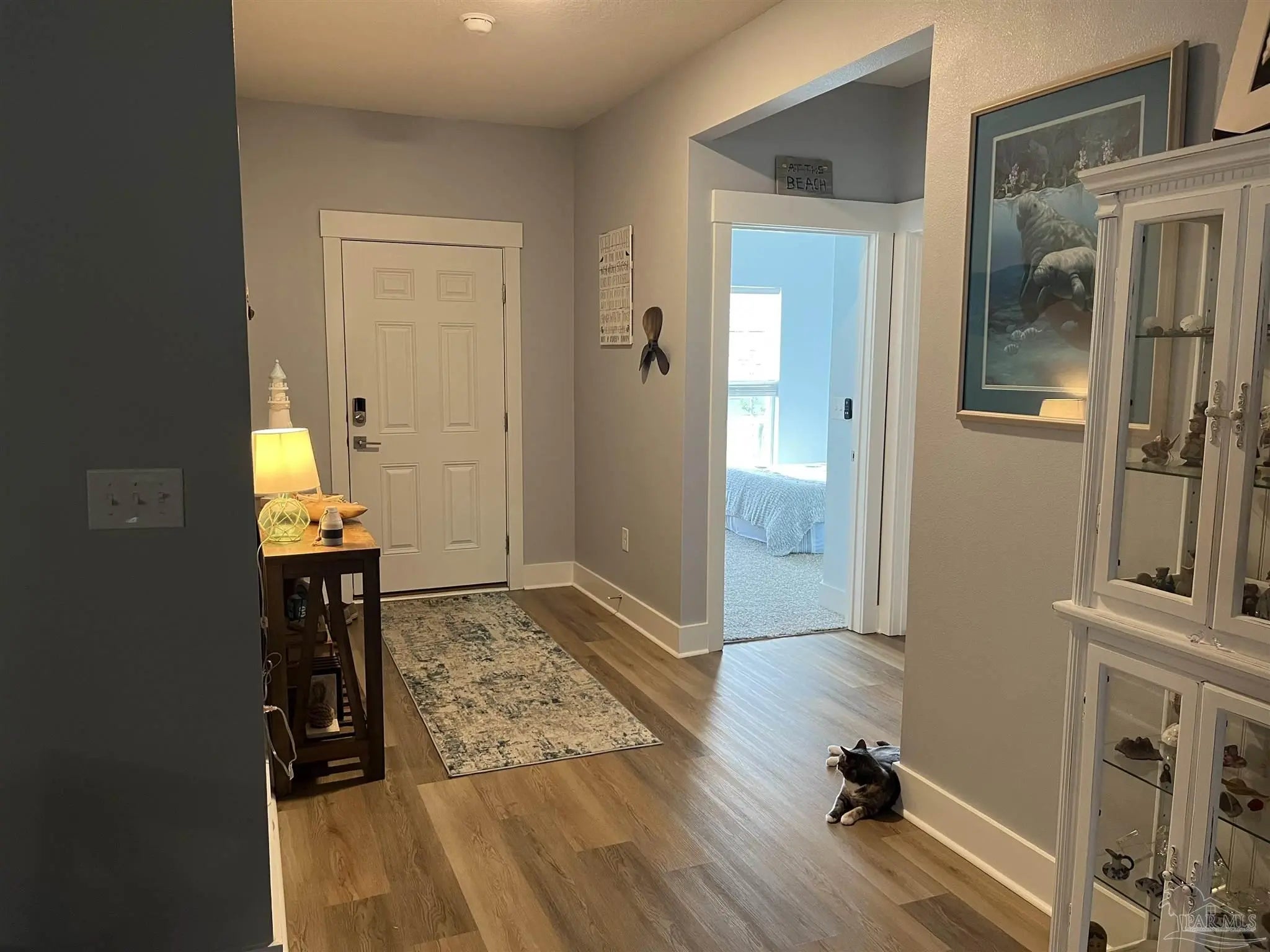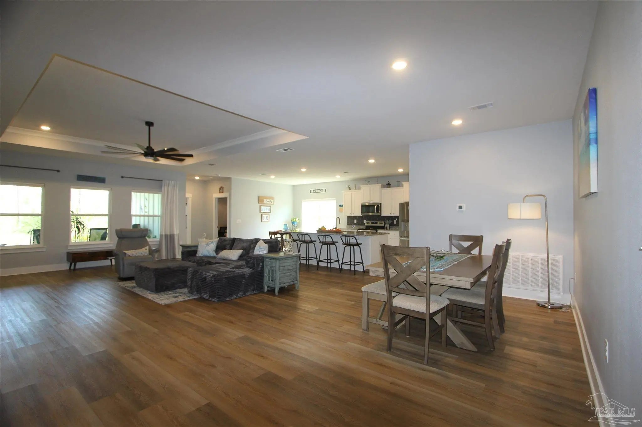 Welcome to this beautiful spacious and well maintained 4 bedroom, 3 bath home with an open coastal floor concept and a large 3 car garage in Forest Bay Estates. A highly sought after community with underground utilities, which offers a gated community pool with a pavilion and gazebo, perfect for gatherings and the weekly events. The open floor plan includes a large breakfast bar island with lots of storage space, living- dining combo, separate breakfast nook and a walk in kitchen pantry. Unique granite counter tops are throughout the home along with stainless steel and energy efficient appliances. Washer, dryer, microwave, string less blinds and curtain rods are included. The primary bedroom has a large walk in closet in the bathroom, a separate shower, double vanity and a garden tub. The home has been freshly painted recently throughout with beautiful neutral colors. Luxury LVP wood look flooring. New backsplash in kitchen. Ceiling fans in living room and primary bedroom are updated with remote control. All bedrooms and the back porch have ceiling fans. Updated lighting in all bath rooms. The property is fenced on the sides and has an unobstructed view into nature from the covered back patio and a landscaped yard with a well for irrigation. The front and back patio are sealed with Terrazzo Granite Satin Exterior anti-skid paint. For your peace of mind there is a termite bond and there are hurricane protection devices. It is conveniently located between the well known beaches of Navarre and Pensacola with access to their long piers for fishing. Public boat ramps are available at the East Bay and Santa Rosa Sound for for kayaking, paddle boarding and other water activities. Enjoy beautiful sunsets. shopping and restaurants nearby. Pensacola Navy installations, Hurlburt, Eglin and Duke are within reach.