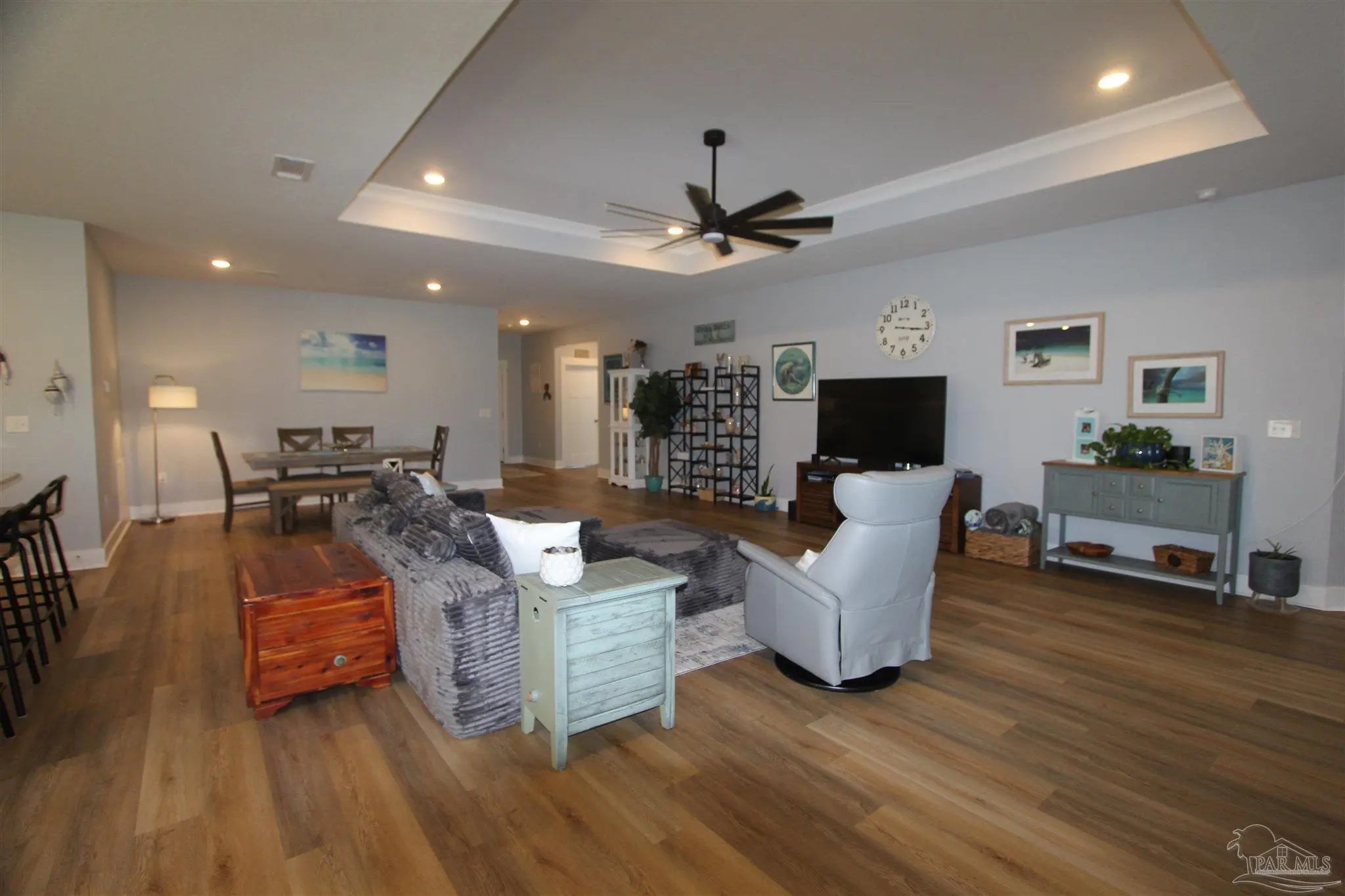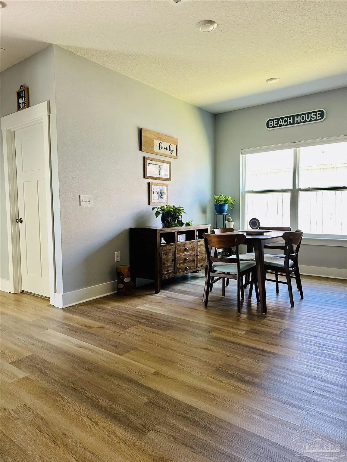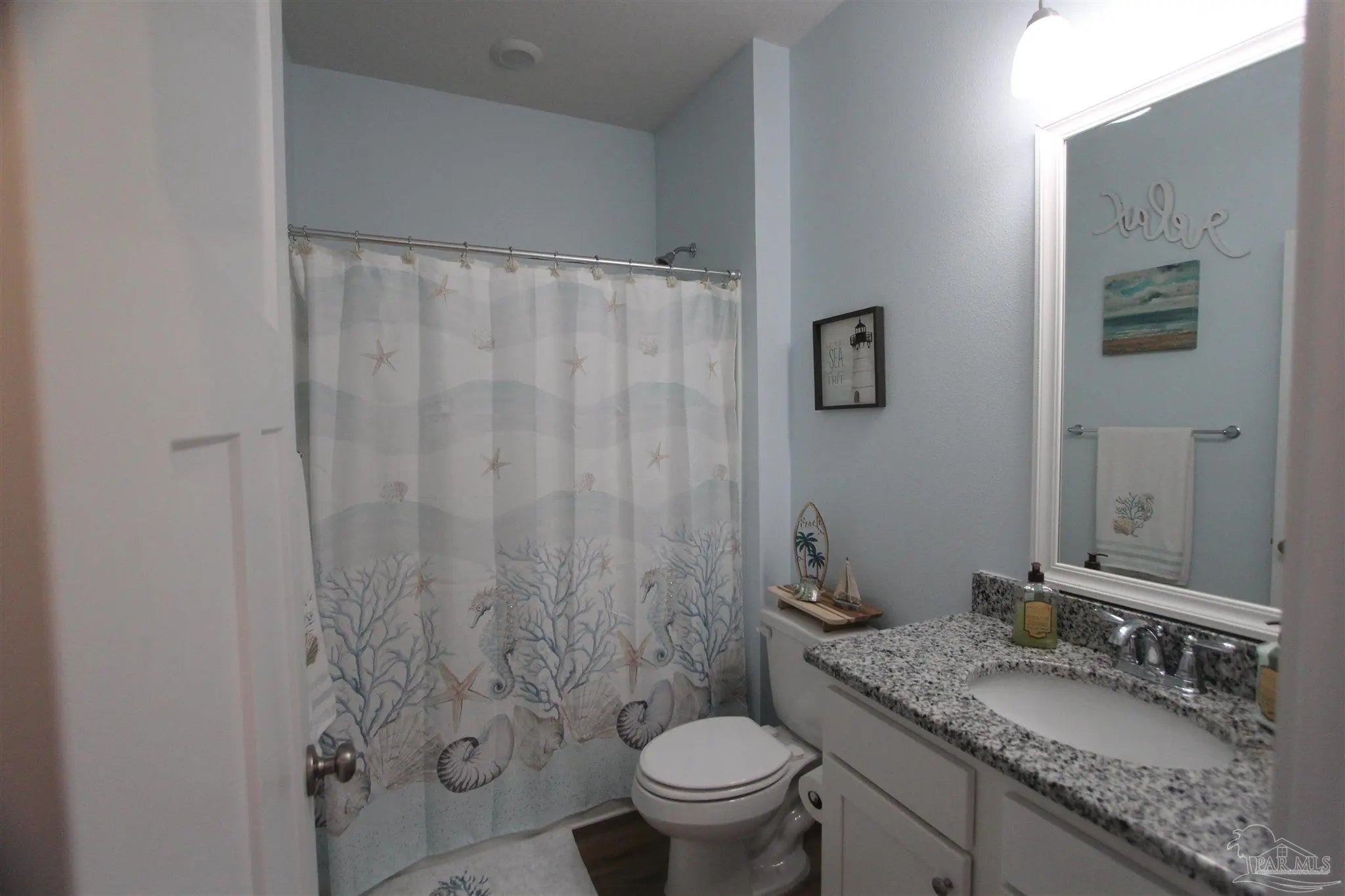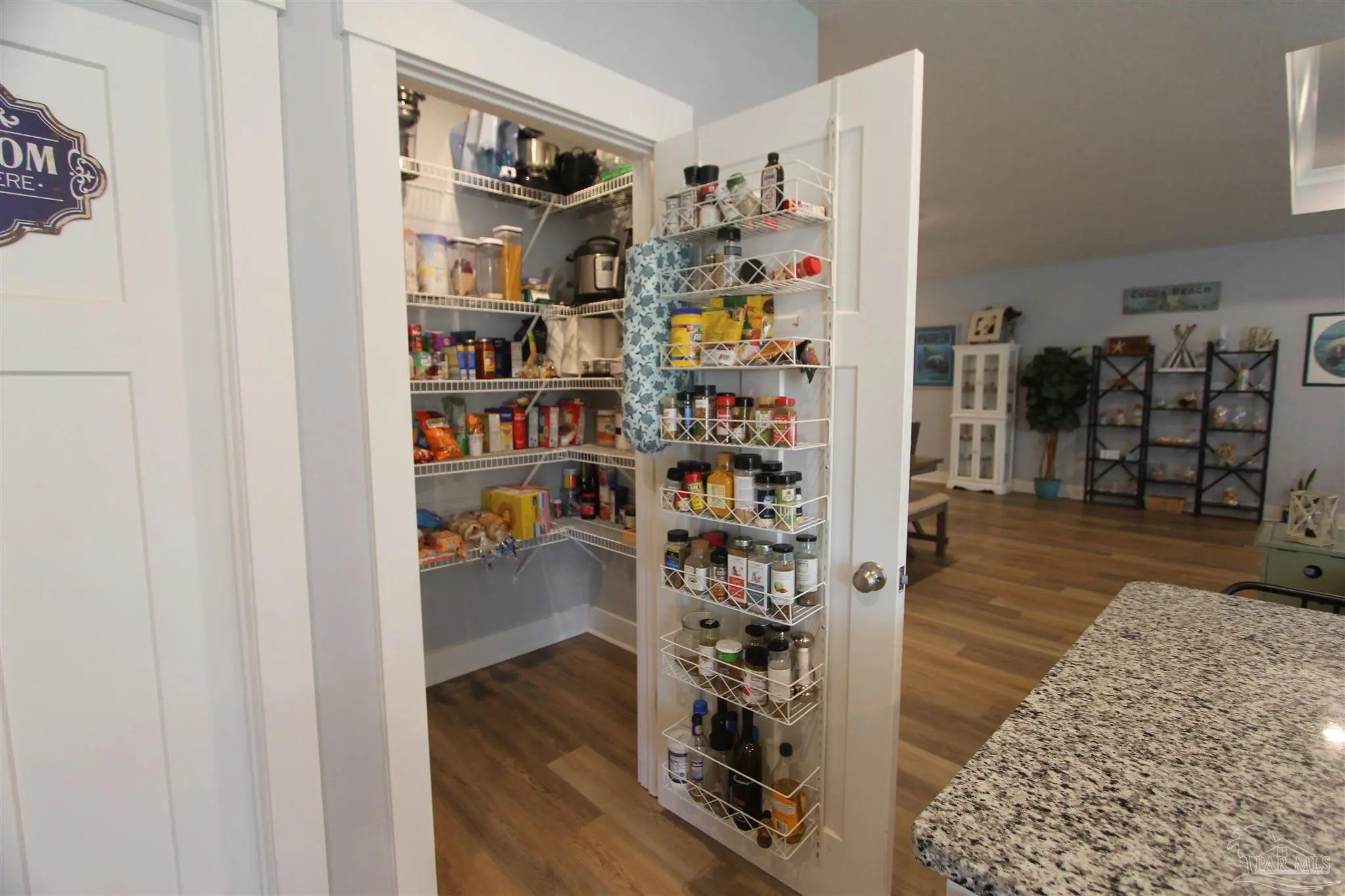 Welcome to this beautiful spacious and well maintained 4 bedroom, 3 bath home with an open coastal floor concept and a large 3 car garage in Forest Bay Estates. A highly sought after community with underground utilities, which offers a gated community pool with a pavilion and gazebo, perfect for gatherings and the weekly events. The open floor plan includes a large breakfast bar island with lots of storage space, living- dining combo, separate breakfast nook and a walk in kitchen pantry. Unique granite counter tops are throughout the home along with stainless steel and energy efficient appliances. Washer, dryer, microwave, string less blinds and curtain rods are included. The primary bedroom has a large walk in closet in the bathroom, a separate shower, double vanity and a garden tub. The home has been freshly painted recently throughout with beautiful neutral colors. Luxury LVP wood look flooring. New backsplash in kitchen. Ceiling fans in living room and primary bedroom are updated with remote control. All bedrooms and the back porch have ceiling fans. Updated lighting in all bath rooms. The property is fenced on the sides and has an unobstructed view into nature from the covered back patio and a landscaped yard with a well for irrigation. The front and back patio are sealed with Terrazzo Granite Satin Exterior anti-skid paint. For your peace of mind there is a termite bond and there are hurricane protection devices. It is conveniently located between the well known beaches of Navarre and Pensacola with access to their long piers for fishing. Public boat ramps are available at the East Bay and Santa Rosa Sound for for kayaking, paddle boarding and other water activities. Enjoy beautiful sunsets. shopping and restaurants nearby. Pensacola Navy installations, Hurlburt, Eglin and Duke are within reach.