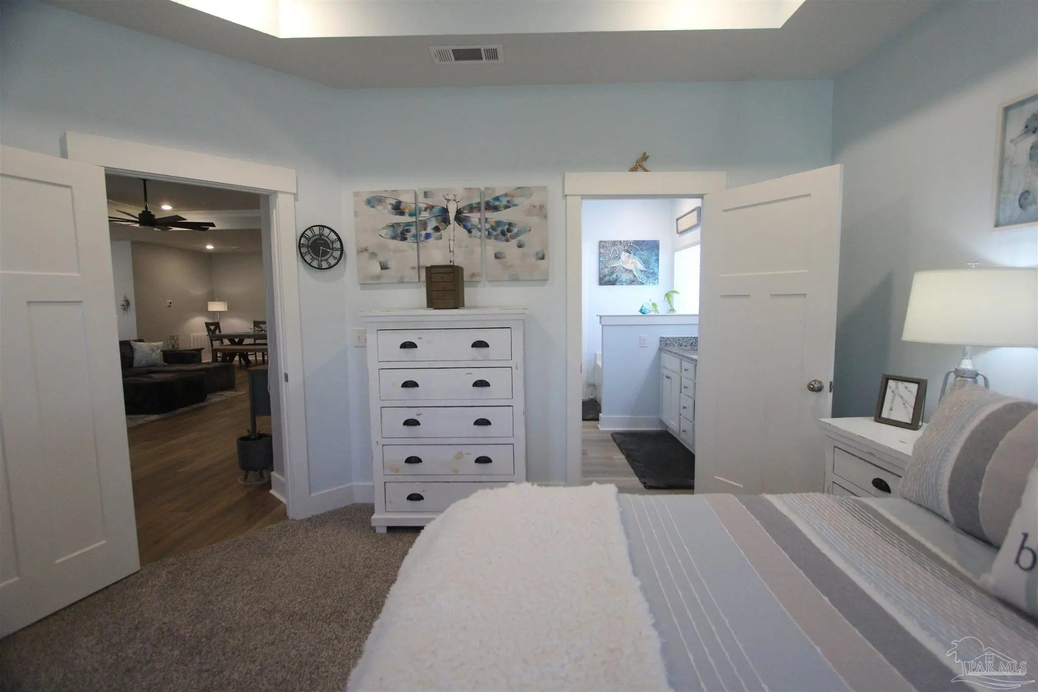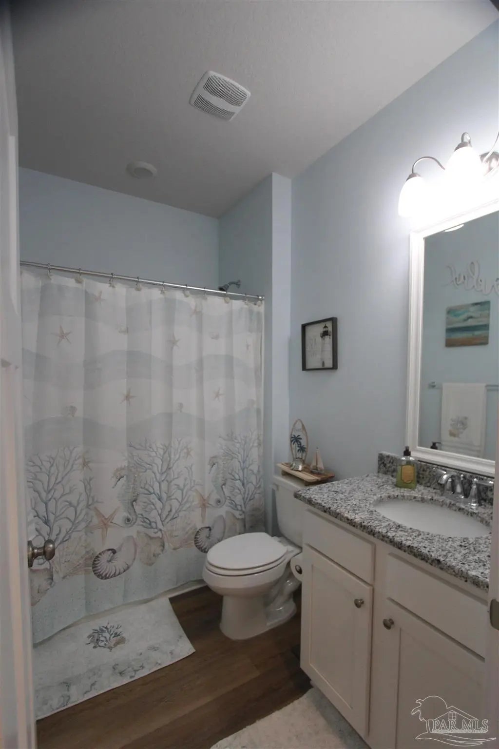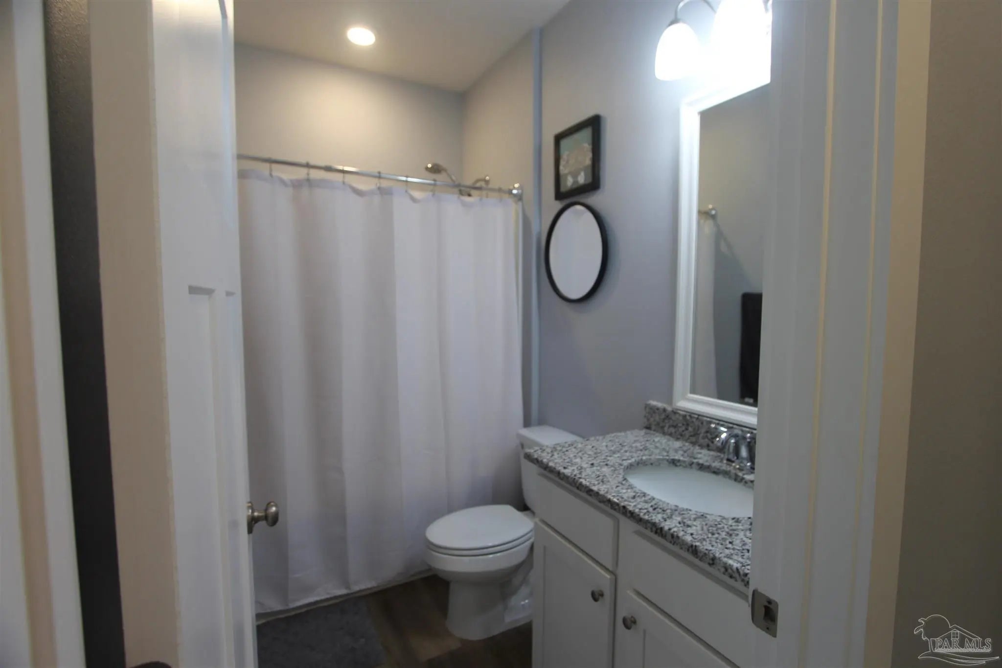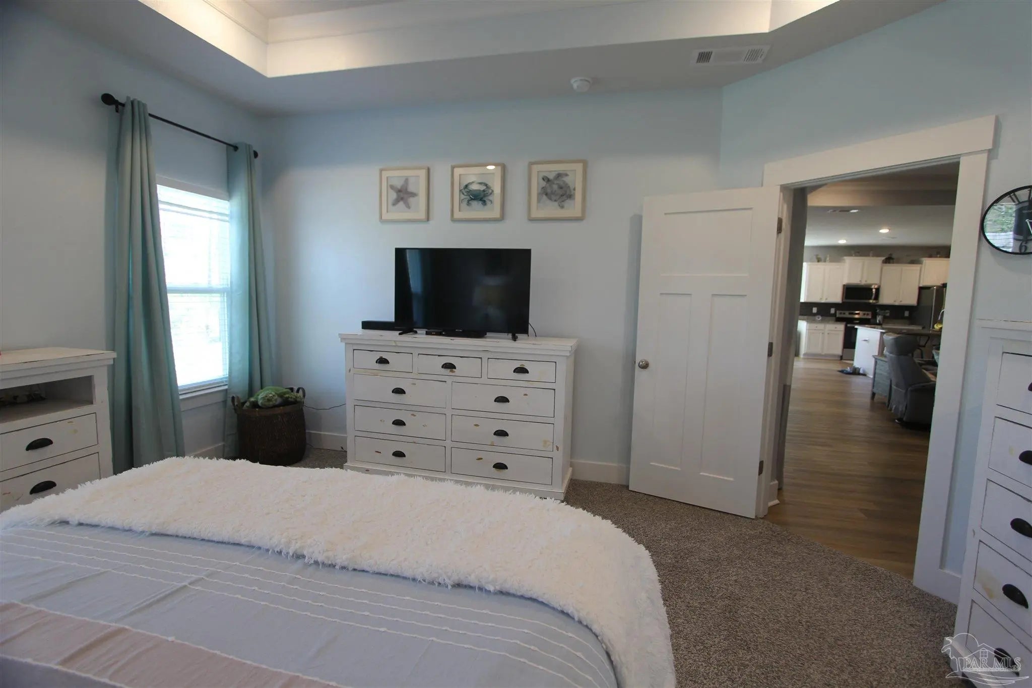 Welcome to this beautiful spacious and well maintained 4 bedroom, 3 bath home with an open coastal floor concept and a large 3 car garage in Forest Bay Estates. A highly sought after community with underground utilities, which offers a gated community pool with a pavilion and gazebo, perfect for gatherings and the weekly events. The open floor plan includes a large breakfast bar island with lots of storage space, living- dining combo, separate breakfast nook and a walk in kitchen pantry. Unique granite counter tops are throughout the home along with stainless steel and energy efficient appliances. Washer, dryer, microwave, string less blinds and curtain rods are included. The primary bedroom has a large walk in closet in the bathroom, a separate shower, double vanity and a garden tub. The home has been freshly painted recently throughout with beautiful neutral colors. Luxury LVP wood look flooring. New backsplash in kitchen. Ceiling fans in living room and primary bedroom are updated with remote control. All bedrooms and the back porch have ceiling fans. Updated lighting in all bath rooms. The property is fenced on the sides and has an unobstructed view into nature from the covered back patio and a landscaped yard with a well for irrigation. The front and back patio are sealed with Terrazzo Granite Satin Exterior anti-skid paint. For your peace of mind there is a termite bond and there are hurricane protection devices. It is conveniently located between the well known beaches of Navarre and Pensacola with access to their long piers for fishing. Public boat ramps are available at the East Bay and Santa Rosa Sound for for kayaking, paddle boarding and other water activities. Enjoy beautiful sunsets. shopping and restaurants nearby. Pensacola Navy installations, Hurlburt, Eglin and Duke are within reach.