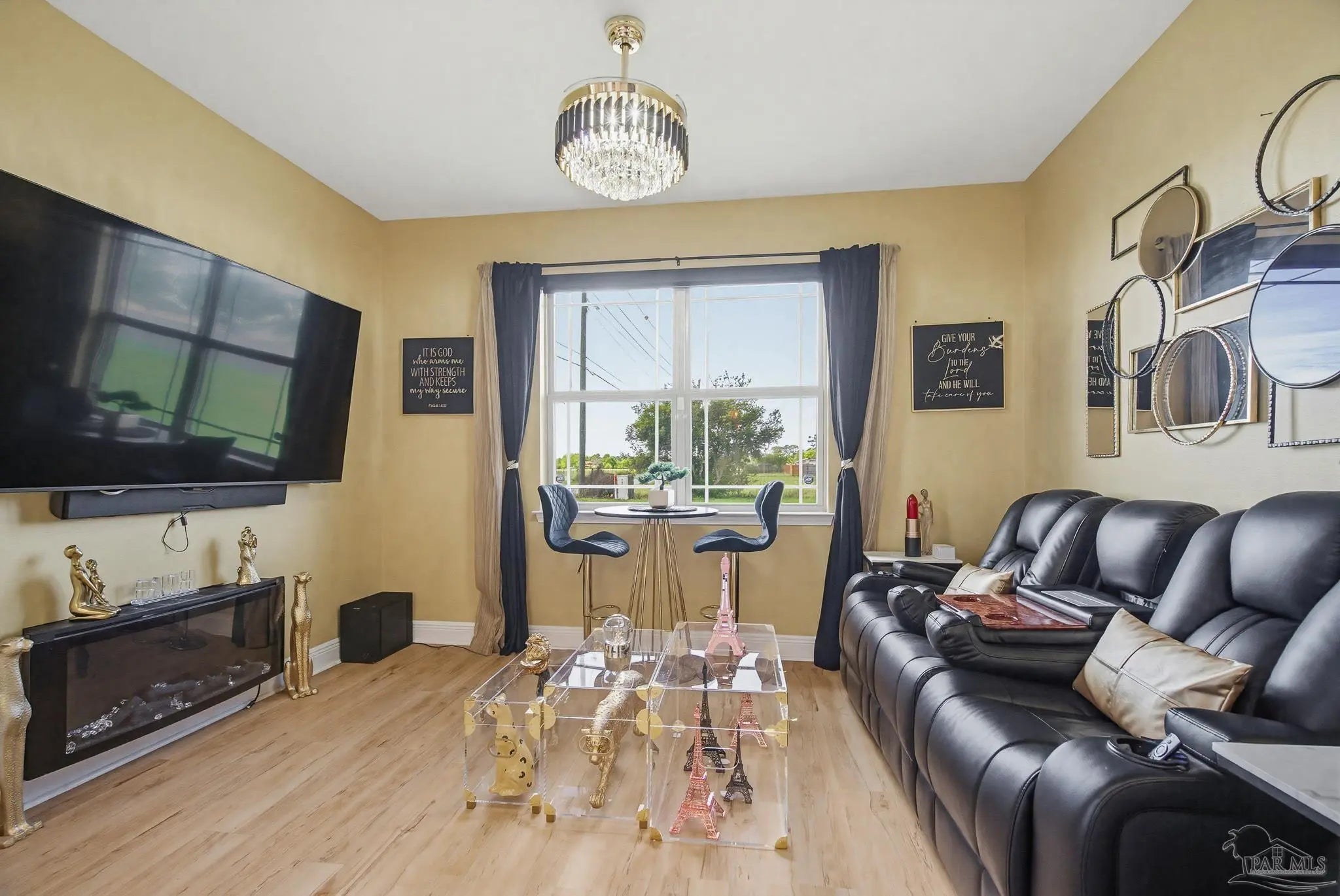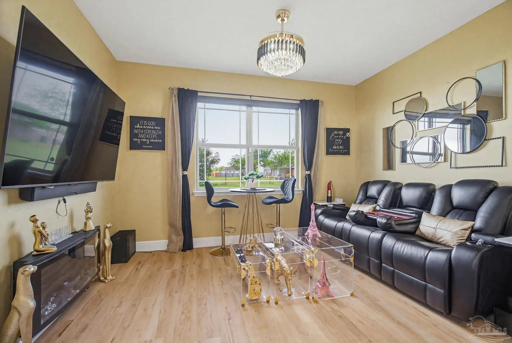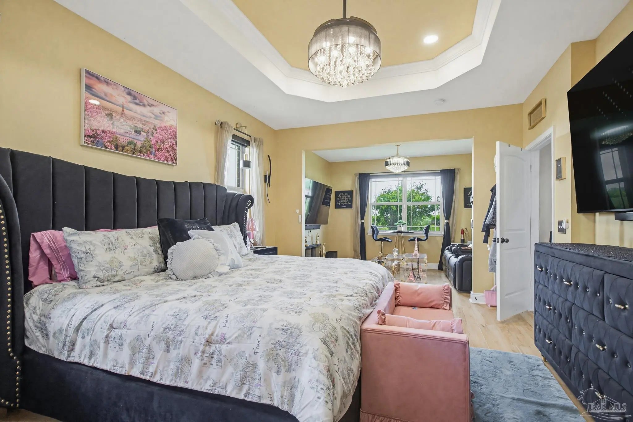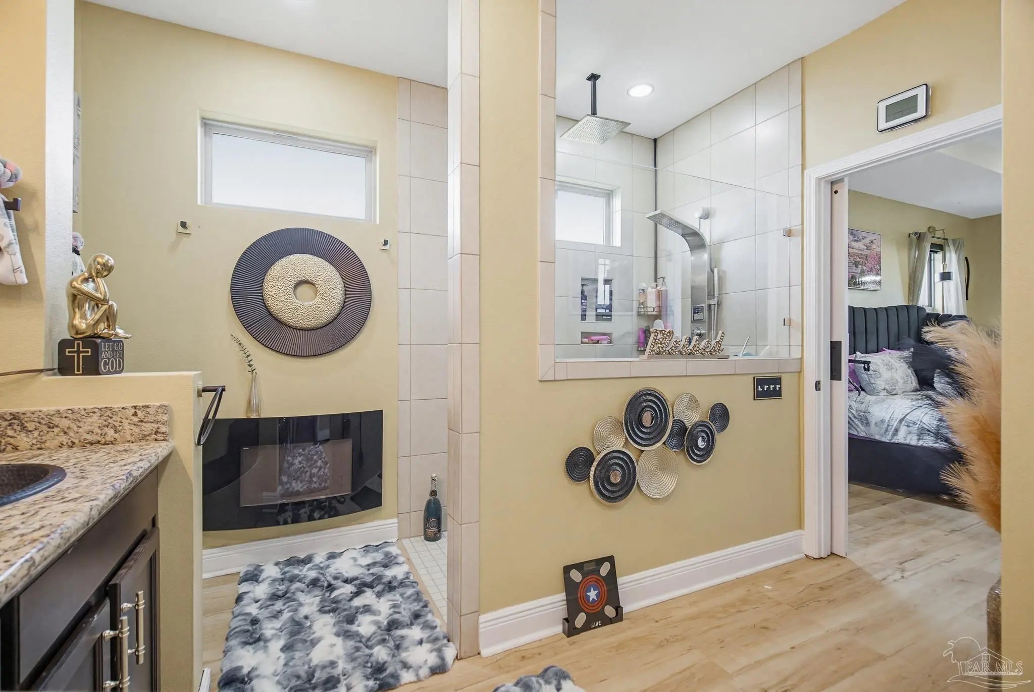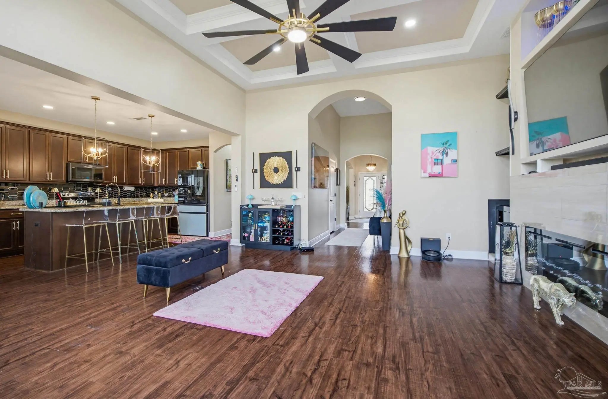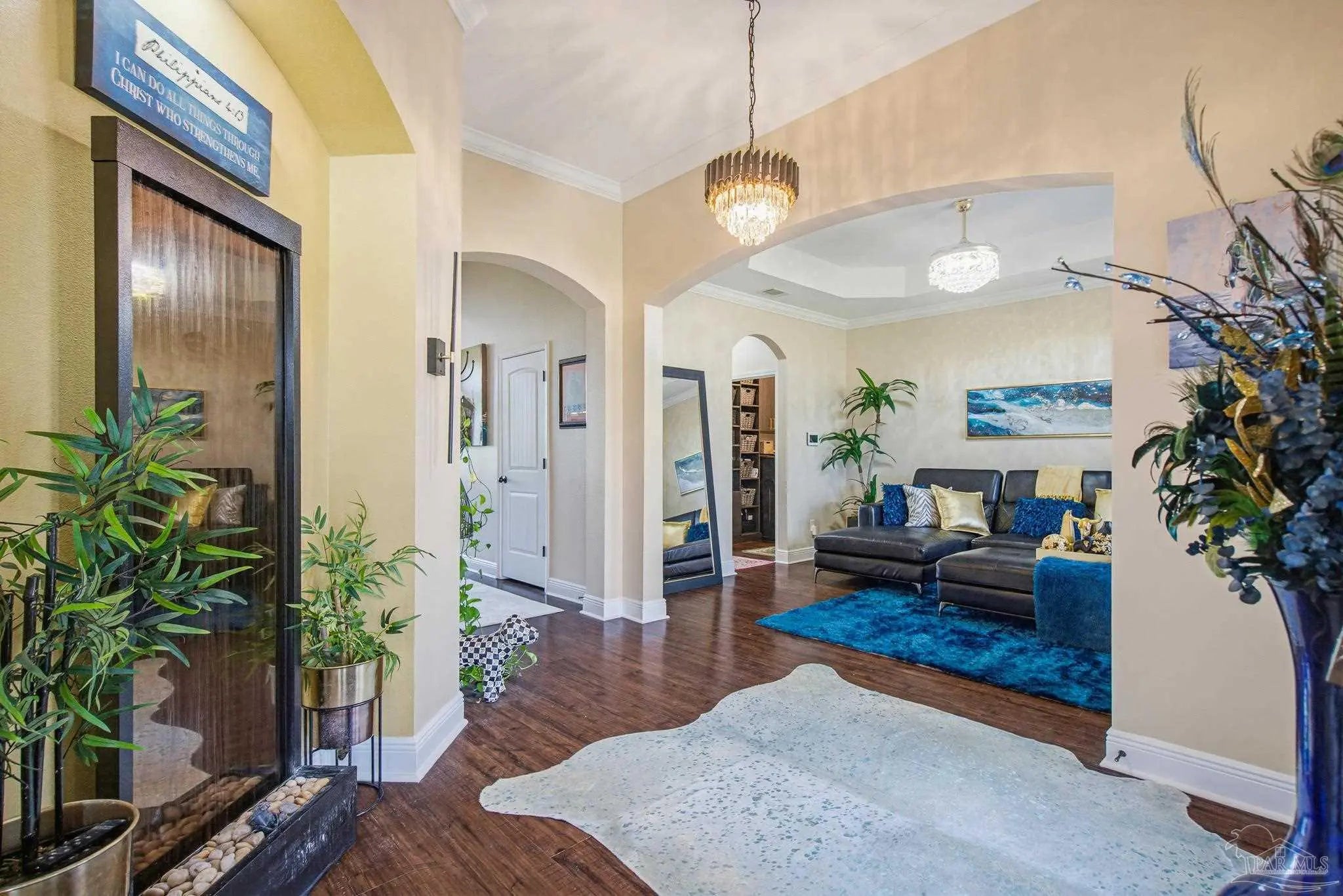 This stunning 5-bedroom, 3-bathroom home is filled with natural light and thoughtfully designed living spaces that truly inspire. The expansive great room showcases soaring cathedral ceilings, oversized windows, and rich brown flooring that creates a warm, inviting atmosphere, a custom wall unit and electric blinds. The updated chef’s kitchen features granite countertops, stainless steel appliances, and a seamless flow into the main living area—perfect for both everyday living and entertaining. Step outside to the Sunroom with the hot tub spa in the corner for those evenings when you just need to soak and relax. The spacious primary suite is a true retreat, complete with large windows, a luxurious walk-in closet with custom shelving, and a spa-like ensuite bathroom featuring dual granite vanities, a two-head spa shower. There is also a cozy sitting room adjacent to the main bedroom that can act as a retreat for reading or a home office. Additional highlights include a flexible formal dining or living space, ideal for growing families or remote work needs. This is truly a smart home with motion lights in every closet and SMART features through. There is an electric car charger in the over sized garage too. You need to see this beautiful home to truly appreciate it. Conveniently located near Navy Federal and I-10, this home offers quick access to all that Pensacola has to offer—just 20–25 minutes to shopping, downtown dining, parks, and the area’s world-famous white sand beaches.