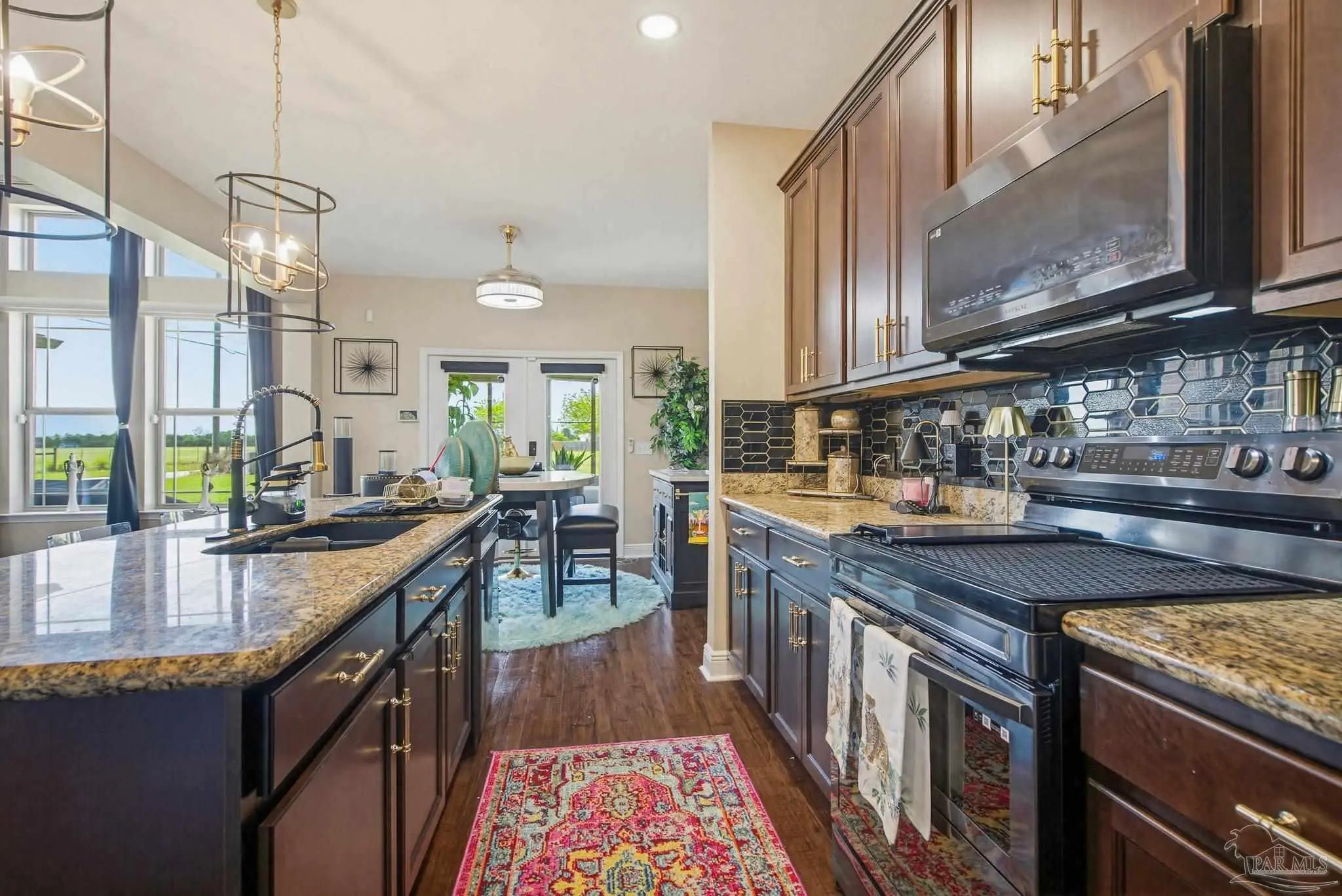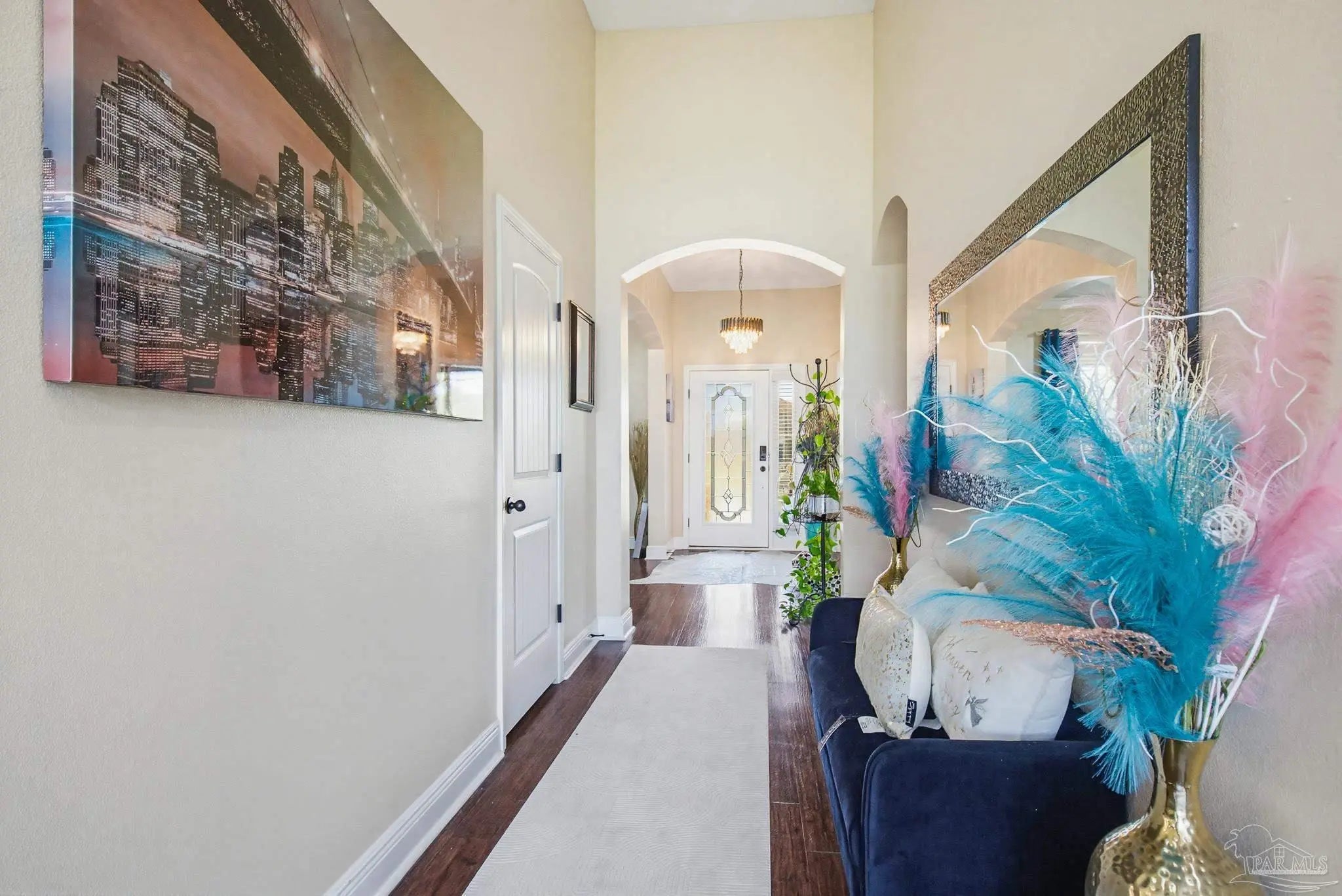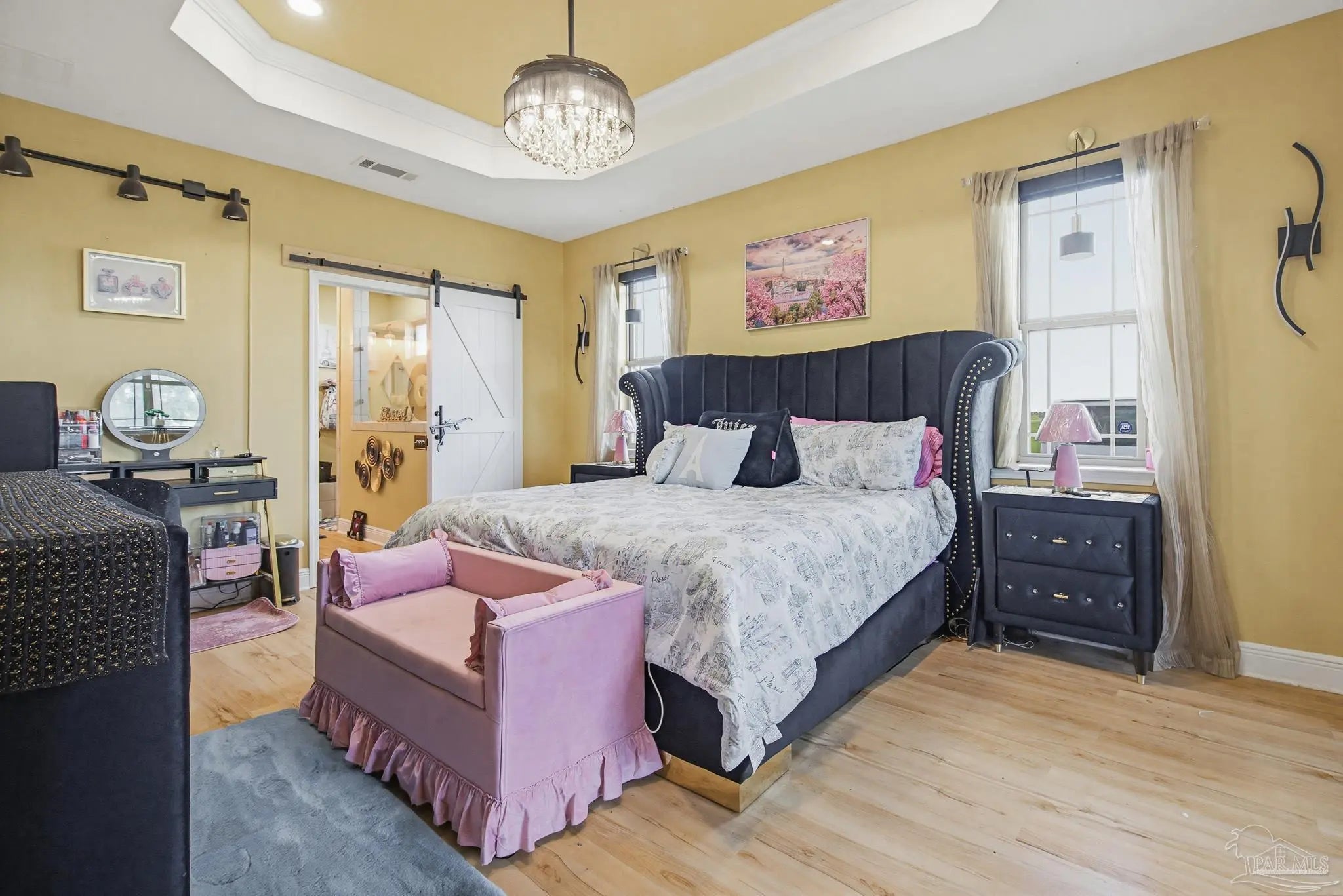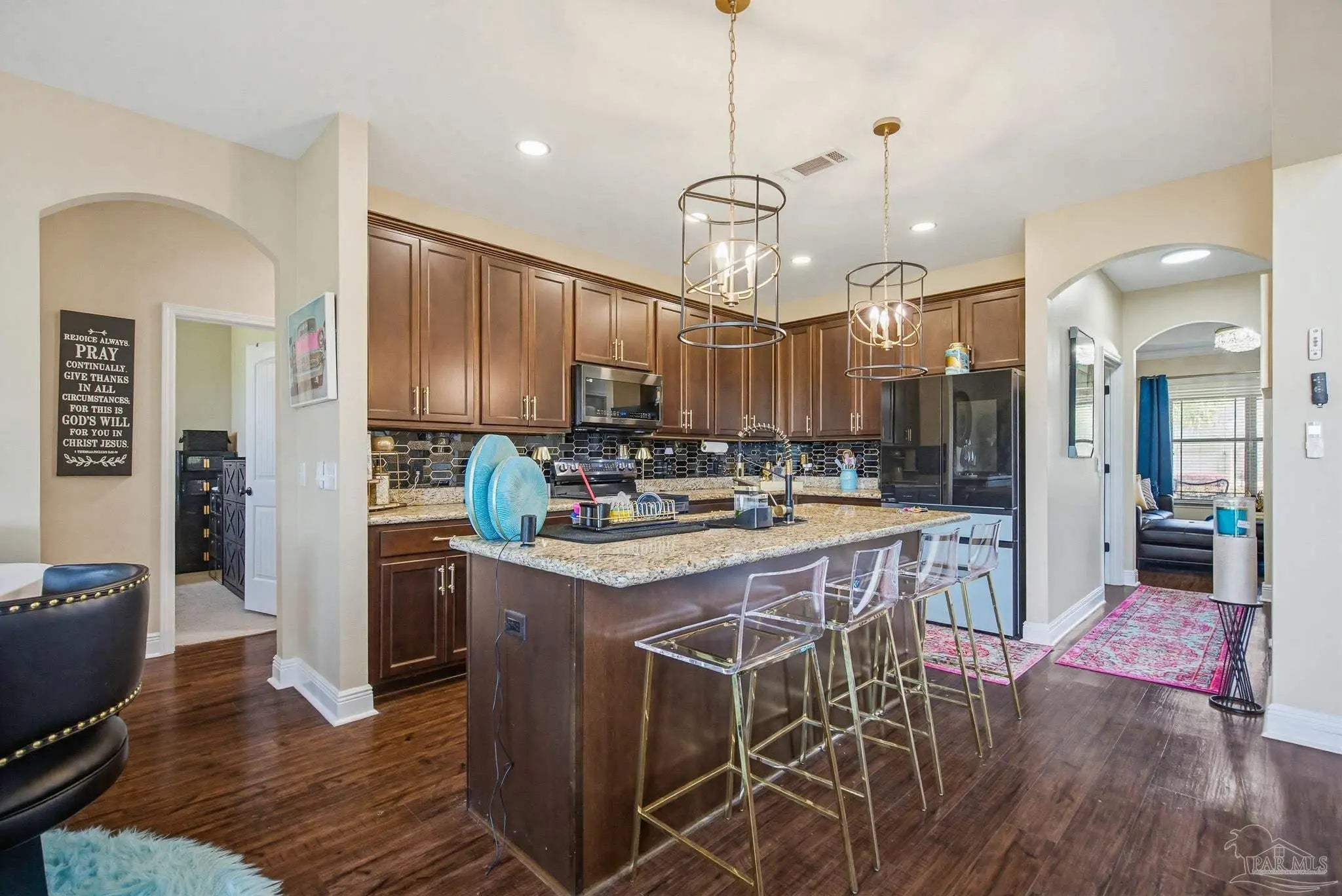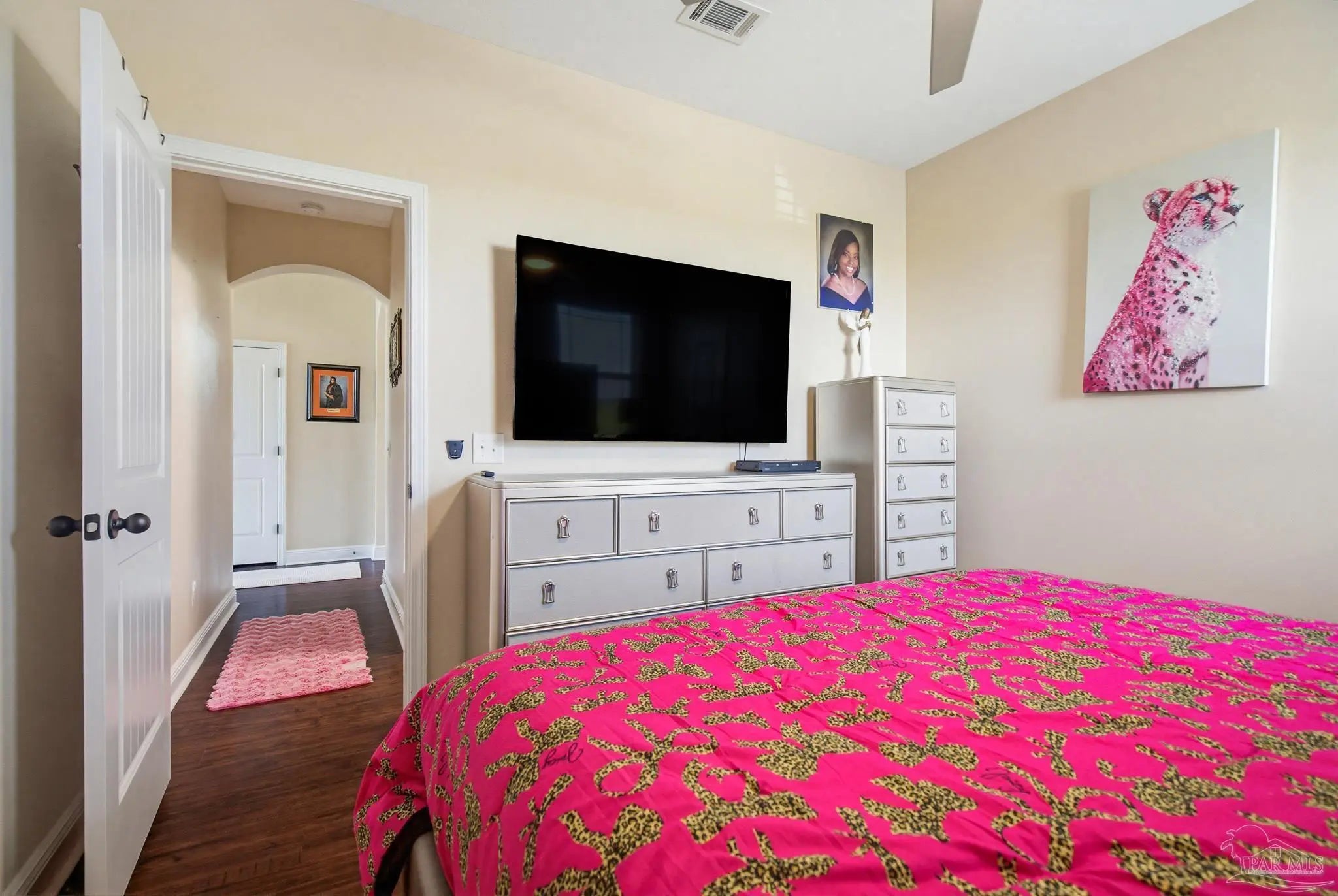 This stunning 5-bedroom, 3-bathroom home is filled with natural light and thoughtfully designed living spaces that truly inspire. The expansive great room showcases soaring cathedral ceilings, oversized windows, and rich brown flooring that creates a warm, inviting atmosphere, a custom wall unit and electric blinds. The updated chef’s kitchen features granite countertops, stainless steel appliances, and a seamless flow into the main living area—perfect for both everyday living and entertaining. Step outside to the Sunroom with the hot tub spa in the corner for those evenings when you just need to soak and relax. The spacious primary suite is a true retreat, complete with large windows, a luxurious walk-in closet with custom shelving, and a spa-like ensuite bathroom featuring dual granite vanities, a two-head spa shower. There is also a cozy sitting room adjacent to the main bedroom that can act as a retreat for reading or a home office. Additional highlights include a flexible formal dining or living space, ideal for growing families or remote work needs. This is truly a smart home with motion lights in every closet and SMART features through. There is an electric car charger in the over sized garage too. You need to see this beautiful home to truly appreciate it. Conveniently located near Navy Federal and I-10, this home offers quick access to all that Pensacola has to offer—just 20–25 minutes to shopping, downtown dining, parks, and the area’s world-famous white sand beaches.