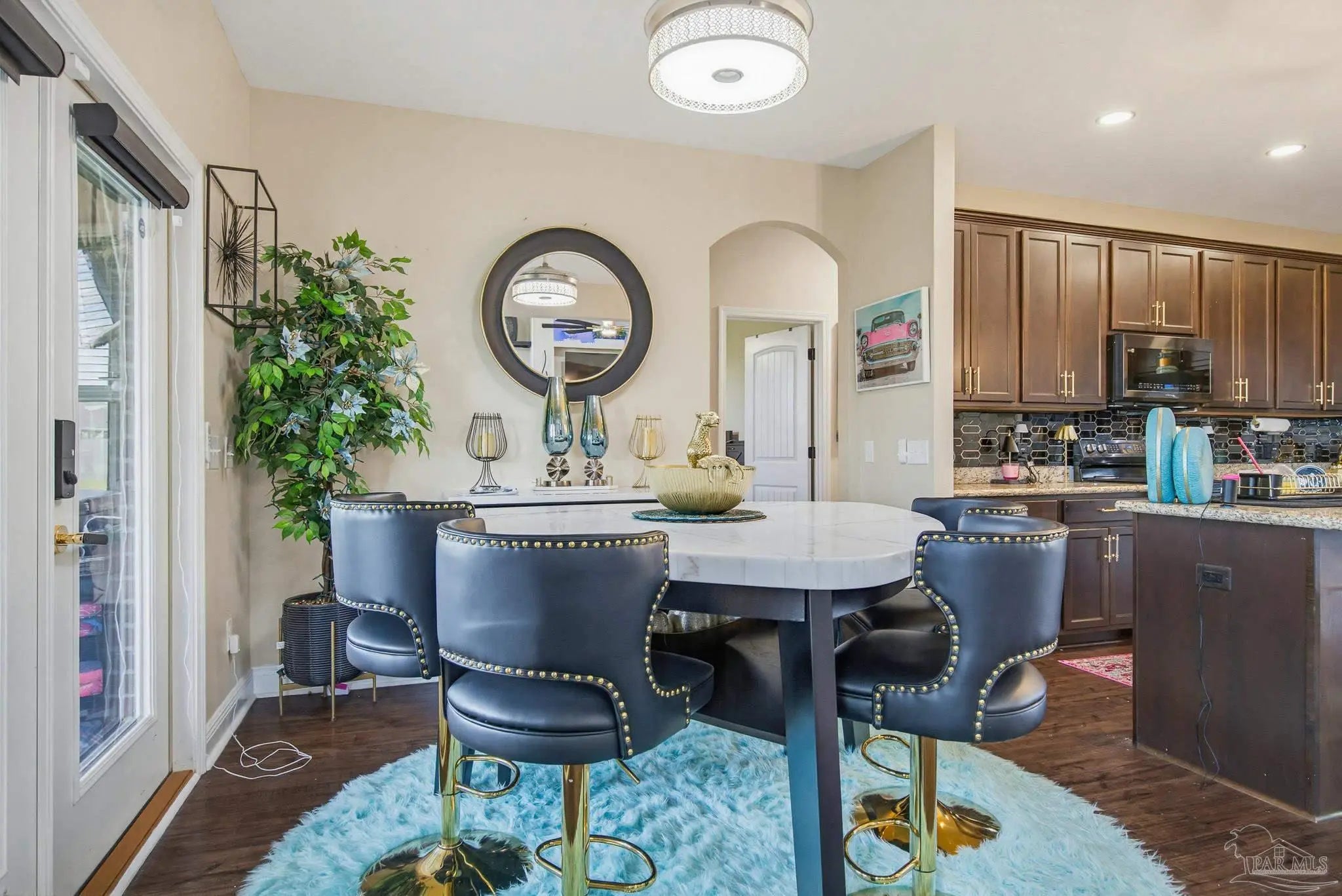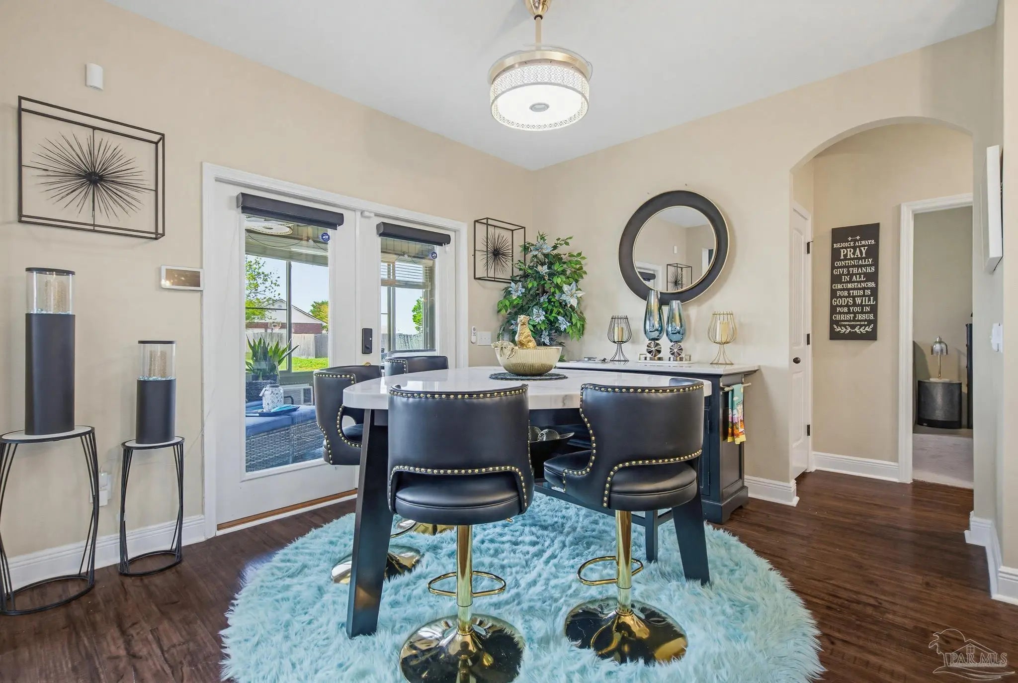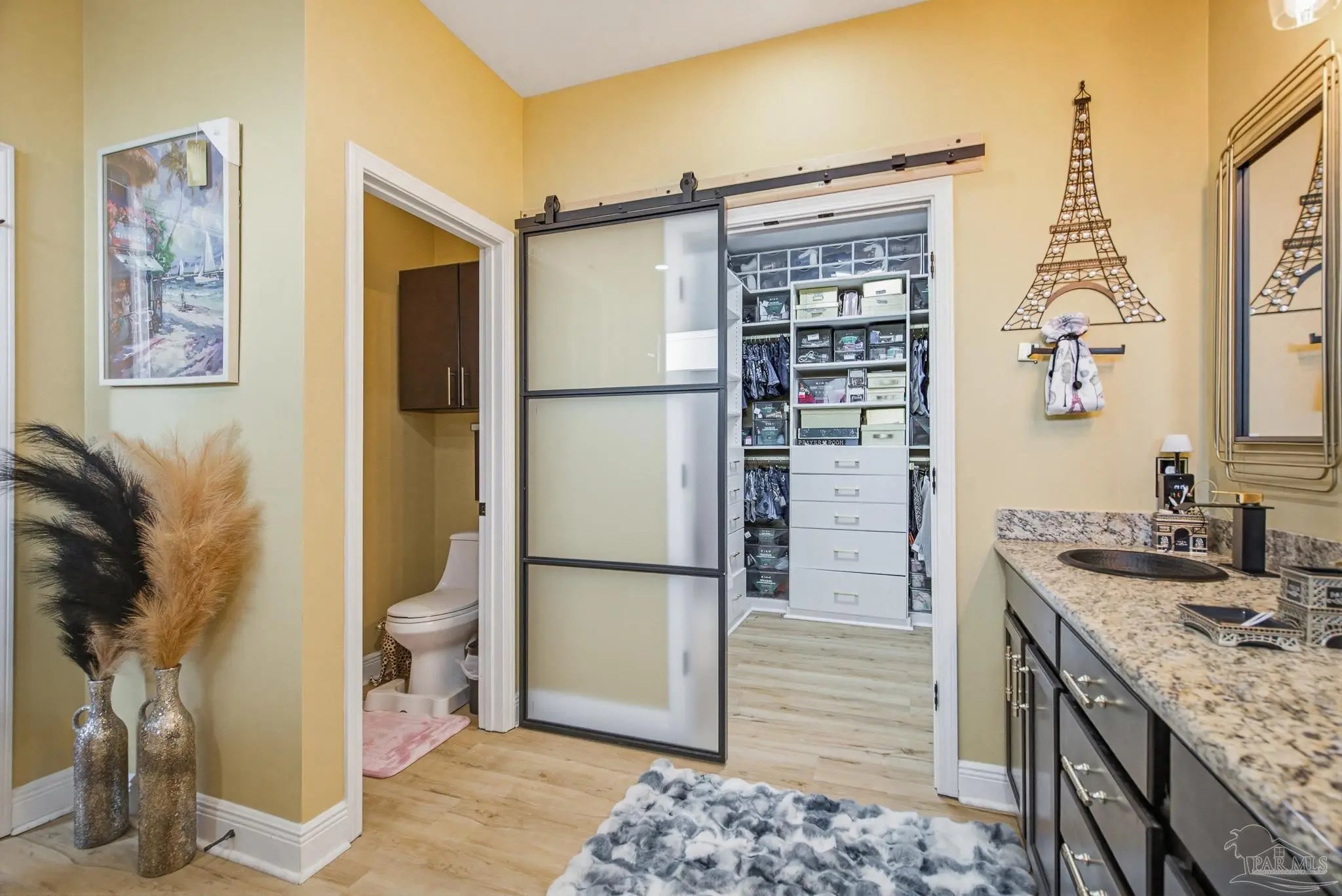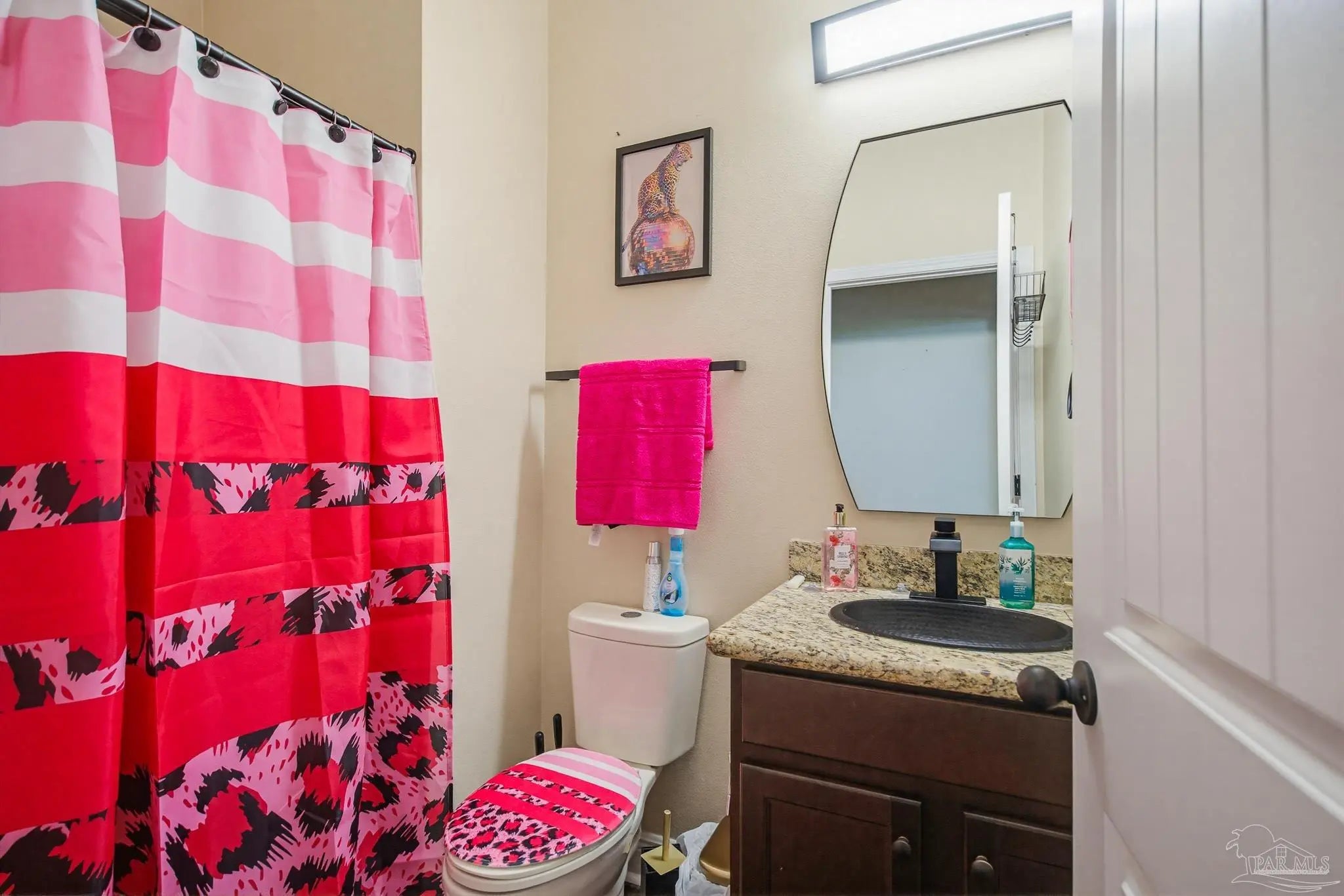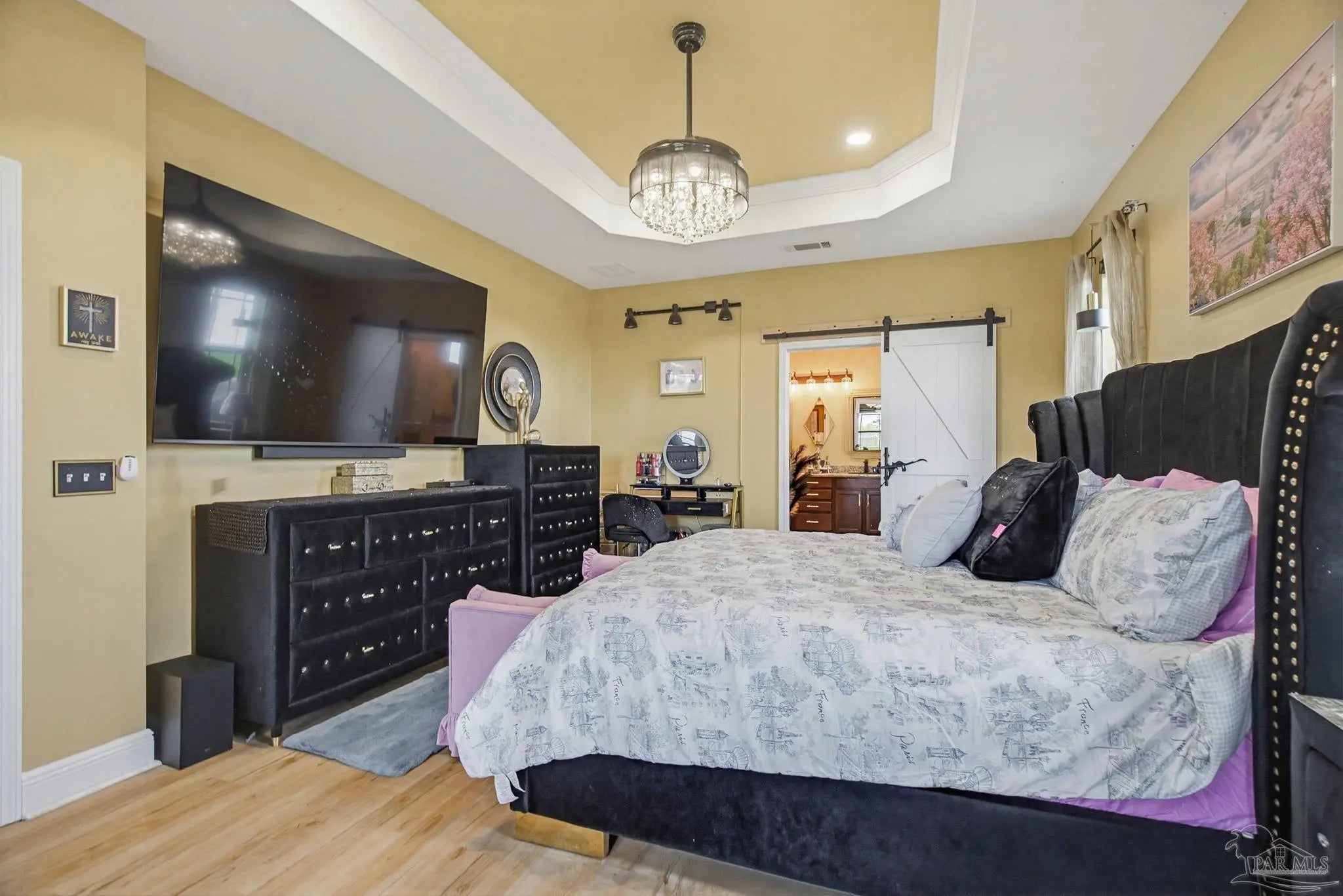 This stunning 5-bedroom, 3-bathroom home is filled with natural light and thoughtfully designed living spaces that truly inspire. The expansive great room showcases soaring cathedral ceilings, oversized windows, and rich brown flooring that creates a warm, inviting atmosphere, a custom wall unit and electric blinds. The updated chef’s kitchen features granite countertops, stainless steel appliances, and a seamless flow into the main living area—perfect for both everyday living and entertaining. Step outside to the Sunroom with the hot tub spa in the corner for those evenings when you just need to soak and relax. The spacious primary suite is a true retreat, complete with large windows, a luxurious walk-in closet with custom shelving, and a spa-like ensuite bathroom featuring dual granite vanities, a two-head spa shower. There is also a cozy sitting room adjacent to the main bedroom that can act as a retreat for reading or a home office. Additional highlights include a flexible formal dining or living space, ideal for growing families or remote work needs. This is truly a smart home with motion lights in every closet and SMART features through. There is an electric car charger in the over sized garage too. You need to see this beautiful home to truly appreciate it. Conveniently located near Navy Federal and I-10, this home offers quick access to all that Pensacola has to offer—just 20–25 minutes to shopping, downtown dining, parks, and the area’s world-famous white sand beaches.