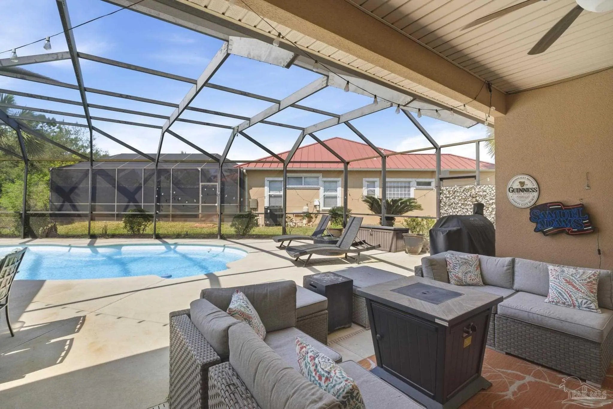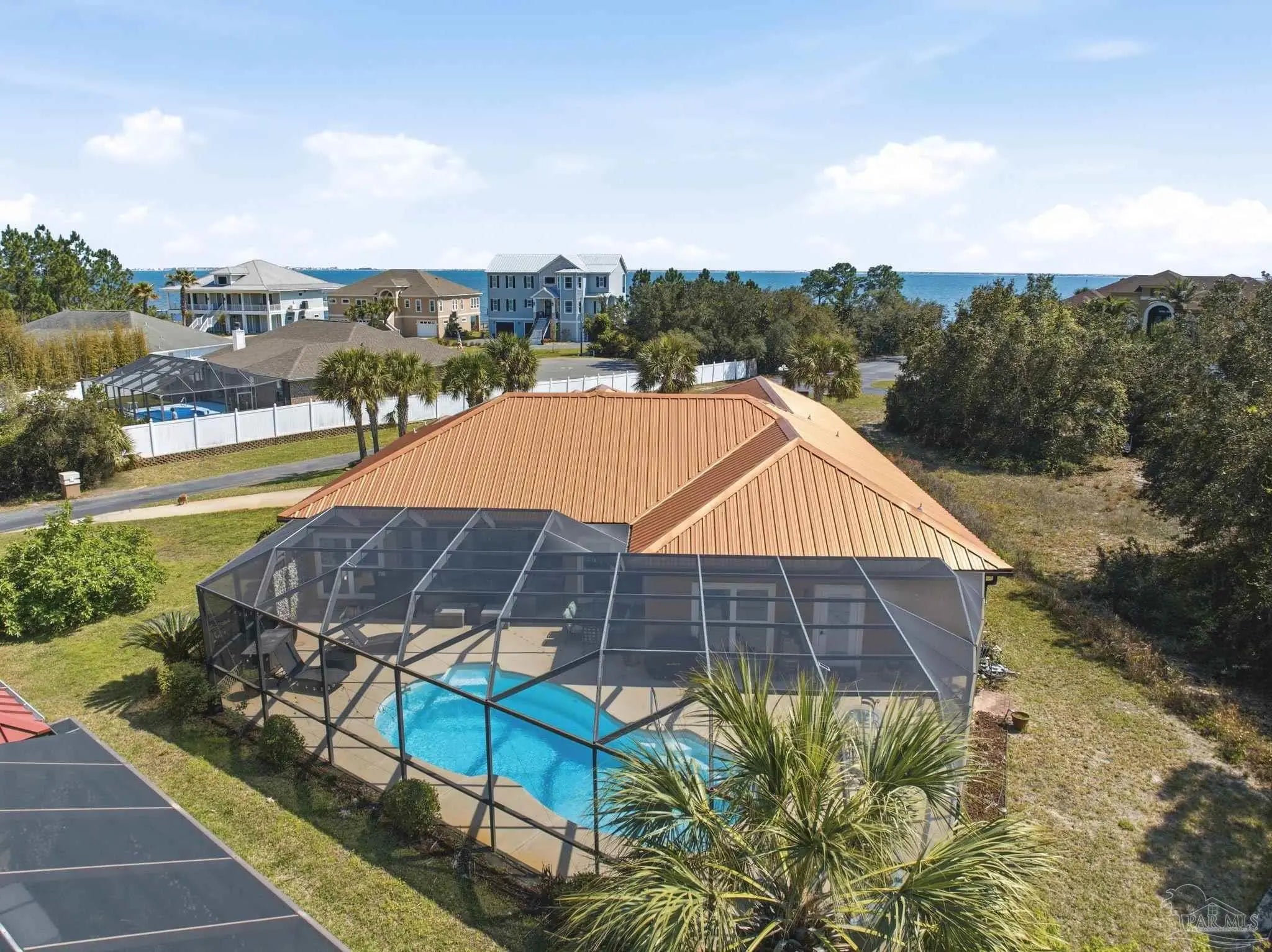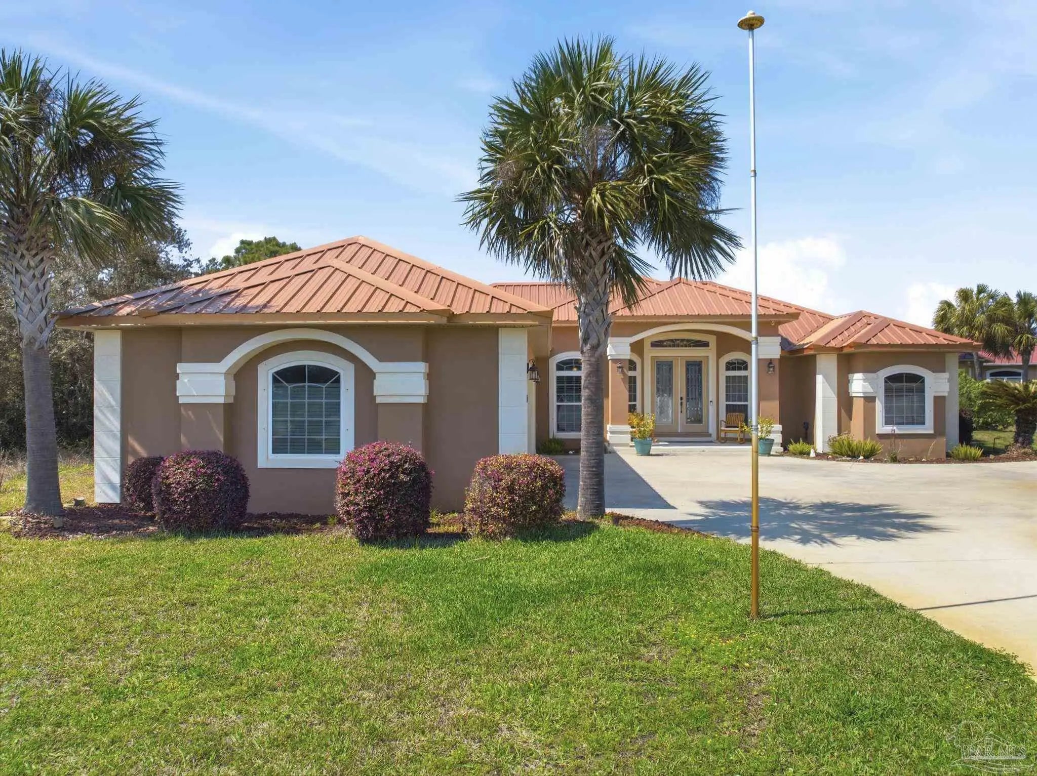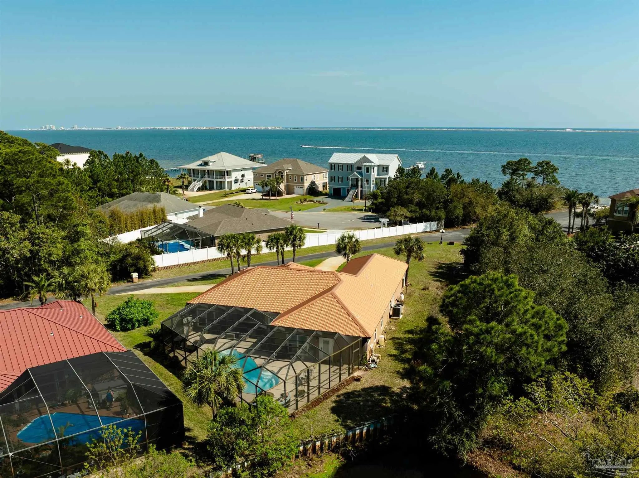 Welcome to a home where the backyard is the heart of the residence and every detail is designed for the quintessential Gulf Breeze lifestyle. This property offers a rare combination of privacy, water access, and high-end updates, creating a sanctuary that feels miles away from the everyday. Your coastal experience begins the moment you step outside; the front yard offers a view of the Santa Rosa Sound, serving as a daily reminder of your proximity to the water. This scenic view leads you just a short distance down to the exclusive neighborhood dock and boat ramp, making a day on the water as simple as a quick stroll from your front door. The outdoor space is truly where life happens: a stunning, screened-in pool anchors an expansive entertaining area with generous room for lounging, dining, and gatherings of any size. Beyond the pool, a peaceful pond completes the picturesque setting—the perfect backdrop to unwind and take in the serene Florida scenery. The community amenities further elevate the experience, providing a neighborhood pool and tennis courts that invite you to make the most of active living every single day. Inside, the home exudes a warm, elevated atmosphere defined by elegant tray ceilings and an abundance of natural light. The floor plan is designed for modern flexibility, featuring two distinct living spaces ideal for both quiet relaxation and vibrant entertaining. The large kitchen is a chef’s delight, equipped with sleek stainless steel appliances, a built-in microwave and oven, and a premium gas cooktop. The primary suite serves as a private retreat, offering generous proportions, two walk-in closets, and direct access to the screened-in pool area for late-night swims or morning coffee. Its luxurious en suite bath features a large walk-in shower, a soaking tub, and a custom vanity. Three additional well-sized bedrooms provide comfort and versatility for family or guests. Significant recent upgrades provide ultimate peace of mind.