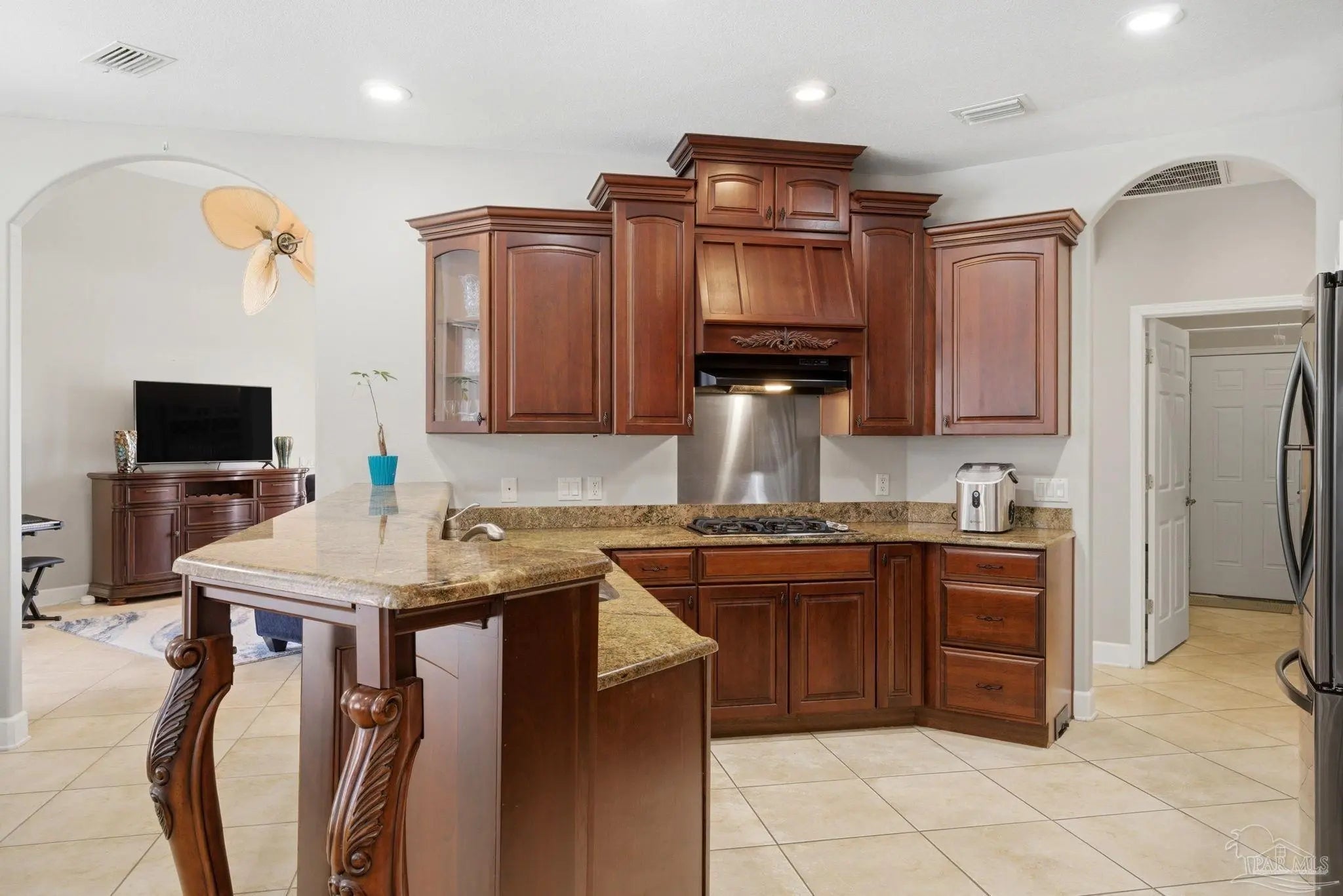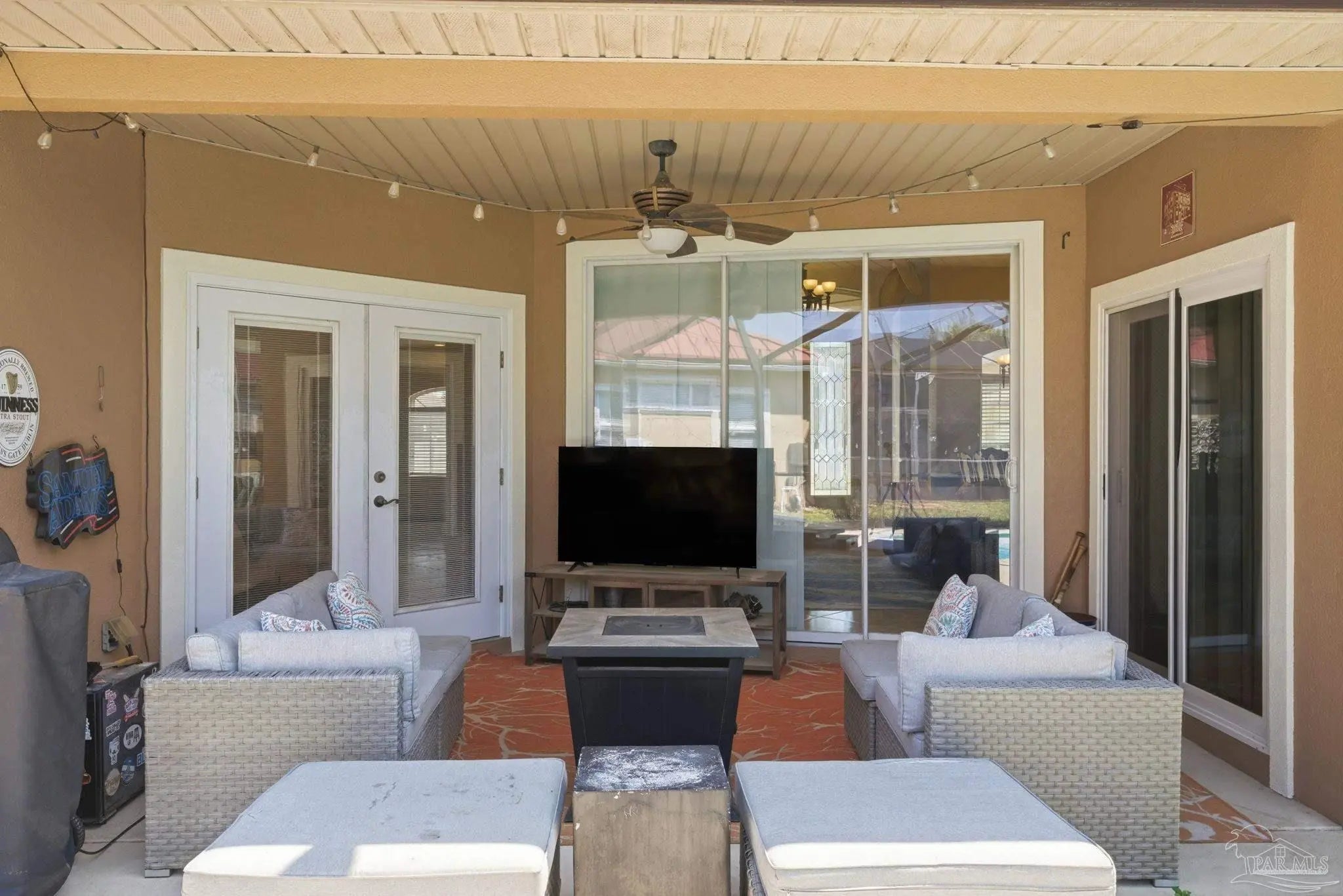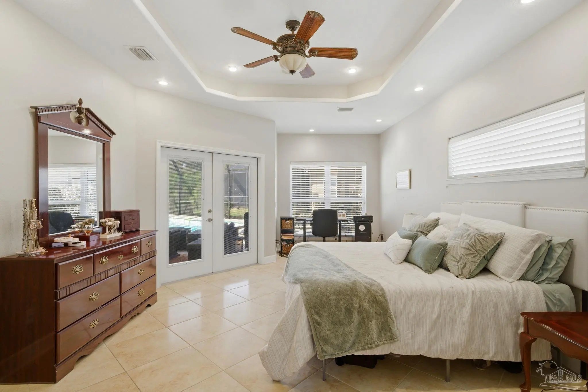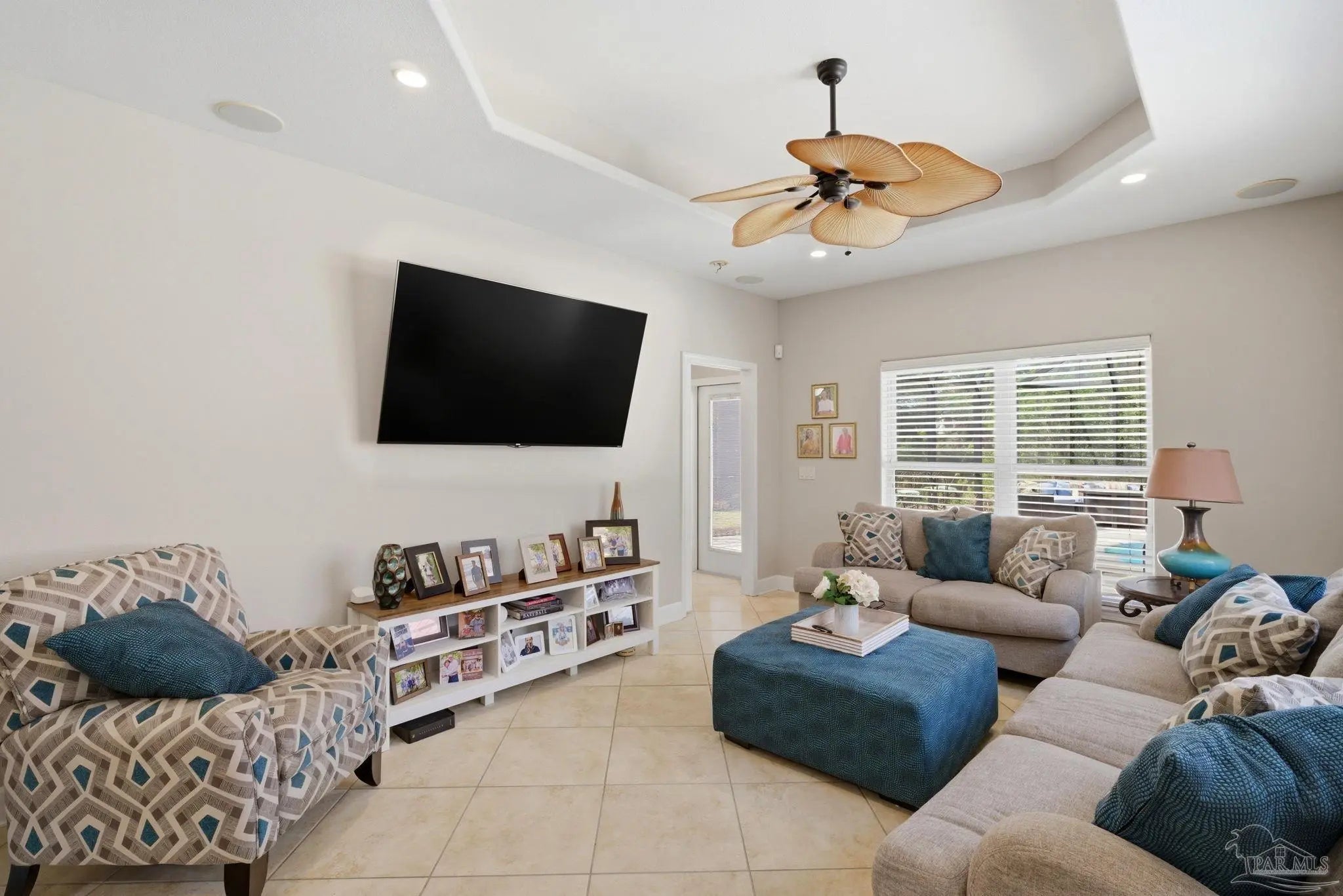 Welcome to a home where the backyard is the heart of the residence and every detail is designed for the quintessential Gulf Breeze lifestyle. This property offers a rare combination of privacy, water access, and high-end updates, creating a sanctuary that feels miles away from the everyday. Your coastal experience begins the moment you step outside; the front yard offers a view of the Santa Rosa Sound, serving as a daily reminder of your proximity to the water. This scenic view leads you just a short distance down to the exclusive neighborhood dock and boat ramp, making a day on the water as simple as a quick stroll from your front door. The outdoor space is truly where life happens: a stunning, screened-in pool anchors an expansive entertaining area with generous room for lounging, dining, and gatherings of any size. Beyond the pool, a peaceful pond completes the picturesque setting—the perfect backdrop to unwind and take in the serene Florida scenery. The community amenities further elevate the experience, providing a neighborhood pool and tennis courts that invite you to make the most of active living every single day. Inside, the home exudes a warm, elevated atmosphere defined by elegant tray ceilings and an abundance of natural light. The floor plan is designed for modern flexibility, featuring two distinct living spaces ideal for both quiet relaxation and vibrant entertaining. The large kitchen is a chef’s delight, equipped with sleek stainless steel appliances, a built-in microwave and oven, and a premium gas cooktop. The primary suite serves as a private retreat, offering generous proportions, two walk-in closets, and direct access to the screened-in pool area for late-night swims or morning coffee. Its luxurious en suite bath features a large walk-in shower, a soaking tub, and a custom vanity. Three additional well-sized bedrooms provide comfort and versatility for family or guests. Significant recent upgrades provide ultimate peace of mind.