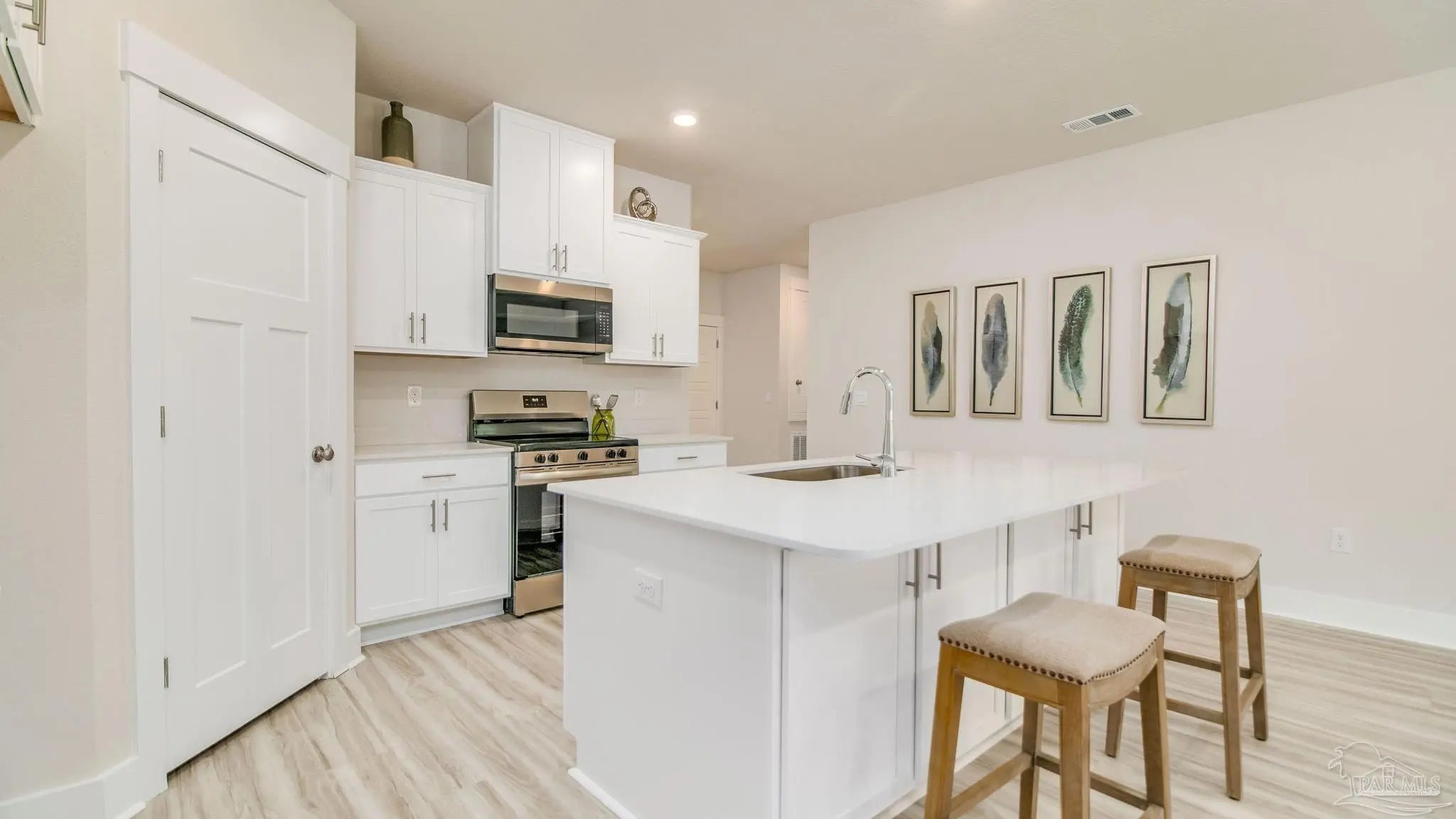 The charming Rhett, one of our most popular & highly desirable Open Designs. 4 beds, 2 baths, covered patio & a 2-car garage. The Smart Home Connect System includes several Smart Home convenient devices. BEAUTIFUL, well-designed kitchen offers gorgeous Quartz countertops, relaxed living with a lg. island bar, quiet dishwasher, all stainless appliances, pantry, & spacious dining area. Bedroom 1 & adjoining bath feature a walk-in closet, Quartz double sink vanity, tub AND separate shower. Striking wood-look flooring throughout & Friese carpet in the bedrooms. Upscale home with great curb appeal. Convenient location. Must see!