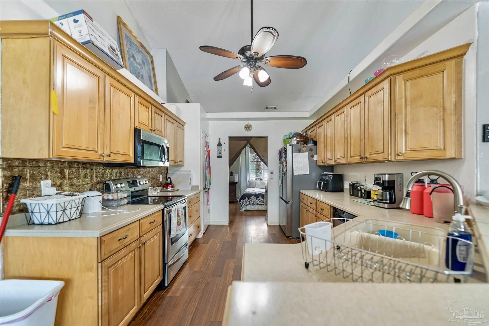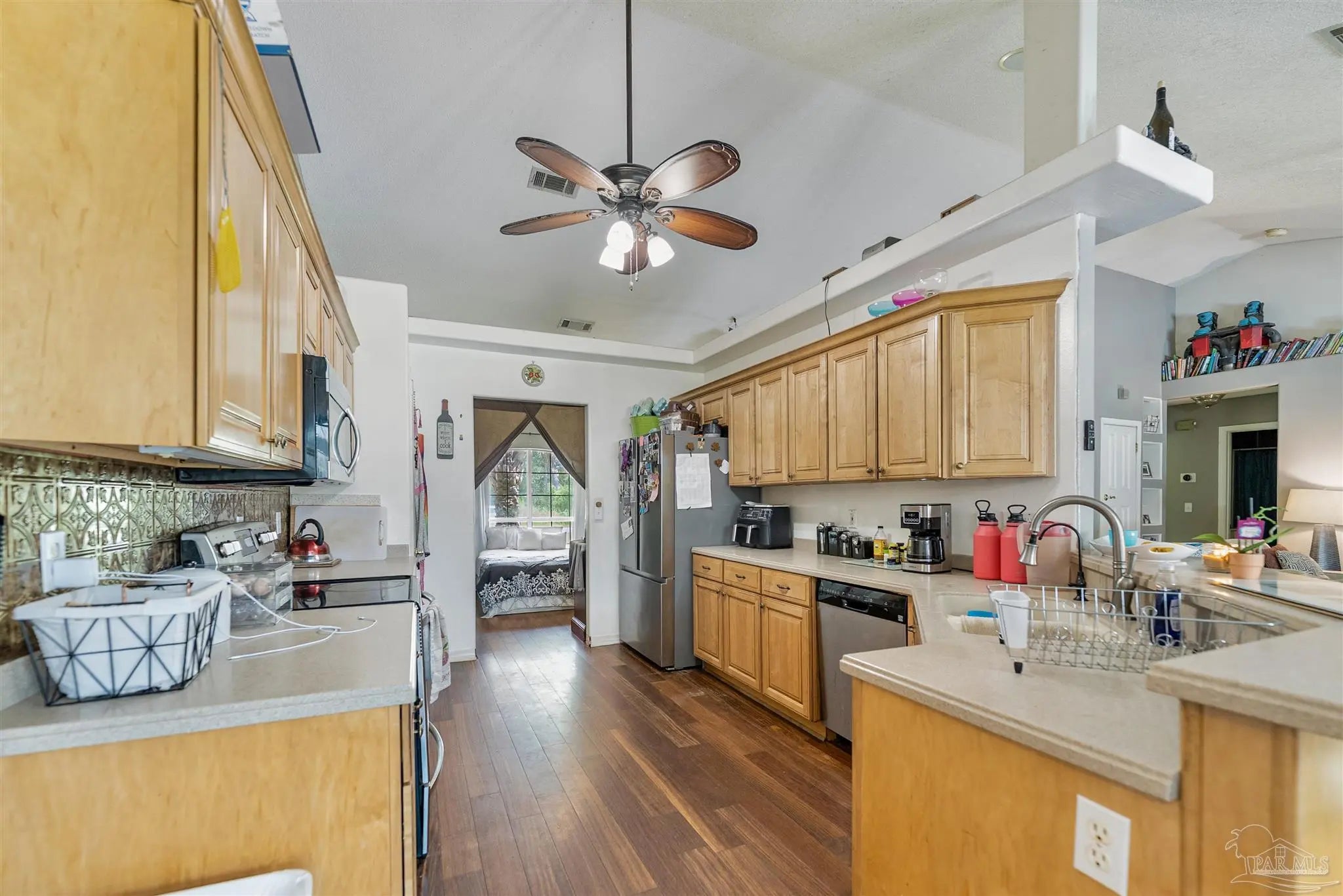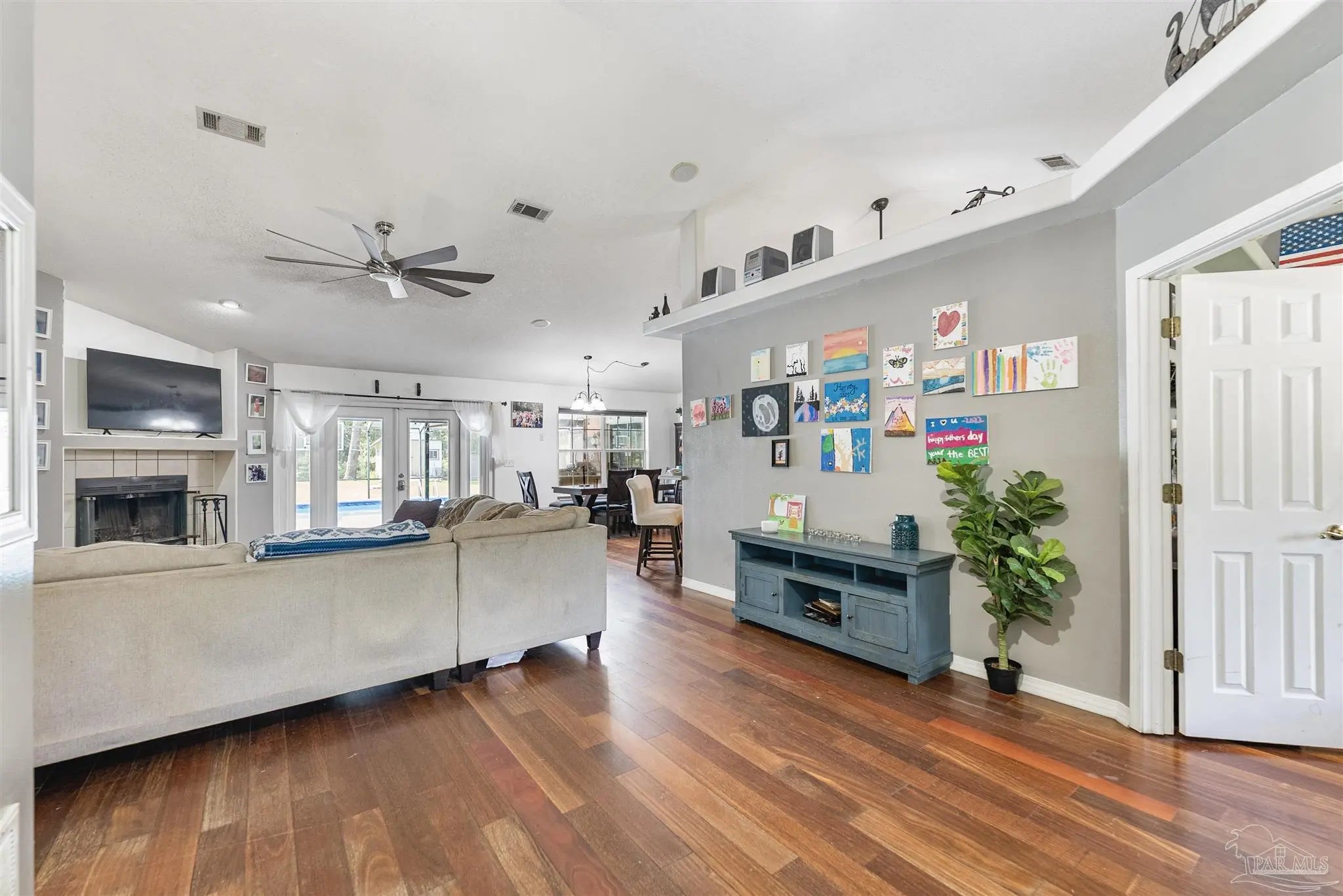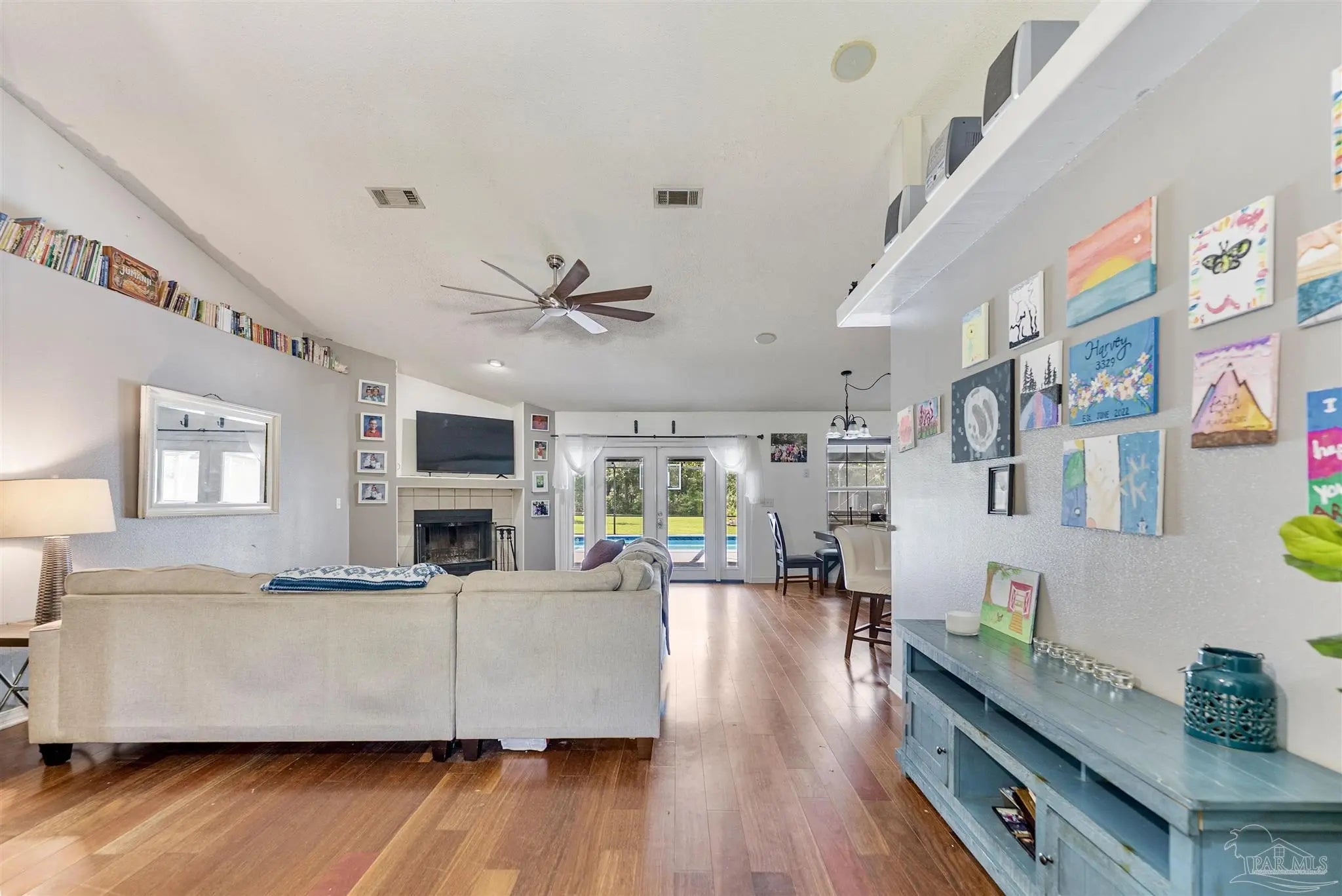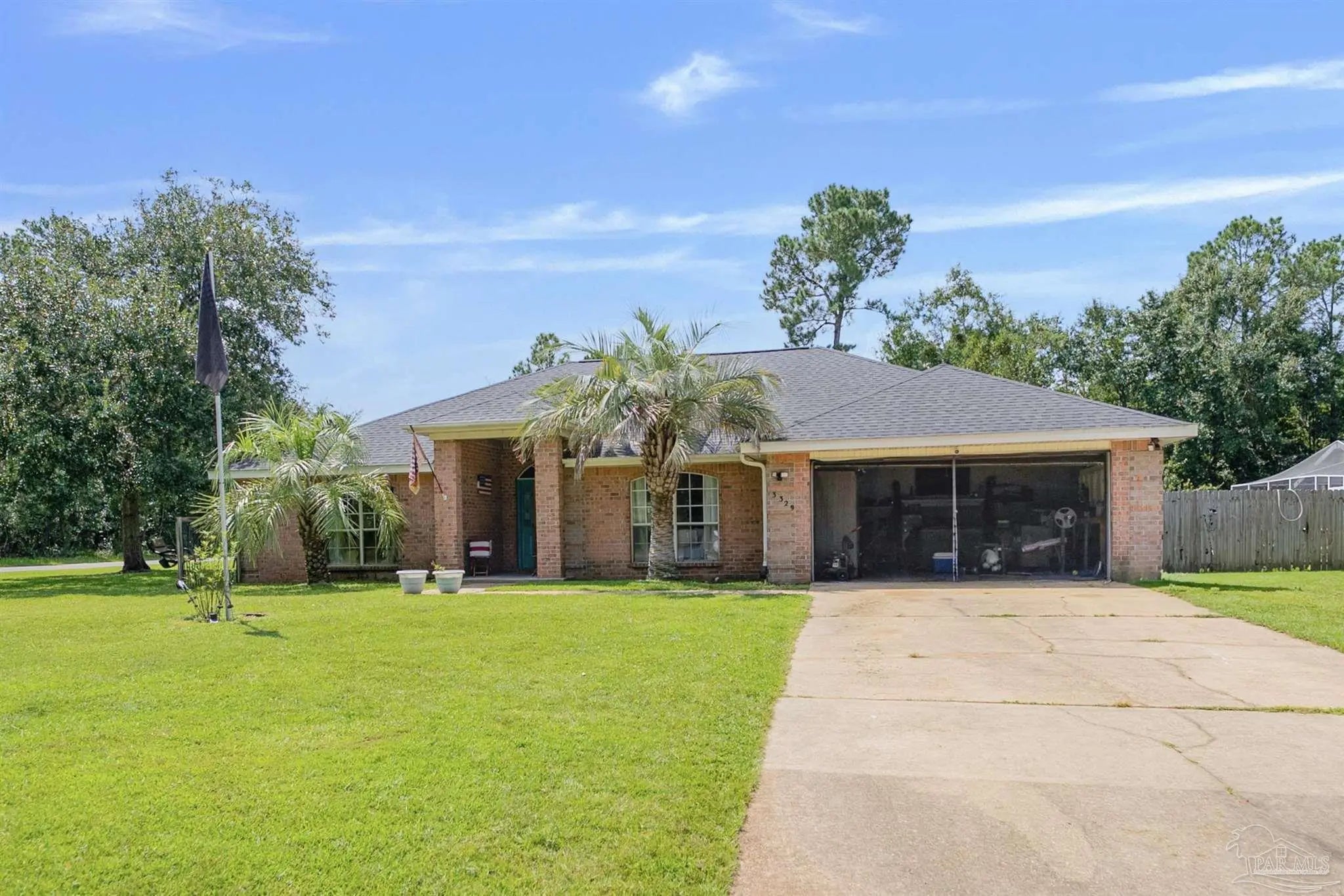 Sunset Bayou Pool Home Discover exceptional value in this prestigious Sunset Bayou neighborhood! This is a SHORT SALE priced below market value—a 3-bedroom, 2-bath brick pool home with screened-in lanai perfect for buyers seeking a short sale investment. This home does need a few TLC updates—light paint touch-ups and screen panel replacements—but with minimal work, this gem can be quickly restored. A motivated seller opportunity ready for a fast close. Inside, you'll find a split floor plan with cathedral ceilings, hardwood and tile flooring, and a wood-burning fireplace. The designer kitchen features honey maple cabinets with an eat-in area and separate dining room. The master suite includes tray ceilings, dual walk-in closets, and a luxurious bath with double vanities, garden tub, and separate shower. Smart home features include a Nest thermostat, smart locks, and security cameras. Situated on a corner lot with abundant parking, the screened pool and lanai are move-in ready. RV and boat parking with 30 AMP hookup add flexibility. Water views steps from your door. Close to I-10, shopping, schools, and boat ramps, this Sunset Bayou gem is the ideal short sale investment opportunity.