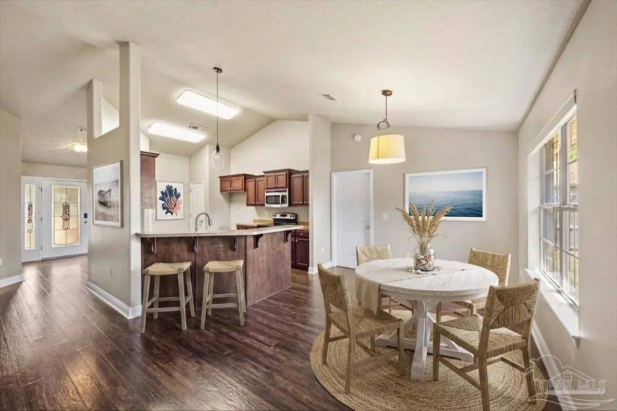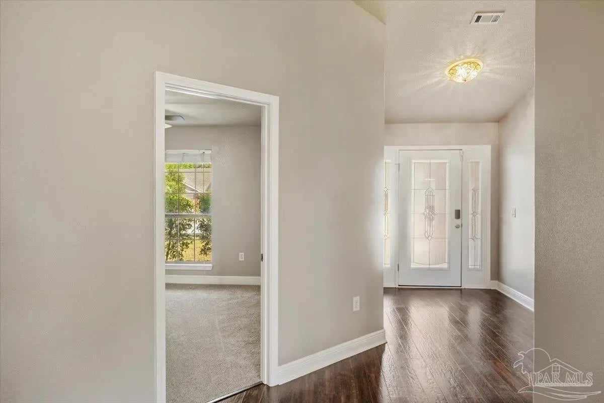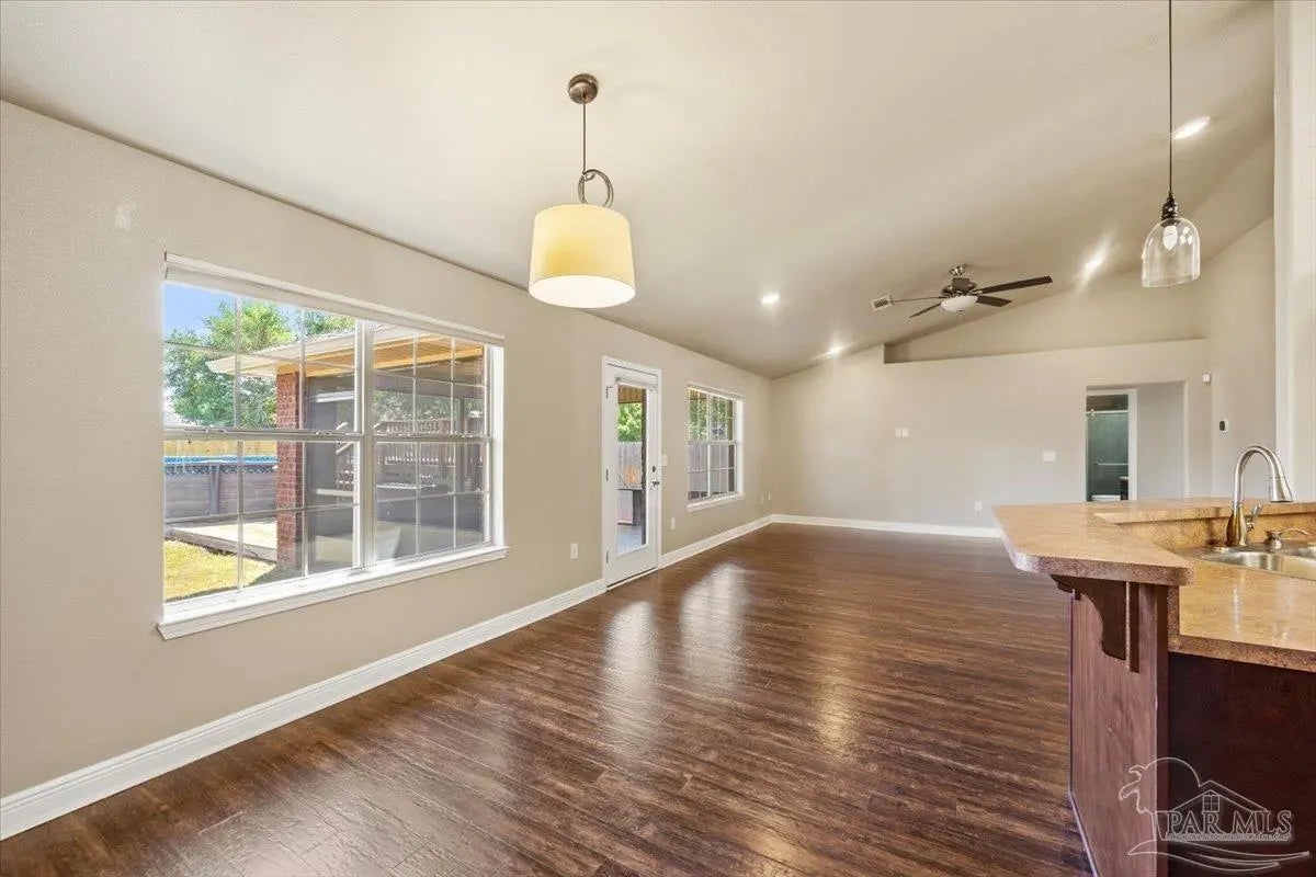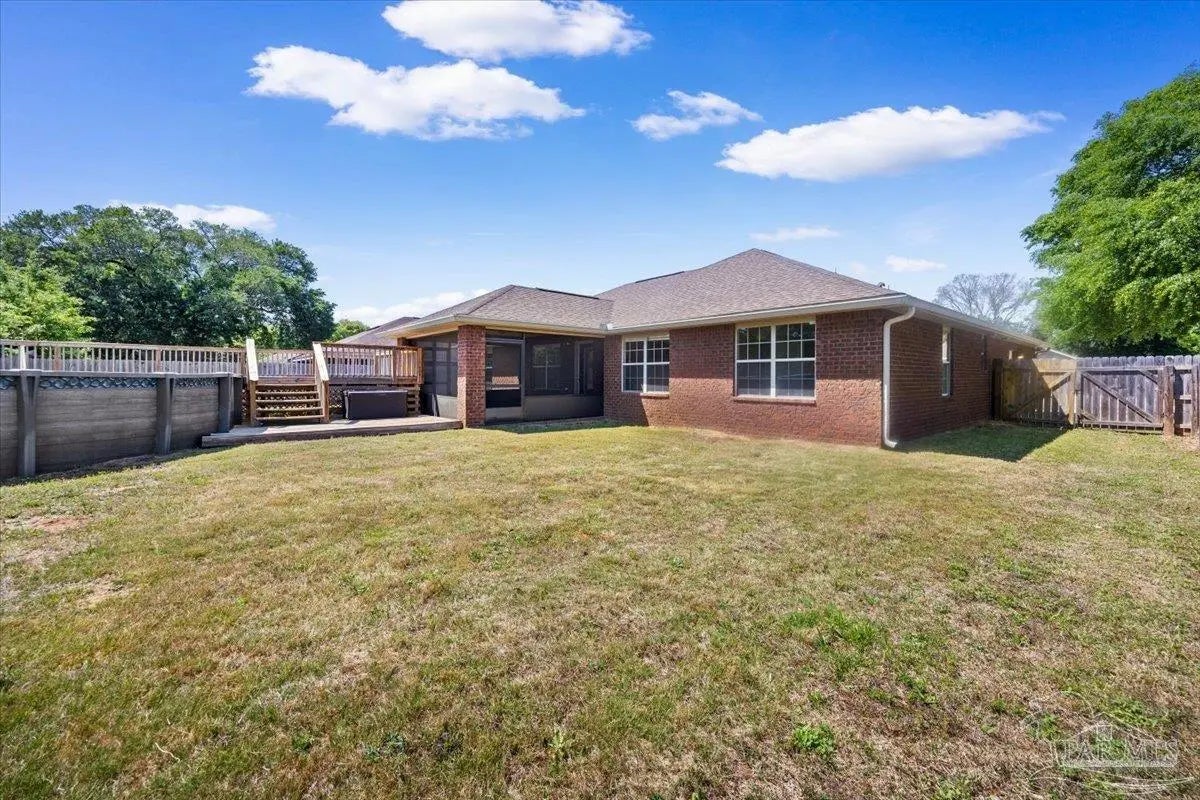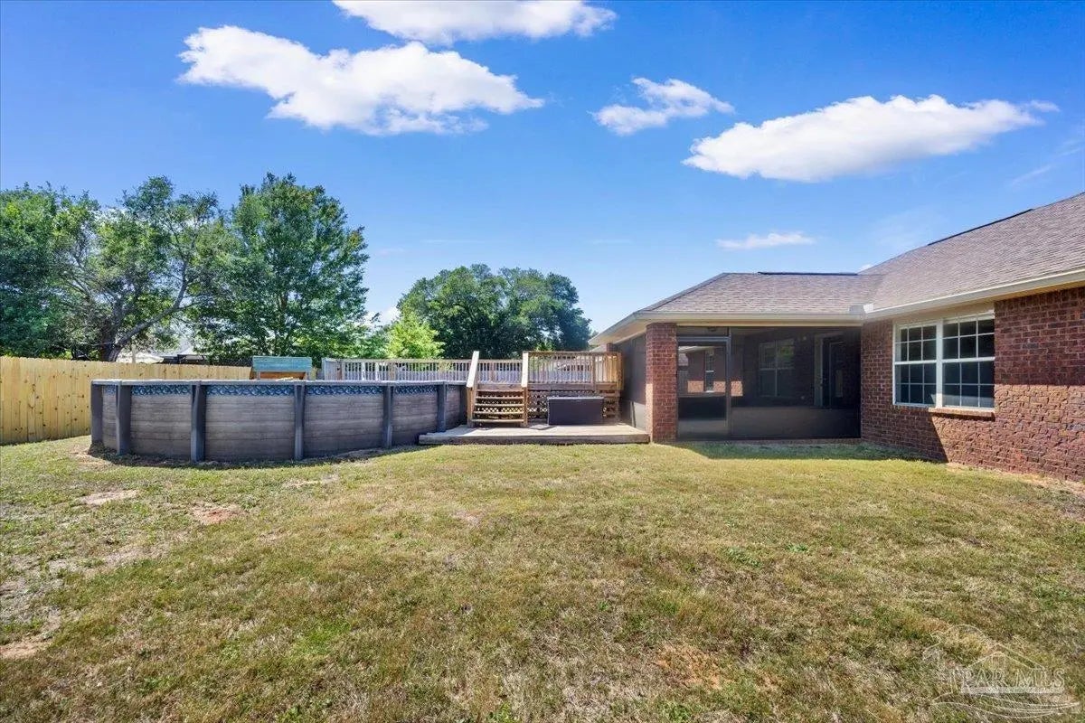 Charming Craftsman-style 4-bedroom, 2-bath brick home featuring a spacious open layout with a desirable split-bedroom design for added privacy. Vaulted ceilings in the Great Room create a bright, welcoming atmosphere—perfect for gathering with family and friends. The kitchen is both stylish and functional, offering rich cherry cabinetry, a pantry, and stainless steel appliances, with ample space for everyday living and entertaining. Fresh interior paint in soft, neutral tones complements the durable wood-look laminate flooring in the main living areas and plush new carpet in the bedrooms. The primary suite serves as a relaxing retreat, highlighted by a tray ceiling and large double windows that fill the room with natural light and offer peaceful backyard views. The ensuite bath features a double vanity, custom glass-enclosed shower, two closets, and a private water closet. A versatile heated and cooled bonus room—converted from the garage (not included in the square footage)—provides the perfect space for a home office, playroom, or hobby area. Step outside to enjoy the screened-in patio, fully privacy-fenced backyard, spacious workshop, and an above-ground pool with deck—ideal for relaxing and entertaining on sunny days. Conveniently located just minutes from shopping, schools, and military bases, this home offers the perfect blend of comfort, functionality, and everyday livability. Check out the virtual tour!