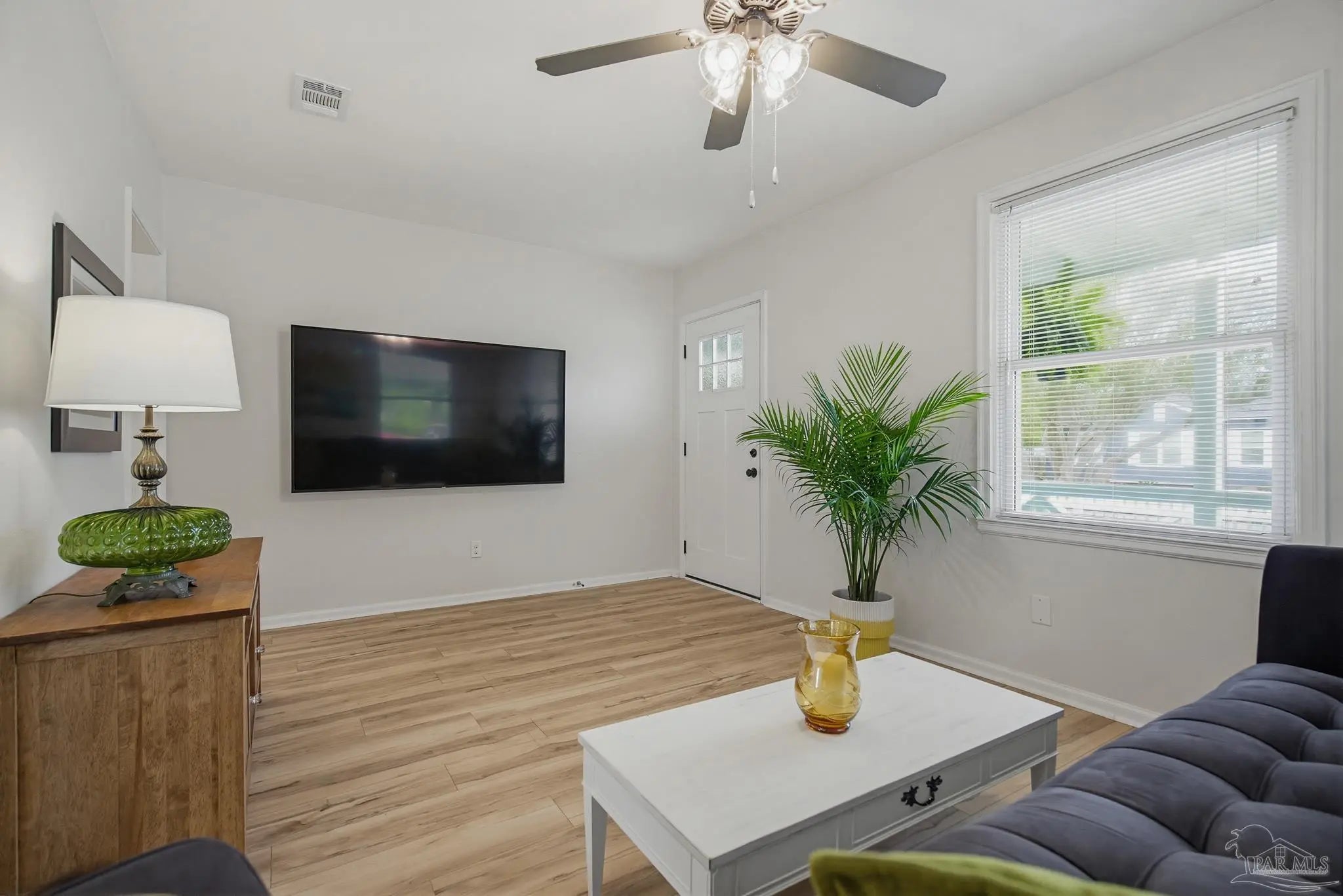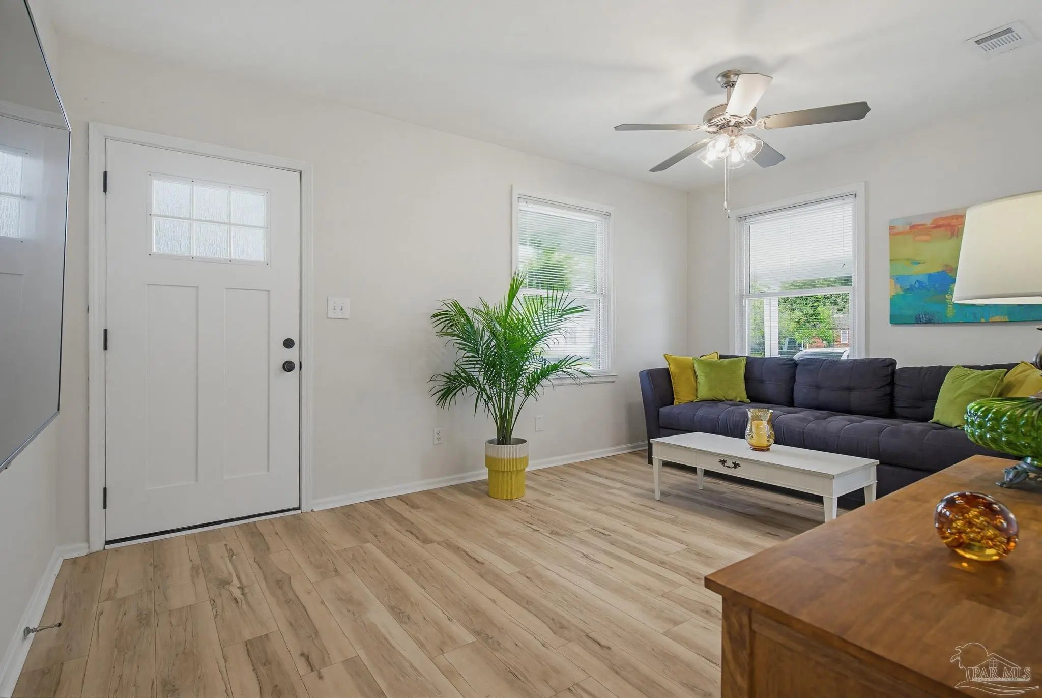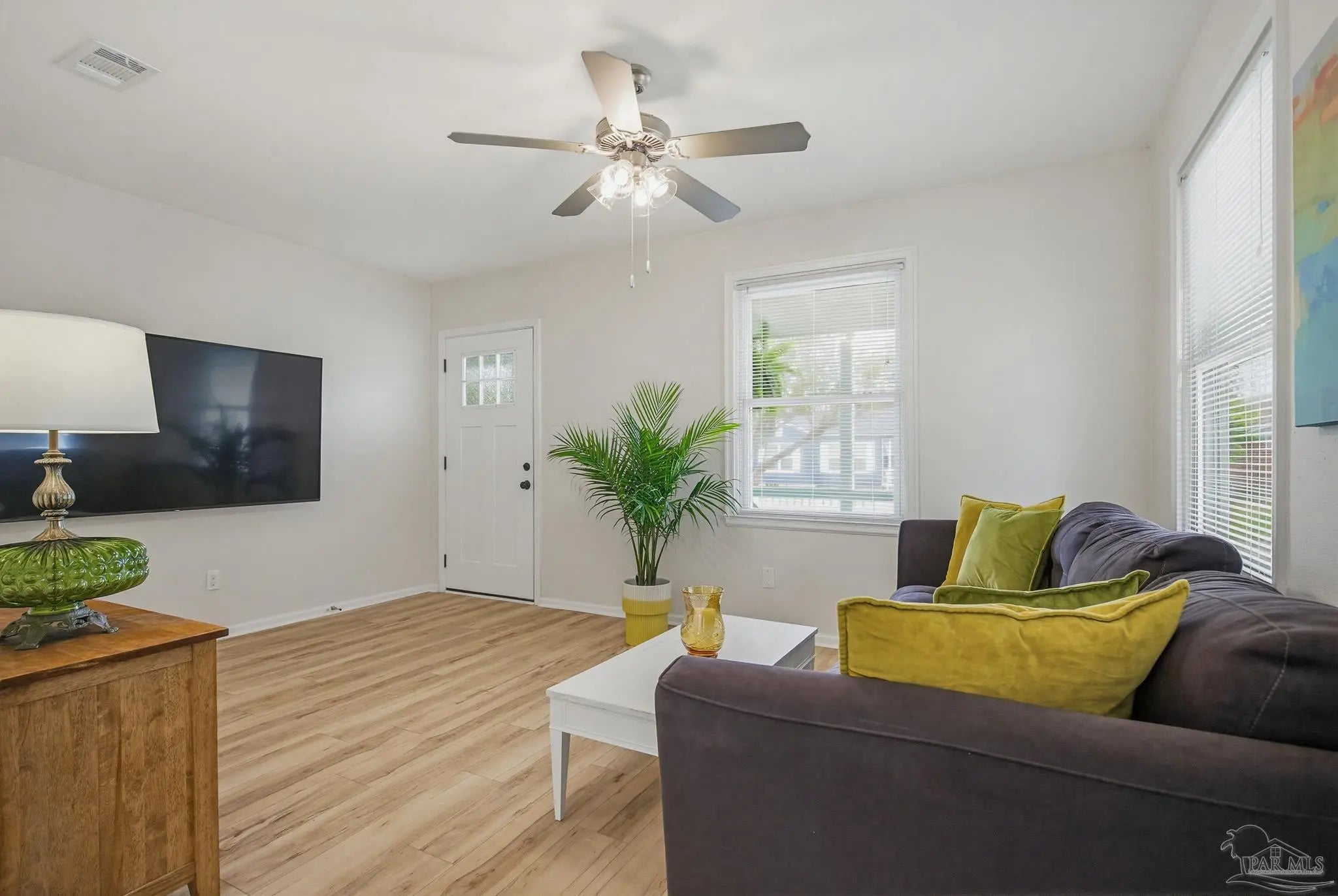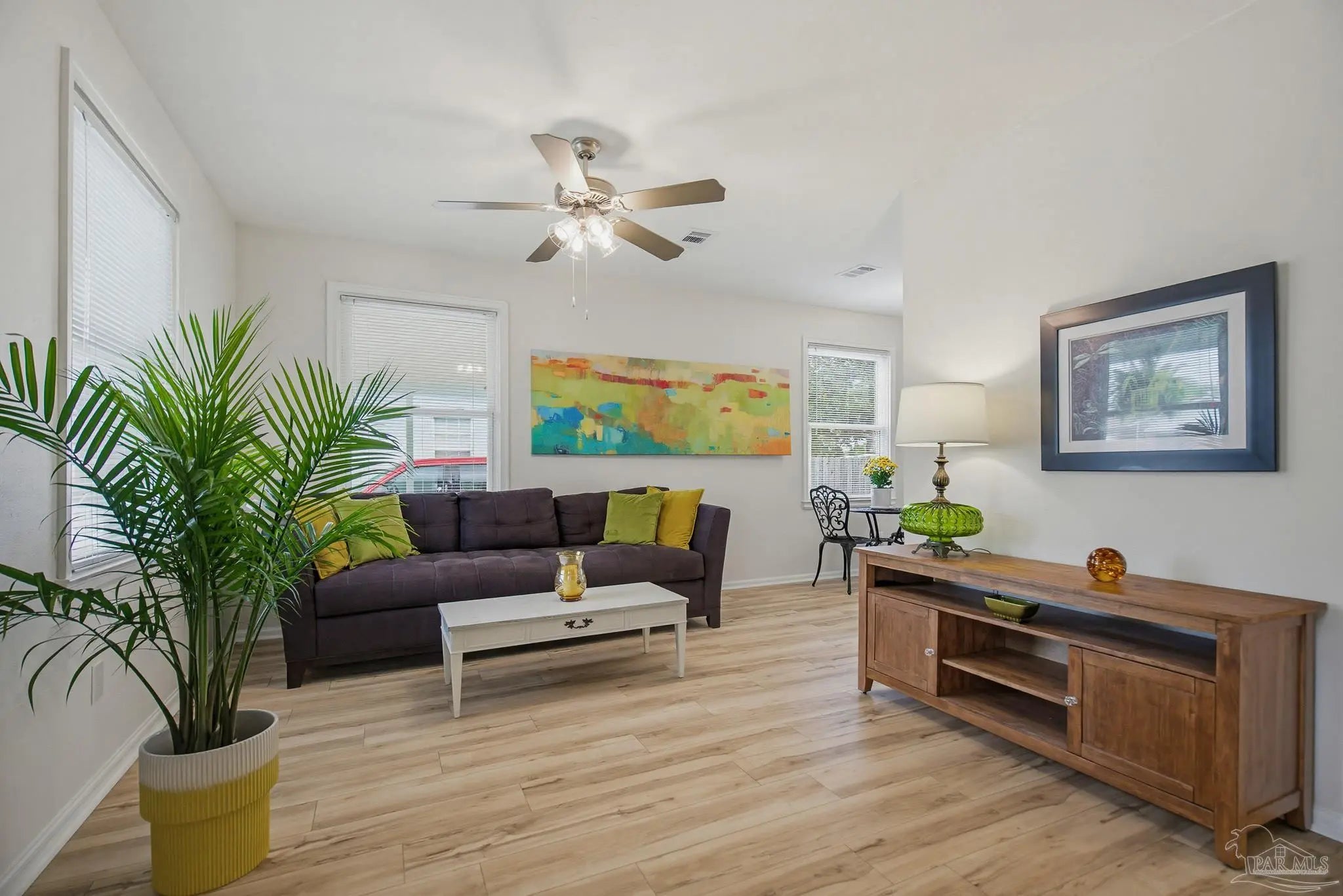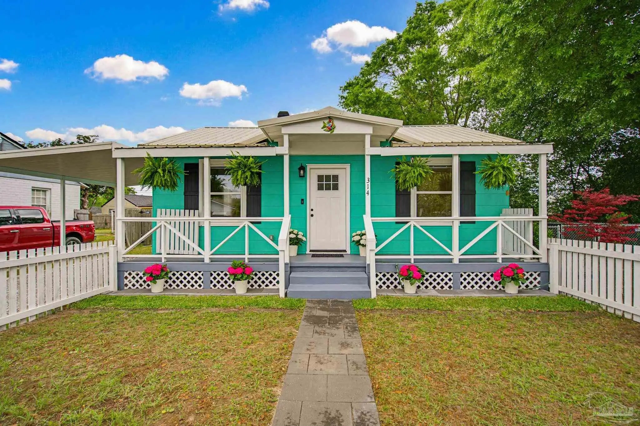 Ready for coastal living in an adorable cottage? Ready for a new buyer, this Navy Point home is close to the beach, good eats, & offers the best of the Pensacola lifestyle - relaxed, vibrant, and proudly local. No flood zone. Bring your fishing boat! This home has parking & a garage with a community boat ramp close by. Watch the Blue Angels practice on your covered porch or tan on your private paved patio. You’ll love this floorplan! Walking inside, you are met with a spacious living room. The wrap around kitchen with gas cooking is adorned by a breakfast nook and a formal dining room. Two bedrooms share a full bathroom with the primary bedroom having an attached half bathroom. The laundry is outside in the workshop. The home and garage have spray foam insulation and have been connected to sewer. Never run out of hot water with the tankless water heater 21’, electric HVAC 22’. And 50 yr metal roof 05’. Do not miss this chance, schedule your private tour today! Owner occupied.