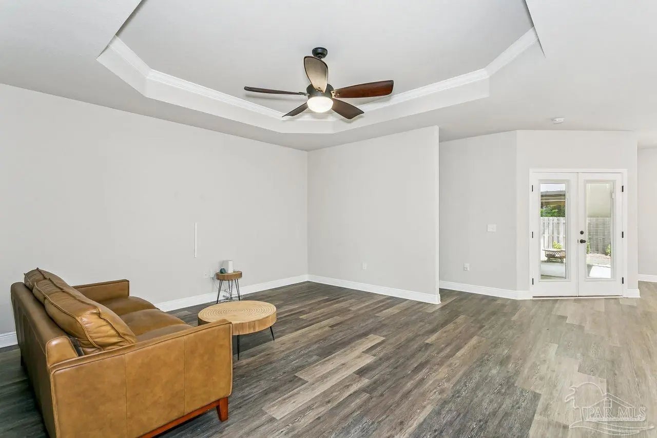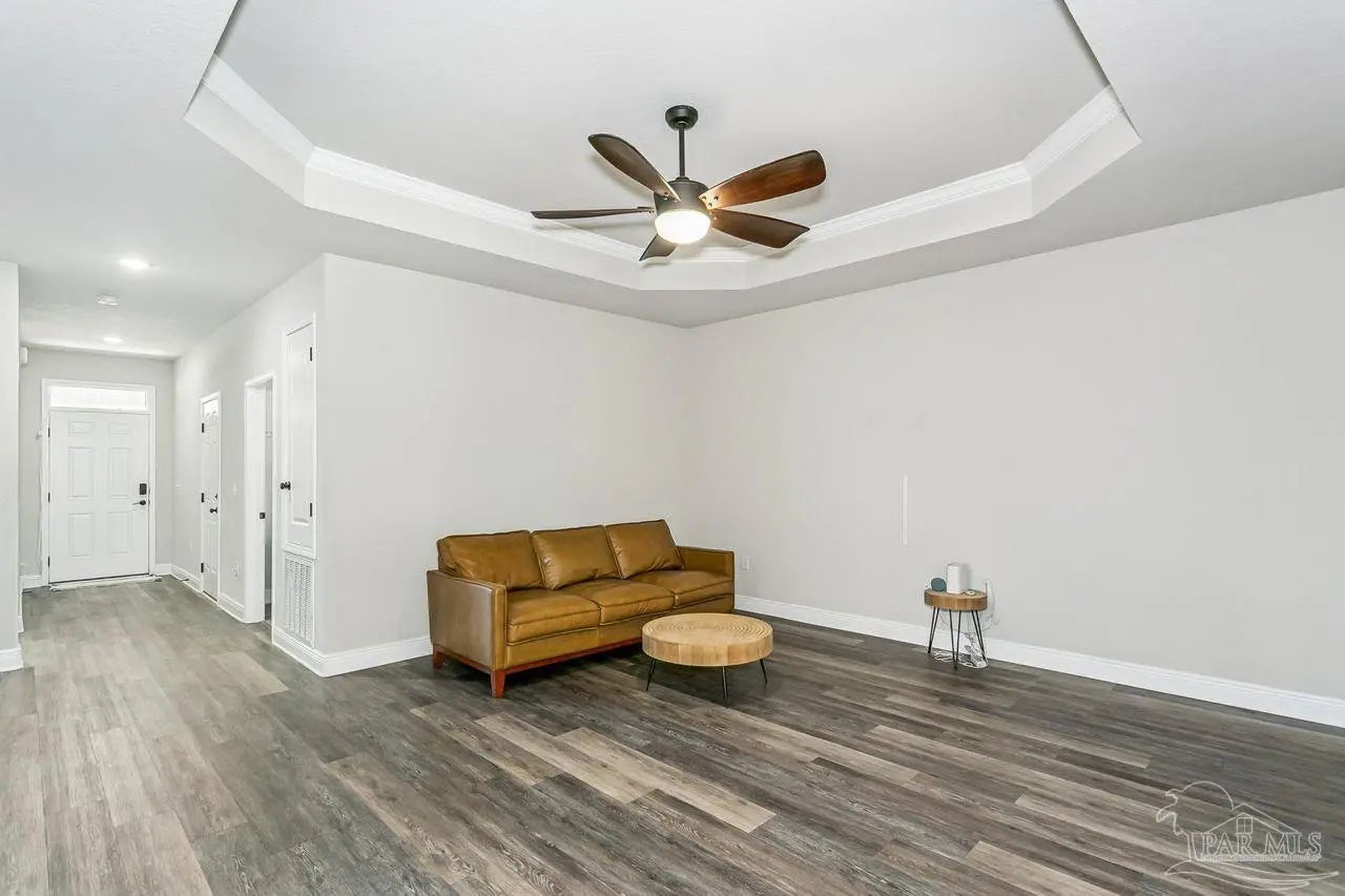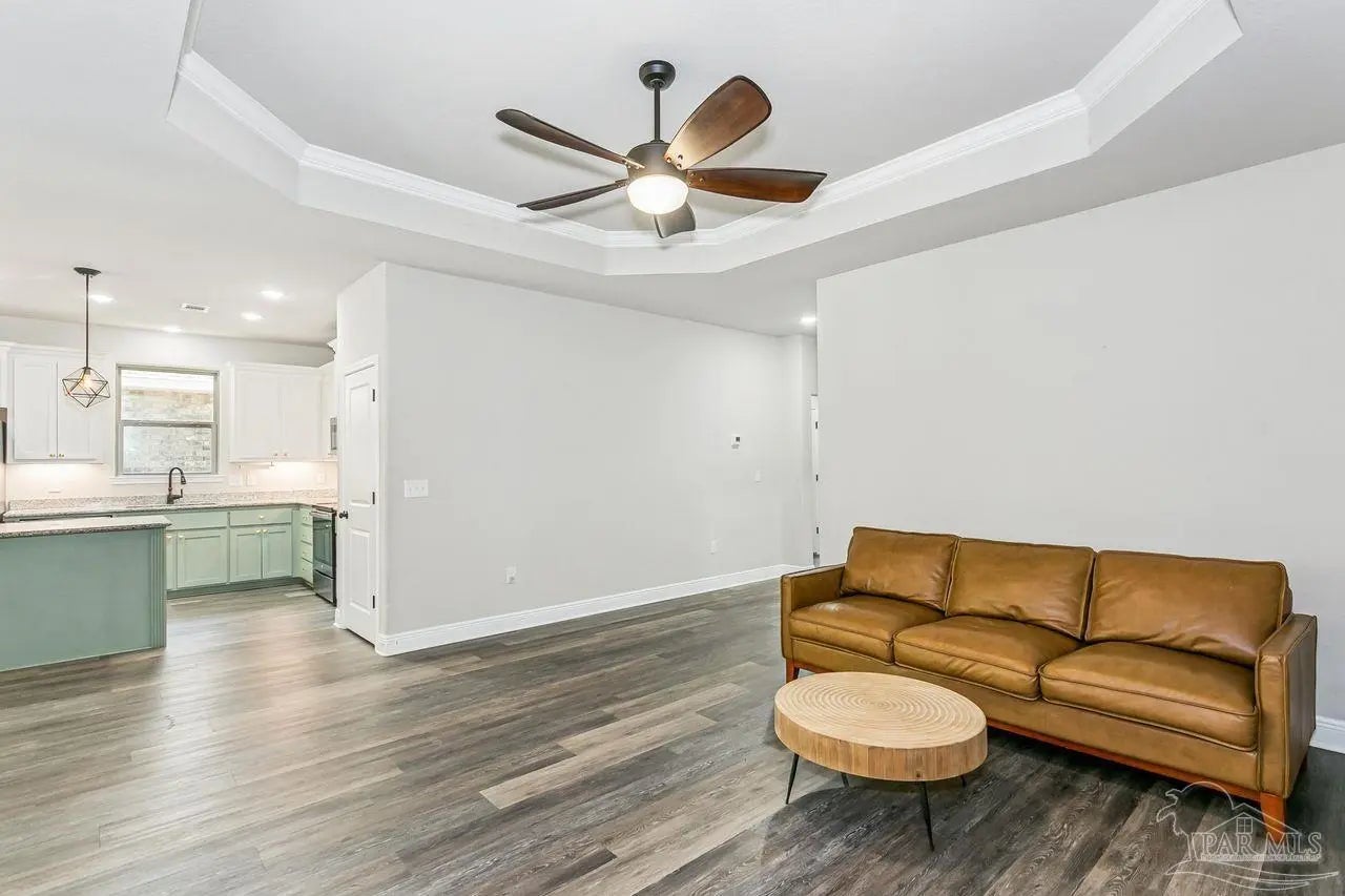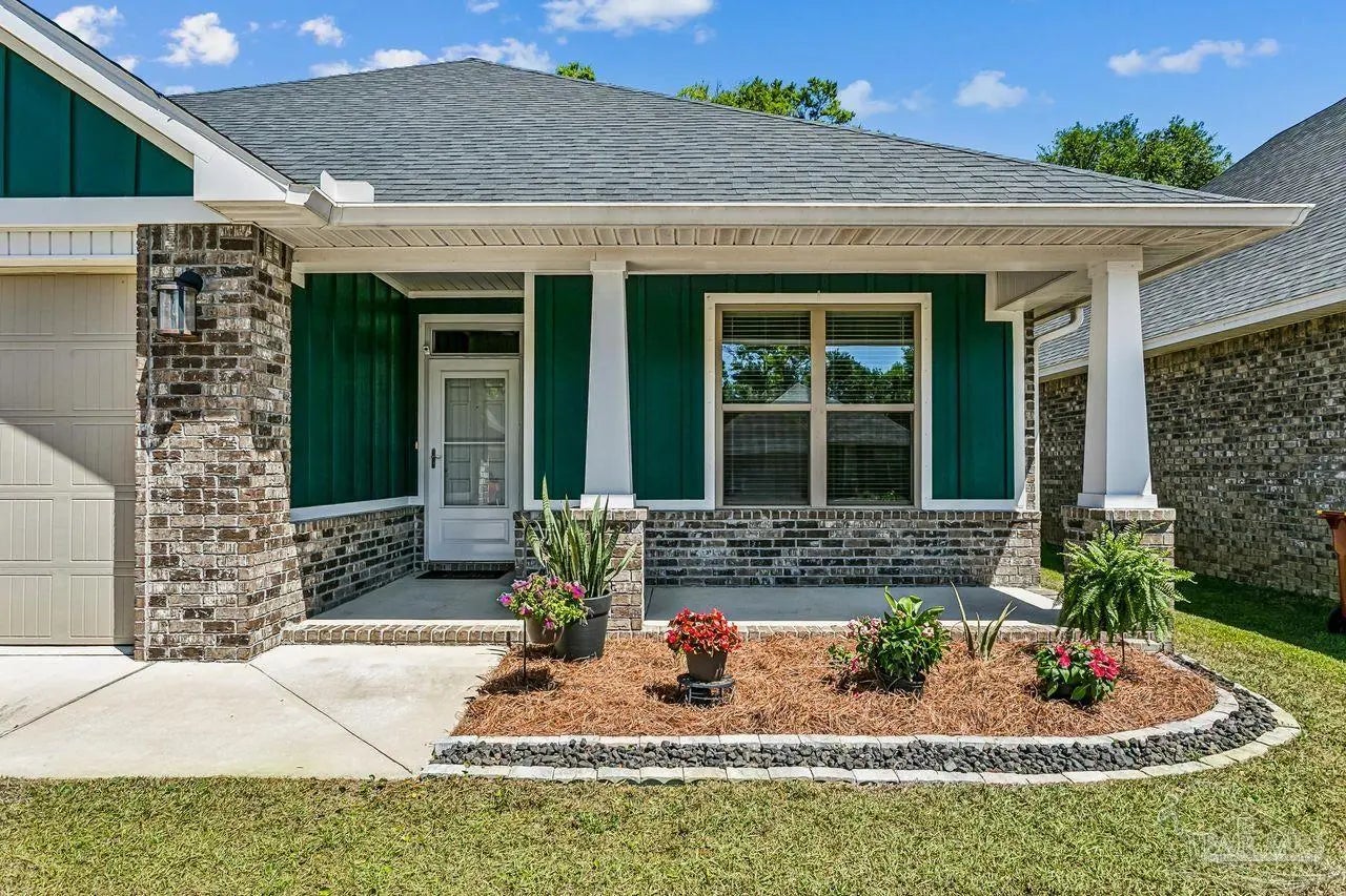 Welcome to this beautifully maintained 1,783 sq. ft. four-side brick home with Hardi accents, offering the perfect blend of durability, style, and comfort. Designed with a desirable split floor plan, this 3-bedroom, 2-bath home provides both privacy and functionality. The spacious living room features a box ceiling with crown molding and ceiling fan, creating an inviting space for relaxing or entertaining. The kitchen is a standout, complete with granite countertops, custom raised panel maple cabinets with soft-close drawers, a large island with power, pantry, garbage disposal, and upgraded LED surface, pendant, and under-cabinet lighting. The primary suite is a true retreat with a box ceiling, crown molding, and ceiling fan, along with a luxurious en-suite bath featuring a double vanity, garden tub, separate tiled shower, water closet, and a large walk-in closet. Additional bedrooms are generously sized with ample storage. Enjoy a mix of updated flooring throughout, including new carpet in all bedrooms, tile in bathrooms and laundry room, and Cortec Plus wood-look flooring in the main living areas. Step outside to a fenced backyard with a covered porch, perfect for outdoor gatherings or quiet evenings. Conveniently centrally located, this home offers easy access to shopping, dining, and everyday amenities.