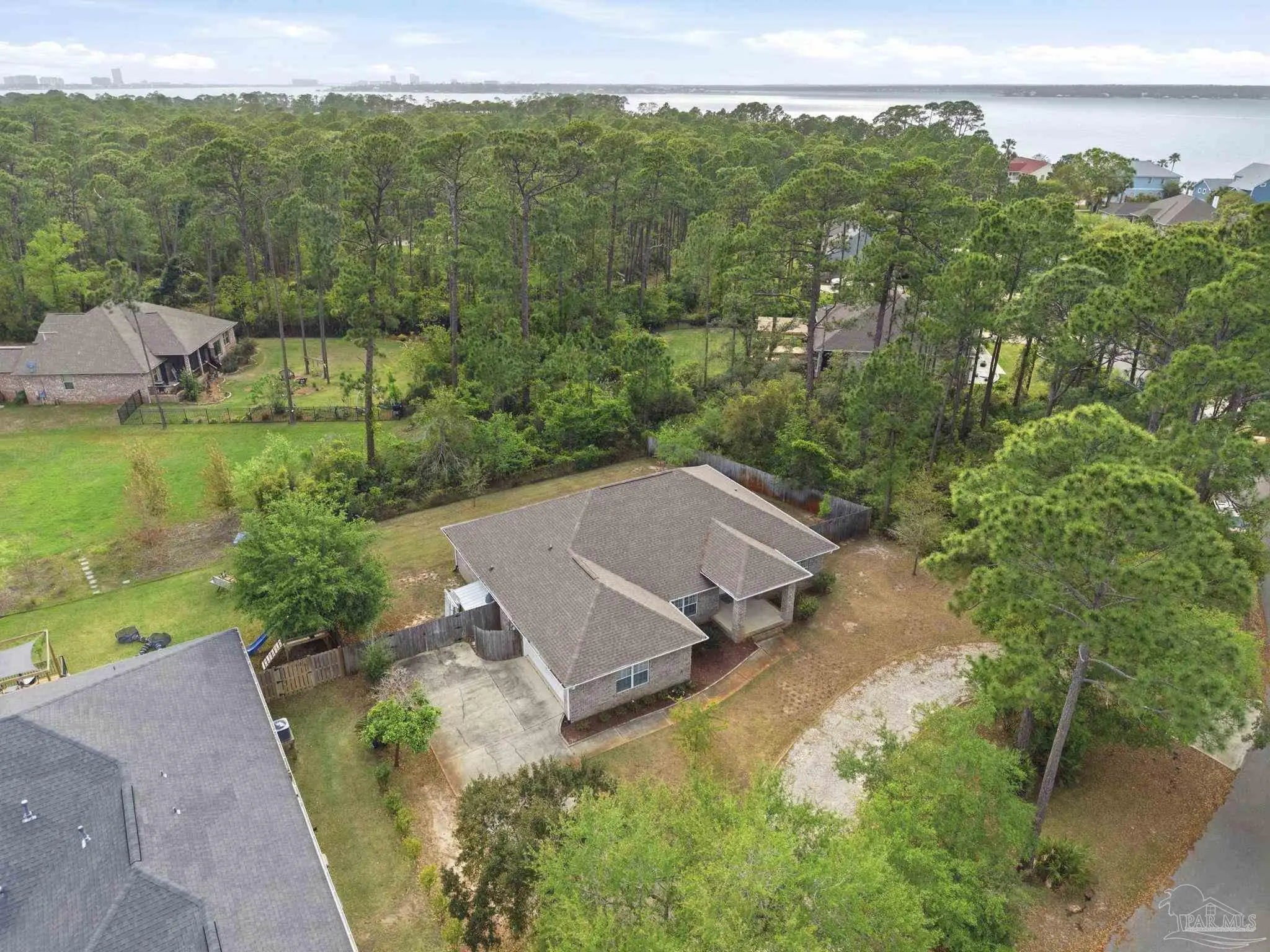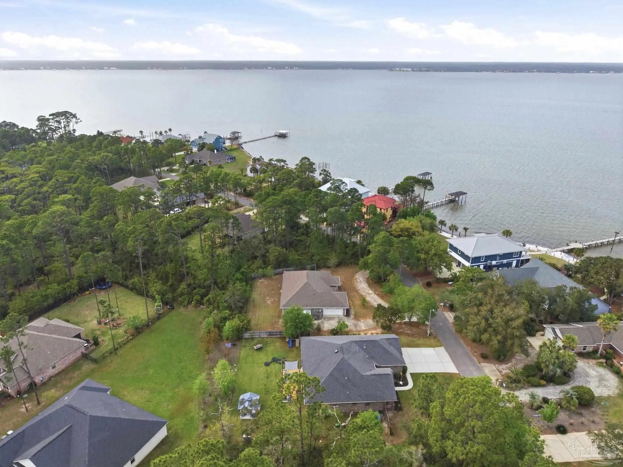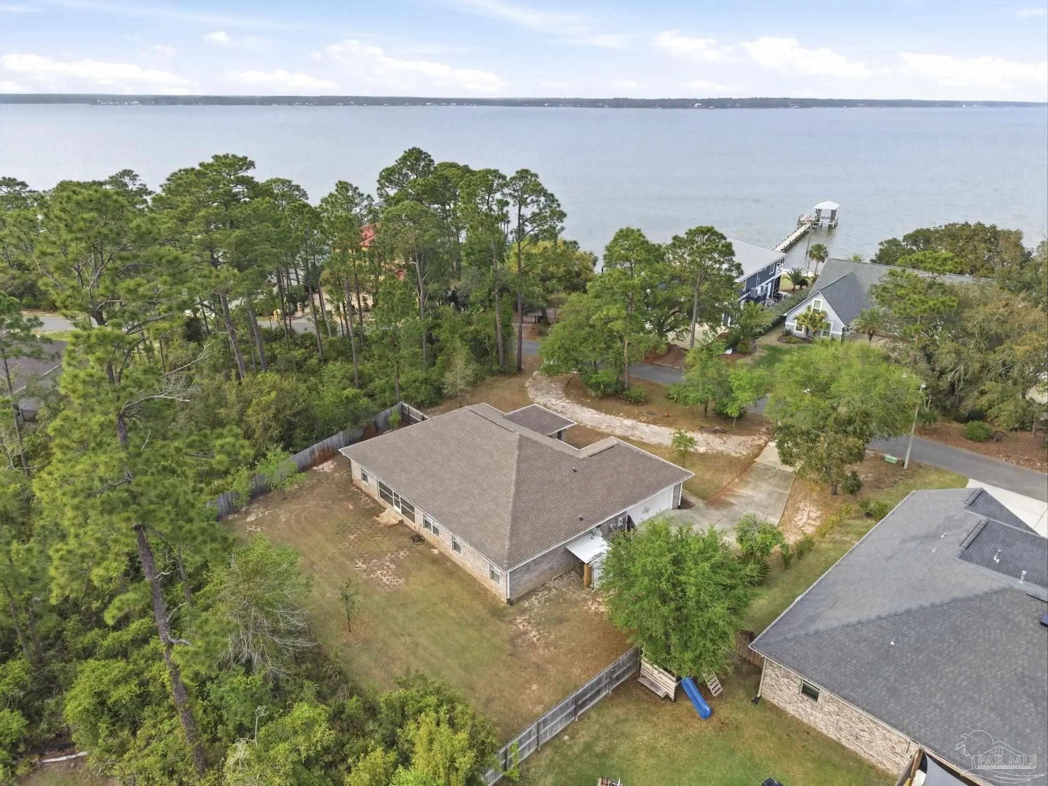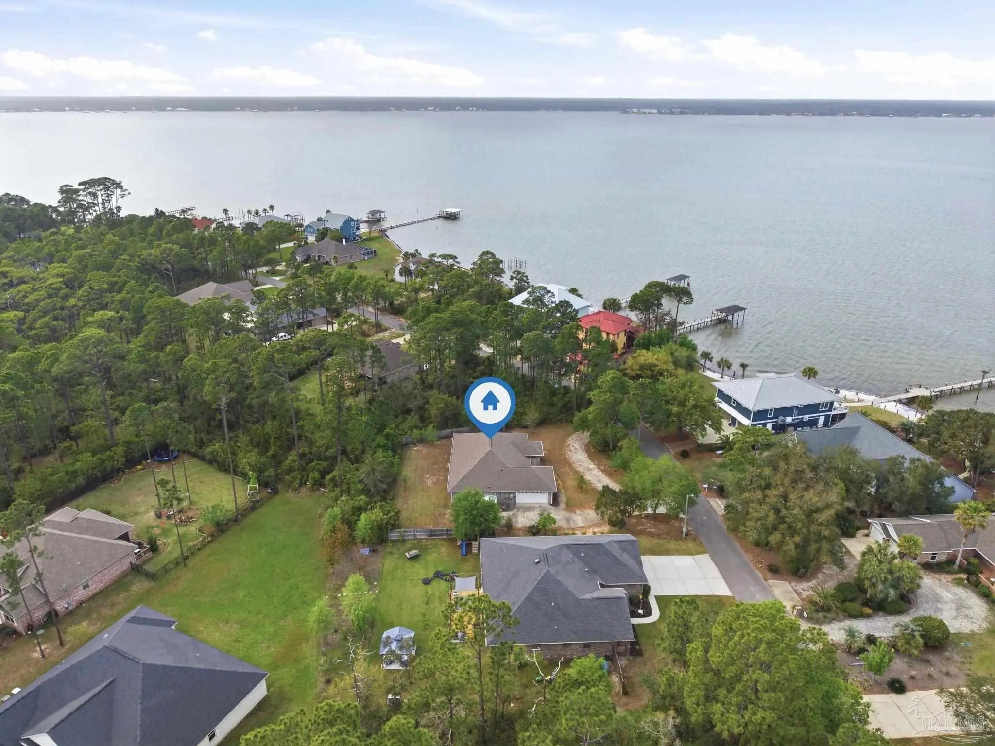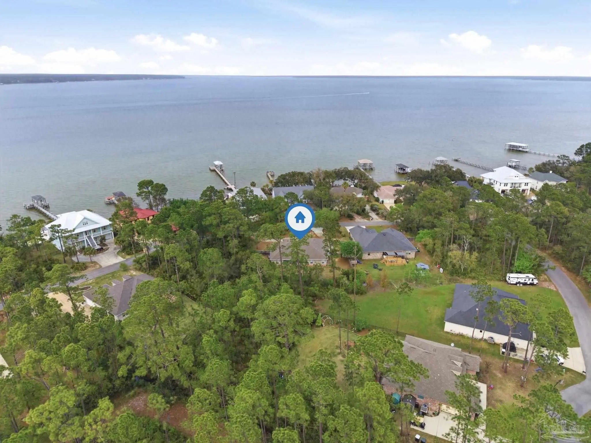 Stunning bay-view brick home on Innerarity Island in a gated, low-density community. Built in 2004, this single-level house has large windows and 10-foot sliding doors that bring in lots of light and beautiful water views. The open living area and separate den give plenty of space for family and guests. The roomy master suite has a tray ceiling, walk-in closet, garden tub, separate shower, and double sinks. The split floor plan gives privacy between bedrooms. Enjoy the screened rear porch (about 178 sq ft) for outdoor relaxing and watching wildlife like deer, foxes, and birds. The home has a double garage, floored attic storage, tile floors in main areas, ceiling fans in every room, and rounded interior corners for a smooth look. A sprinkler system and a wood fence with a 10-foot drive gate add convenience and privacy. It’s just a short walk to the community park on Perdido Bay with a private pier, playground, pickleball courts, and picnic areas. The house sits at about a 2-foot flood elevation and has not flooded since it was built. Schedule a showing to see the water view and peaceful island living.