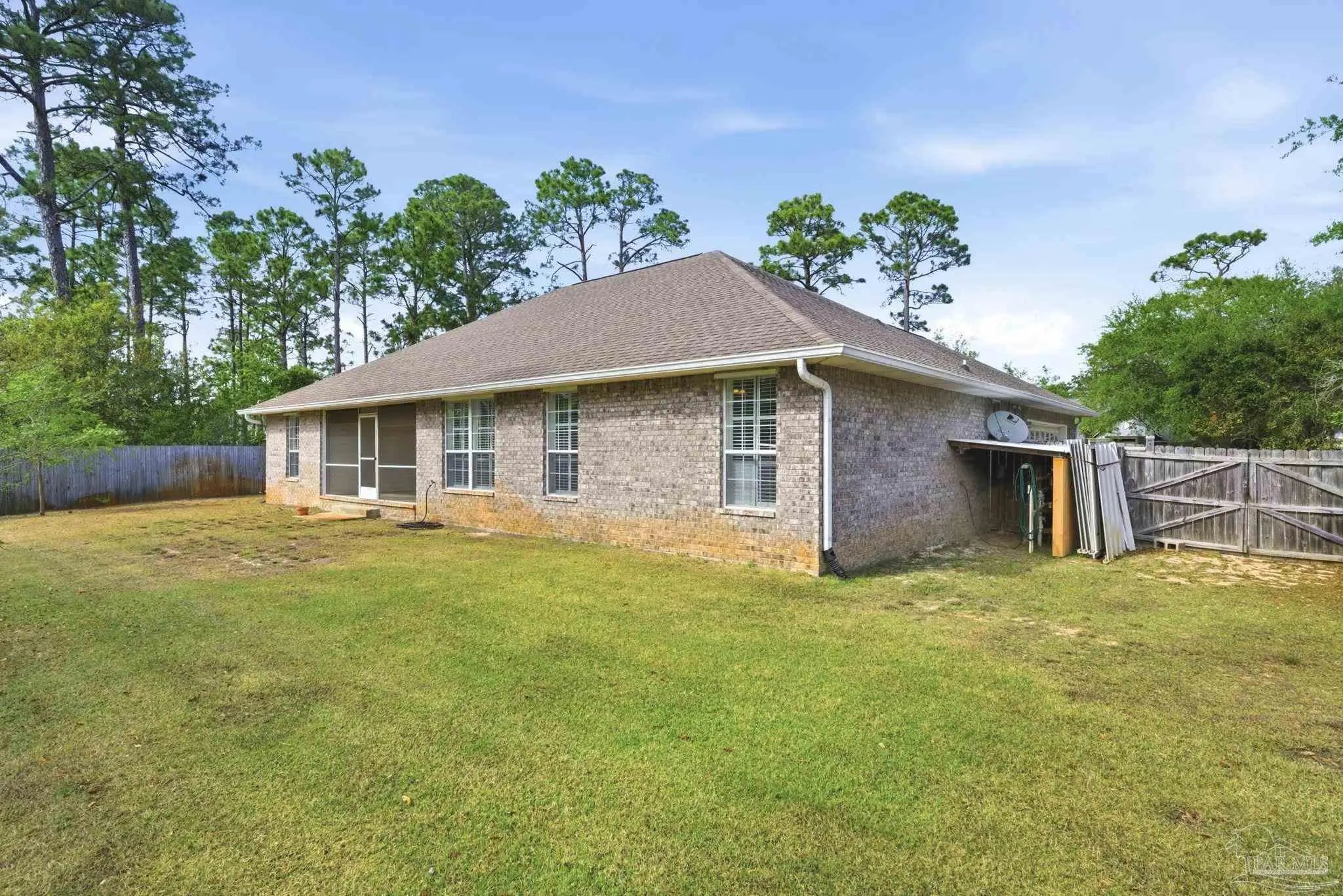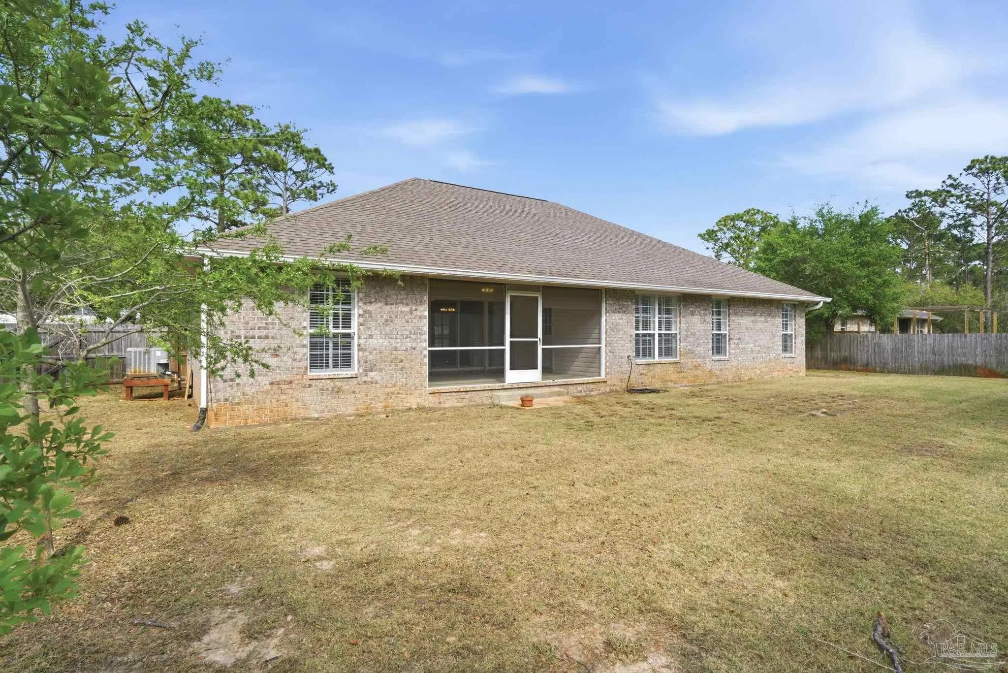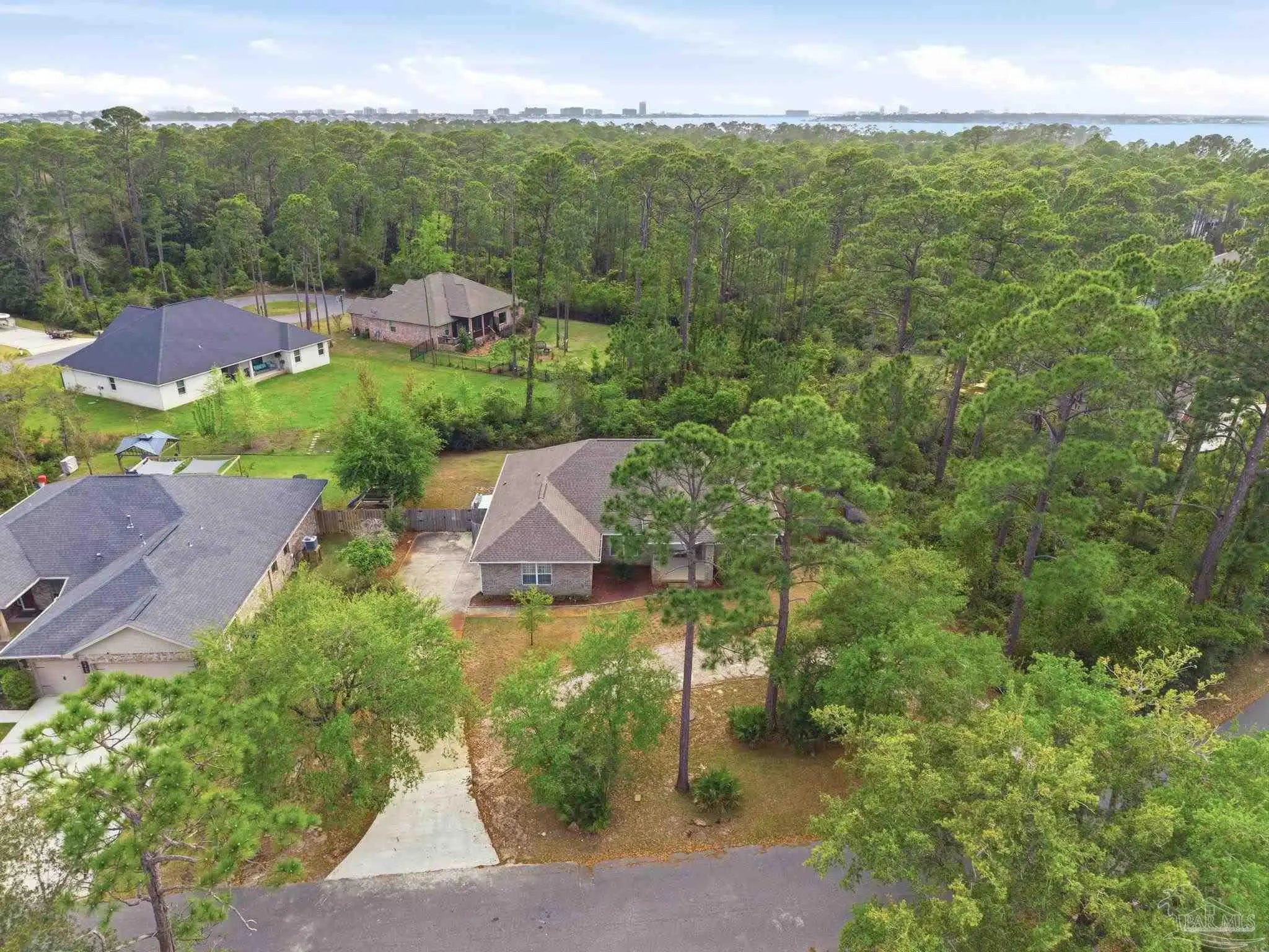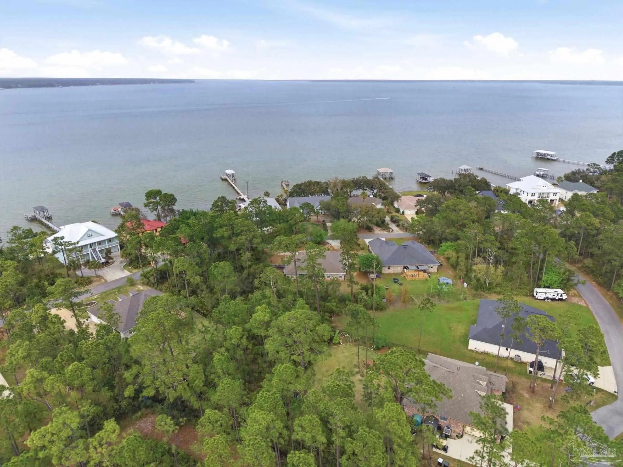 Stunning bay-view brick home on Innerarity Island in a gated, low-density community. Built in 2004, this single-level house has large windows and 10-foot sliding doors that bring in lots of light and beautiful water views. The open living area and separate den give plenty of space for family and guests. The roomy master suite has a tray ceiling, walk-in closet, garden tub, separate shower, and double sinks. The split floor plan gives privacy between bedrooms. Enjoy the screened rear porch (about 178 sq ft) for outdoor relaxing and watching wildlife like deer, foxes, and birds. The home has a double garage, floored attic storage, tile floors in main areas, ceiling fans in every room, and rounded interior corners for a smooth look. A sprinkler system and a wood fence with a 10-foot drive gate add convenience and privacy. It’s just a short walk to the community park on Perdido Bay with a private pier, playground, pickleball courts, and picnic areas. The house sits at about a 2-foot flood elevation and has not flooded since it was built. Schedule a showing to see the water view and peaceful island living.