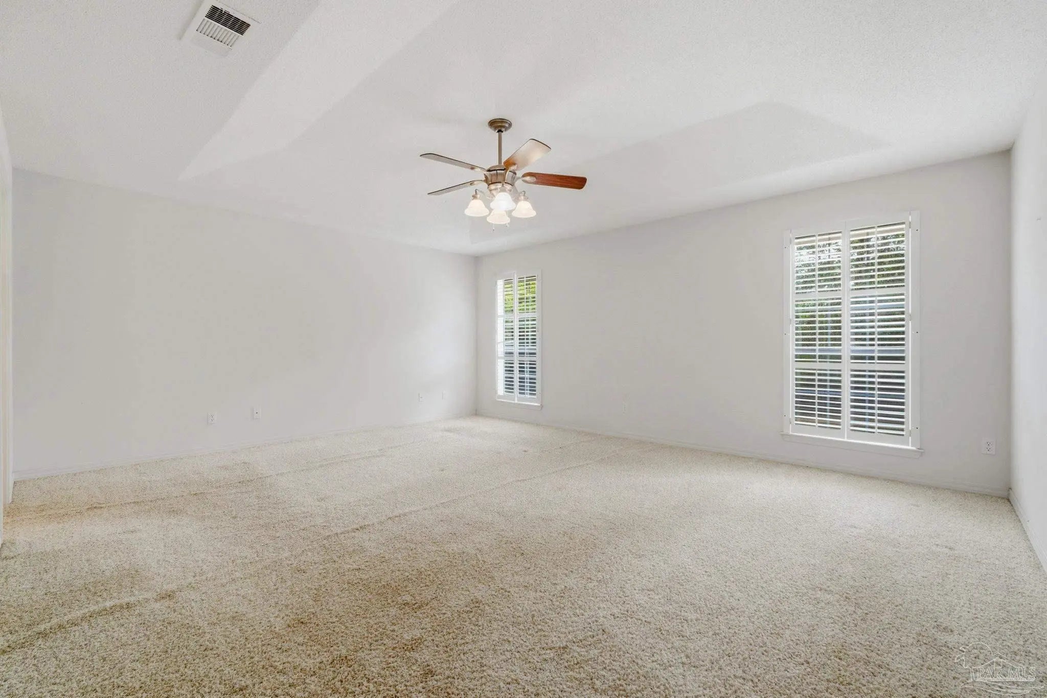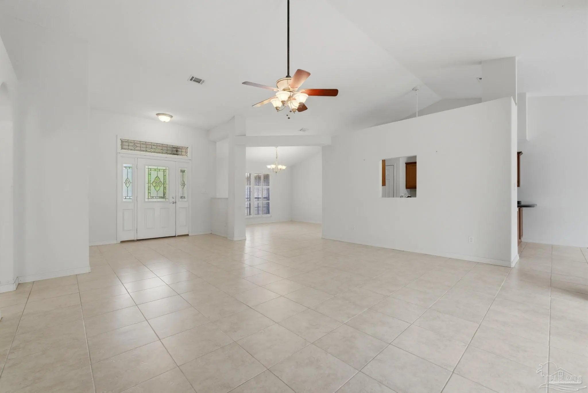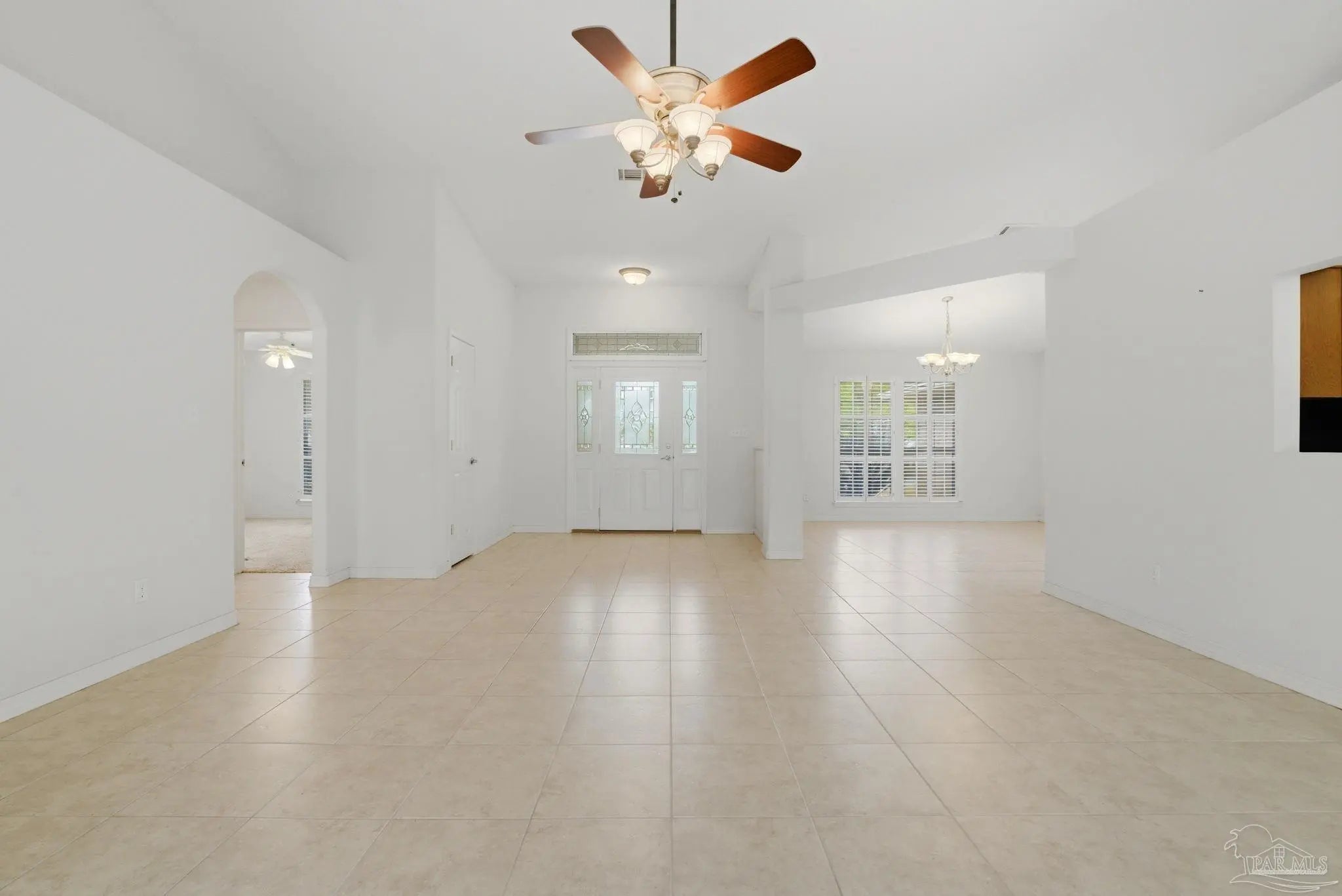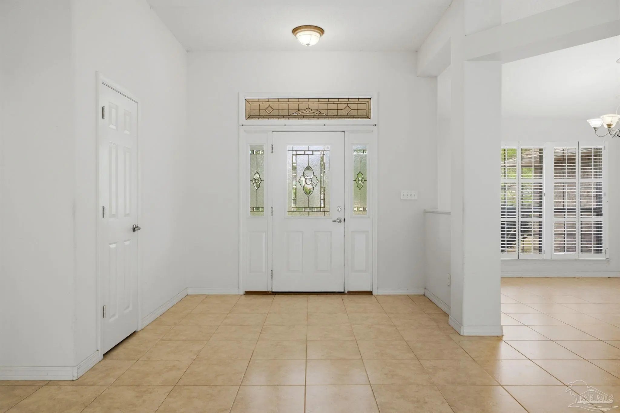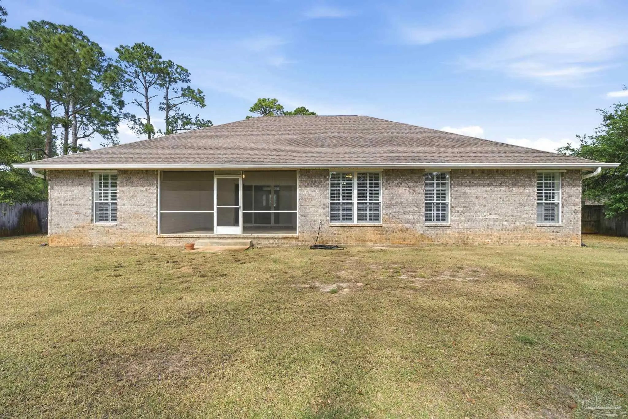 Stunning bay-view brick home on Innerarity Island in a gated, low-density community. Built in 2004, this single-level house has large windows and 10-foot sliding doors that bring in lots of light and beautiful water views. The open living area and separate den give plenty of space for family and guests. The roomy master suite has a tray ceiling, walk-in closet, garden tub, separate shower, and double sinks. The split floor plan gives privacy between bedrooms. Enjoy the screened rear porch (about 178 sq ft) for outdoor relaxing and watching wildlife like deer, foxes, and birds. The home has a double garage, floored attic storage, tile floors in main areas, ceiling fans in every room, and rounded interior corners for a smooth look. A sprinkler system and a wood fence with a 10-foot drive gate add convenience and privacy. It’s just a short walk to the community park on Perdido Bay with a private pier, playground, pickleball courts, and picnic areas. The house sits at about a 2-foot flood elevation and has not flooded since it was built. Schedule a showing to see the water view and peaceful island living.