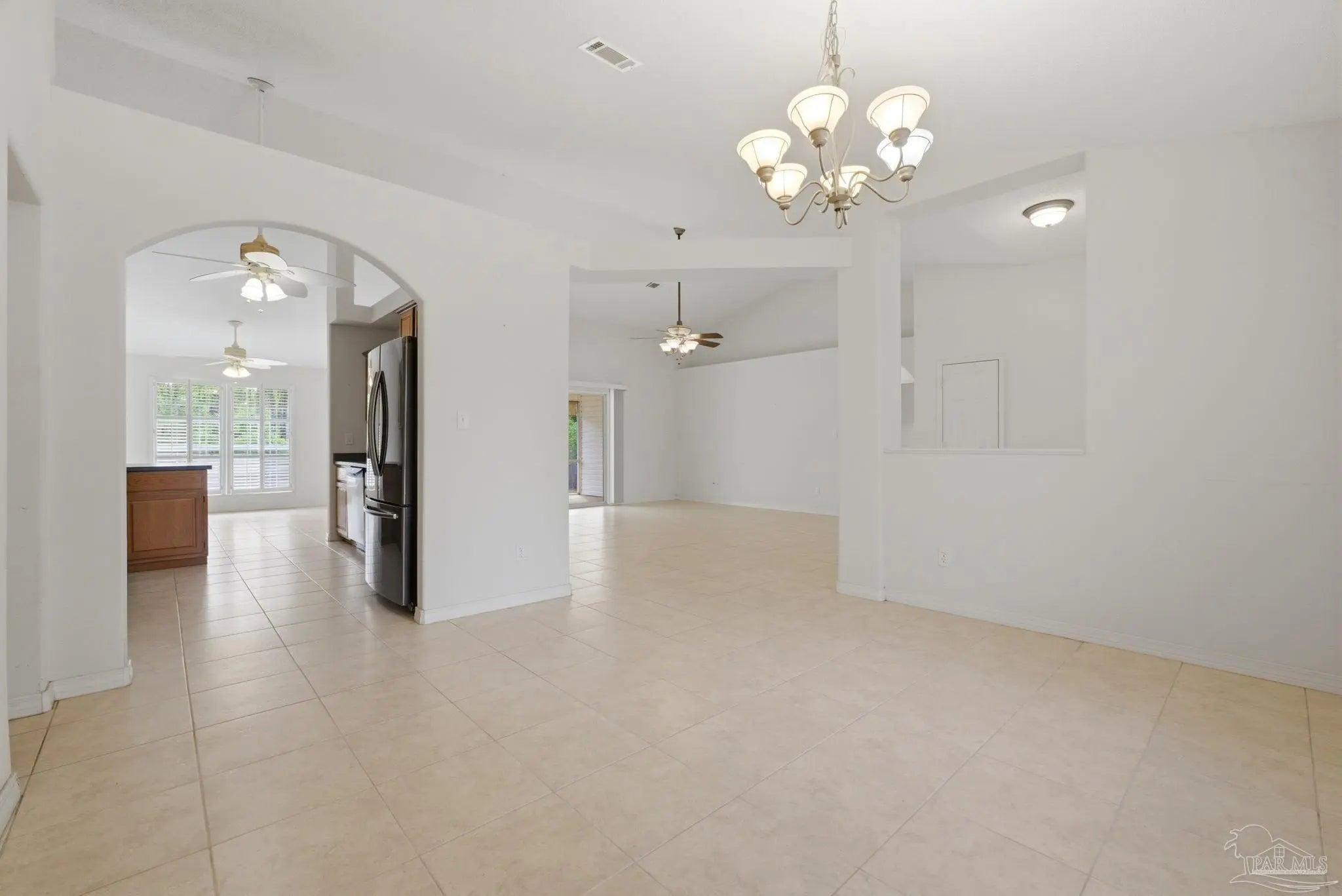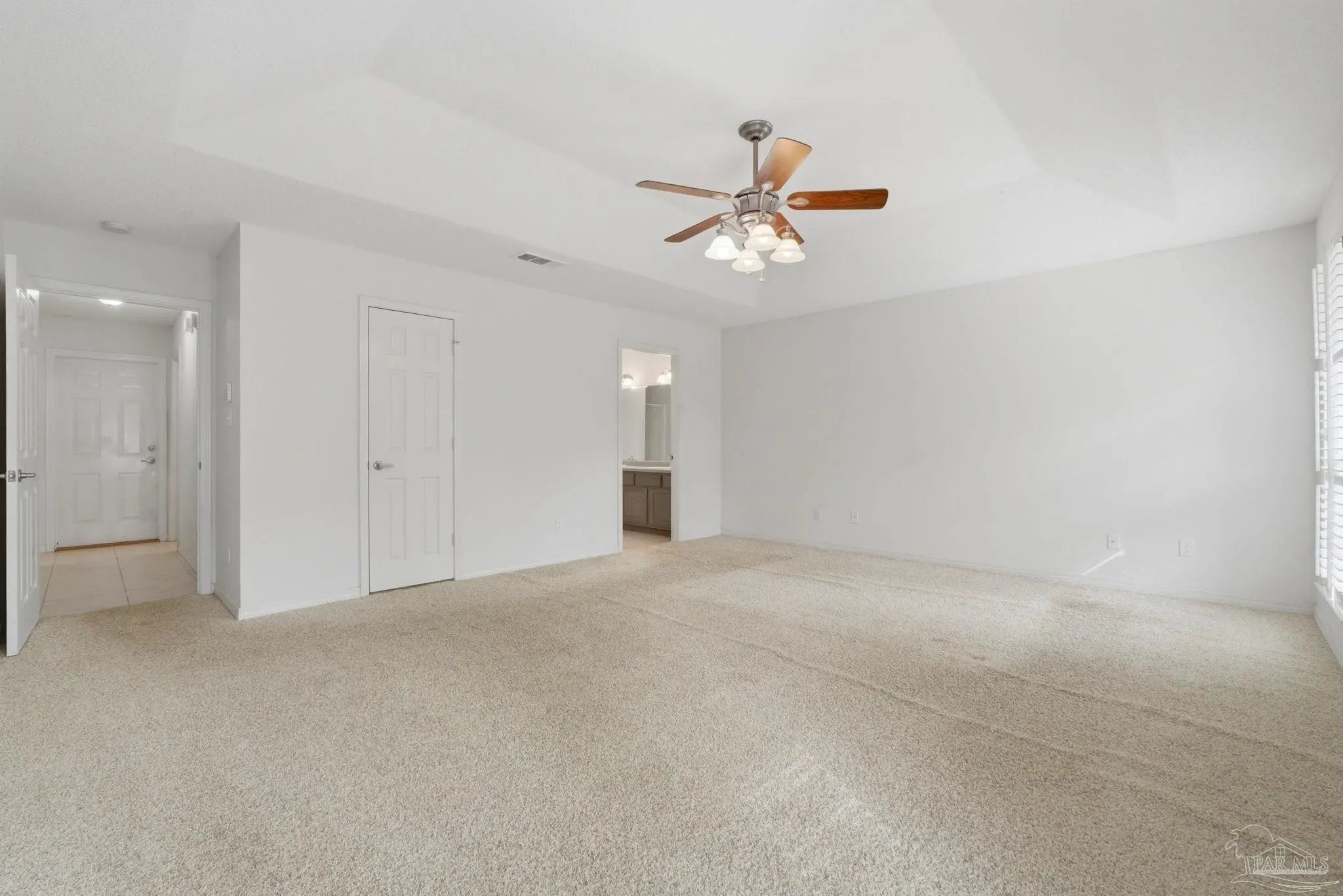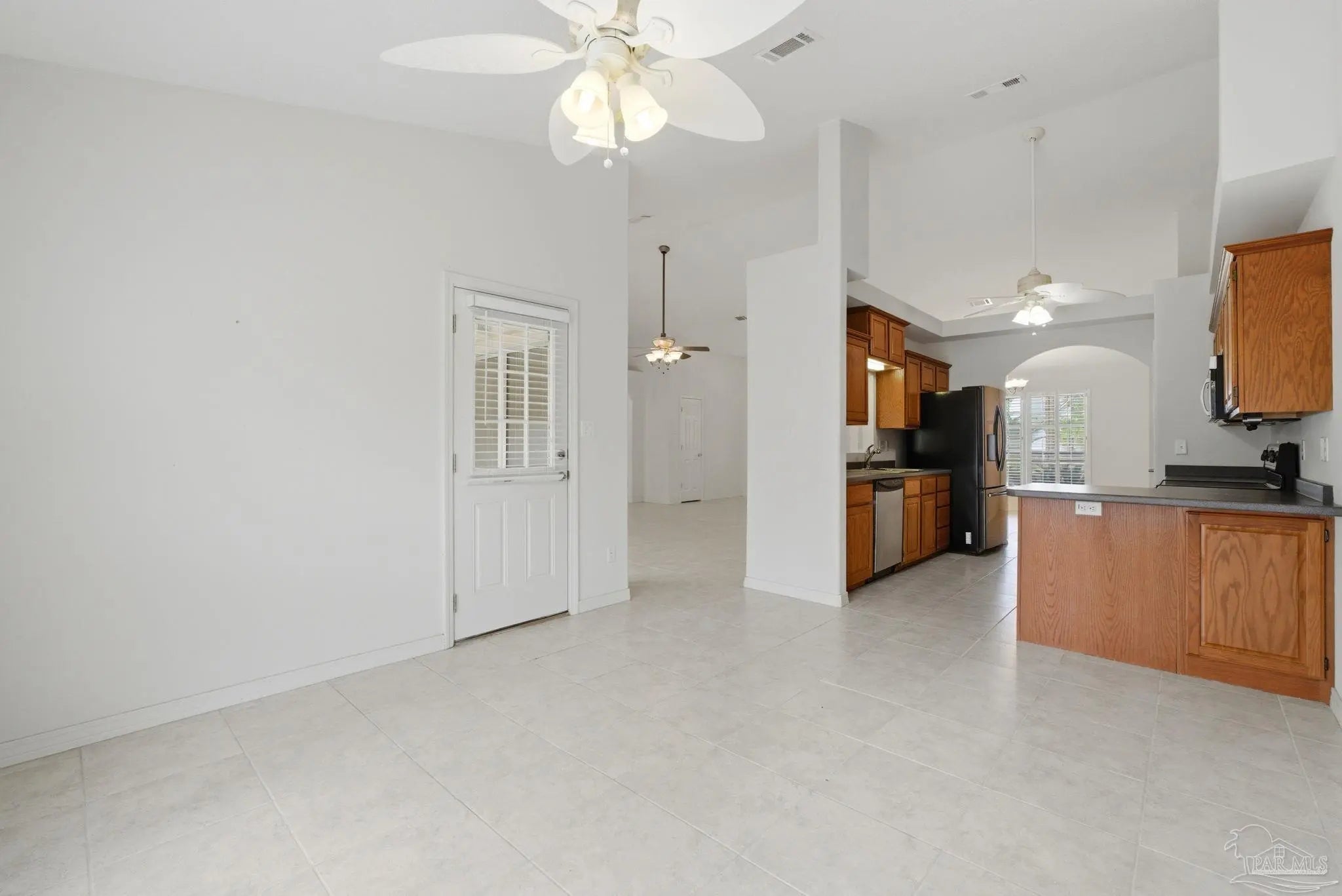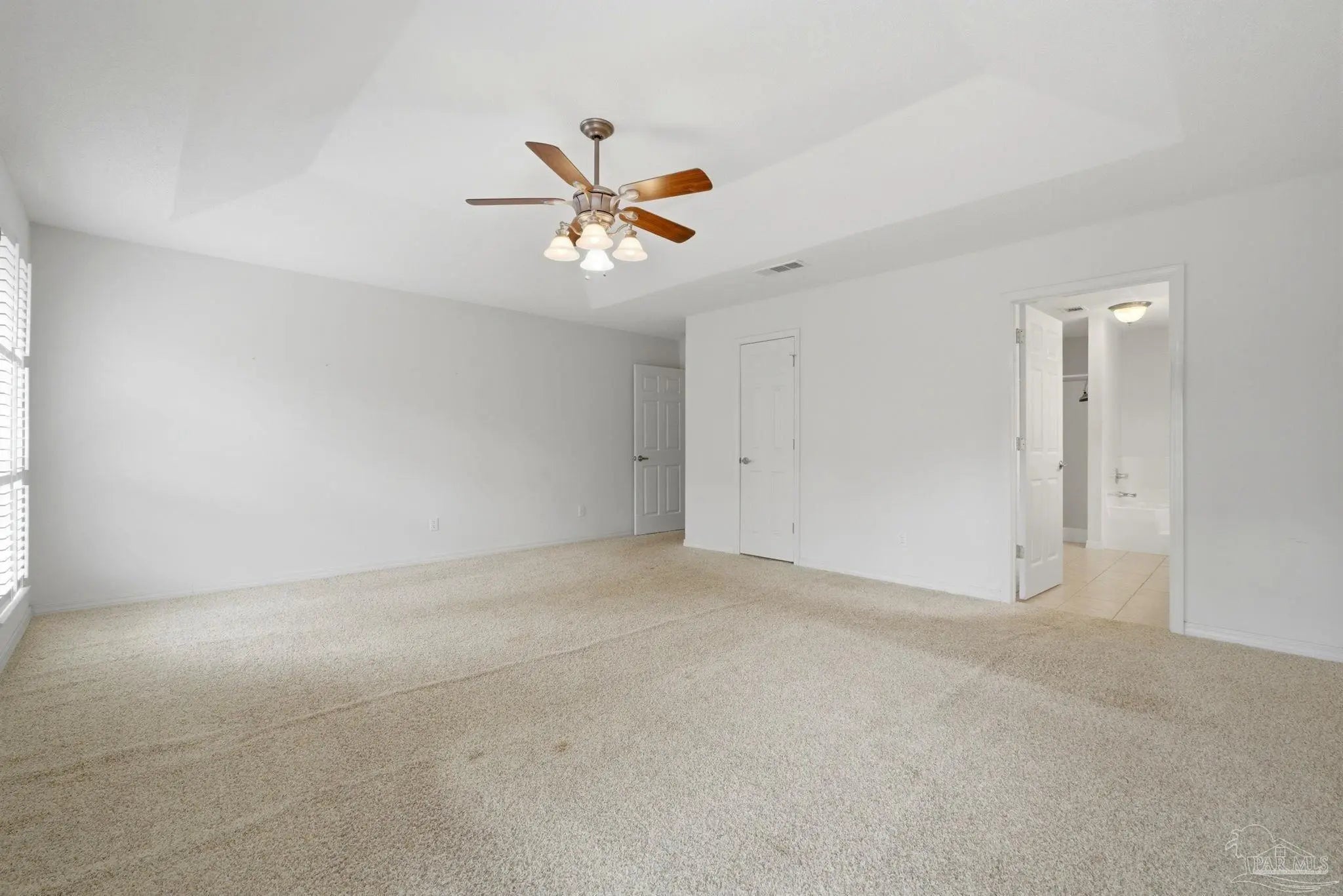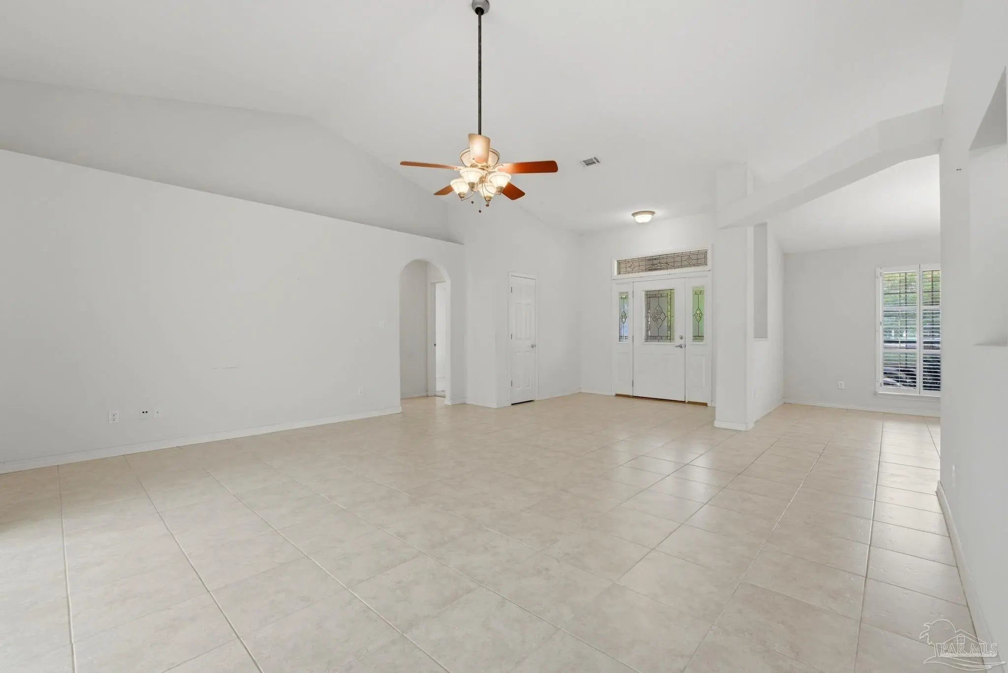 Stunning bay-view brick home on Innerarity Island in a gated, low-density community. Built in 2004, this single-level house has large windows and 10-foot sliding doors that bring in lots of light and beautiful water views. The open living area and separate den give plenty of space for family and guests. The roomy master suite has a tray ceiling, walk-in closet, garden tub, separate shower, and double sinks. The split floor plan gives privacy between bedrooms. Enjoy the screened rear porch (about 178 sq ft) for outdoor relaxing and watching wildlife like deer, foxes, and birds. The home has a double garage, floored attic storage, tile floors in main areas, ceiling fans in every room, and rounded interior corners for a smooth look. A sprinkler system and a wood fence with a 10-foot drive gate add convenience and privacy. It’s just a short walk to the community park on Perdido Bay with a private pier, playground, pickleball courts, and picnic areas. The house sits at about a 2-foot flood elevation and has not flooded since it was built. Schedule a showing to see the water view and peaceful island living.
