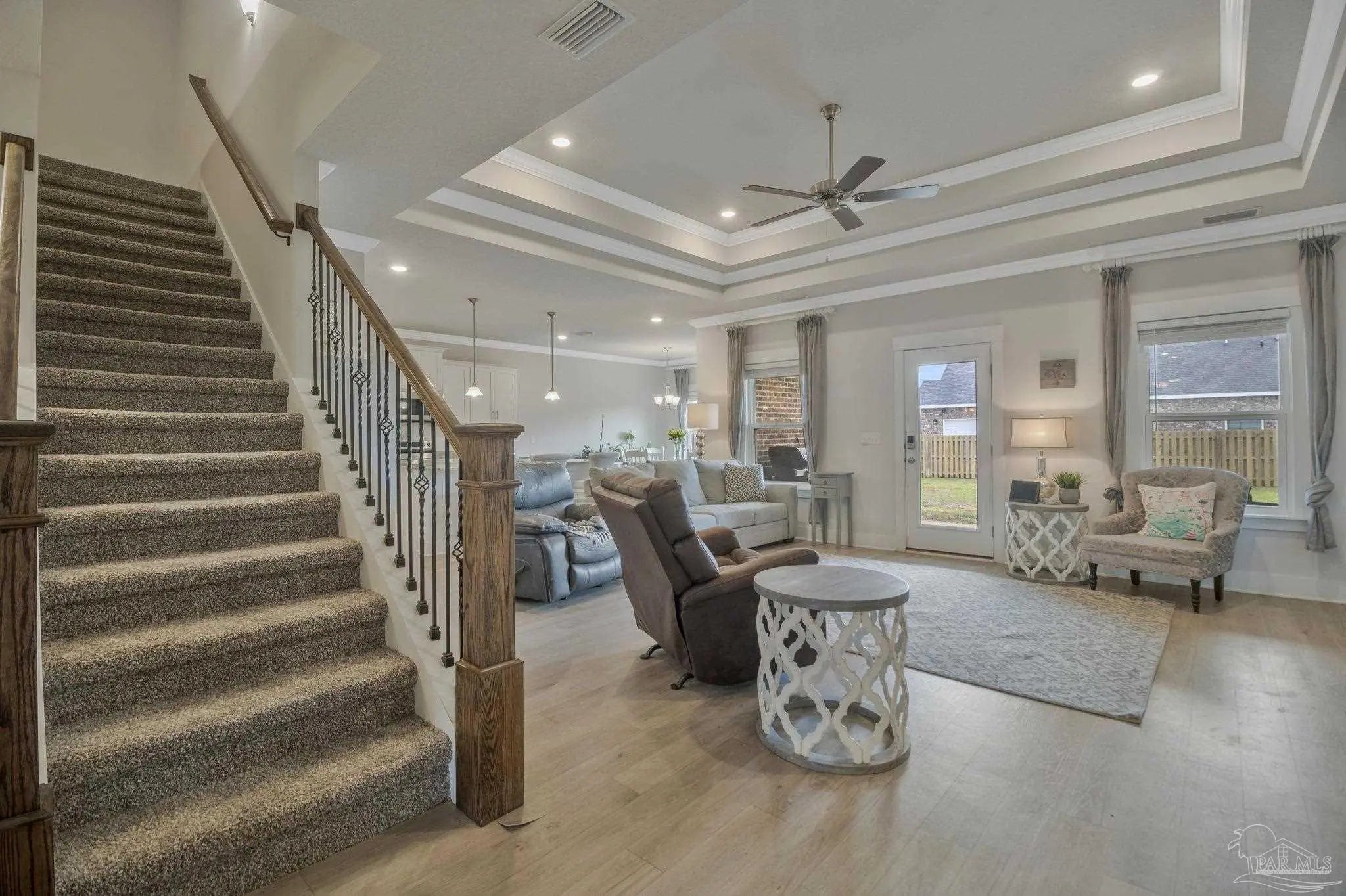 - Baseboards, Ceiling Fan(s), Crown Molding, High Ceilings, Bonus Room