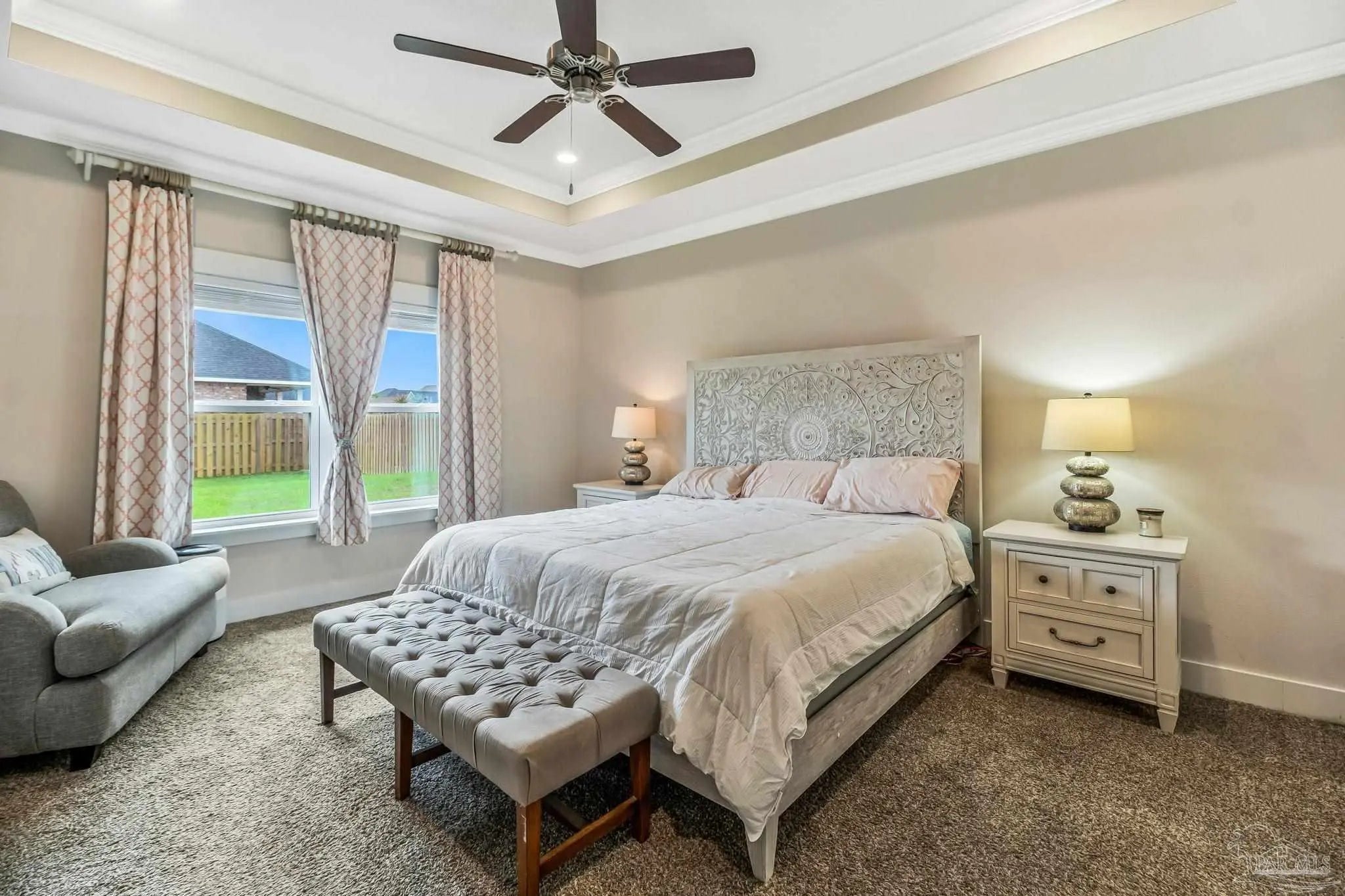 Beautiful 4-bedroom, 3-bath home in Carrington offering a split-bedroom, open floor plan and stylish finishes throughout. Built in 2022, this home features granite countertops in the kitchen and baths, stainless steel appliances, LVP flooring throughout the main living areas, and carpet in the bedrooms. Enjoy the convenience of a newer home with HVAC, water heater, and roof all being only 4 years old. The front door opens into a charming entryway, which leads to a formal dining room as well as an oversized great room. The floorplan offers extra privacy by splitting the bedrooms to different parts of the house. The private primary suite is a true retreat with a tray ceiling, while the spacious primary bath includes a double vanity, walk-in shower, drop-in tub, and beautiful tile work. Crown molding runs throughout the home, adding an elegant touch to every space. The large dining room is perfect for hosting gatherings, and upstairs you’ll find a generous open area ideal for a playroom, gym, media room, or flexible living space. Outside, enjoy a covered back porch made for entertaining, a large backyard with fully enclosed privacy fence and gate, and the convenience of an enormous 3-car garage with plenty of room for vehicles and storage. Carrington residents also enjoy community tennis and pickleball courts. They also will have a clubhouse and pool to be built/open soon!