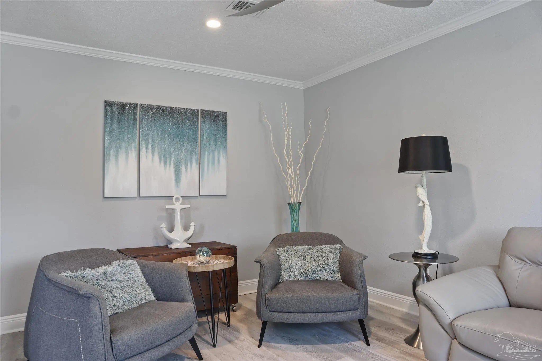- Baseboards, Ceiling Fan(s), Crown Molding, High Speed Internet