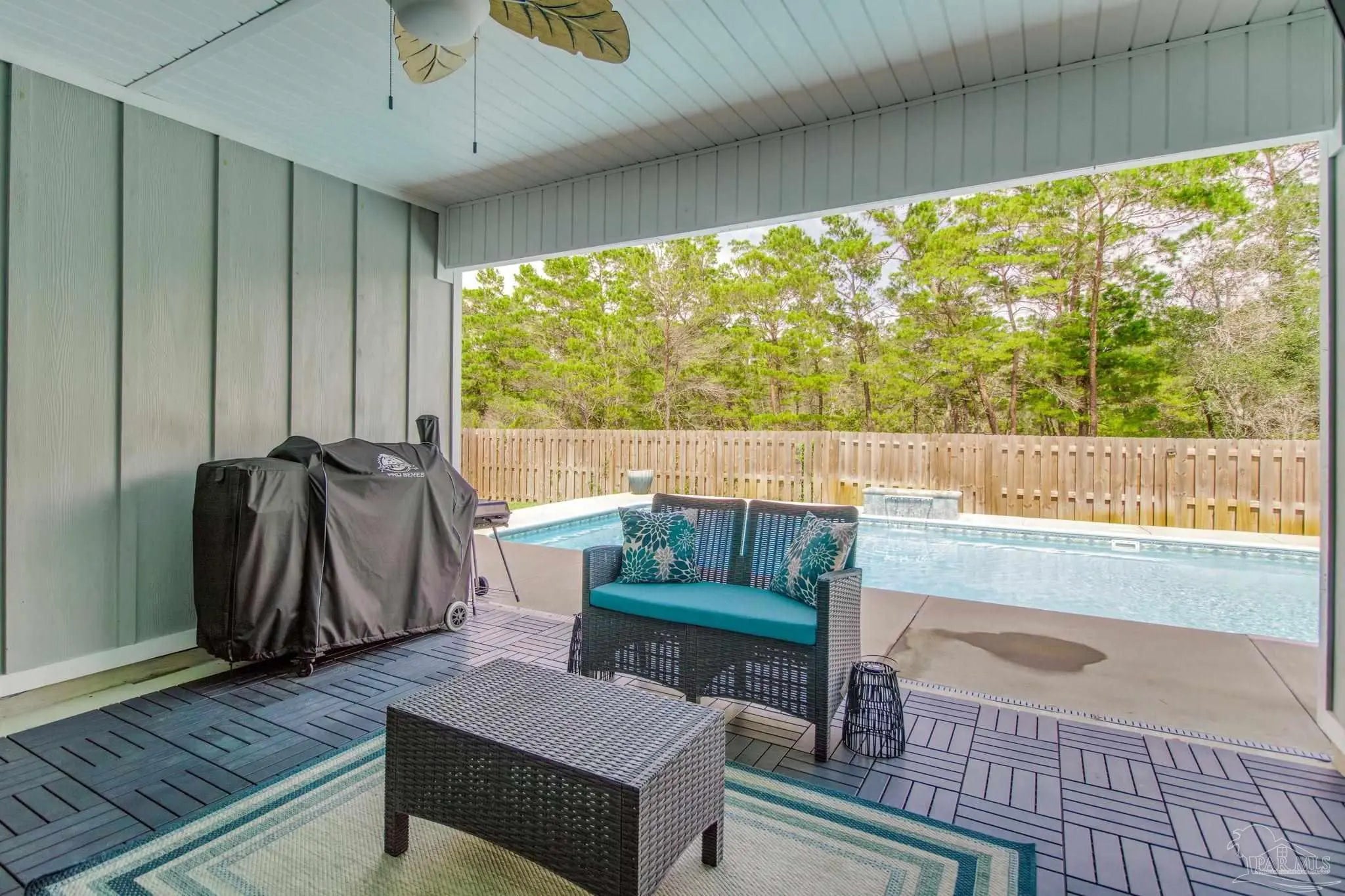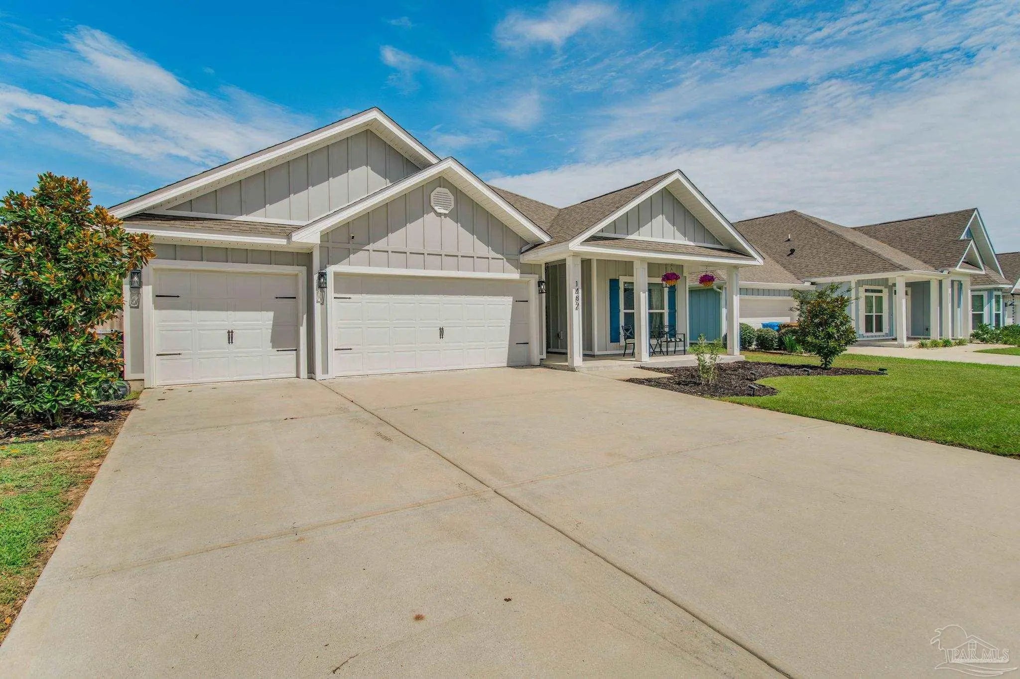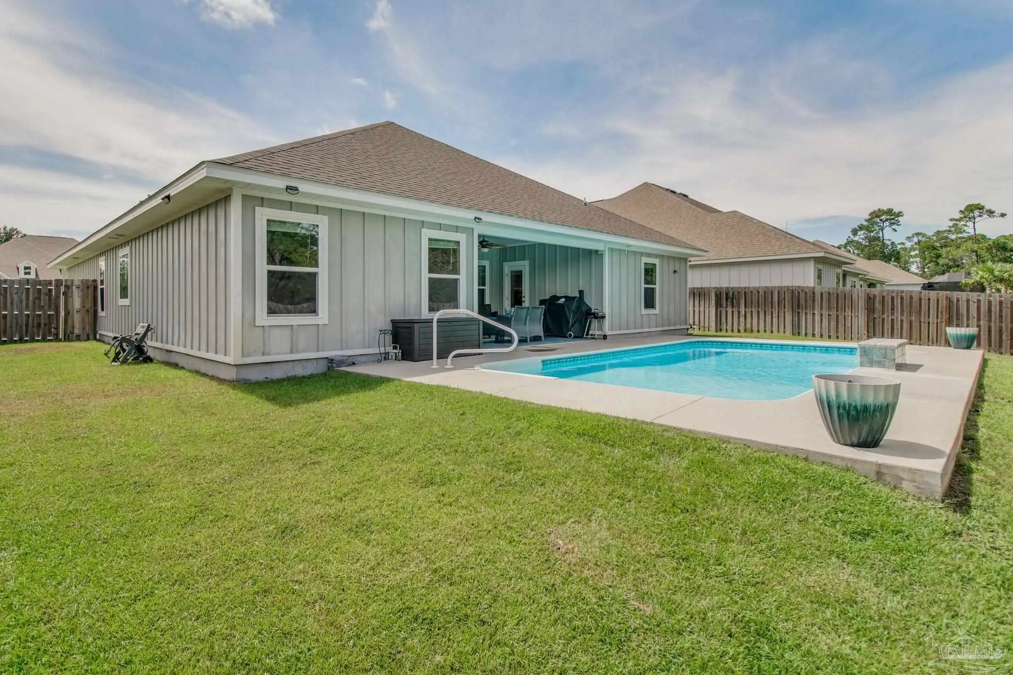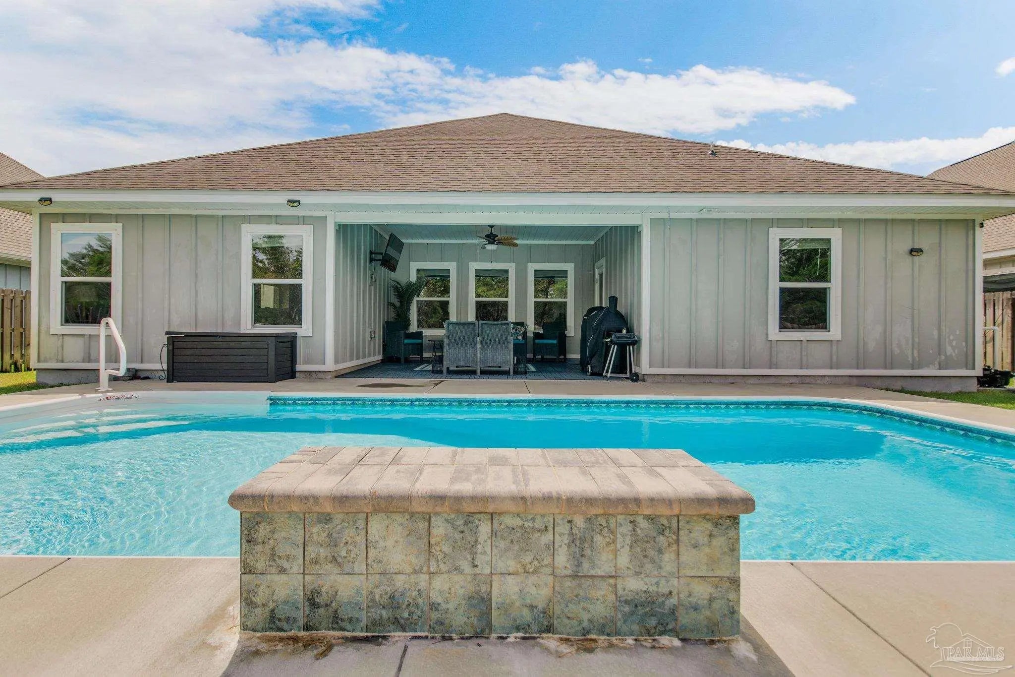 This delightful 4-bedroom, 3-bathroom POOL home offers a spacious 2,304 square feet of living space in Gulf Breeze, perfect for families or those who love to entertain. As you enter the home, you'll be greeted by an open floor plan that seamlessly blends comfort with style. The luxury vinyl plank flooring and shiplap walls add a touch of coastal flair, while the enclosed office with a sliding barn door provides a quiet space for work or study. The kitchen is a culinary enthusiast's dream, boasting granite countertops, crisp white cabinets, and gleaming stainless steel appliances. Whether you're whipping up a quick breakfast in the cozy nook or preparing a gourmet meal at the island, this kitchen has you covered. The primary bedroom is a true retreat, featuring an ensuite bath with a double vanity, walk-in closet with custom shelving, stand-up shower, and a garden tub that's practically begging for a bubble bath and a glass of wine. Outside, the inground saltwater pool is perfect for those hot Florida days. The fenced-in yard provides privacy and peace of mind, while the exterior Hardie board siding offers durability and low maintenance. And for all you car enthusiasts (or just those with a lot of stuff), there's a spacious 3-car garage. There is also a sprinkler system and well to make yard maintenance a breeze!! Located just a short distance from local attractions, you'll find the Lighthouse Private Christian Academy, Soundside Public Beach, and the Gulf Breeze Zoo nearby. Imagine spending your weekends alternating between beach days and animal adventures! This home isn't just about looks – it's practical too. With a termite bond in place, you can rest easy knowing your investment is protected. And let's not forget the charming front porch – the perfect spot for sipping sweet tea and waving to neighbors. So, if you're looking for a home that combines style, comfort, and a dash of coastal charm, look no further!! This is it! BE SURE TO CHECK OUT THE VIDE