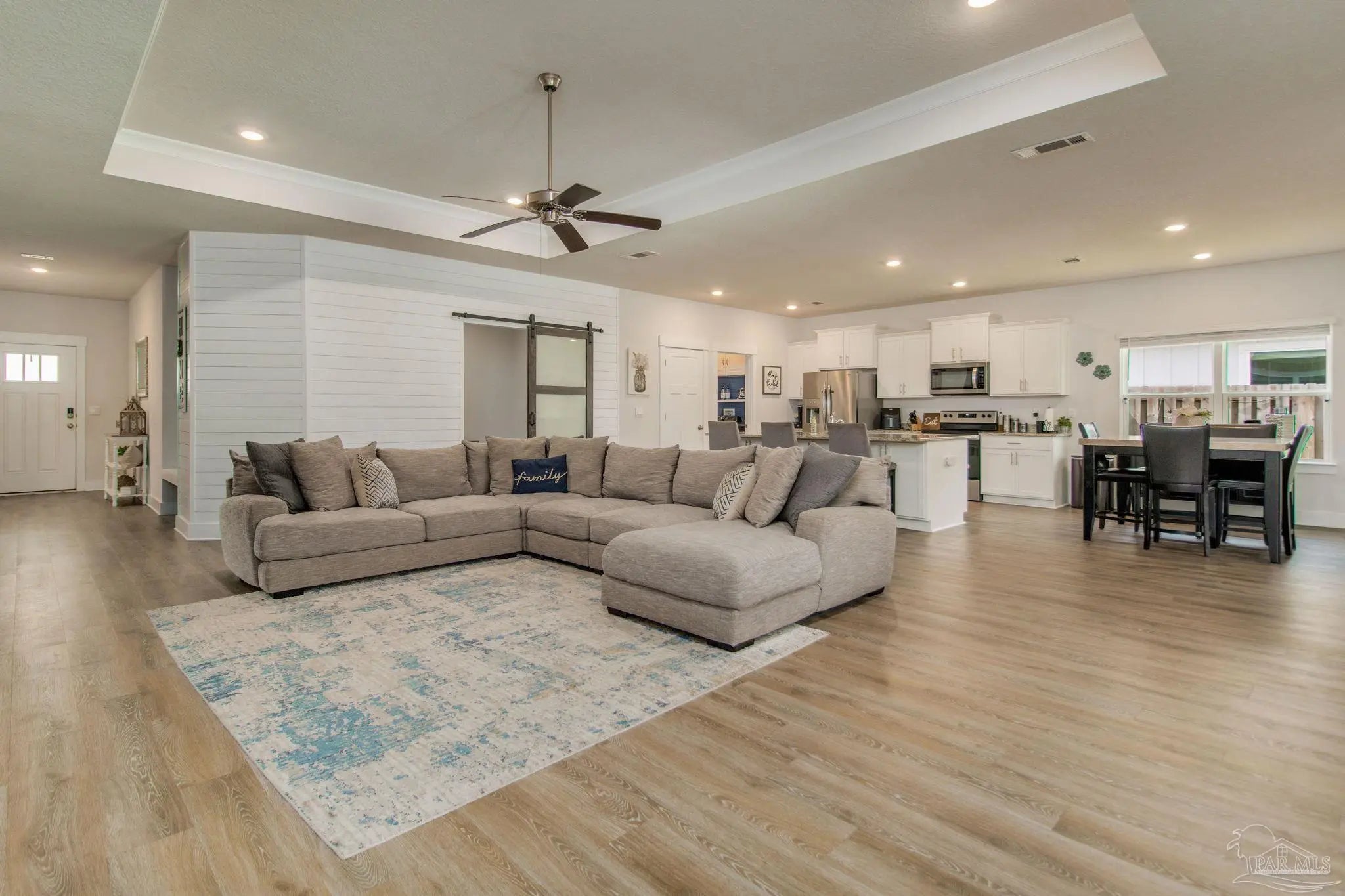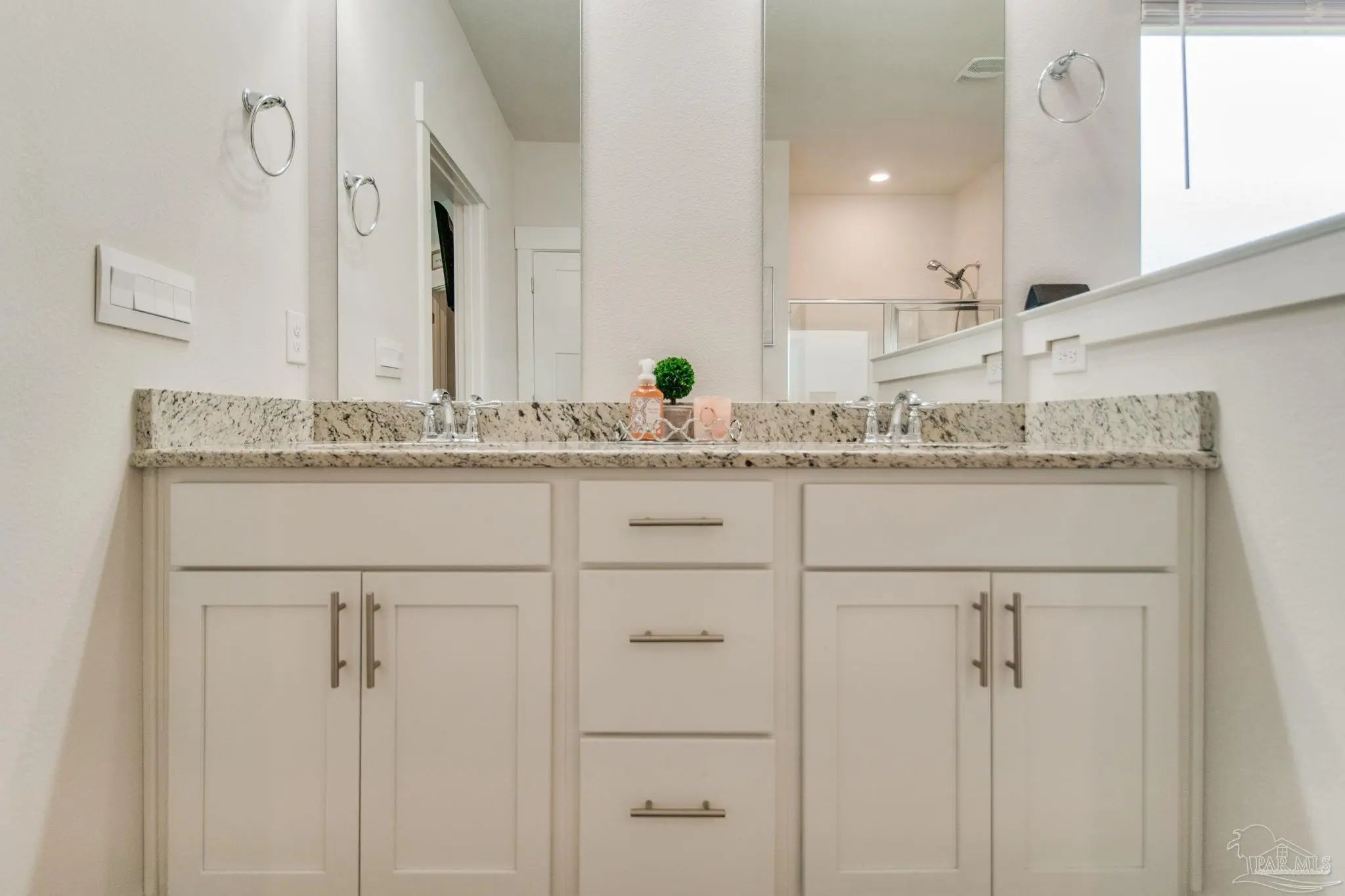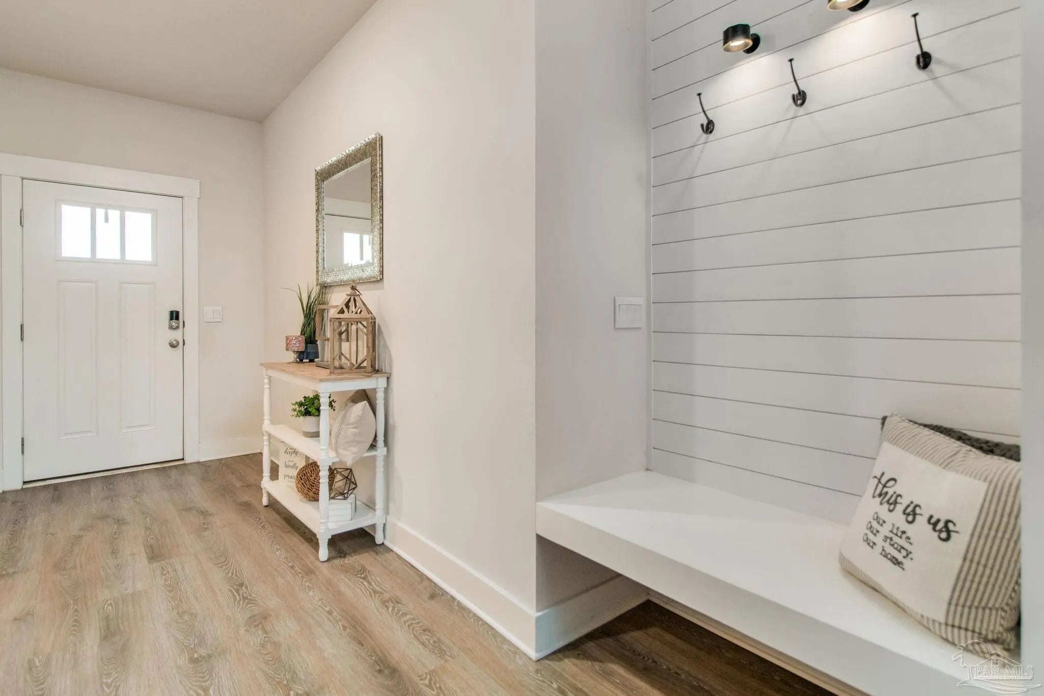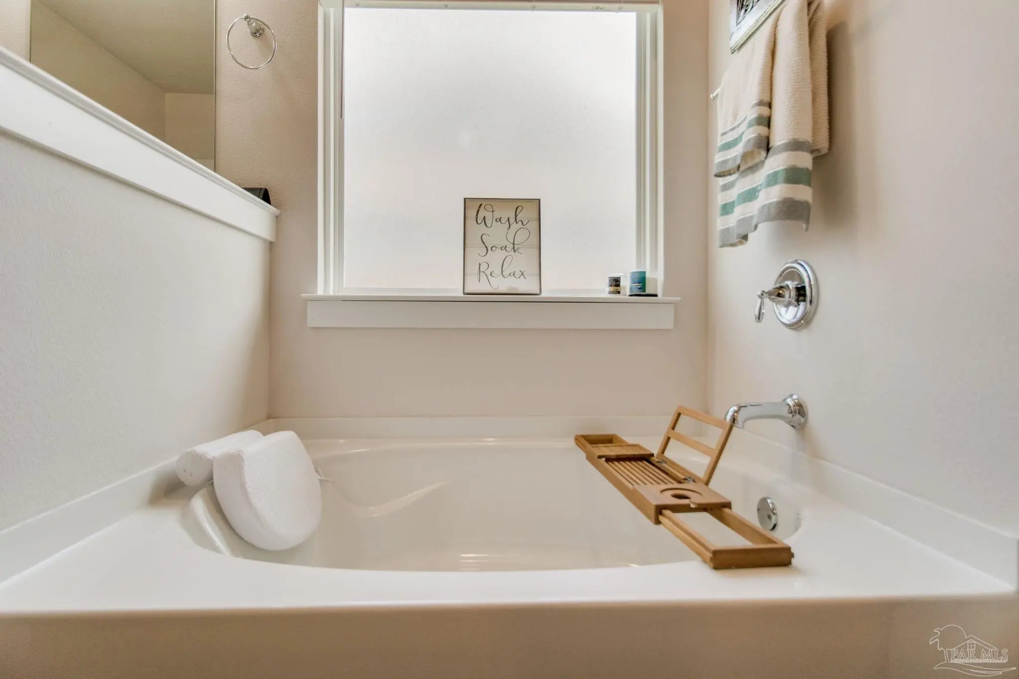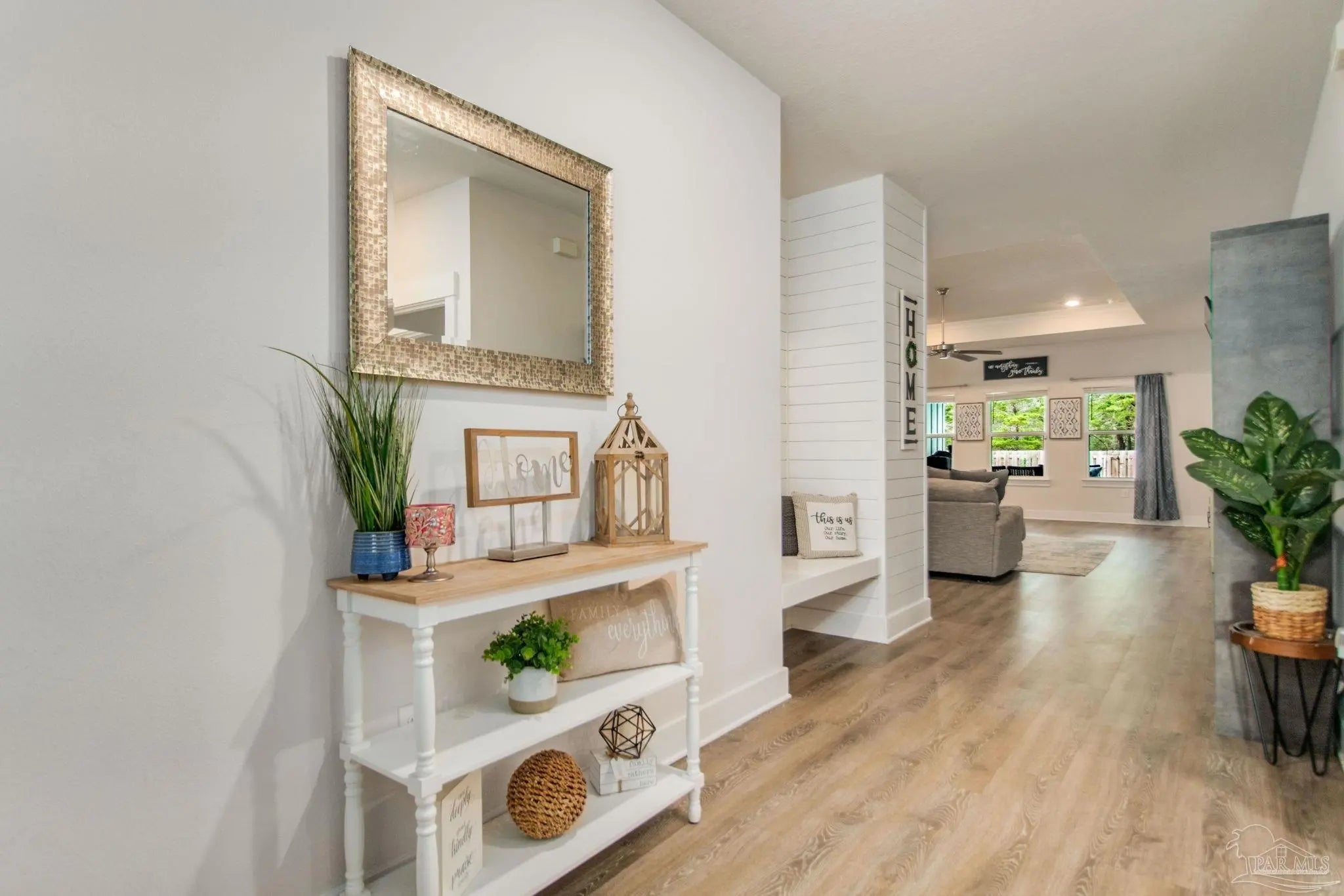 This delightful 4-bedroom, 3-bathroom POOL home offers a spacious 2,304 square feet of living space in Gulf Breeze, perfect for families or those who love to entertain. As you enter the home, you'll be greeted by an open floor plan that seamlessly blends comfort with style. The luxury vinyl plank flooring and shiplap walls add a touch of coastal flair, while the enclosed office with a sliding barn door provides a quiet space for work or study. The kitchen is a culinary enthusiast's dream, boasting granite countertops, crisp white cabinets, and gleaming stainless steel appliances. Whether you're whipping up a quick breakfast in the cozy nook or preparing a gourmet meal at the island, this kitchen has you covered. The primary bedroom is a true retreat, featuring an ensuite bath with a double vanity, walk-in closet with custom shelving, stand-up shower, and a garden tub that's practically begging for a bubble bath and a glass of wine. Outside, the inground saltwater pool is perfect for those hot Florida days. The fenced-in yard provides privacy and peace of mind, while the exterior Hardie board siding offers durability and low maintenance. And for all you car enthusiasts (or just those with a lot of stuff), there's a spacious 3-car garage. There is also a sprinkler system and well to make yard maintenance a breeze!! Located just a short distance from local attractions, you'll find the Lighthouse Private Christian Academy, Soundside Public Beach, and the Gulf Breeze Zoo nearby. Imagine spending your weekends alternating between beach days and animal adventures! This home isn't just about looks – it's practical too. With a termite bond in place, you can rest easy knowing your investment is protected. And let's not forget the charming front porch – the perfect spot for sipping sweet tea and waving to neighbors. So, if you're looking for a home that combines style, comfort, and a dash of coastal charm, look no further!! This is it! BE SURE TO CHECK OUT THE VIDE