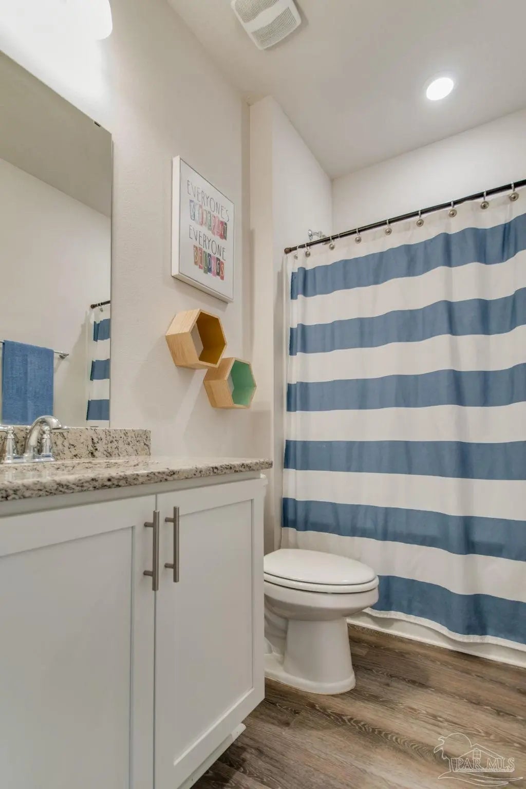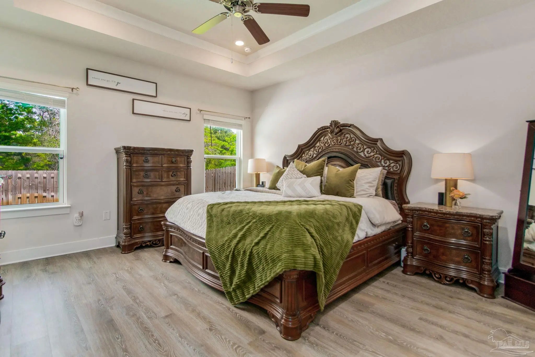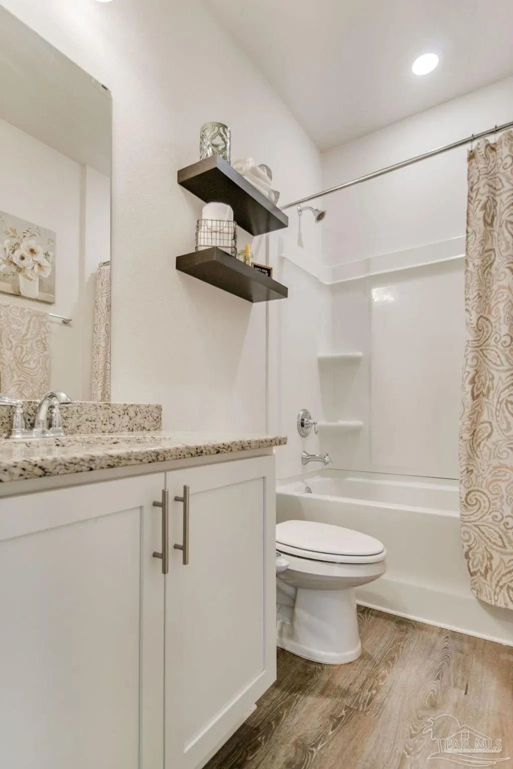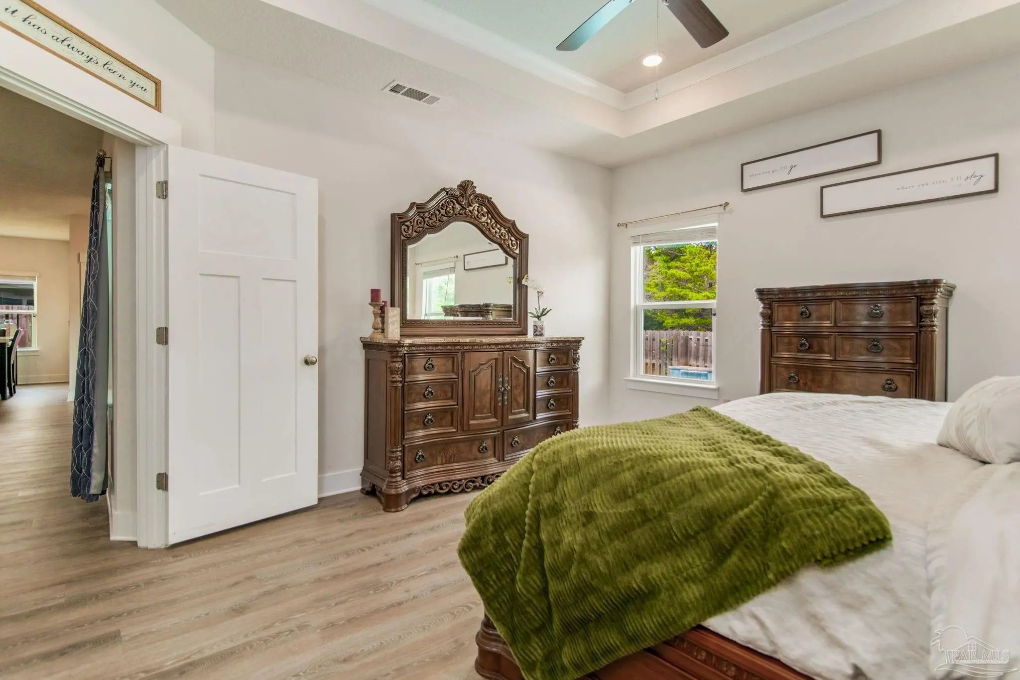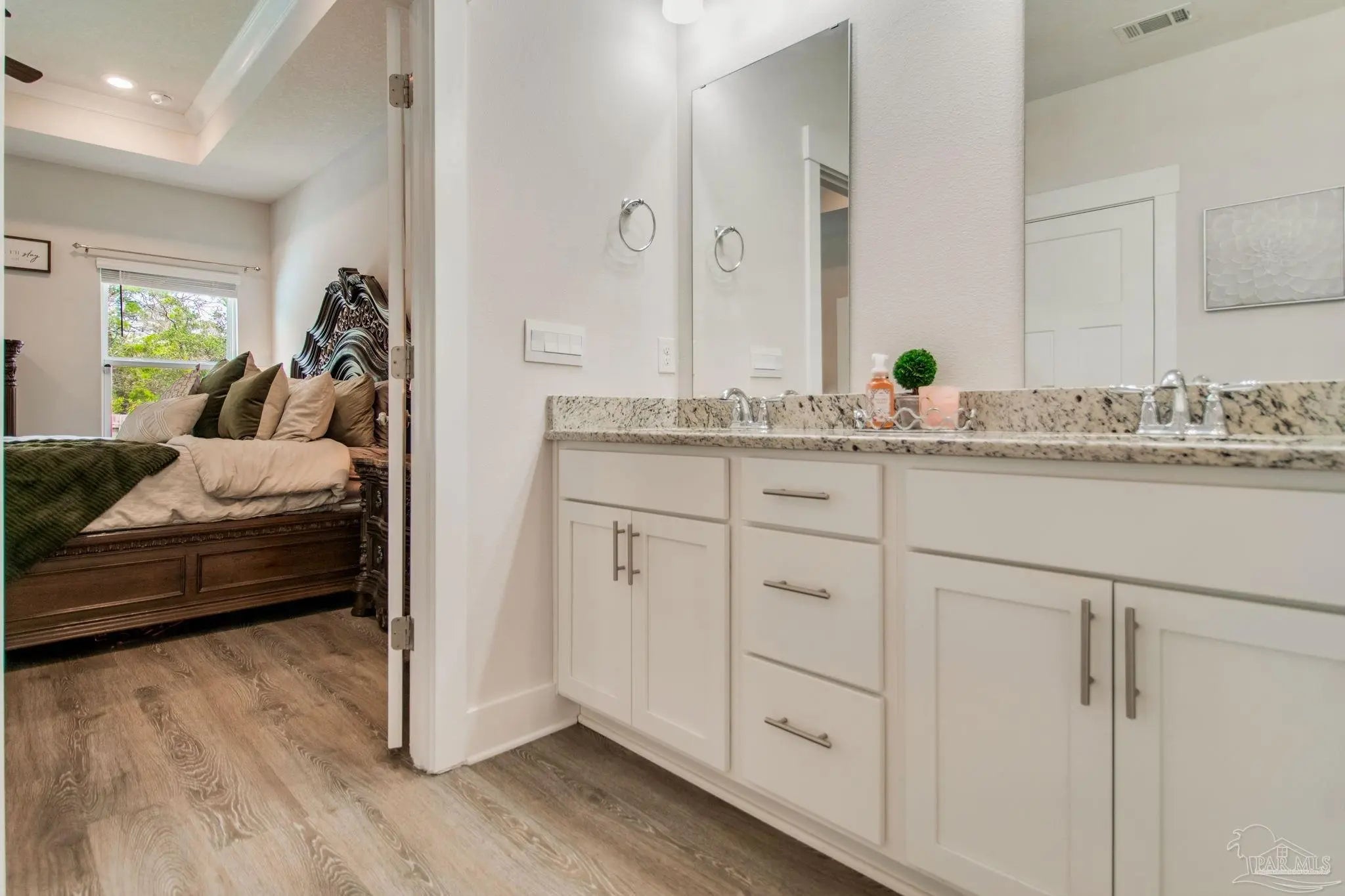 This delightful 4-bedroom, 3-bathroom POOL home offers a spacious 2,304 square feet of living space in Gulf Breeze, perfect for families or those who love to entertain. As you enter the home, you'll be greeted by an open floor plan that seamlessly blends comfort with style. The luxury vinyl plank flooring and shiplap walls add a touch of coastal flair, while the enclosed office with a sliding barn door provides a quiet space for work or study. The kitchen is a culinary enthusiast's dream, boasting granite countertops, crisp white cabinets, and gleaming stainless steel appliances. Whether you're whipping up a quick breakfast in the cozy nook or preparing a gourmet meal at the island, this kitchen has you covered. The primary bedroom is a true retreat, featuring an ensuite bath with a double vanity, walk-in closet with custom shelving, stand-up shower, and a garden tub that's practically begging for a bubble bath and a glass of wine. Outside, the inground saltwater pool is perfect for those hot Florida days. The fenced-in yard provides privacy and peace of mind, while the exterior Hardie board siding offers durability and low maintenance. And for all you car enthusiasts (or just those with a lot of stuff), there's a spacious 3-car garage. There is also a sprinkler system and well to make yard maintenance a breeze!! Located just a short distance from local attractions, you'll find the Lighthouse Private Christian Academy, Soundside Public Beach, and the Gulf Breeze Zoo nearby. Imagine spending your weekends alternating between beach days and animal adventures! This home isn't just about looks – it's practical too. With a termite bond in place, you can rest easy knowing your investment is protected. And let's not forget the charming front porch – the perfect spot for sipping sweet tea and waving to neighbors. So, if you're looking for a home that combines style, comfort, and a dash of coastal charm, look no further!! This is it! BE SURE TO CHECK OUT THE VIDE