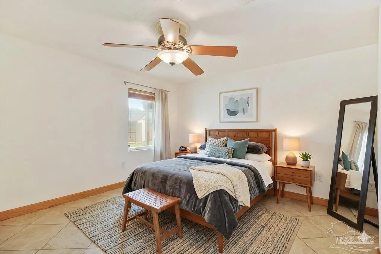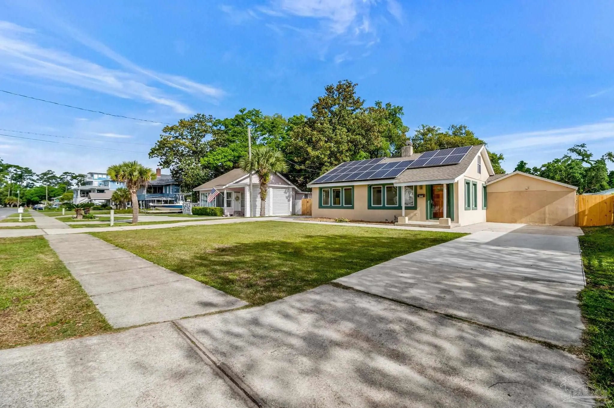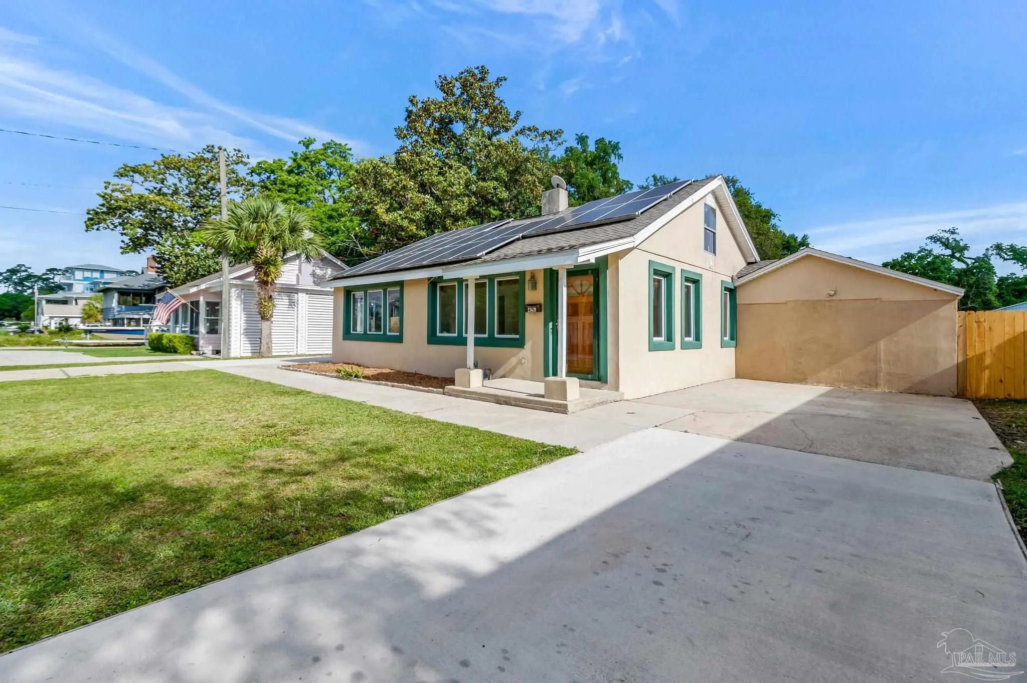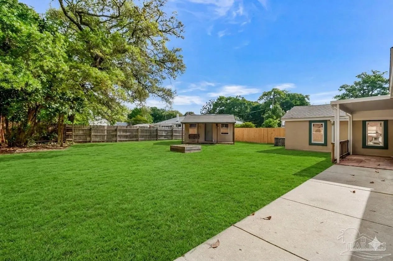Welcome to the perfect place to call home! From the moment you pull up, this adorable cottage is ready to charm you. The double driveway is a huge plus, whether you’ve got an RV or a full house of guests. Don’t miss the unique attic space, ready to be transformed into a bonus bedroom, home office, or creative play space. Enjoy tile flooring throughout, no carpet here, which means fewer excuses not to vacuum. The open-concept layout is bright and inviting, with tons of natural light pouring in. The kitchen features plenty of wood cabinetry, stainless steel appliances, granite countertops, a gas cooktop, and a picturesque window. Off the kitchen, you’ll find a truly unique layout that could function as a separate wing, ideal for a home office, or your own private escape. This area also connects to the laundry, backyard access, and the primary suite. The primary bedroom is spacious and even has its own split unit, so you can control your comfort exactly how you like it. The ensuite bathroom features oversized double vanities with granite countertops and a tiled walk-in shower. On the opposite side of the home, you’ll find two more bedrooms and a full bath with a tiled tub/shower combo. Step out back to your covered, tiled patio, perfect for morning coffee, or finally starting that book you bought months ago. The backyard offers plenty of space for pets or entertaining. There’s even a shed (being sold as-is) that could be transformed into a workshop, or your next weekend project. This home also features solar panels, helping keep utility costs low. Enjoy water views right from the property, with the community park and kayak launch visible just across the water. There is even a private island just a 5-minute paddle away, perfect for swimming, fishing, or exploring. This location is ideal for boating and fishing. You can even watch the Blue Angels practice during the week. Now you see why it’s so easy to fall in love!