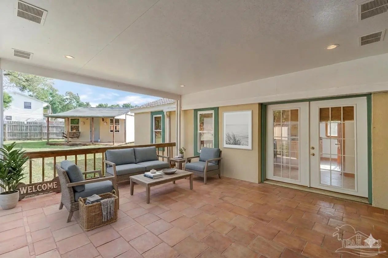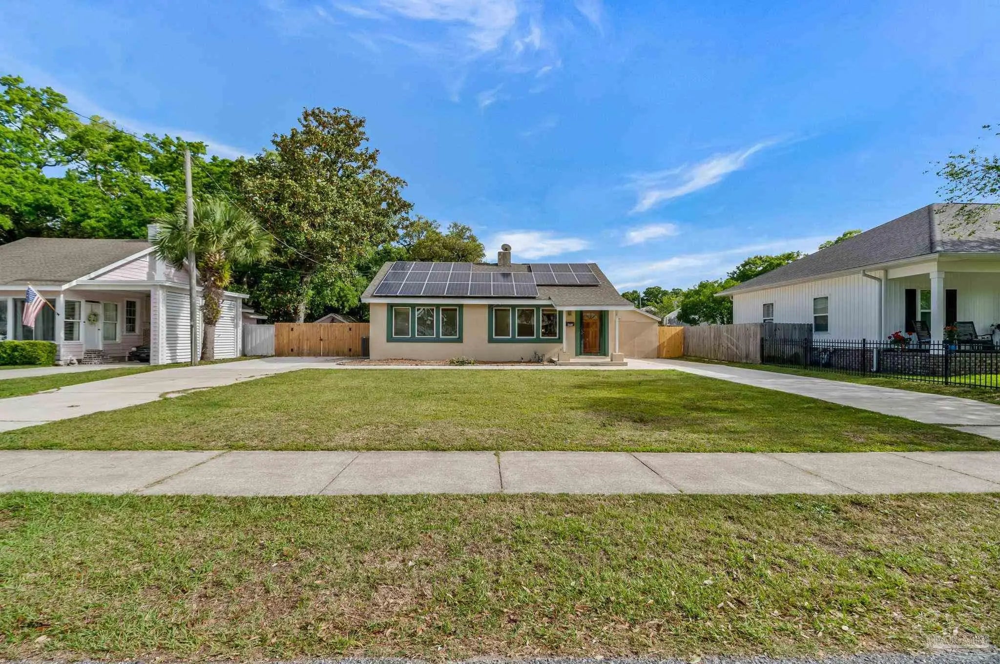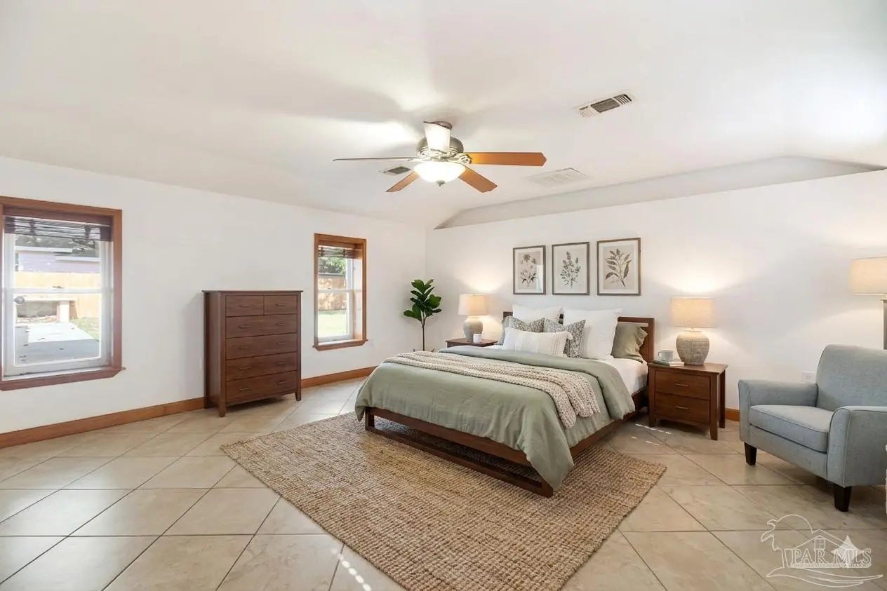 Welcome to the perfect place to call home! From the moment you pull up, this adorable cottage is ready to charm you. The double driveway is a huge plus, whether you’ve got an RV or a full house of guests. Don’t miss the unique attic space, ready to be transformed into a bonus bedroom, home office, or creative play space. Enjoy tile flooring throughout, no carpet here, which means fewer excuses not to vacuum. The open-concept layout is bright and inviting, with tons of natural light pouring in. The kitchen features plenty of wood cabinetry, stainless steel appliances, granite countertops, a gas cooktop, and a picturesque window. Off the kitchen, you’ll find a truly unique layout that could function as a separate wing, ideal for a home office, or your own private escape. This area also connects to the laundry, backyard access, and the primary suite. The primary bedroom is spacious and even has its own split unit, so you can control your comfort exactly how you like it. The ensuite bathroom features oversized double vanities with granite countertops and a tiled walk-in shower. On the opposite side of the home, you’ll find two more bedrooms and a full bath with a tiled tub/shower combo. Step out back to your covered, tiled patio, perfect for morning coffee, or finally starting that book you bought months ago. The backyard offers plenty of space for pets or entertaining. There’s even a shed (being sold as-is) that could be transformed into a workshop, or your next weekend project. This home also features solar panels, helping keep utility costs low. Enjoy water views right from the property, with the community park and kayak launch visible just across the water. There is even a private island just a 5-minute paddle away, perfect for swimming, fishing, or exploring. This location is ideal for boating and fishing. You can even watch the Blue Angels practice during the week. Now you see why it’s so easy to fall in love!