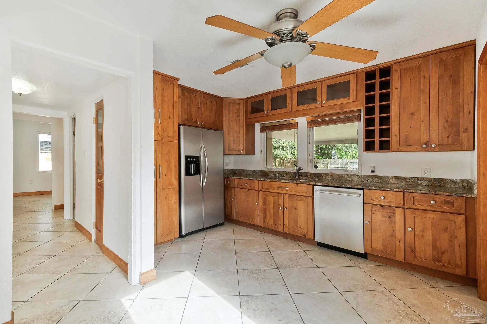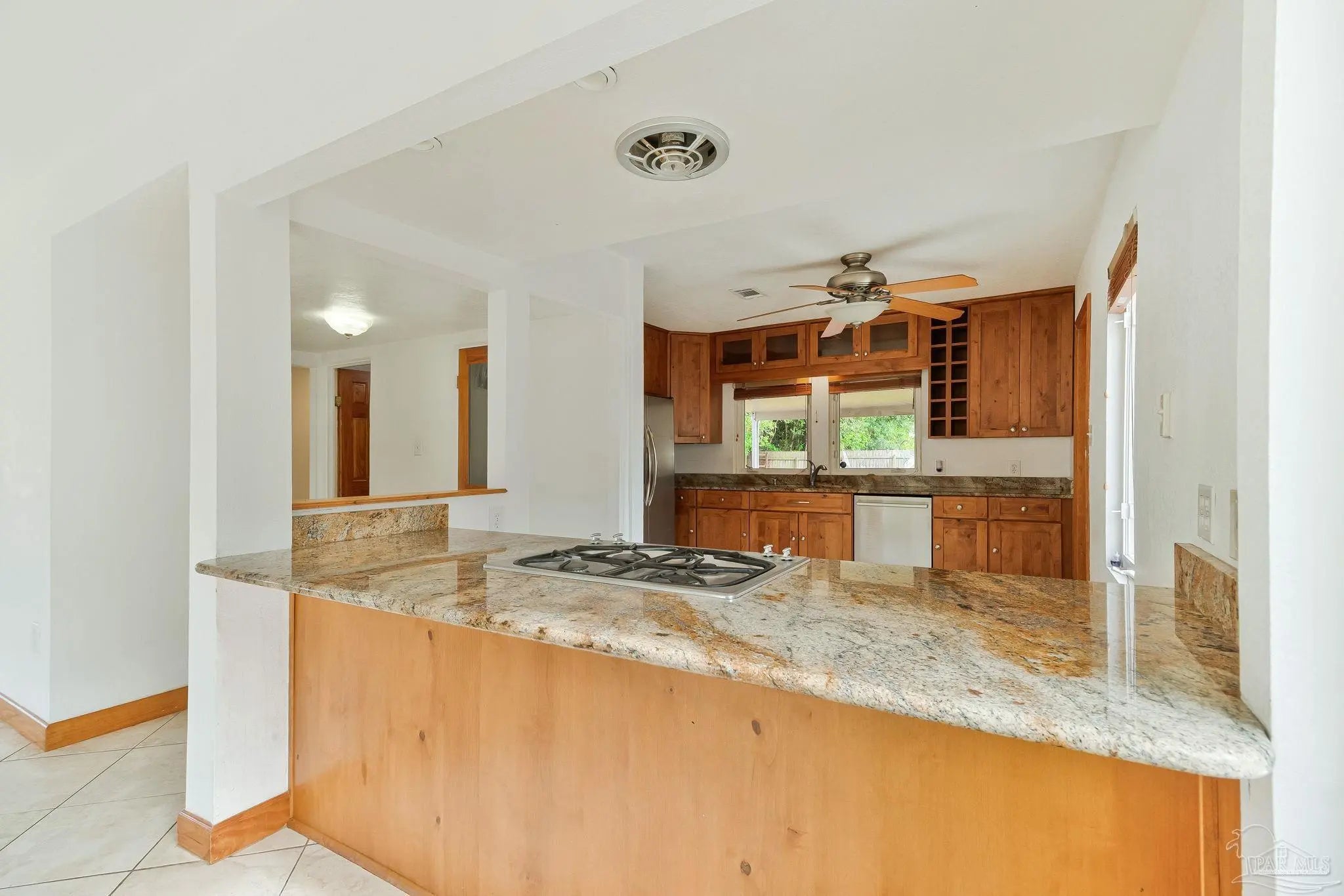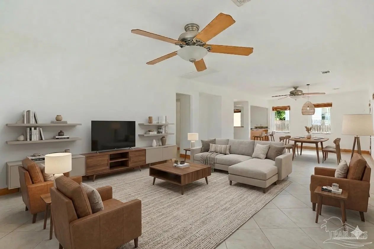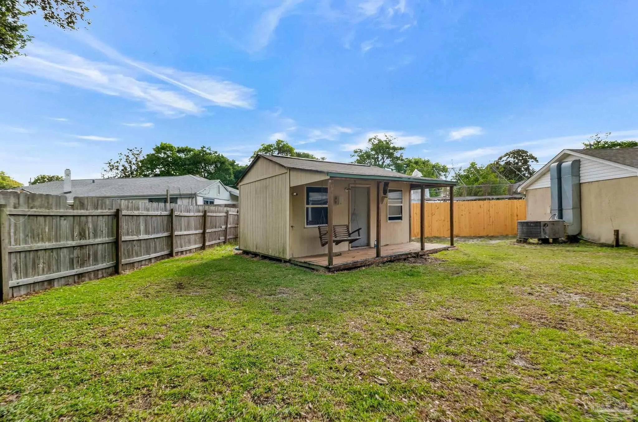 Welcome to the perfect place to call home! From the moment you pull up, this adorable cottage is ready to charm you. The double driveway is a huge plus, whether you’ve got an RV or a full house of guests. Don’t miss the unique attic space, ready to be transformed into a bonus bedroom, home office, or creative play space. Enjoy tile flooring throughout, no carpet here, which means fewer excuses not to vacuum. The open-concept layout is bright and inviting, with tons of natural light pouring in. The kitchen features plenty of wood cabinetry, stainless steel appliances, granite countertops, a gas cooktop, and a picturesque window. Off the kitchen, you’ll find a truly unique layout that could function as a separate wing, ideal for a home office, or your own private escape. This area also connects to the laundry, backyard access, and the primary suite. The primary bedroom is spacious and even has its own split unit, so you can control your comfort exactly how you like it. The ensuite bathroom features oversized double vanities with granite countertops and a tiled walk-in shower. On the opposite side of the home, you’ll find two more bedrooms and a full bath with a tiled tub/shower combo. Step out back to your covered, tiled patio, perfect for morning coffee, or finally starting that book you bought months ago. The backyard offers plenty of space for pets or entertaining. There’s even a shed (being sold as-is) that could be transformed into a workshop, or your next weekend project. This home also features solar panels, helping keep utility costs low. Enjoy water views right from the property, with the community park and kayak launch visible just across the water. There is even a private island just a 5-minute paddle away, perfect for swimming, fishing, or exploring. This location is ideal for boating and fishing. You can even watch the Blue Angels practice during the week. Now you see why it’s so easy to fall in love!