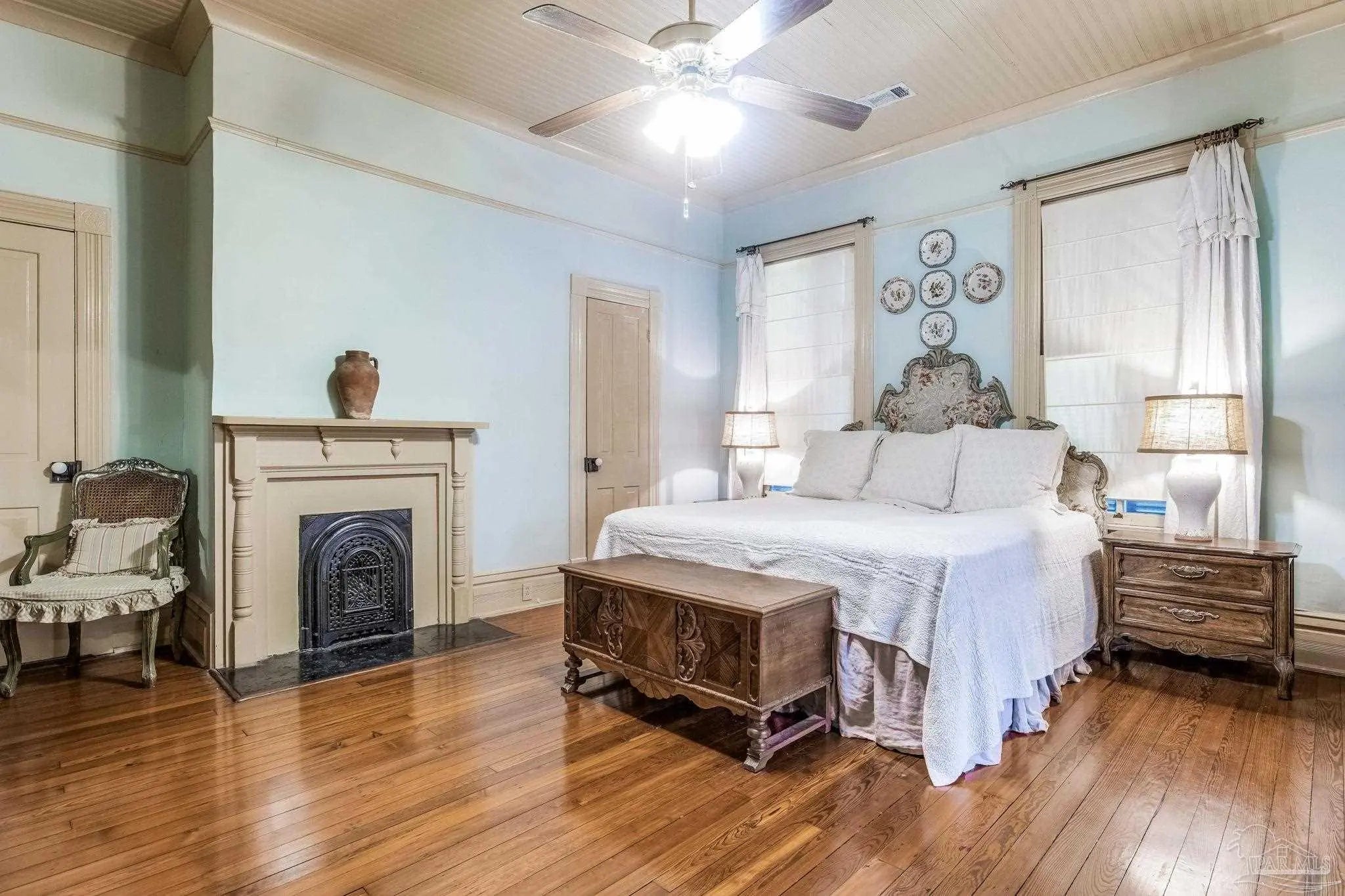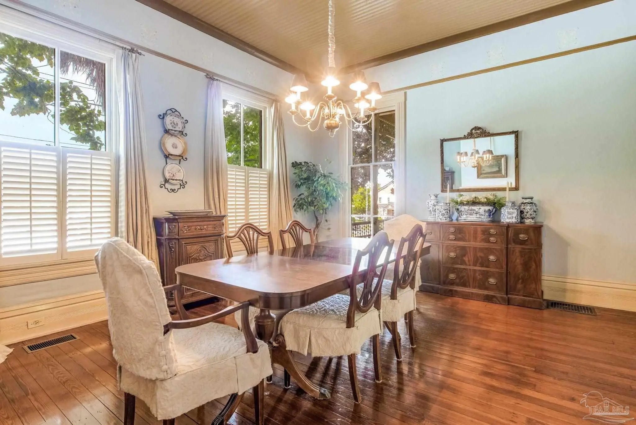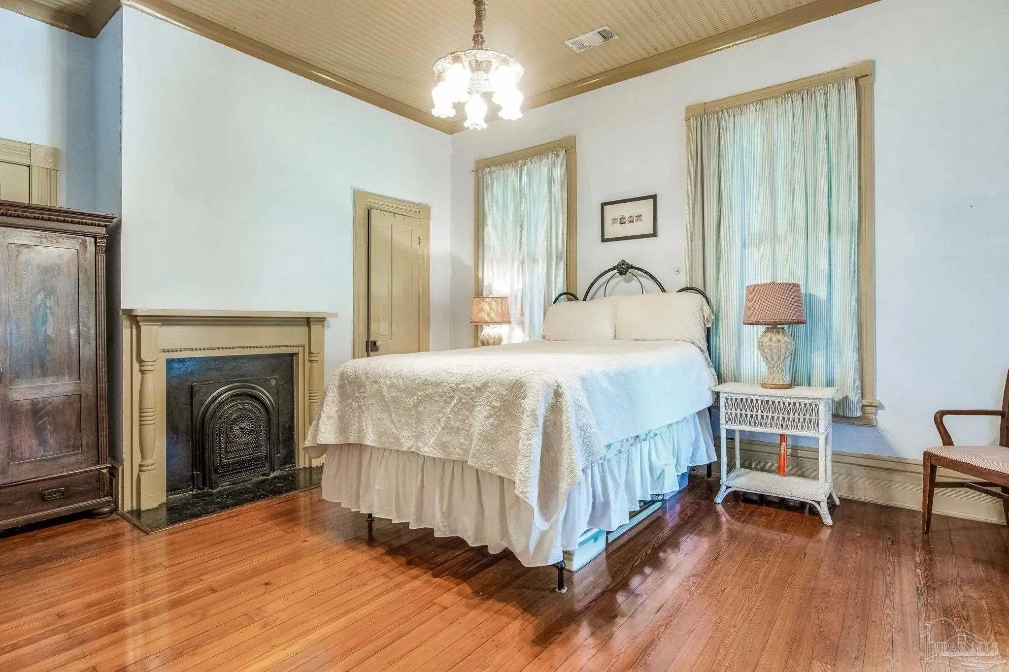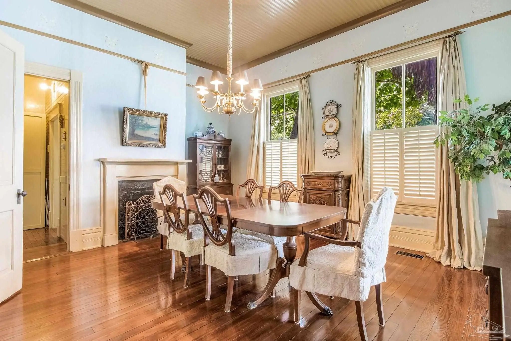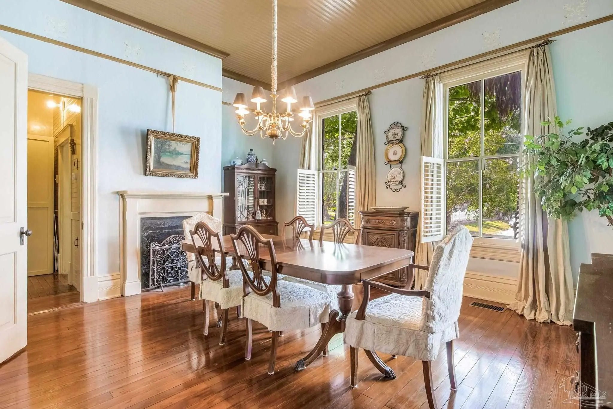 Have you ever dreamed of living in a historic home in the prestigious North Hill? The wait is over! Welcome to 1017 N Palafox Street, a timeless beauty nestled on a corner lot in one of Pensacola’s most cherished neighborhoods. Situated along a quaint road once traveled by horse and buggy, this home welcomes you with a covered front porch, perfect for sipping your morning coffee or enjoying a relaxing swing. Step inside and be swept away by soaring 11-foot ceilings, gleaming original hardwood floors, and six (sealed) fireplaces, each adding character to the living parlors, dining room, and bedrooms. One fireplace even features a tiled surround with dogs, a touching nod to a former owner who lovingly raised hunting dogs here. Grape vine accents on select doorways celebrate another chapter of the home’s story, when a backyard vineyard once flourished. The kitchen is tucked quietly at the back of the home, offering the ideal space to entertain while keeping the mess out of sight and out of mind. It boasts custom white cabinetry, granite countertops, stainless steel appliances, a gas stove, and a farmhouse sink overlooking the private backyard. Upstairs, the primary suite is spacious, complete with a cozy fireplace, hardwood floors, and room for a king-sized bed. The ensuite bathroom offers double pedestal sinks, a large tiled walk-in shower, and space for your morning routine. Another full upstairs bath features a tub/shower combo and single pedestal sink, perfectly positioned to serve the additional upstairs bedrooms. Each of the bedrooms includes a fireplace and closet, while the fourth bedroom (without a closet) provides a versatile space for a guest room or office. The sunroom, once the original kitchen, is now the perfect spot for breakfast or quiet moments with a book. Downstairs, a third full bath features charming custom wallpaper and a tub/shower combo. Unbeatable proximity to Downtown Pensacola! 1017 N Palafox Street is more than just a home.