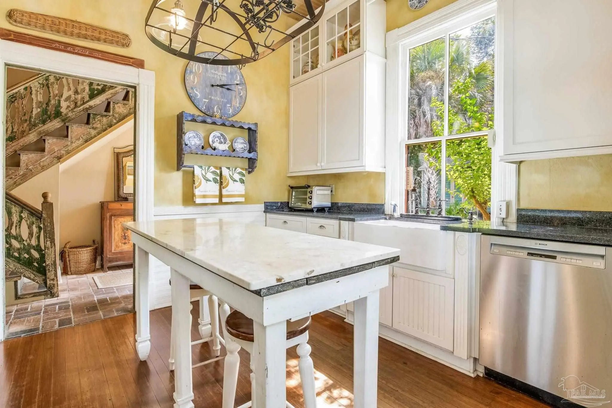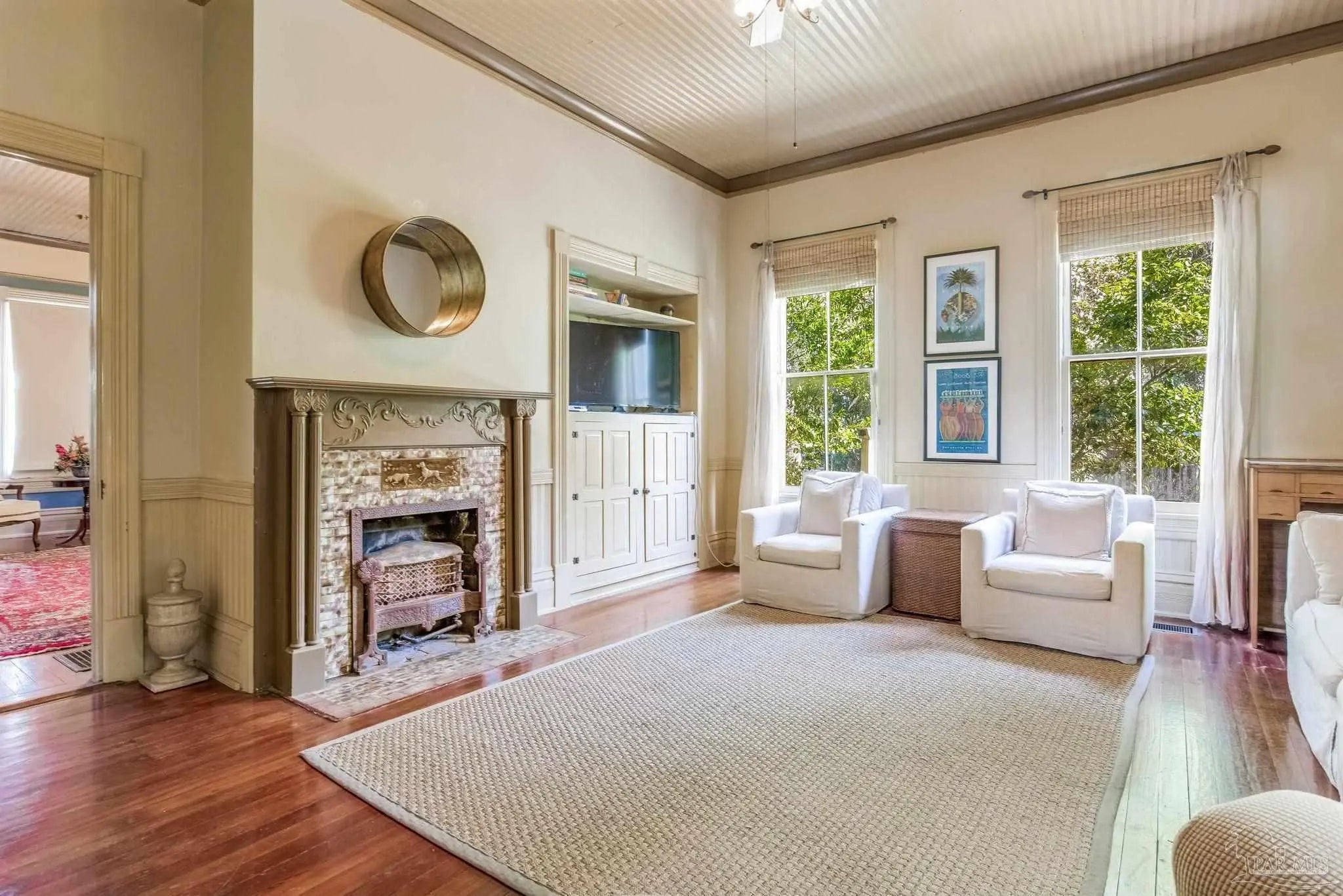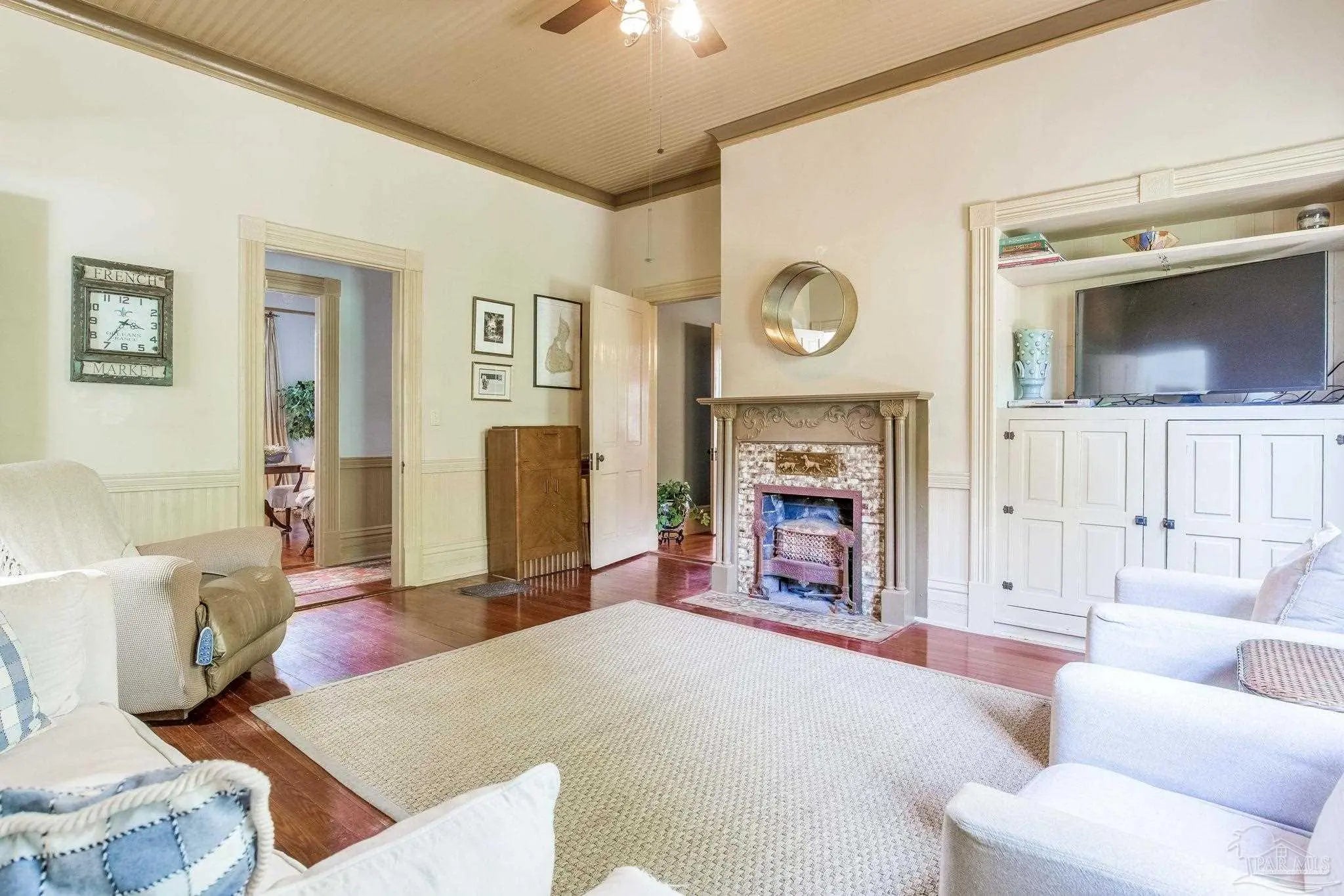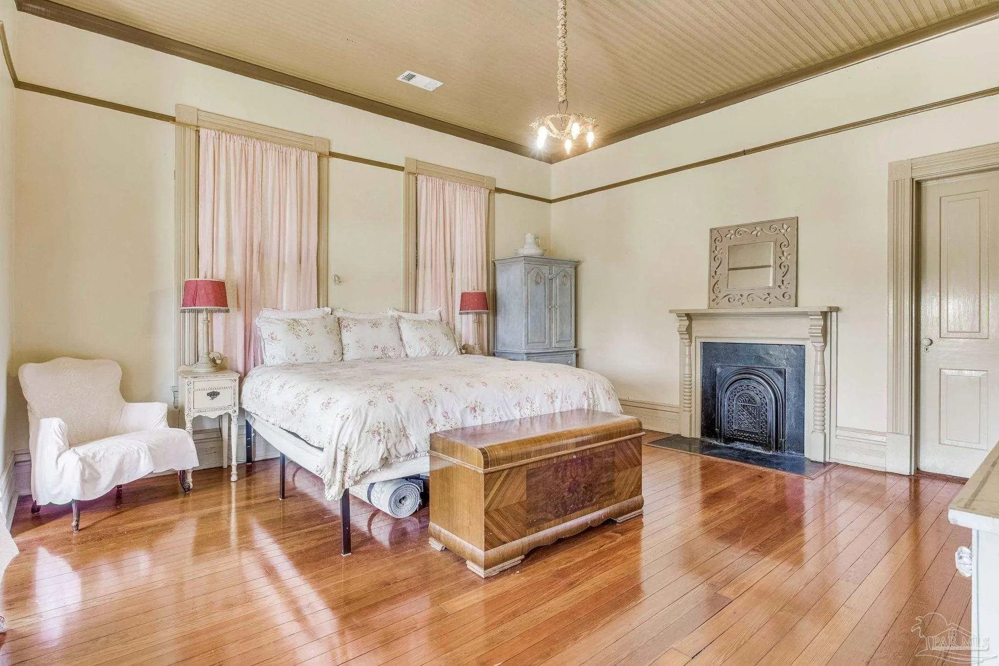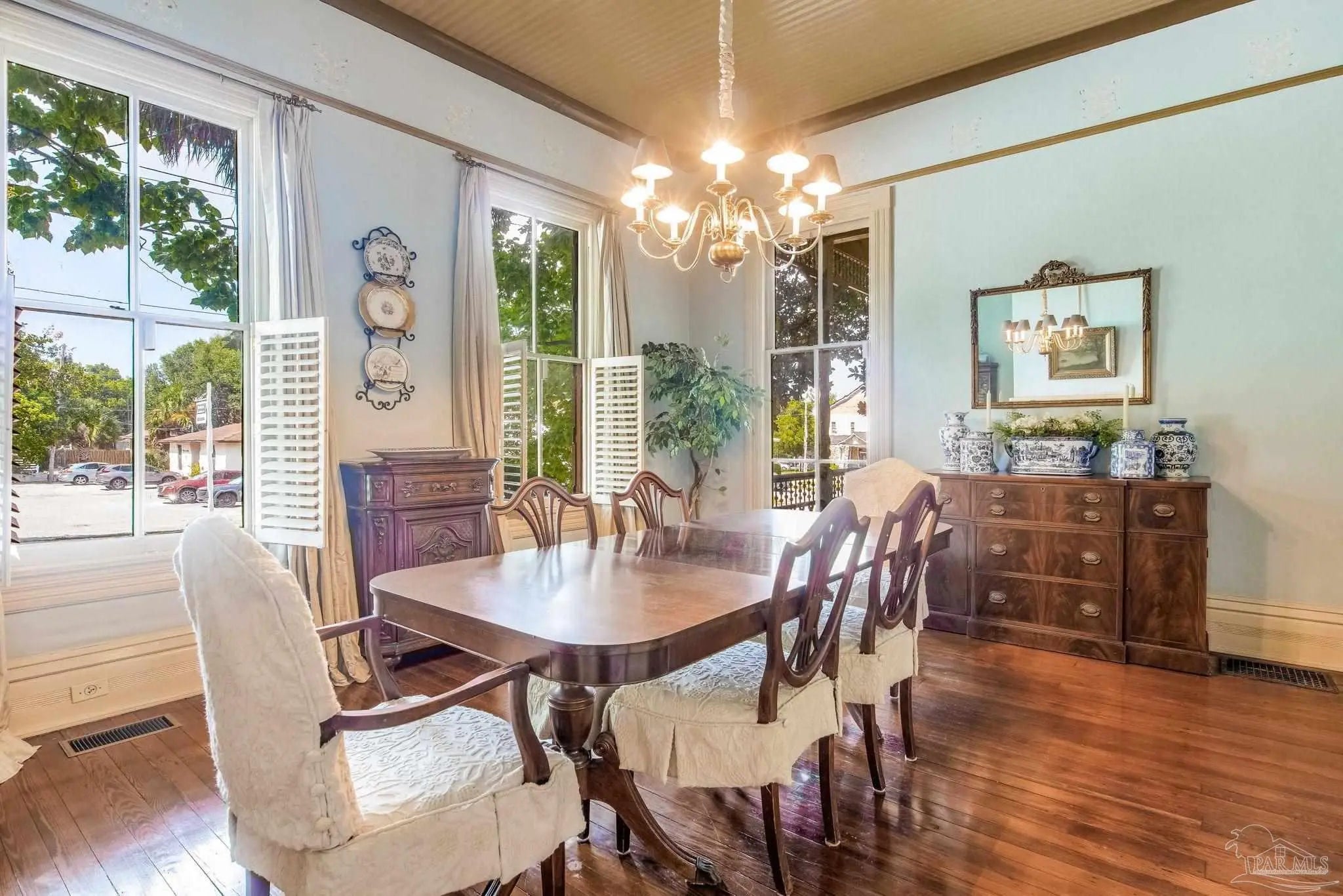 Have you ever dreamed of living in a historic home in the prestigious North Hill? The wait is over! Welcome to 1017 N Palafox Street, a timeless beauty nestled on a corner lot in one of Pensacola’s most cherished neighborhoods. Situated along a quaint road once traveled by horse and buggy, this home welcomes you with a covered front porch, perfect for sipping your morning coffee or enjoying a relaxing swing. Step inside and be swept away by soaring 11-foot ceilings, gleaming original hardwood floors, and six (sealed) fireplaces, each adding character to the living parlors, dining room, and bedrooms. One fireplace even features a tiled surround with dogs, a touching nod to a former owner who lovingly raised hunting dogs here. Grape vine accents on select doorways celebrate another chapter of the home’s story, when a backyard vineyard once flourished. The kitchen is tucked quietly at the back of the home, offering the ideal space to entertain while keeping the mess out of sight and out of mind. It boasts custom white cabinetry, granite countertops, stainless steel appliances, a gas stove, and a farmhouse sink overlooking the private backyard. Upstairs, the primary suite is spacious, complete with a cozy fireplace, hardwood floors, and room for a king-sized bed. The ensuite bathroom offers double pedestal sinks, a large tiled walk-in shower, and space for your morning routine. Another full upstairs bath features a tub/shower combo and single pedestal sink, perfectly positioned to serve the additional upstairs bedrooms. Each of the bedrooms includes a fireplace and closet, while the fourth bedroom (without a closet) provides a versatile space for a guest room or office. The sunroom, once the original kitchen, is now the perfect spot for breakfast or quiet moments with a book. Downstairs, a third full bath features charming custom wallpaper and a tub/shower combo. Unbeatable proximity to Downtown Pensacola! 1017 N Palafox Street is more than just a home.