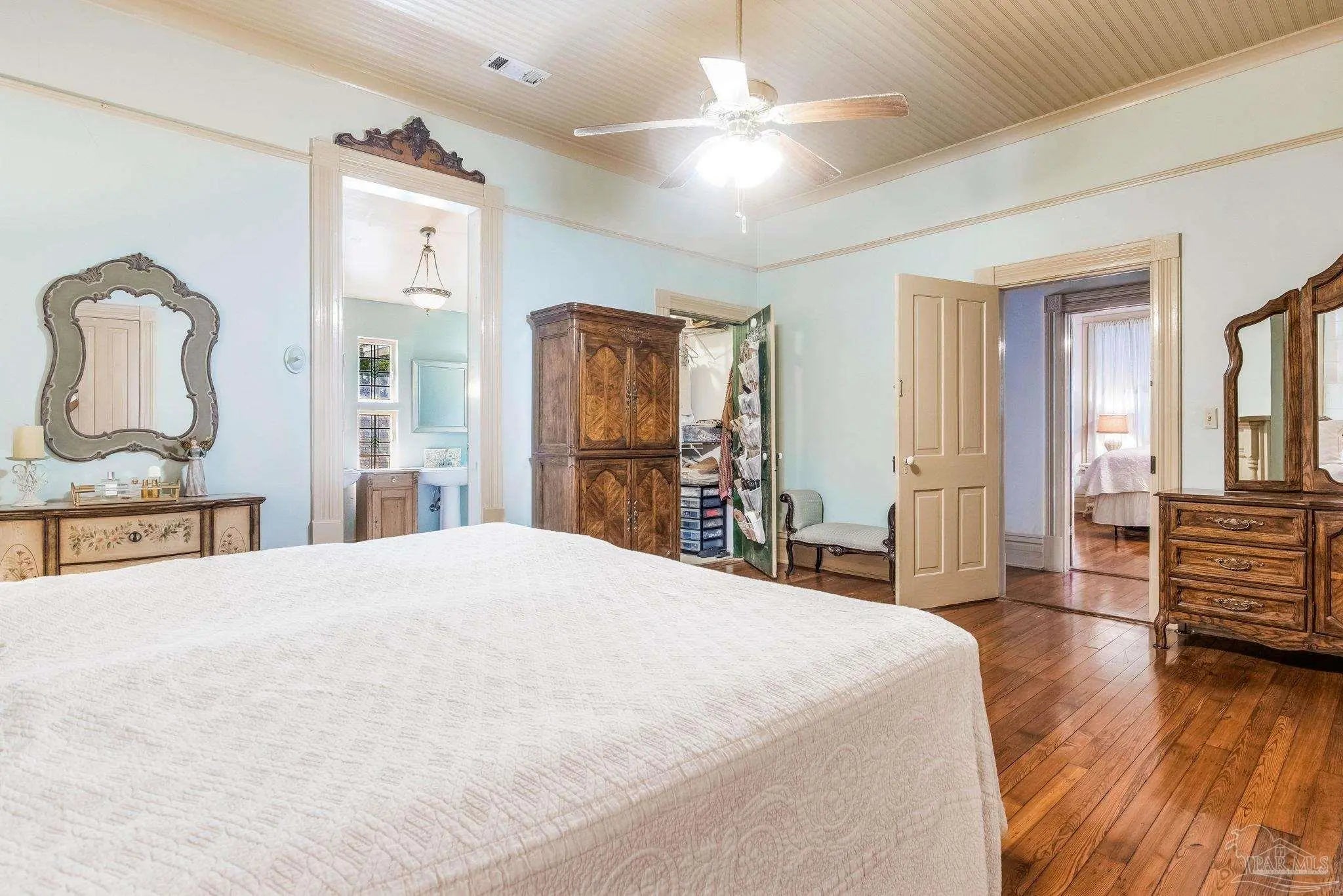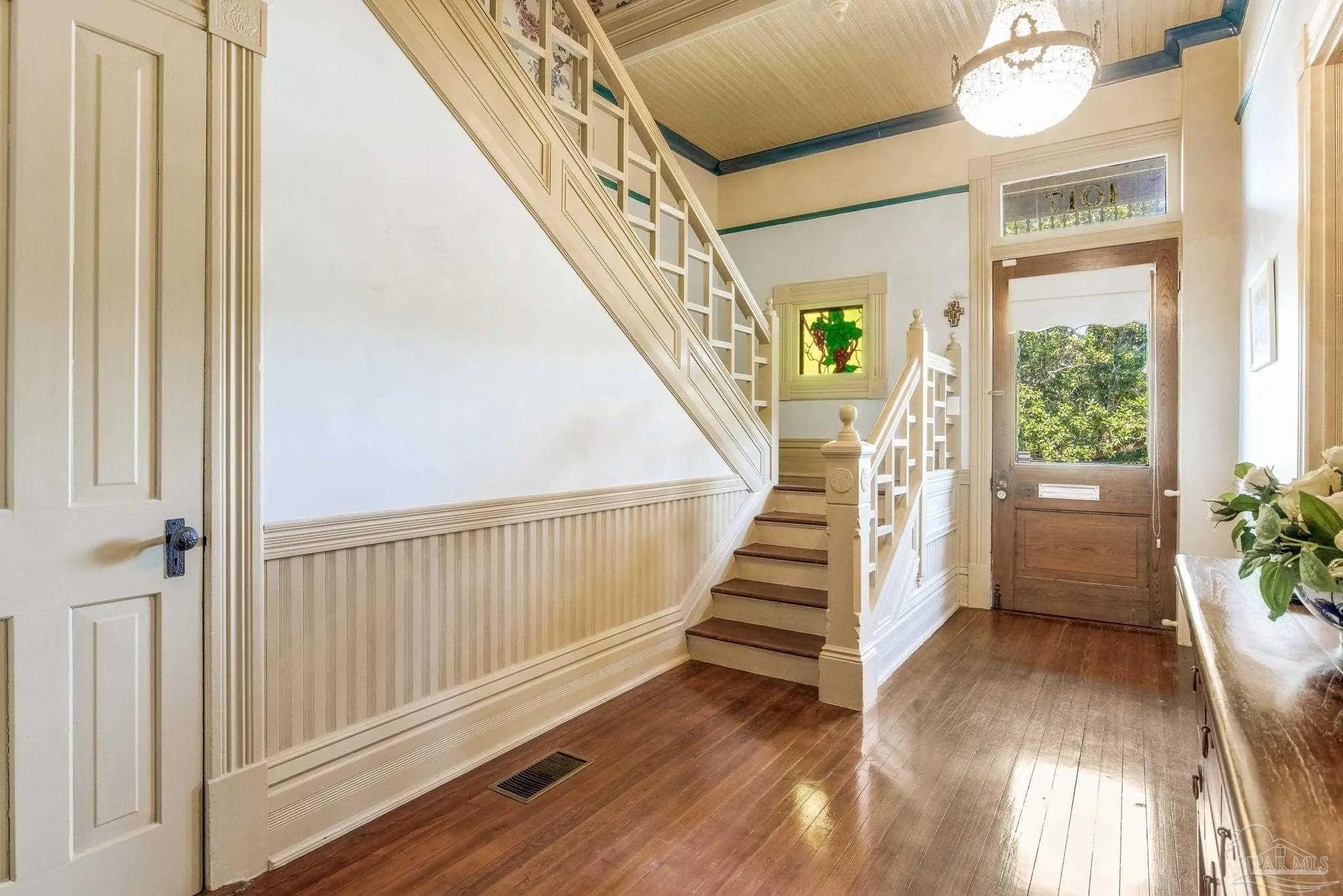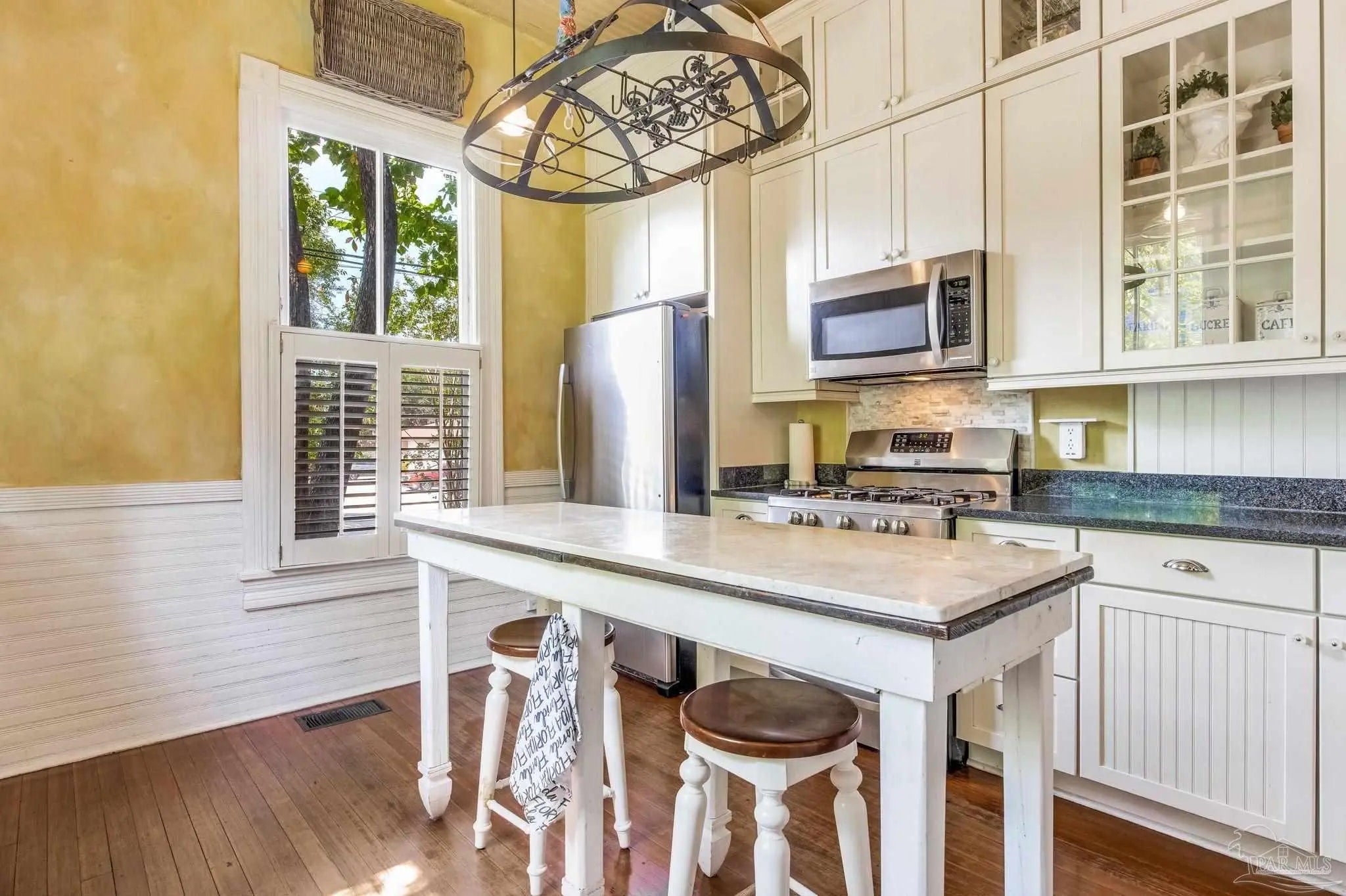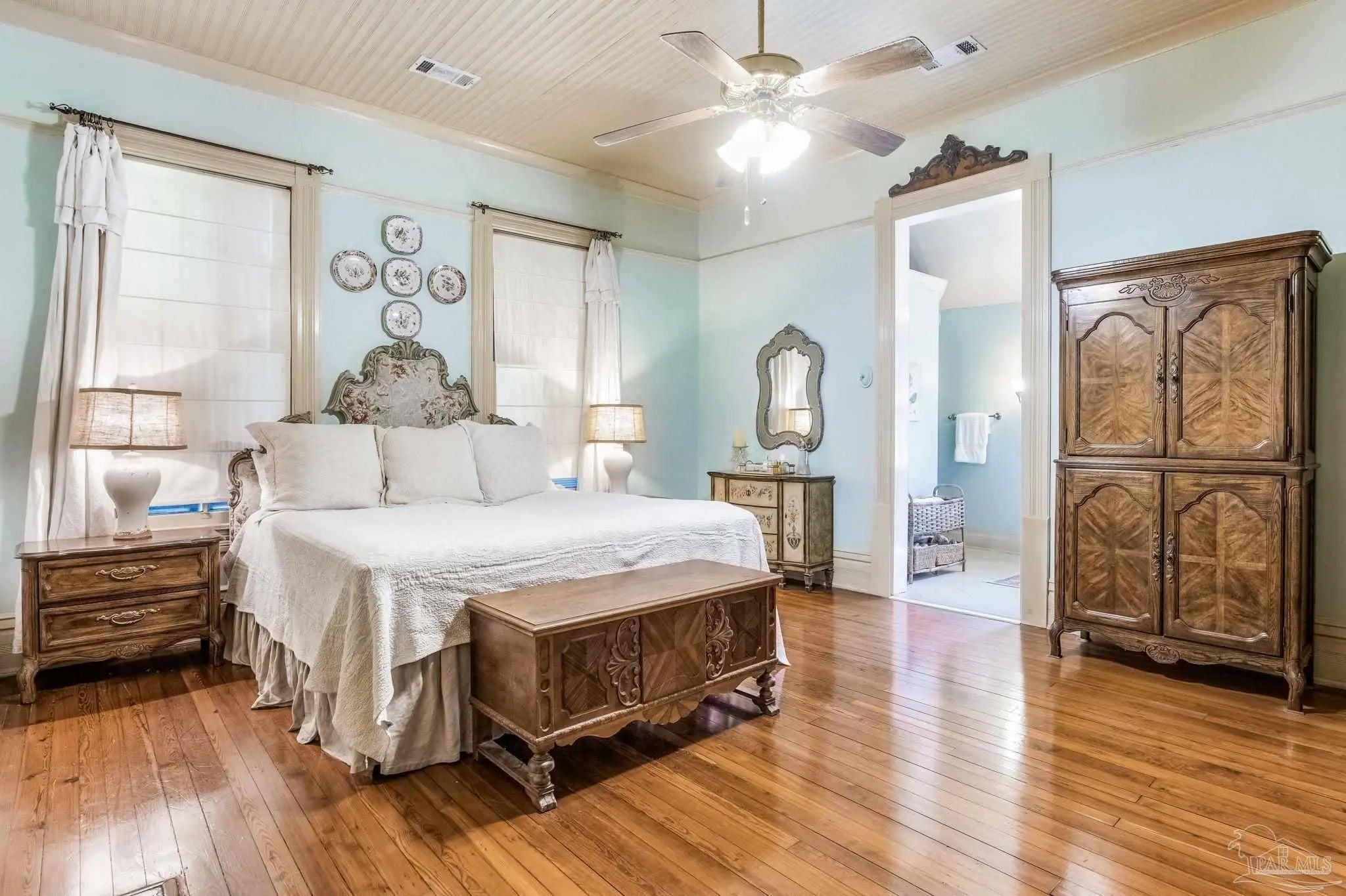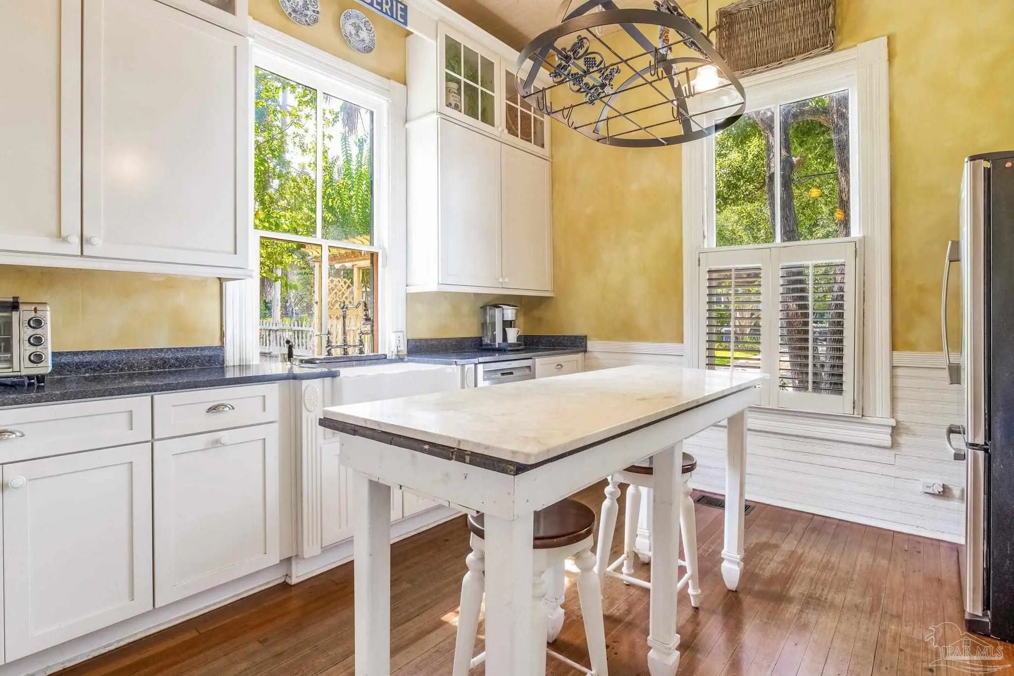 Have you ever dreamed of living in a historic home in the prestigious North Hill? The wait is over! Welcome to 1017 N Palafox Street, a timeless beauty nestled on a corner lot in one of Pensacola’s most cherished neighborhoods. Situated along a quaint road once traveled by horse and buggy, this home welcomes you with a covered front porch, perfect for sipping your morning coffee or enjoying a relaxing swing. Step inside and be swept away by soaring 11-foot ceilings, gleaming original hardwood floors, and six (sealed) fireplaces, each adding character to the living parlors, dining room, and bedrooms. One fireplace even features a tiled surround with dogs, a touching nod to a former owner who lovingly raised hunting dogs here. Grape vine accents on select doorways celebrate another chapter of the home’s story, when a backyard vineyard once flourished. The kitchen is tucked quietly at the back of the home, offering the ideal space to entertain while keeping the mess out of sight and out of mind. It boasts custom white cabinetry, granite countertops, stainless steel appliances, a gas stove, and a farmhouse sink overlooking the private backyard. Upstairs, the primary suite is spacious, complete with a cozy fireplace, hardwood floors, and room for a king-sized bed. The ensuite bathroom offers double pedestal sinks, a large tiled walk-in shower, and space for your morning routine. Another full upstairs bath features a tub/shower combo and single pedestal sink, perfectly positioned to serve the additional upstairs bedrooms. Each of the bedrooms includes a fireplace and closet, while the fourth bedroom (without a closet) provides a versatile space for a guest room or office. The sunroom, once the original kitchen, is now the perfect spot for breakfast or quiet moments with a book. Downstairs, a third full bath features charming custom wallpaper and a tub/shower combo. Unbeatable proximity to Downtown Pensacola! 1017 N Palafox Street is more than just a home.