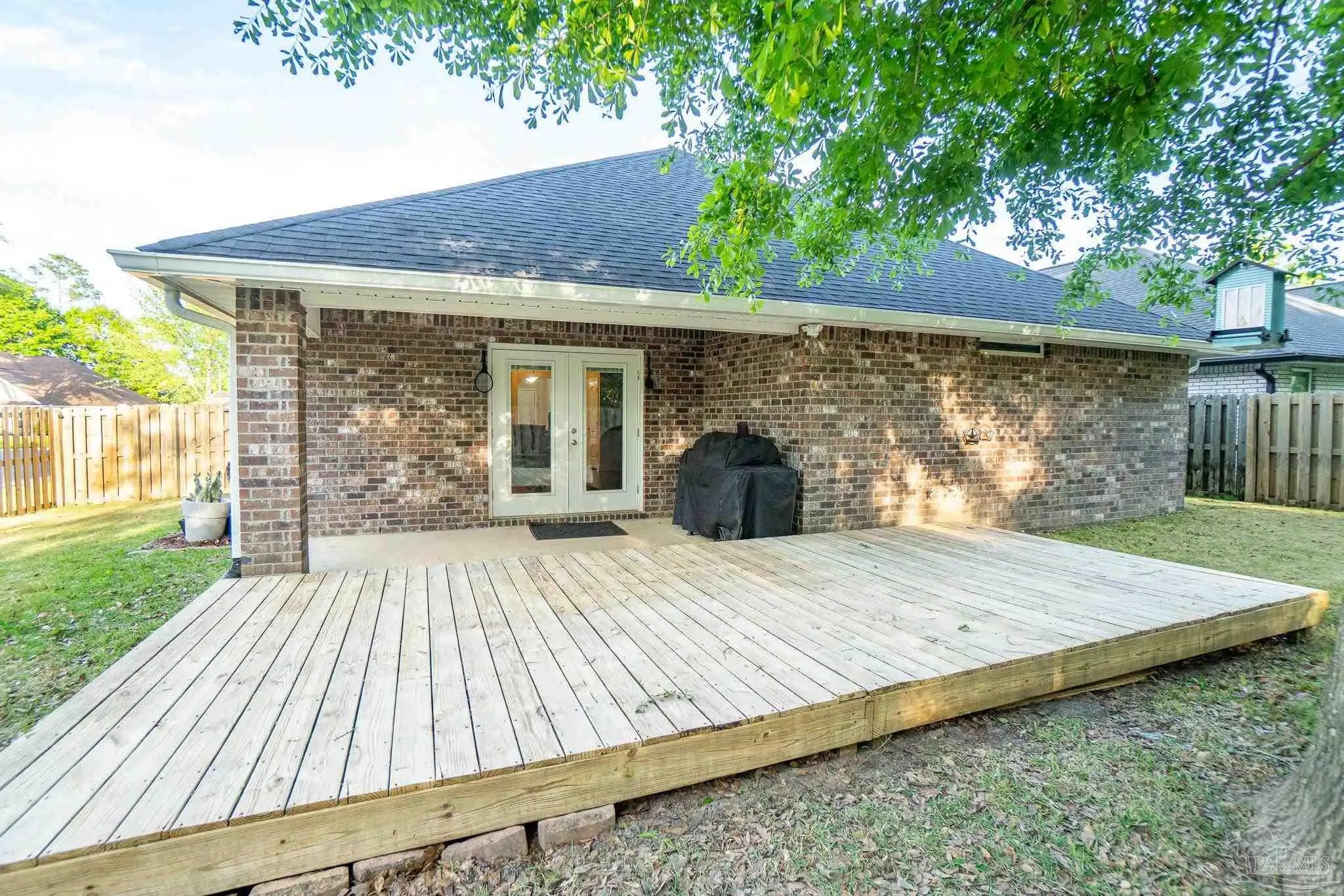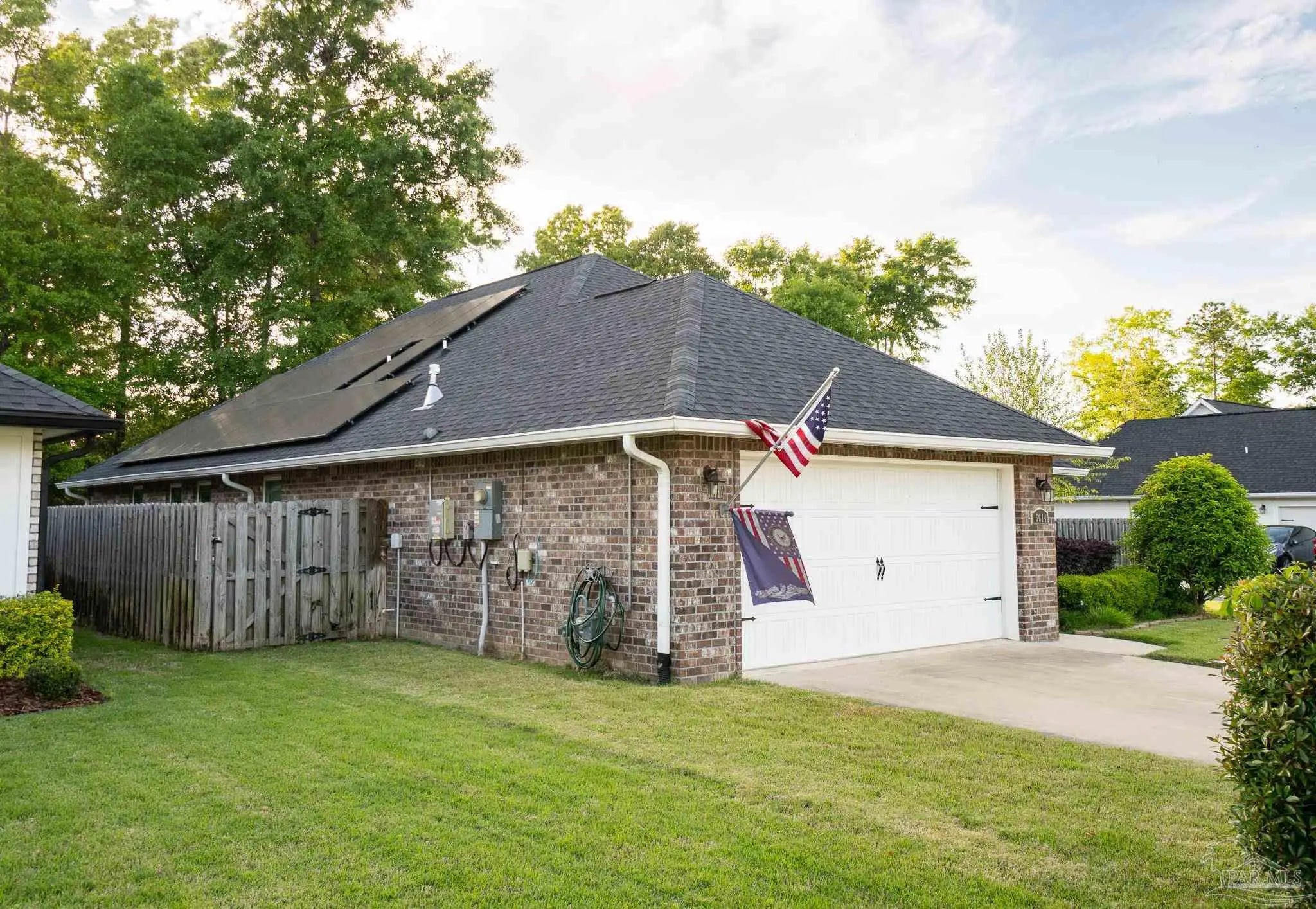 Welcome to this 2019 all brick residence, located within the highly desirable Stonechase gated community. Veteran owned and maintained, this home showcases quality construction throughout, further enhanced by fully paid-off solar panels—a stand-out upgrade valued at approximately $20,000+ in the local market. Be ready for significant savings on monthly energy costs! The interior boasts high ceilings and an open-concept layout that flows seamlessly, anchored by the kitchen featuring a gas stove and granite countertops. The spacious primary suite with a large walk-in closet creates the perfect tranquil setting. Located on an expansive corner lot, the fenced yard, mature trees, and custom wood deck provide the ideal space for outdoor entertaining. Conveniently located near shopping centers and restaurants, this home provides a blend of a small-town feel with modern convenience.