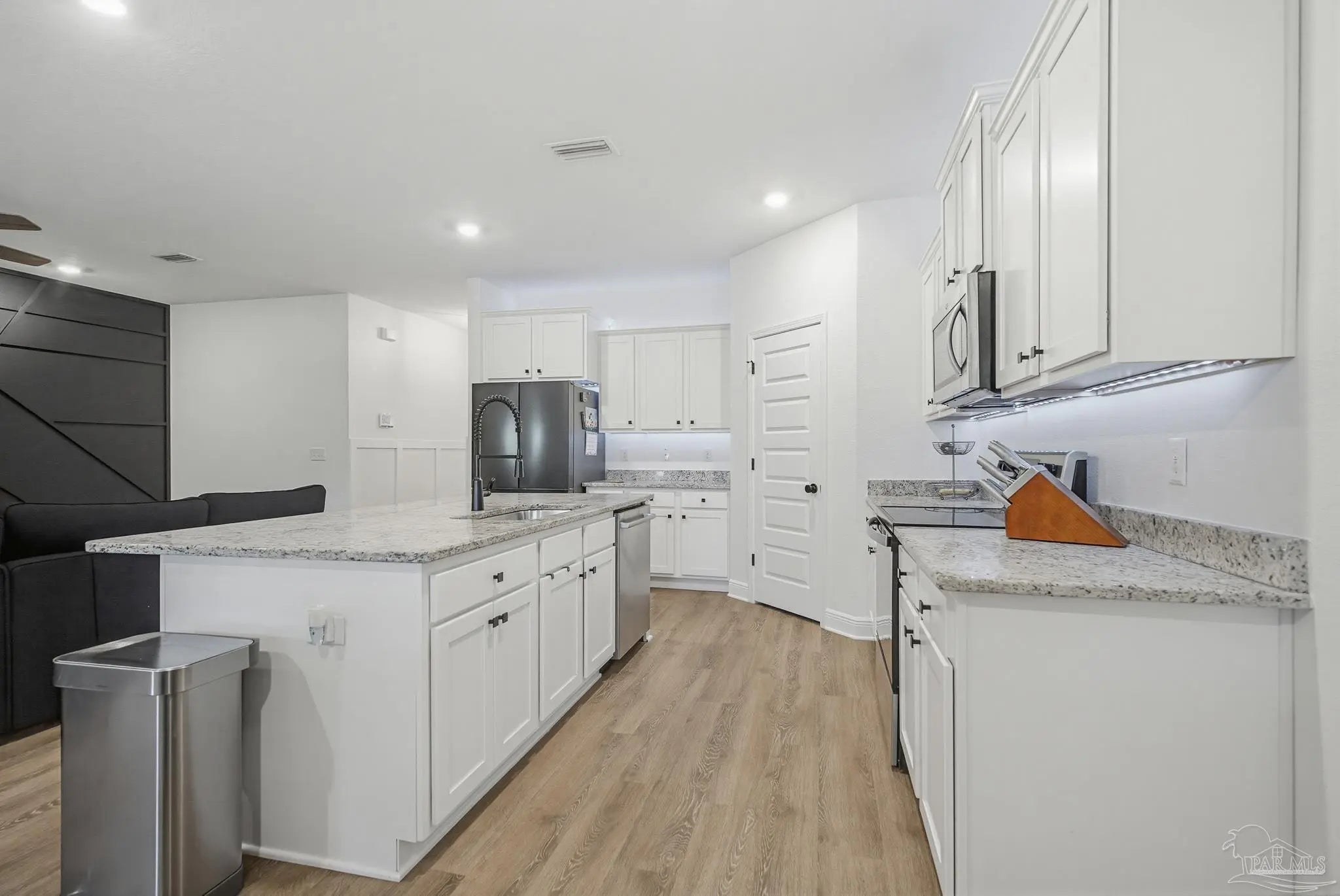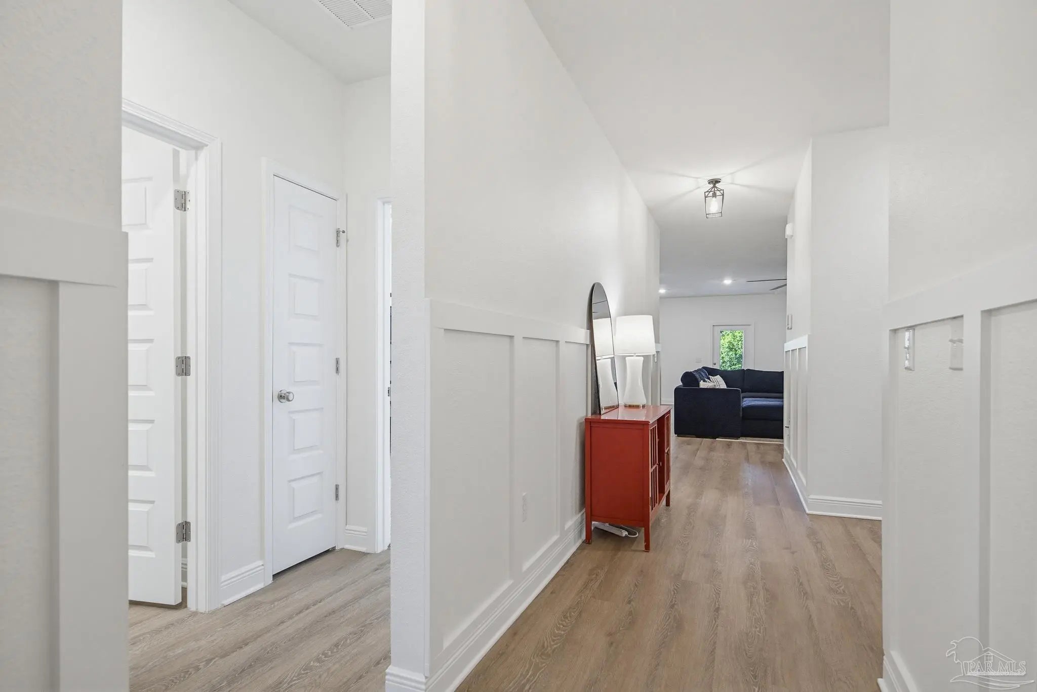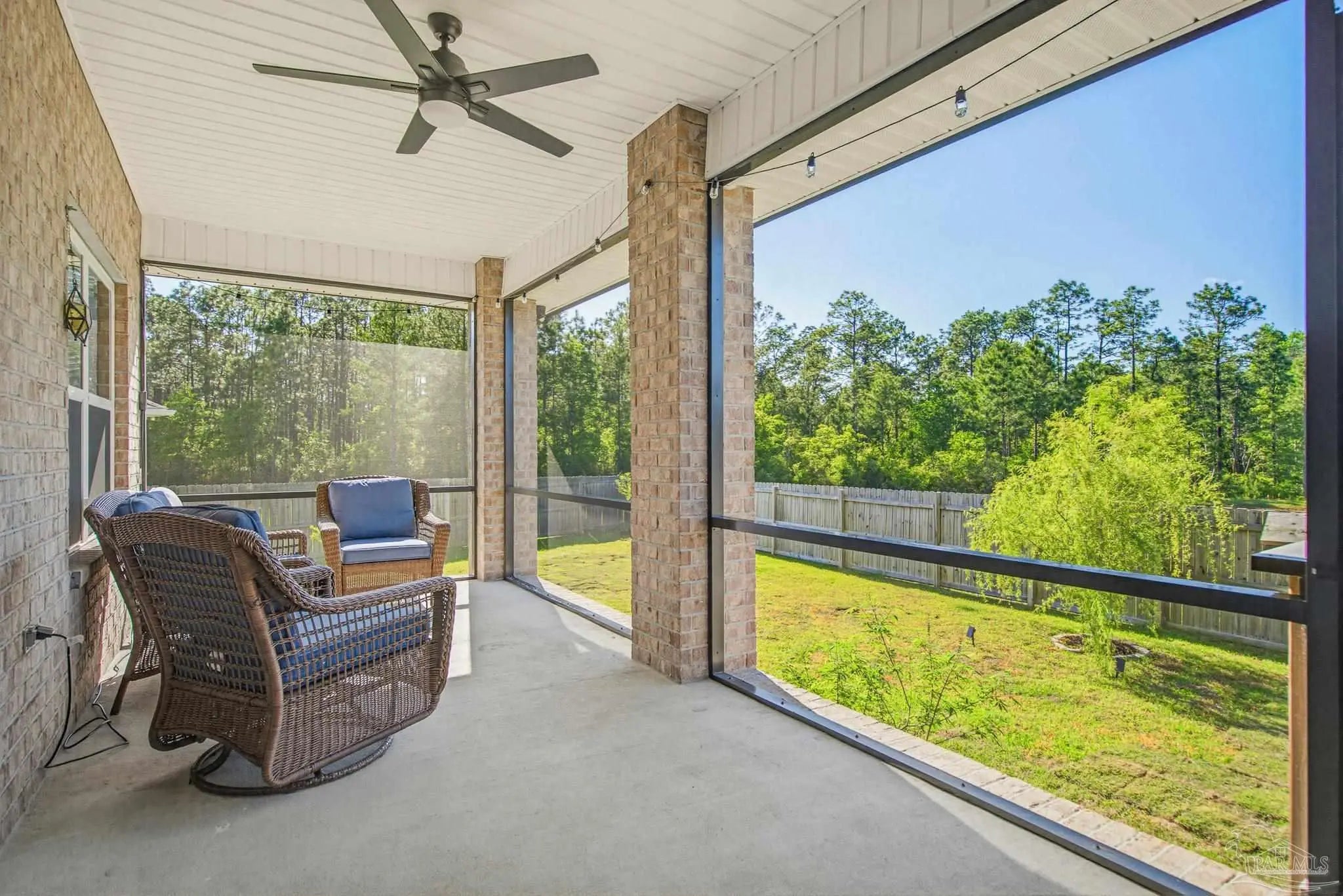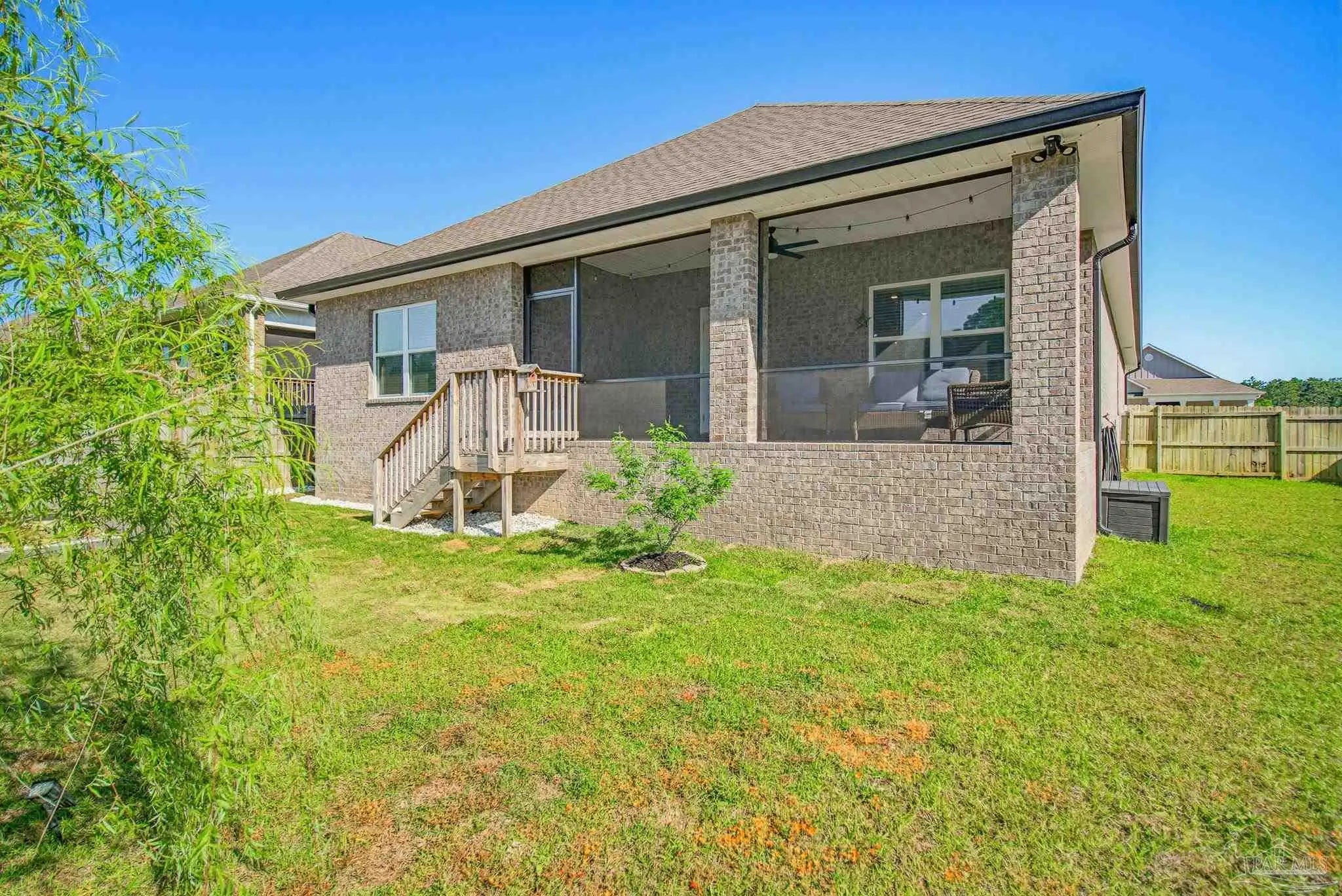 Built in 2022 and located in a sought-after gated community, this stunning 4-bedroom, 2-bath home offers like-new construction with custom touches throughout. The open floor plan is filled with natural light and features detailed trim work that give the home a custom feel. The spacious kitchen is the heart of the home with beautiful cabinetry, granite countertops, stainless steel appliances, a large island, pantry with plenty of space to gather and entertain. The split-bedroom layout provides privacy, with a spacious primary suite featuring a luxurious bath and walk-in closet. Three additional bedrooms offer flexibility for guests, family, or a home office. Step outside to enjoy the screened in covered back porch and beautifully maintained yard with sprinkler system, all within the security and convenience of gated community with a swimming pool. With modern finishes, thoughtful upgrades, and a prime location close to shopping, dining, and top schools, this move-in ready home is one you do not want to miss. Come see it today.