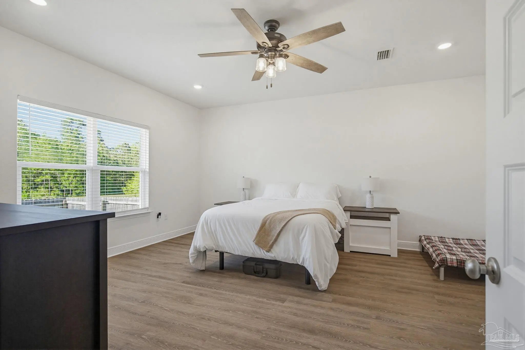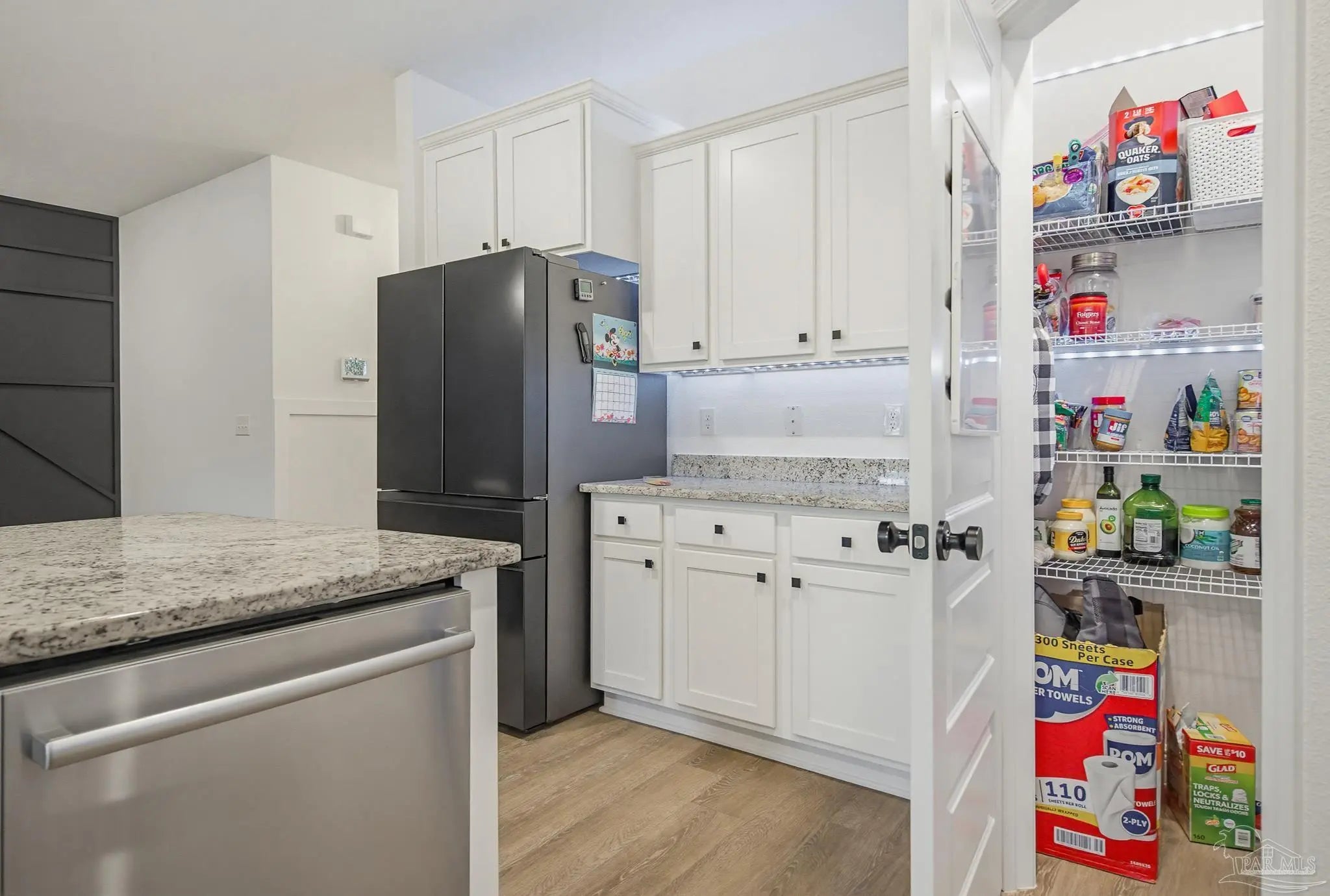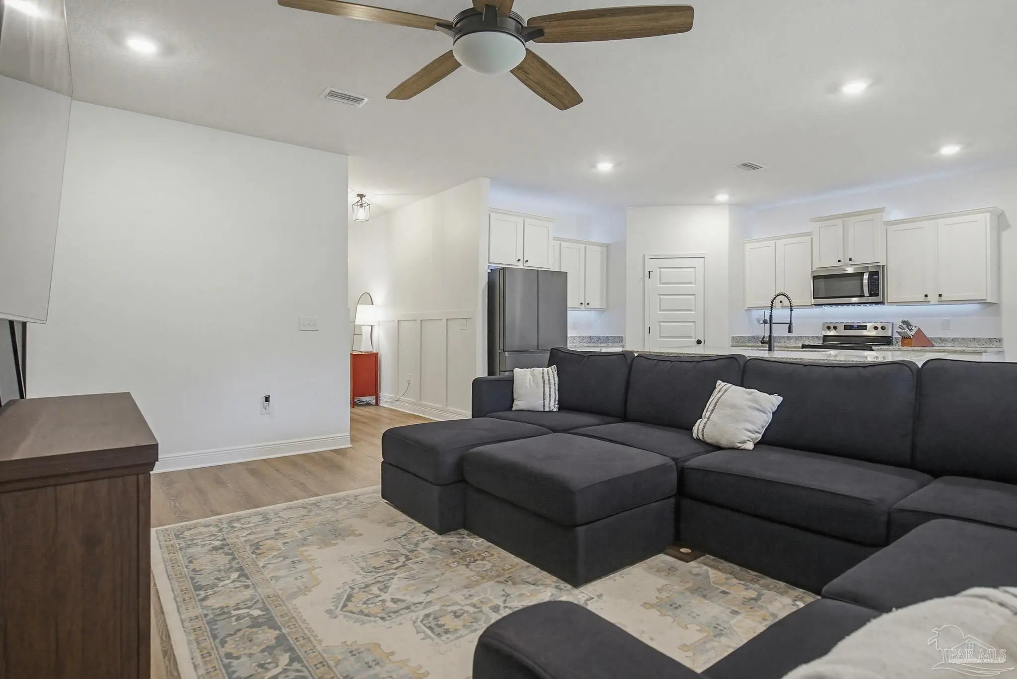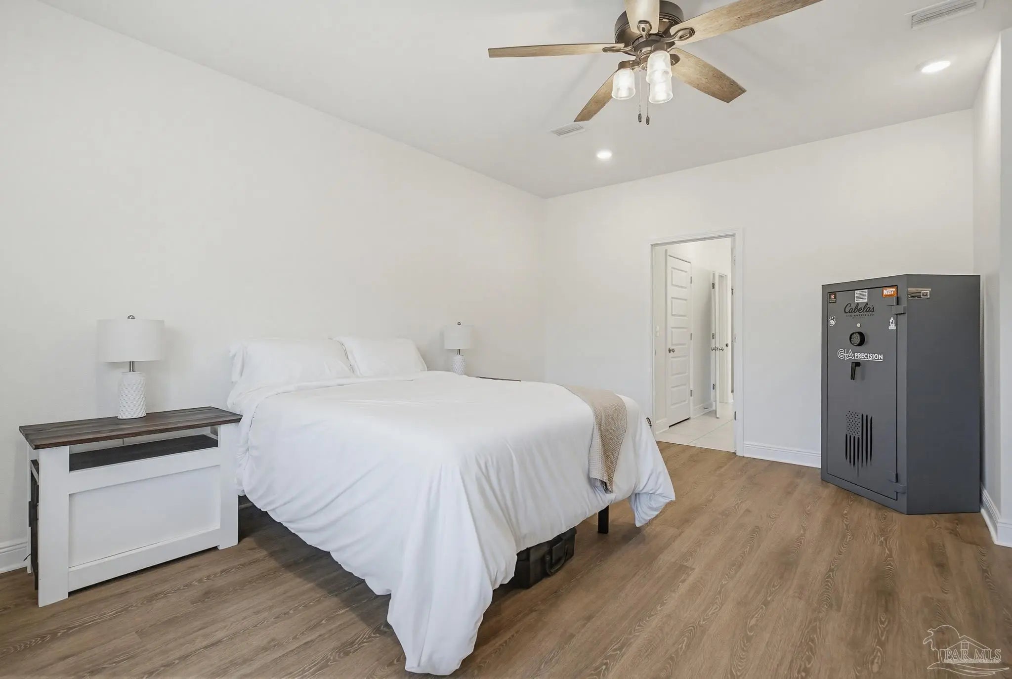 Built in 2022 and located in a sought-after gated community, this stunning 4-bedroom, 2-bath home offers like-new construction with custom touches throughout. The open floor plan is filled with natural light and features detailed trim work that give the home a custom feel. The spacious kitchen is the heart of the home with beautiful cabinetry, granite countertops, stainless steel appliances, a large island, pantry with plenty of space to gather and entertain. The split-bedroom layout provides privacy, with a spacious primary suite featuring a luxurious bath and walk-in closet. Three additional bedrooms offer flexibility for guests, family, or a home office. Step outside to enjoy the screened in covered back porch and beautifully maintained yard with sprinkler system, all within the security and convenience of gated community with a swimming pool. With modern finishes, thoughtful upgrades, and a prime location close to shopping, dining, and top schools, this move-in ready home is one you do not want to miss. Come see it today.