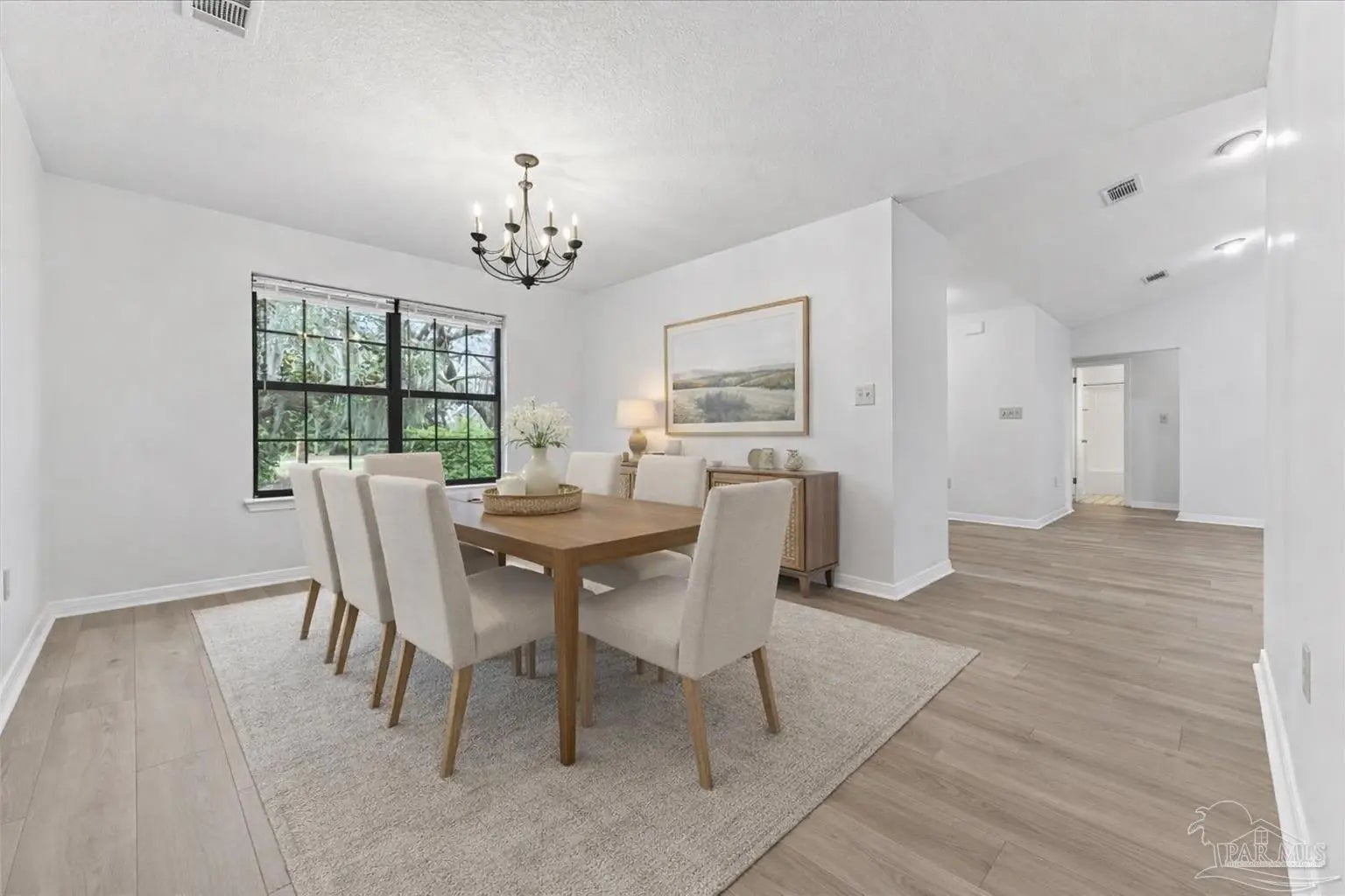 Situated on a beautiful corner lot in the desirable Poquito Bayou area, this home is surrounded by mature live oaks that provide exceptional shade, privacy, and standout curb appeal! With no HOA and a prime location just off Hurlburt Road, you’ll enjoy convenient access to the Poquito Boat Ramp (within a mile), Eglin AFB (under 4 miles), VPS Airport (15 minutes), and the beach (within 9 miles). Inside, the home has been refreshed with fresh paint throughout and new LVP flooring in the main living areas, kitchen, and all bedrooms. The living room features abundant natural light, a vaulted ceiling and a cozy brick fireplace, creating a warm and inviting focal point. A formal dining room offers flexibility and can easily serve as a home office, playroom, or gym. The kitchen includes a sunny breakfast nook and all black appliances. The split primary suite offers privacy and features an en suite bathroom with double vanities, a large walk-in closet, a garden tub, a tiled walk-in shower, and a separate water closet. Each additional bedroom also includes its own walk-in closet and enjoys peaceful views of the surrounding trees. A full bathroom with a tub/shower combo is conveniently located between the secondary bedrooms. Step out back to a spacious open deck, perfect for grilling or relaxing, a large shade tree, and a storage shed for added convenience. With its location near Eglin AFB, this property also presents strong rental potential! This home offers a great location and so much charm, making it an excellent place to call home or a smart investment opportunity!