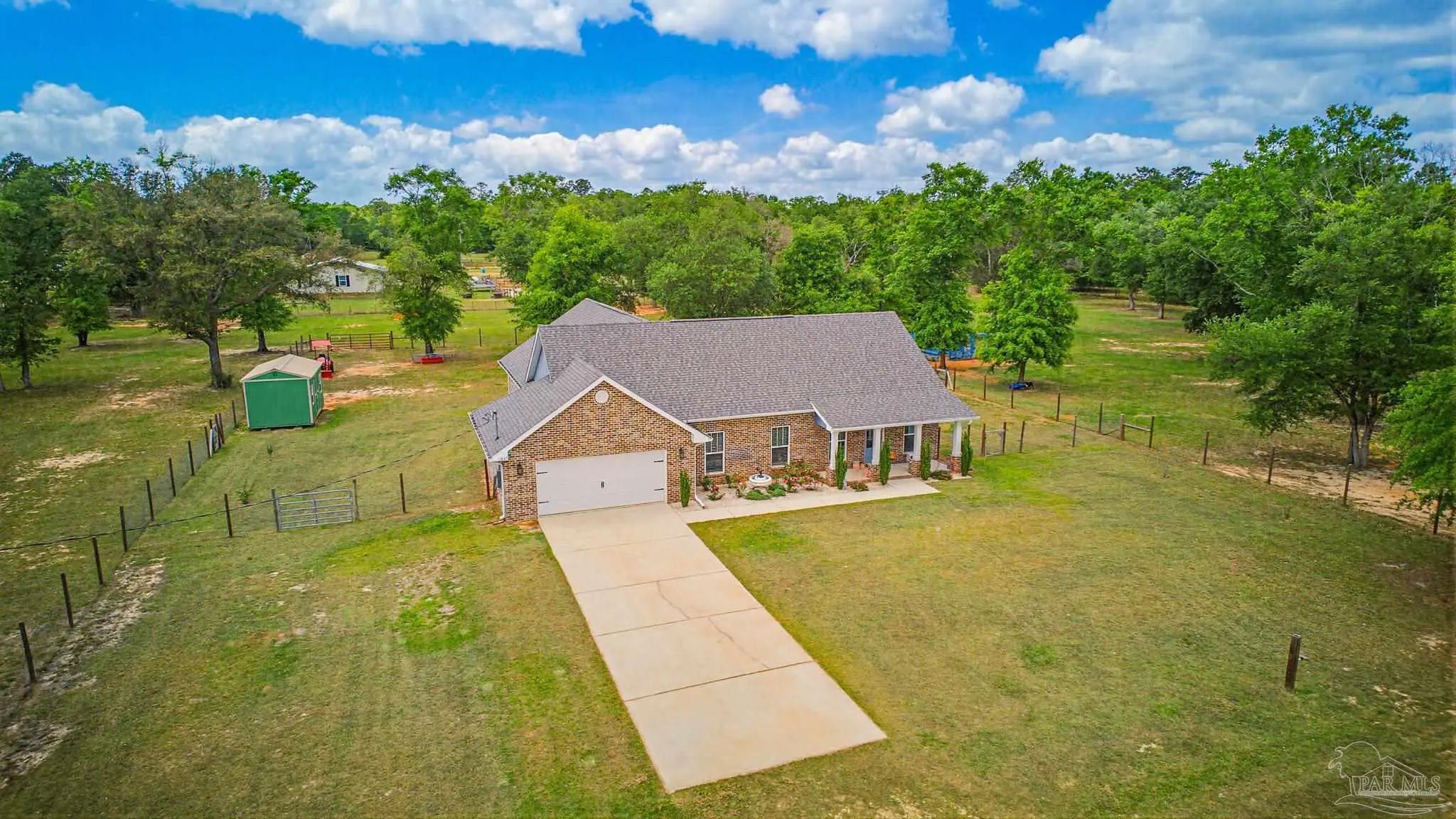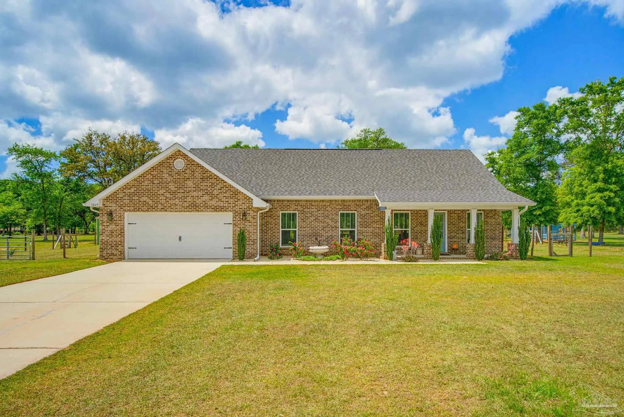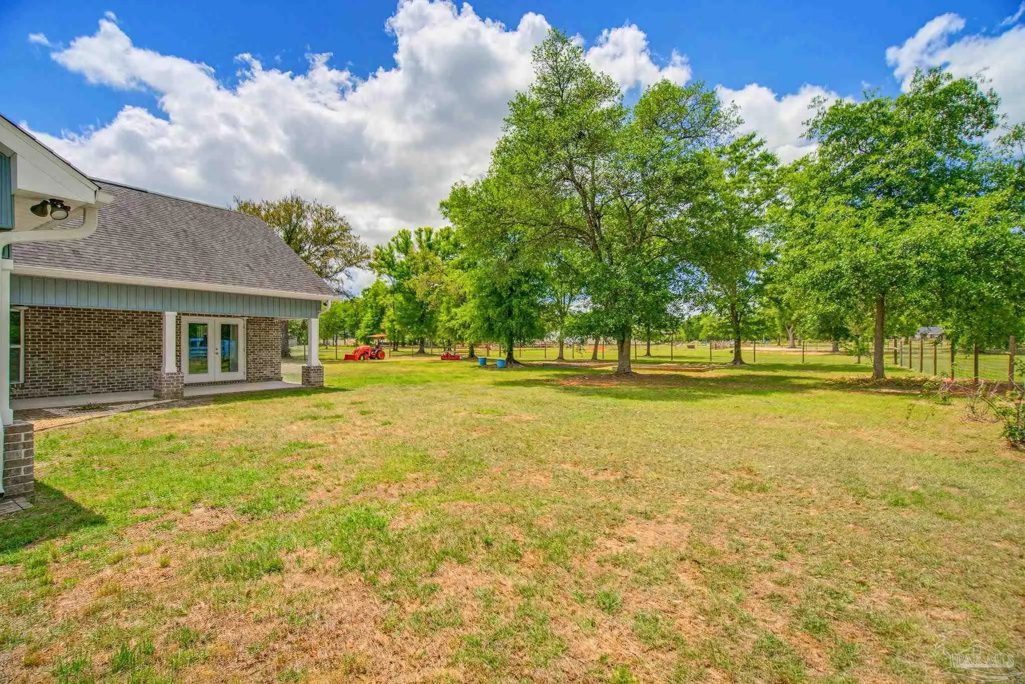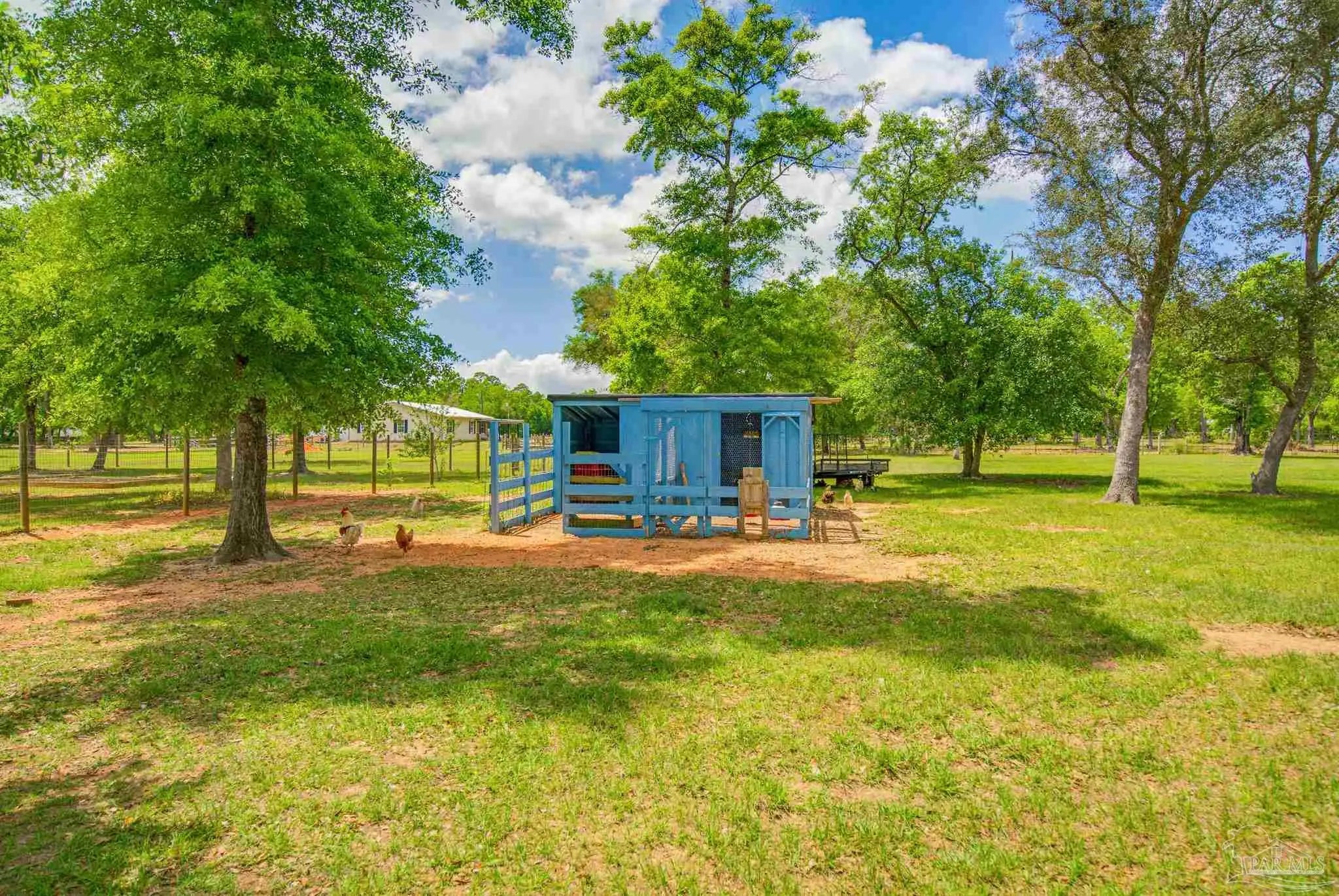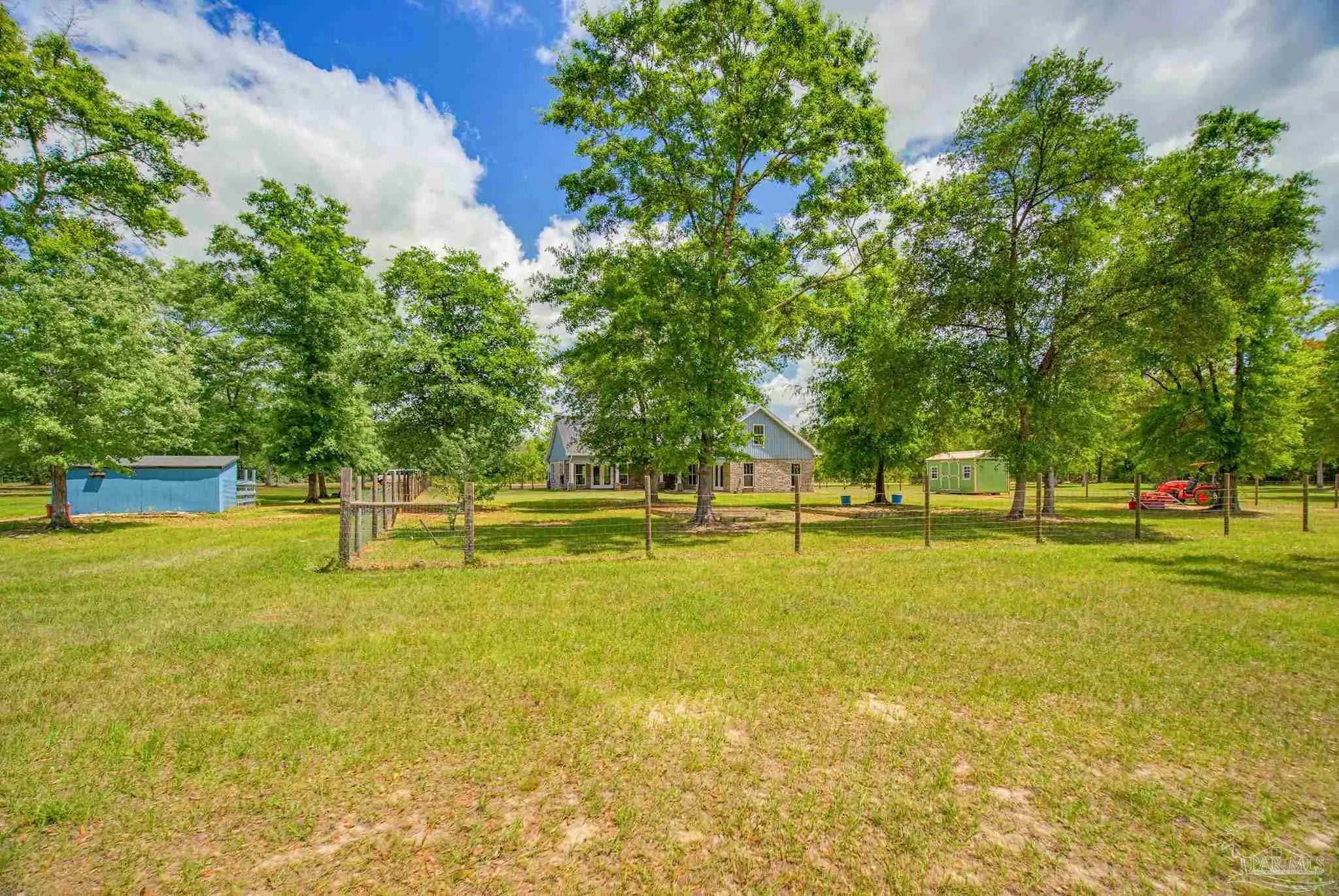 Welcome to your own private slice of country paradise—just under 30 minutes from the white sandy shores of Navarre Beach. Nestled on over 4 acres, this beautifully maintained 2020-built home offers the perfect blend of modern comfort and peaceful rural living. Step inside to an inviting open-concept layout where the kitchen, dining, and living areas flow seamlessly beneath soaring vaulted ceilings—ideal for both everyday living and entertaining. The kitchen is a standout, featuring stunning marble countertops, a large island, and ample space for gathering. Continuous luxury vinyl flooring runs throughout the home, adding both durability and style. The spacious primary suite offers a relaxing retreat and opens directly onto the covered patio, creating a seamless indoor-outdoor connection perfect for quiet mornings or evening relaxation. Out back, a covered patio spans the entire length of the home—an incredible feature that creates an expansive space for entertaining, relaxing, or taking in the peaceful surroundings year-round. The property truly shines with established paddocks and a charming chicken coop, making it ready for your homesteading dreams. With plenty of land, there’s ample space to store boats, RVs, or even add a pool. Upstairs, you’ll find another bedroom and a versatile bonus room that can easily serve as a fourth bedroom, home office, or flex space to suit your needs. Surrounded by tranquility and wide-open space, this property delivers the peace and quiet you’ve been searching for without sacrificing convenience to the coast. Whether you’re looking for room to roam, hobby farm potential, or simply a serene lifestyle, this one checks all the boxes.