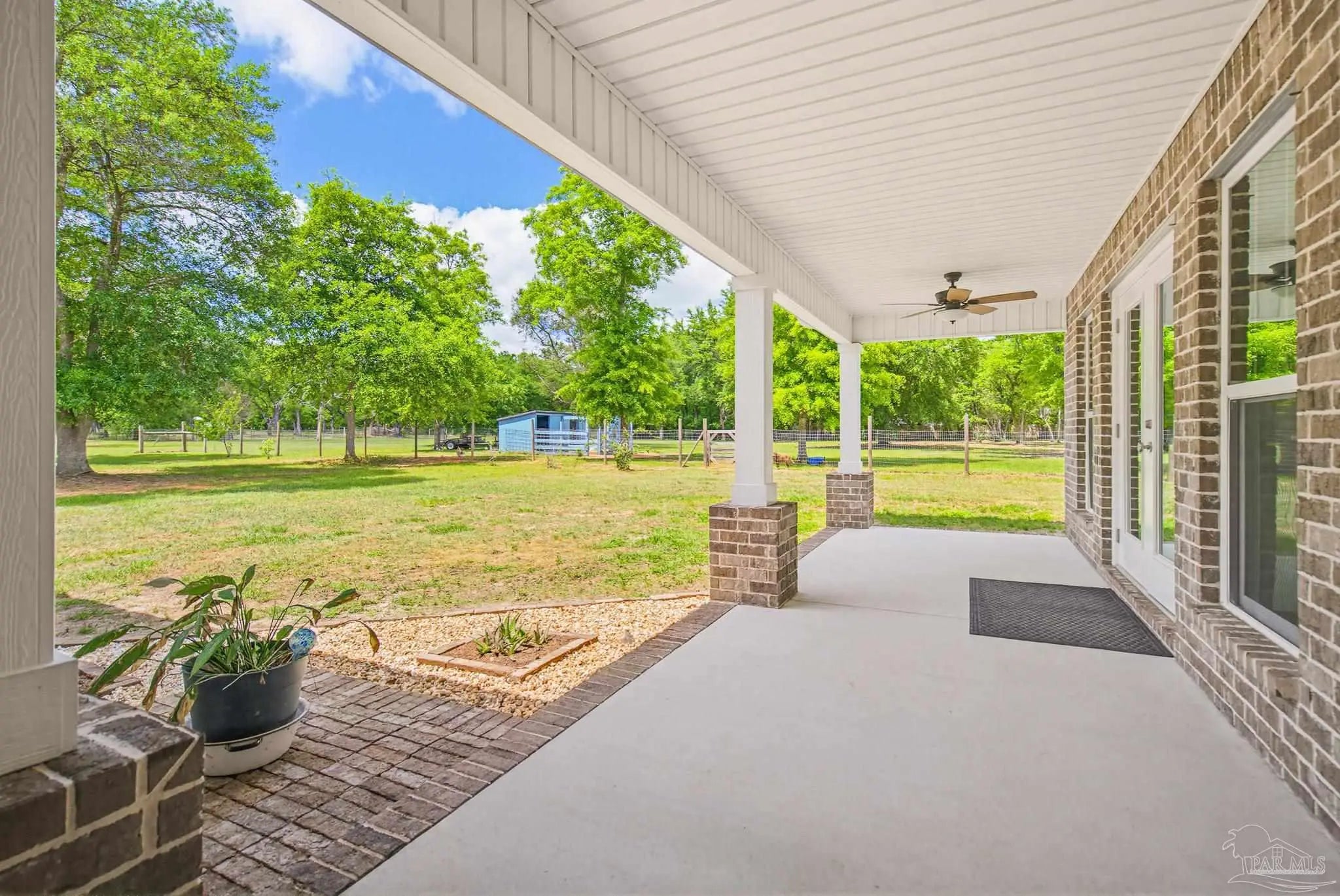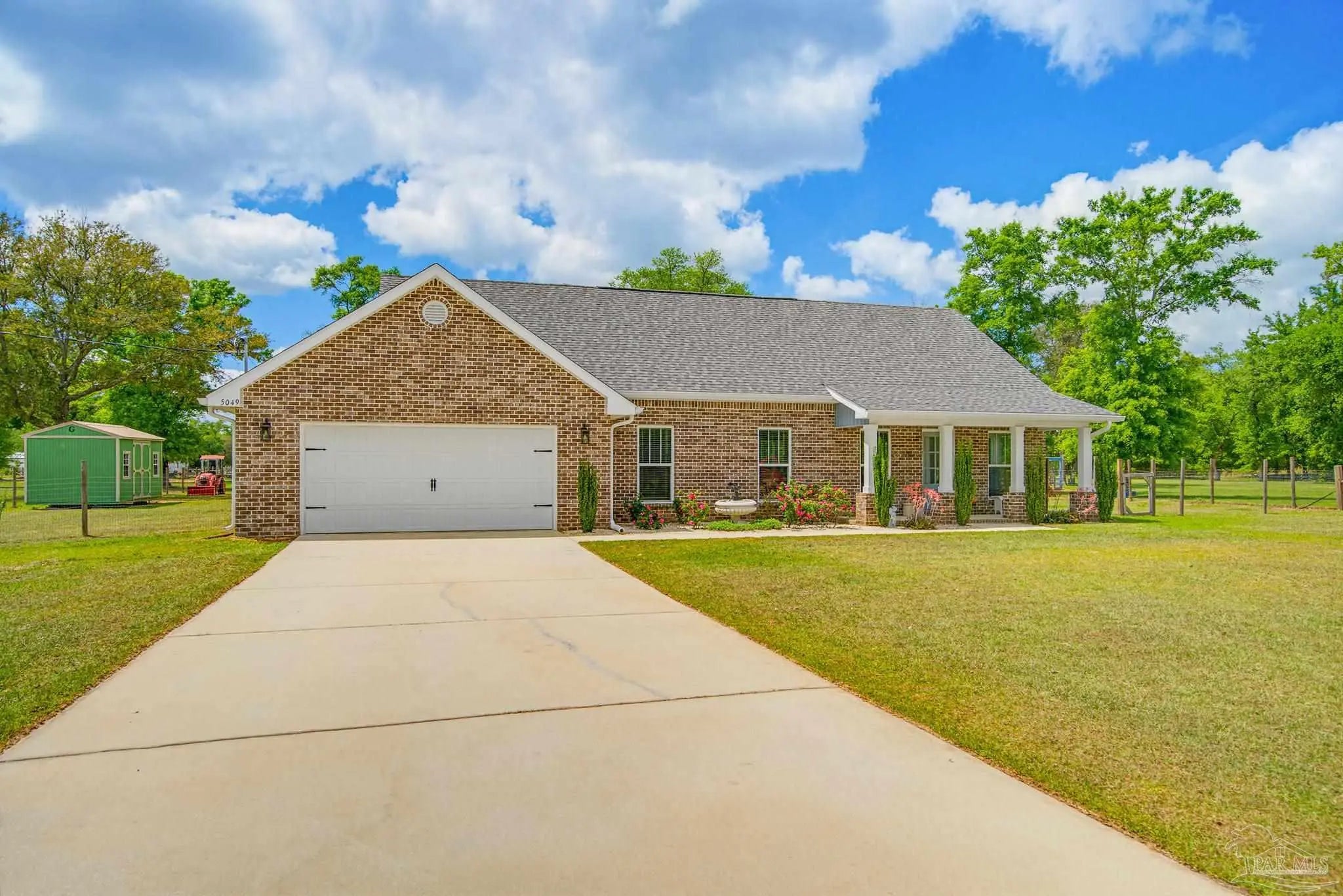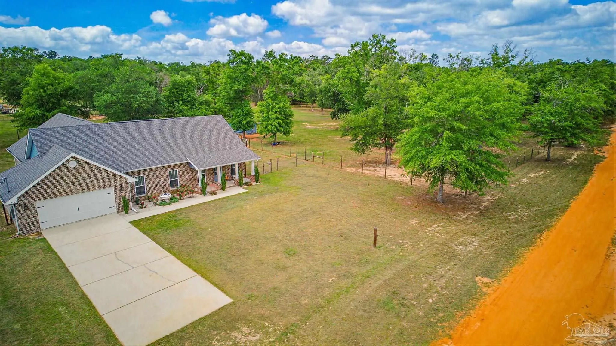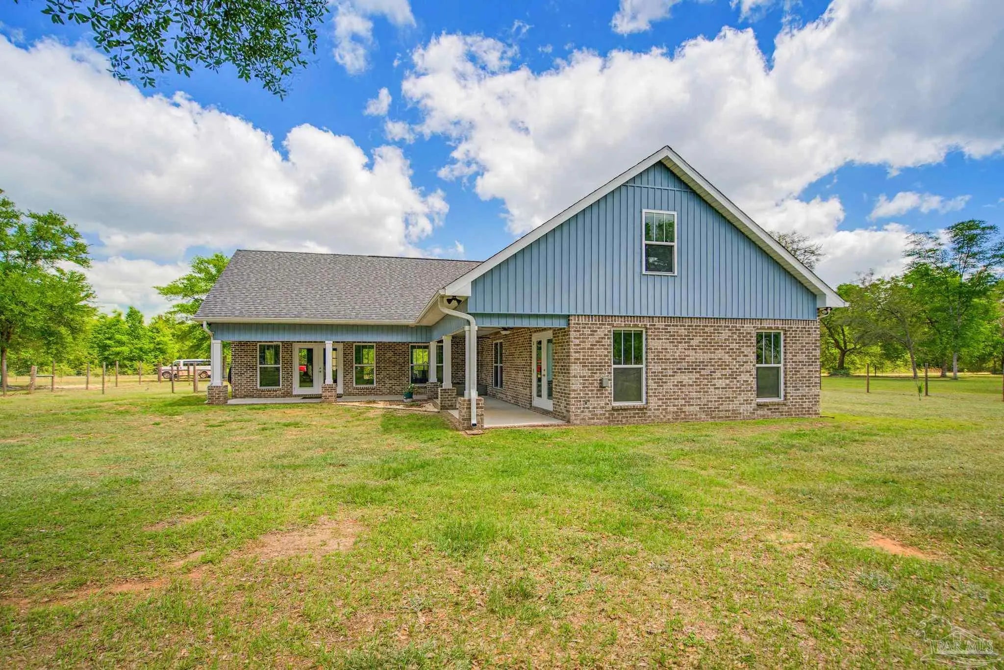 Welcome to your own private slice of country paradise—just under 30 minutes from the white sandy shores of Navarre Beach. Nestled on over 4 acres, this beautifully maintained 2020-built home offers the perfect blend of modern comfort and peaceful rural living. Step inside to an inviting open-concept layout where the kitchen, dining, and living areas flow seamlessly beneath soaring vaulted ceilings—ideal for both everyday living and entertaining. The kitchen is a standout, featuring stunning marble countertops, a large island, and ample space for gathering. Continuous luxury vinyl flooring runs throughout the home, adding both durability and style. The spacious primary suite offers a relaxing retreat and opens directly onto the covered patio, creating a seamless indoor-outdoor connection perfect for quiet mornings or evening relaxation. Out back, a covered patio spans the entire length of the home—an incredible feature that creates an expansive space for entertaining, relaxing, or taking in the peaceful surroundings year-round. The property truly shines with established paddocks and a charming chicken coop, making it ready for your homesteading dreams. With plenty of land, there’s ample space to store boats, RVs, or even add a pool. Upstairs, you’ll find another bedroom and a versatile bonus room that can easily serve as a fourth bedroom, home office, or flex space to suit your needs. Surrounded by tranquility and wide-open space, this property delivers the peace and quiet you’ve been searching for without sacrificing convenience to the coast. Whether you’re looking for room to roam, hobby farm potential, or simply a serene lifestyle, this one checks all the boxes.
