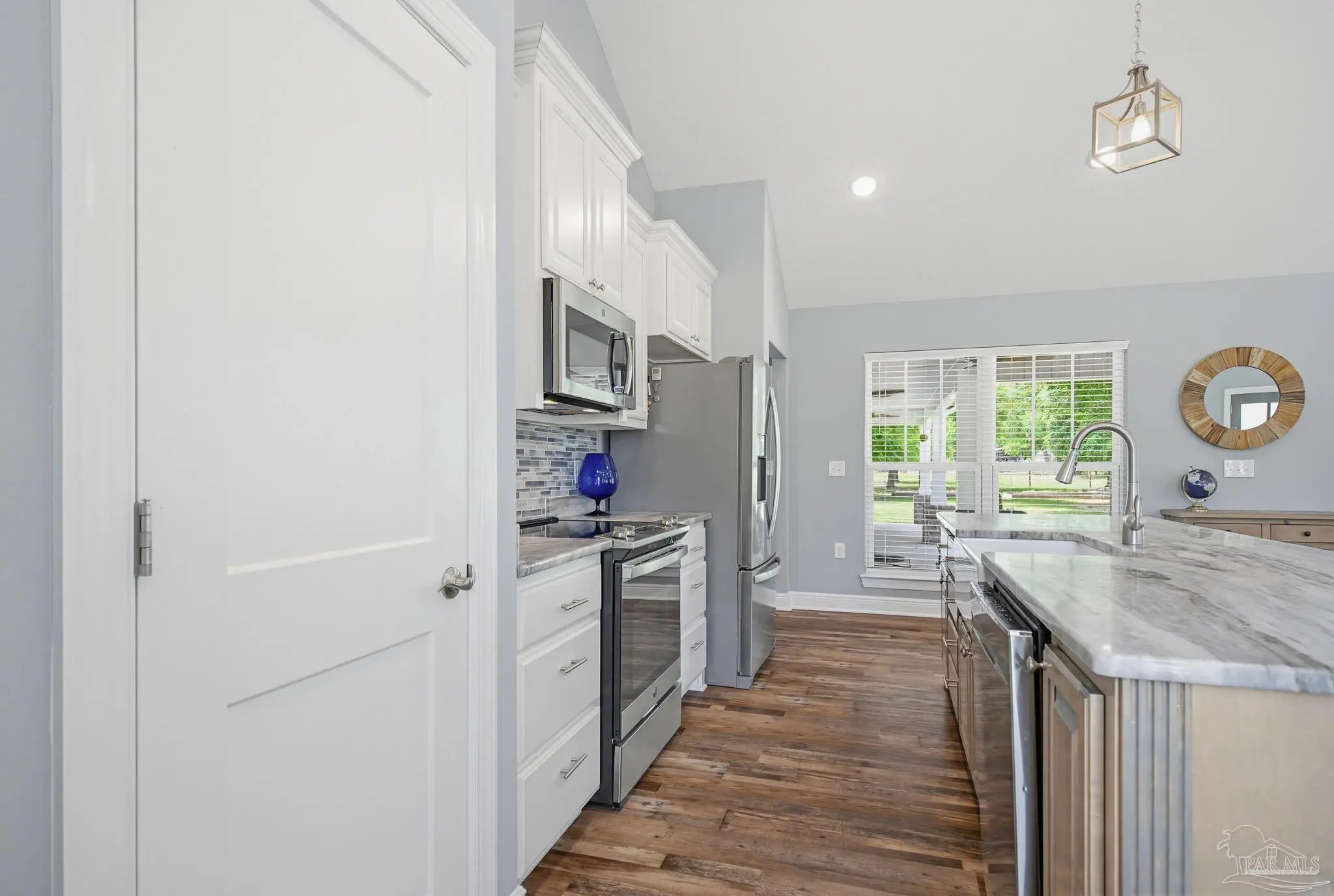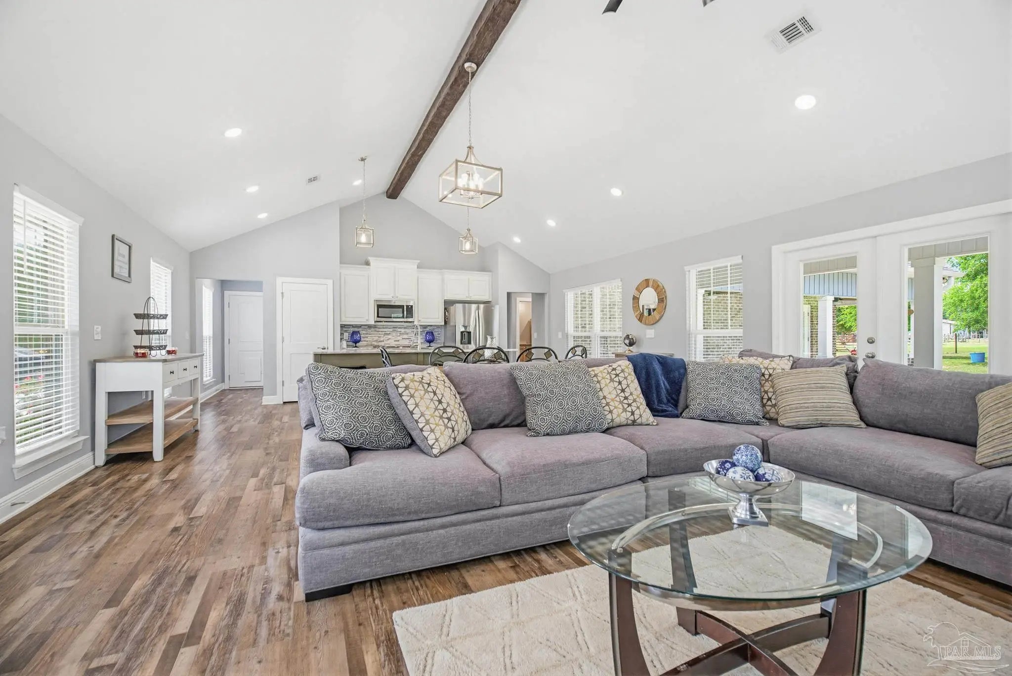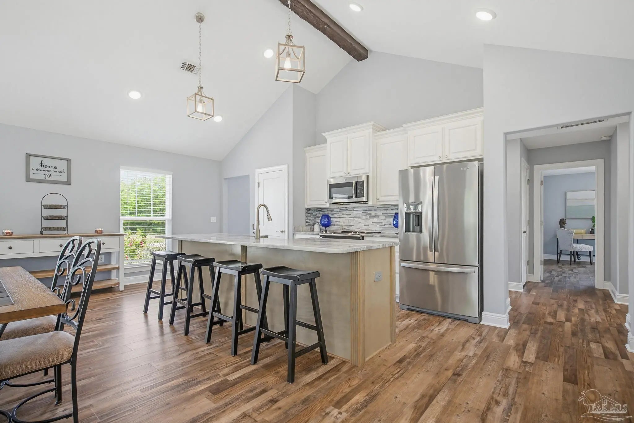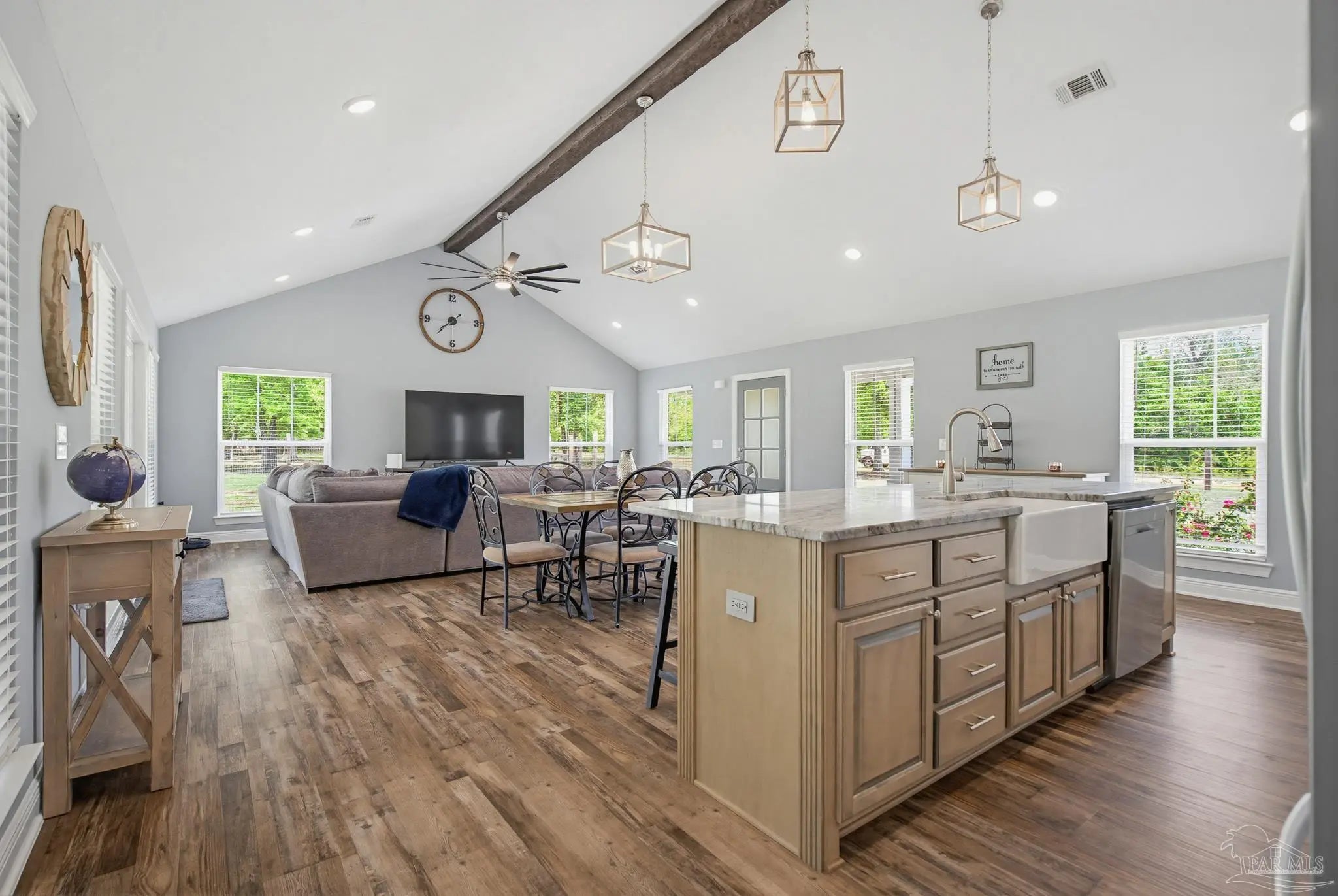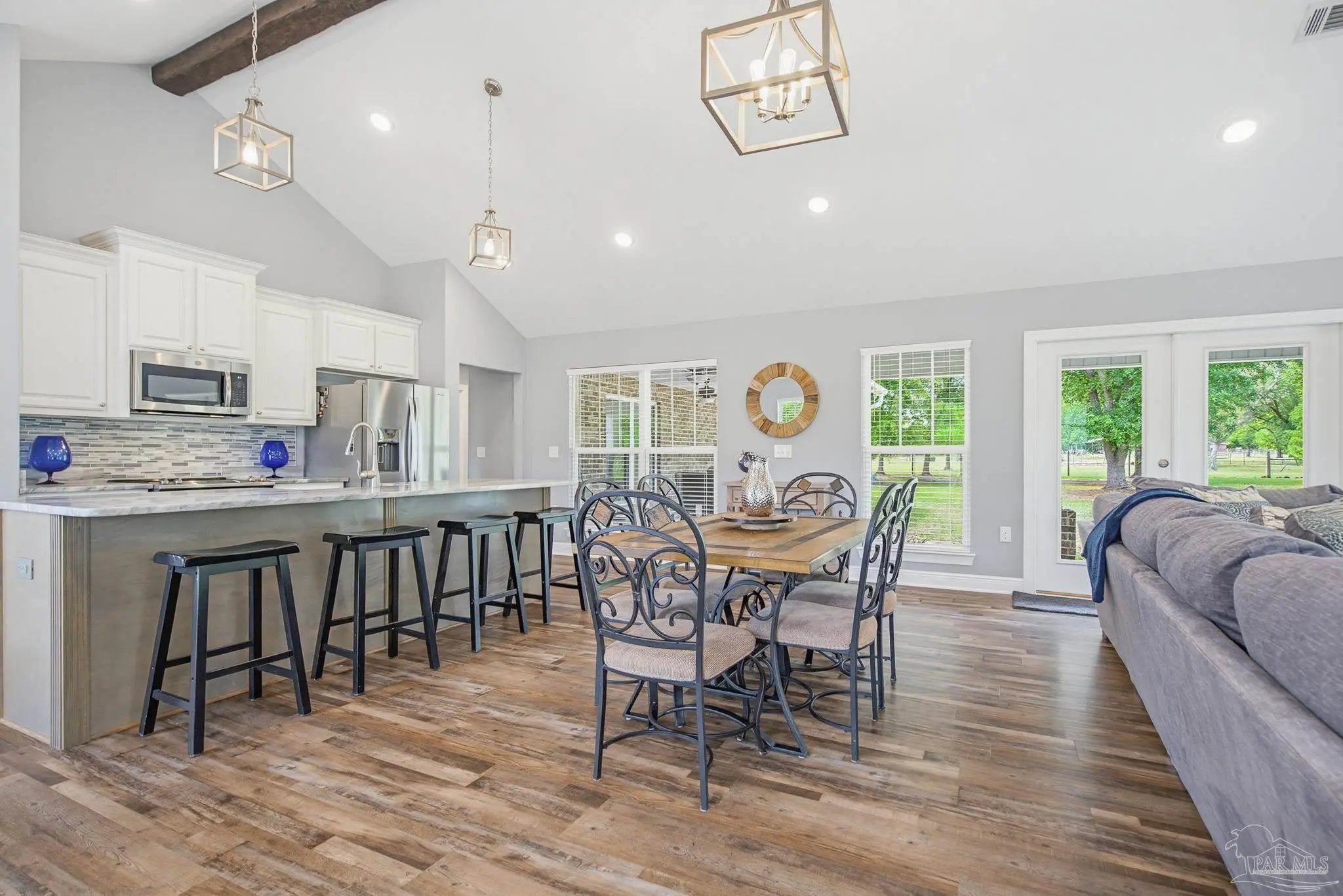 Welcome to your own private slice of country paradise—just under 30 minutes from the white sandy shores of Navarre Beach. Nestled on over 4 acres, this beautifully maintained 2020-built home offers the perfect blend of modern comfort and peaceful rural living. Step inside to an inviting open-concept layout where the kitchen, dining, and living areas flow seamlessly beneath soaring vaulted ceilings—ideal for both everyday living and entertaining. The kitchen is a standout, featuring stunning marble countertops, a large island, and ample space for gathering. Continuous luxury vinyl flooring runs throughout the home, adding both durability and style. The spacious primary suite offers a relaxing retreat and opens directly onto the covered patio, creating a seamless indoor-outdoor connection perfect for quiet mornings or evening relaxation. Out back, a covered patio spans the entire length of the home—an incredible feature that creates an expansive space for entertaining, relaxing, or taking in the peaceful surroundings year-round. The property truly shines with established paddocks and a charming chicken coop, making it ready for your homesteading dreams. With plenty of land, there’s ample space to store boats, RVs, or even add a pool. Upstairs, you’ll find another bedroom and a versatile bonus room that can easily serve as a fourth bedroom, home office, or flex space to suit your needs. Surrounded by tranquility and wide-open space, this property delivers the peace and quiet you’ve been searching for without sacrificing convenience to the coast. Whether you’re looking for room to roam, hobby farm potential, or simply a serene lifestyle, this one checks all the boxes.