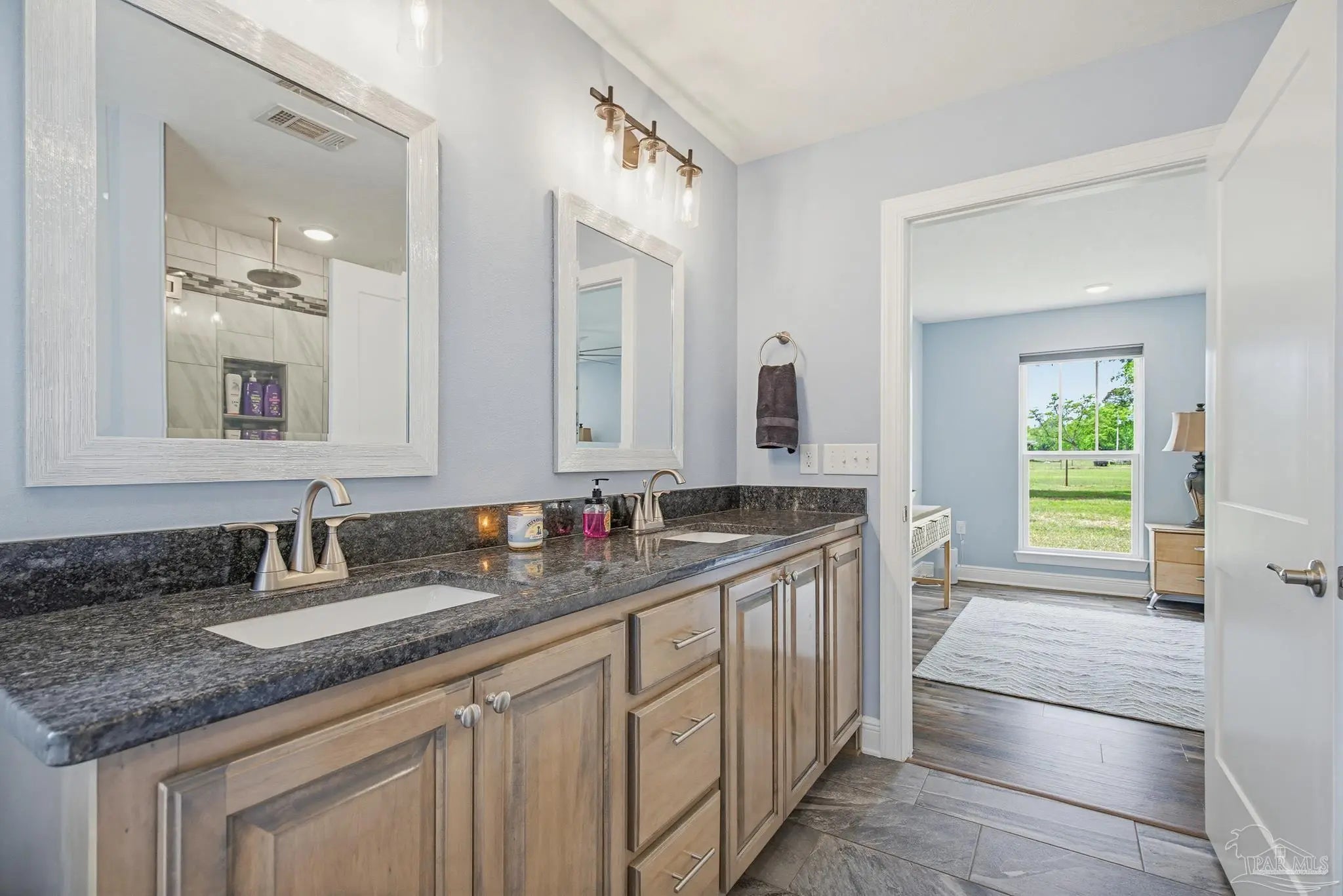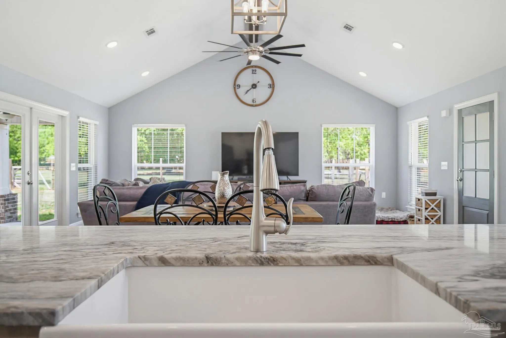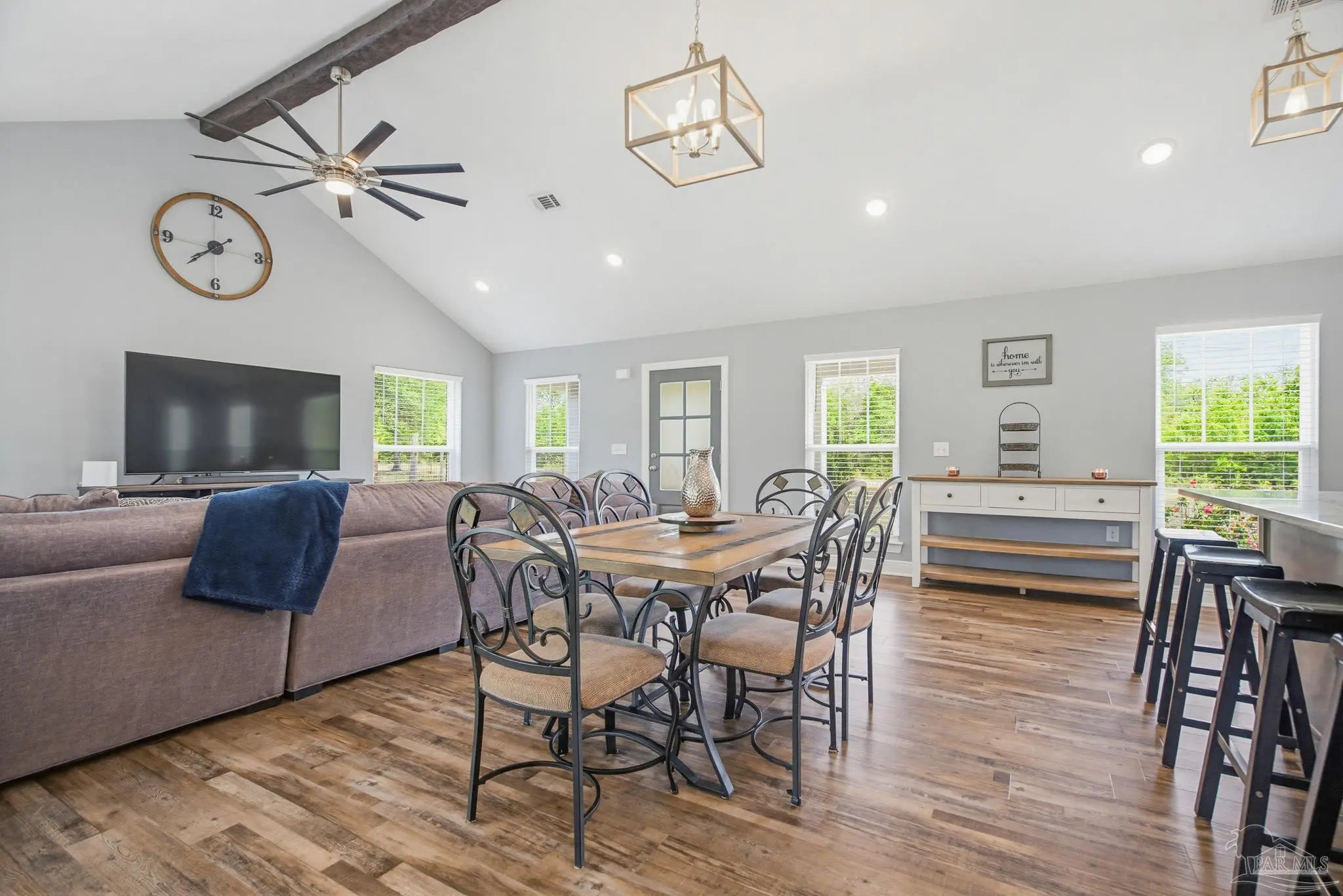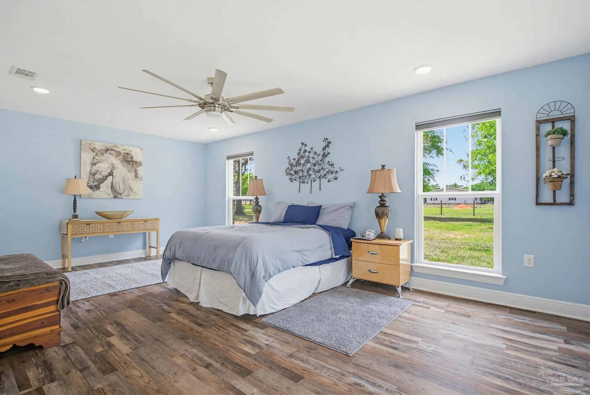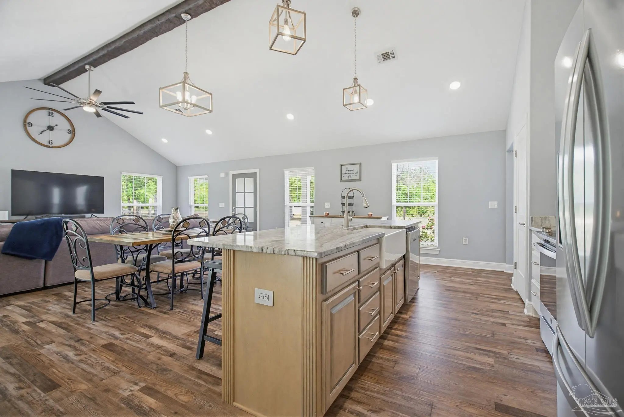 Welcome to your own private slice of country paradise—just under 30 minutes from the white sandy shores of Navarre Beach. Nestled on over 4 acres, this beautifully maintained 2020-built home offers the perfect blend of modern comfort and peaceful rural living. Step inside to an inviting open-concept layout where the kitchen, dining, and living areas flow seamlessly beneath soaring vaulted ceilings—ideal for both everyday living and entertaining. The kitchen is a standout, featuring stunning marble countertops, a large island, and ample space for gathering. Continuous luxury vinyl flooring runs throughout the home, adding both durability and style. The spacious primary suite offers a relaxing retreat and opens directly onto the covered patio, creating a seamless indoor-outdoor connection perfect for quiet mornings or evening relaxation. Out back, a covered patio spans the entire length of the home—an incredible feature that creates an expansive space for entertaining, relaxing, or taking in the peaceful surroundings year-round. The property truly shines with established paddocks and a charming chicken coop, making it ready for your homesteading dreams. With plenty of land, there’s ample space to store boats, RVs, or even add a pool. Upstairs, you’ll find another bedroom and a versatile bonus room that can easily serve as a fourth bedroom, home office, or flex space to suit your needs. Surrounded by tranquility and wide-open space, this property delivers the peace and quiet you’ve been searching for without sacrificing convenience to the coast. Whether you’re looking for room to roam, hobby farm potential, or simply a serene lifestyle, this one checks all the boxes.