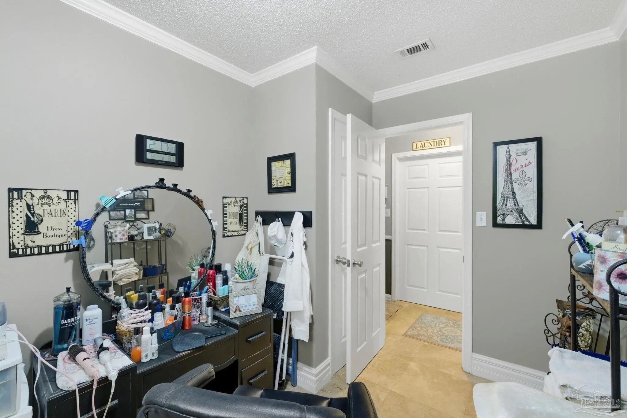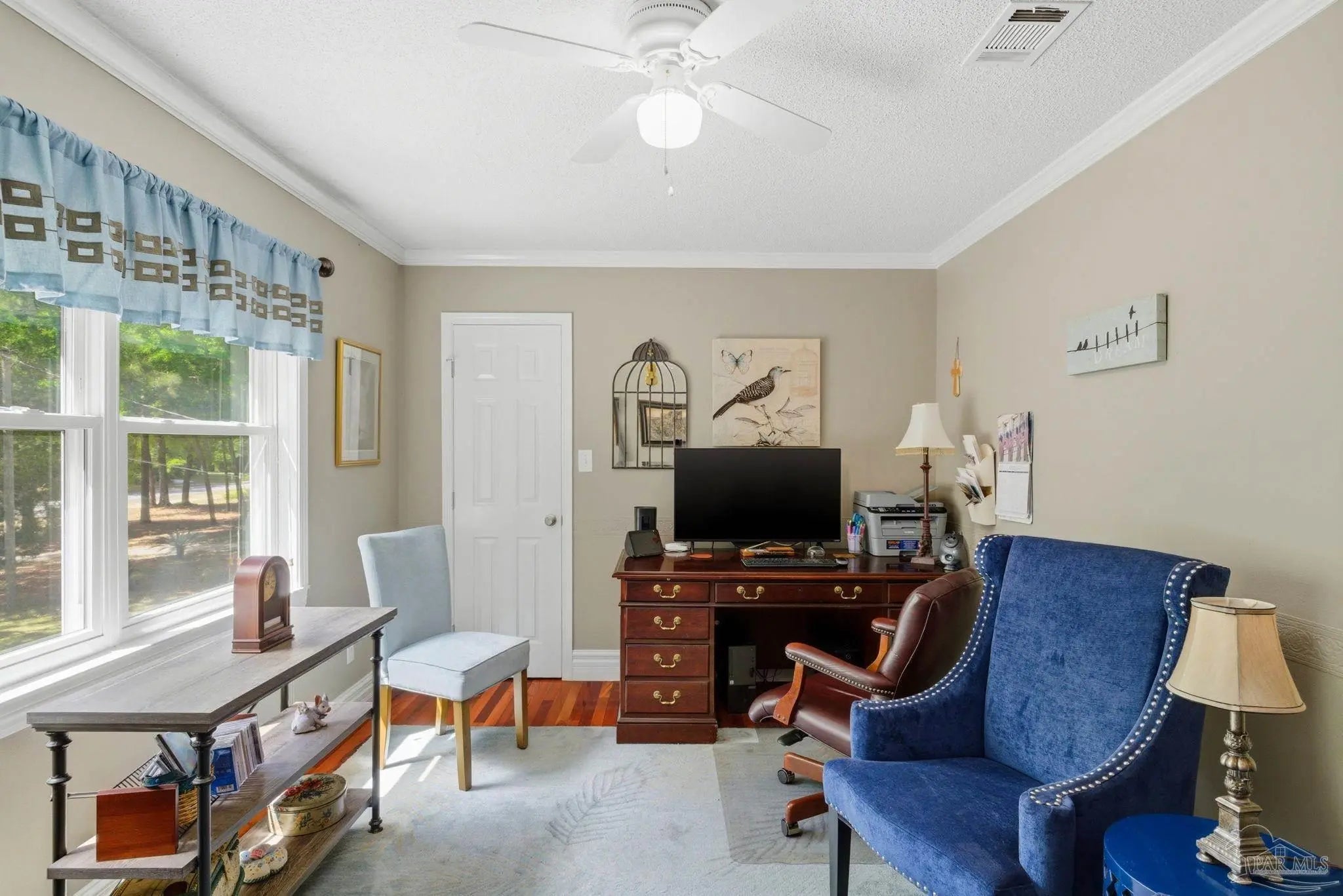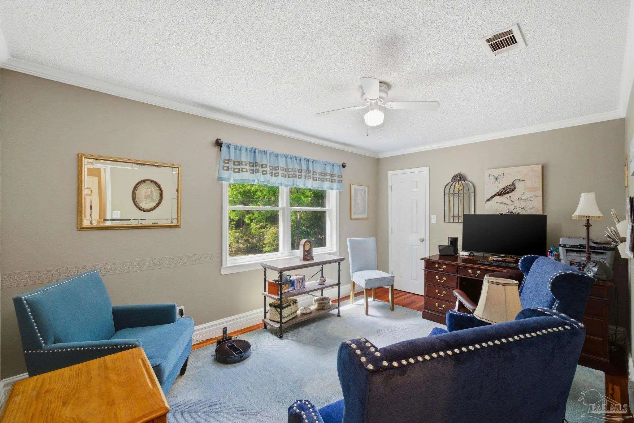 - Ceiling Fan(s), Crown Molding, Central Vacuum