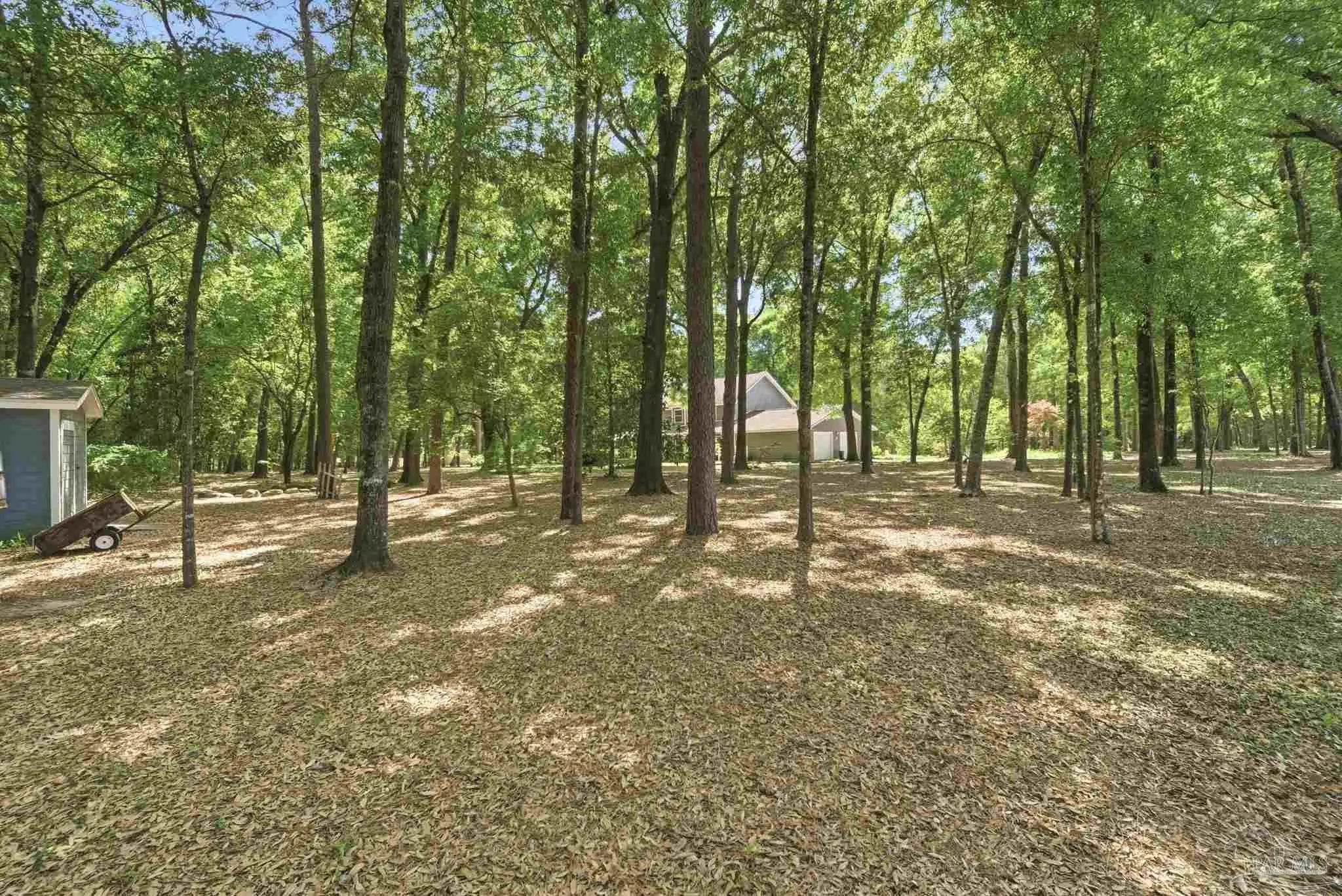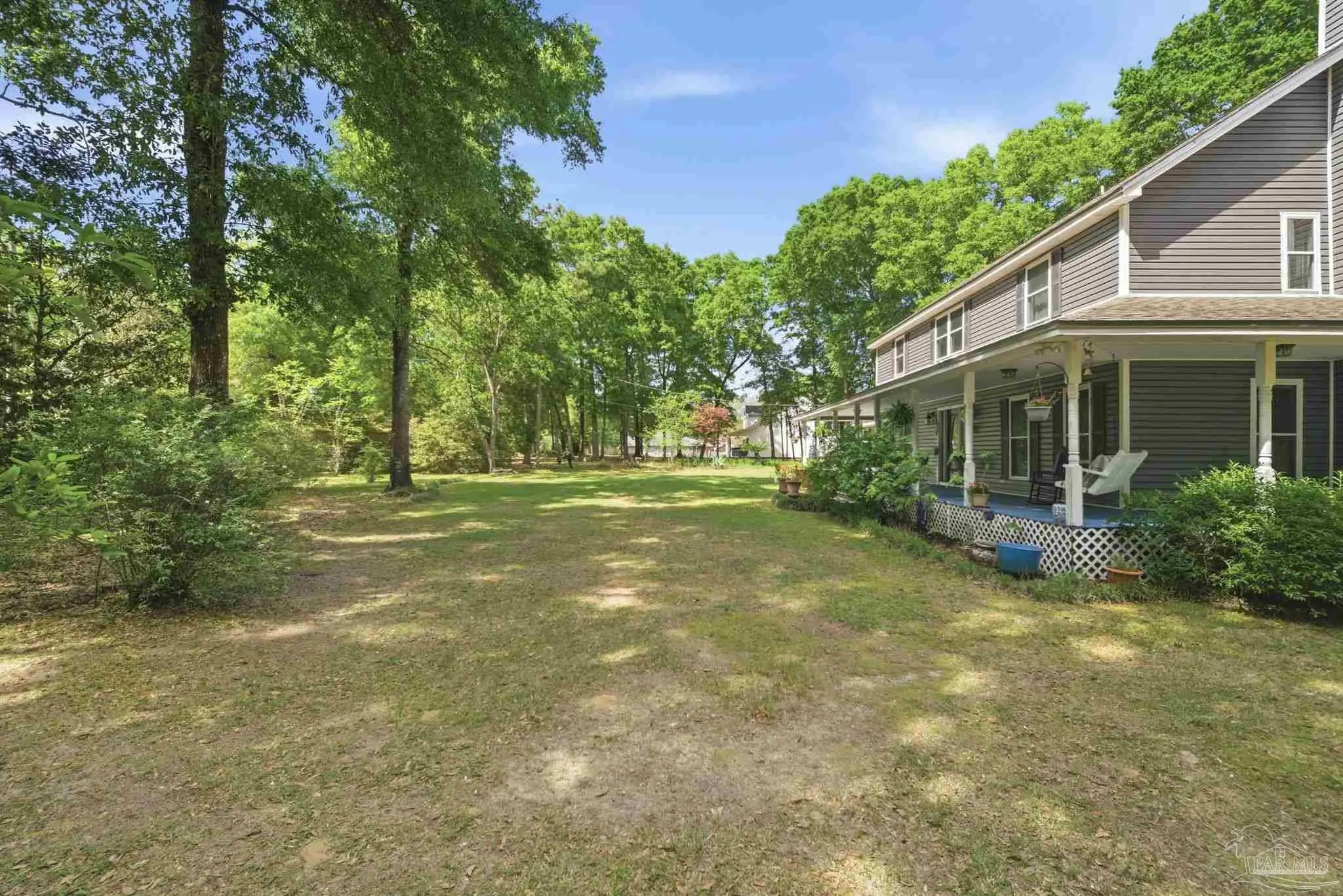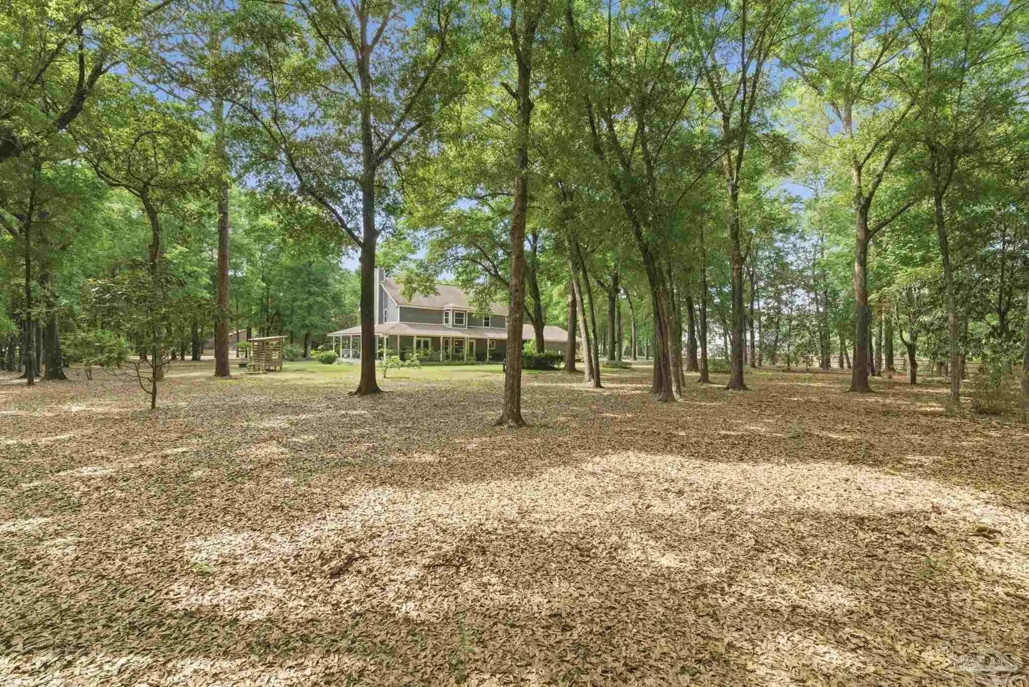 Nestled on 1.86 serene acres dotted with mature oak trees and thoughtfully cleared underbrush, this charming two-story traditional home offers 2,620 square feet of timeless craftsmanship and character featuring vinyl siding and a walk around porch. The property is rich with natural beauty, featuring a variety of trees and plantings offering endless opportunities for a new owner to personalize the landscape. Step through the custom front door into a generous foyer. To the right, a spacious living area showcases a built-in cast iron fireplace, crown molding, solid wood double doors, and upgraded ceiling fans. Straight ahead, the staircase opens into a bright, expansive kitchen filled with natural light, custom cabinetry, granite countertops, and a wall mounted stove. To the left, an ample dining room completes a full circular flow back to the kitchen. Tucked beneath the stairwell is a convenient half bath. Throughout the home, you’ll find solid real wood flooring in the living spaces and hallways, complemented by travertine in the kitchen and wet areas. The staircase itself is accented by a custom solid wood and metal banister, adding to the home’s distinctive charm. Upstairs, the second floor offers four generously sized bedrooms, each with custom wood shelf closets, along with a full hall bathroom featuring double pedestal sinks. The spacious primary suite provides room for both rest and relaxation and includes a wood-burning fireplace with an antique mantel and frame. The primary bathroom holds a walk-in closet, double-sink vanity, jetted tub, separate shower. This level also includes attic access via stairs behind a hall door. Additional features include a central vacuum system, double-paned vinyl windows and spray foam insulation for added efficiency. The true two-car garage is equipped with hurricane-rated doors and includes two generously sized storage closets, one climate controlled. This home is truly a must-see, offering far more than meets the eye.