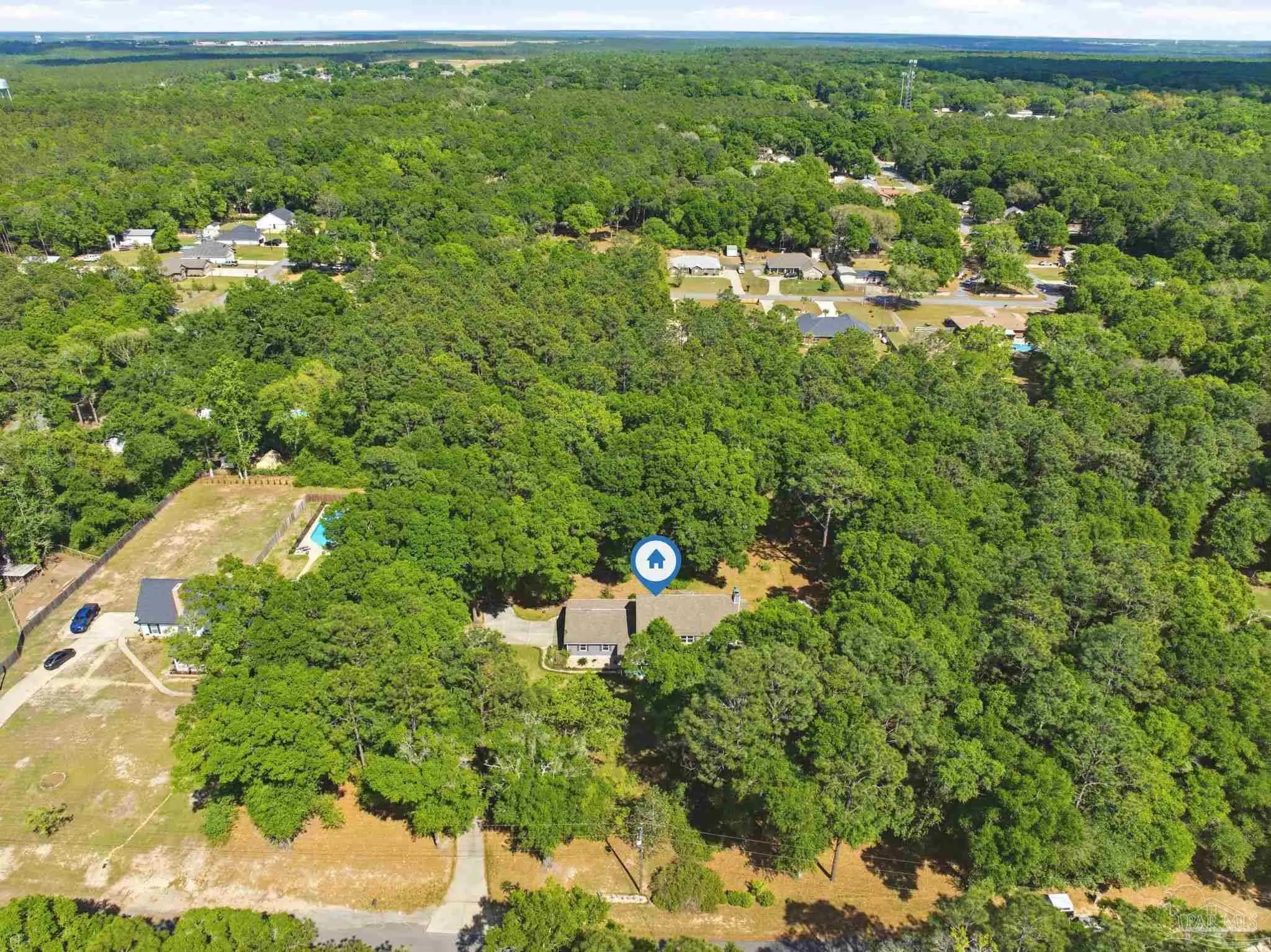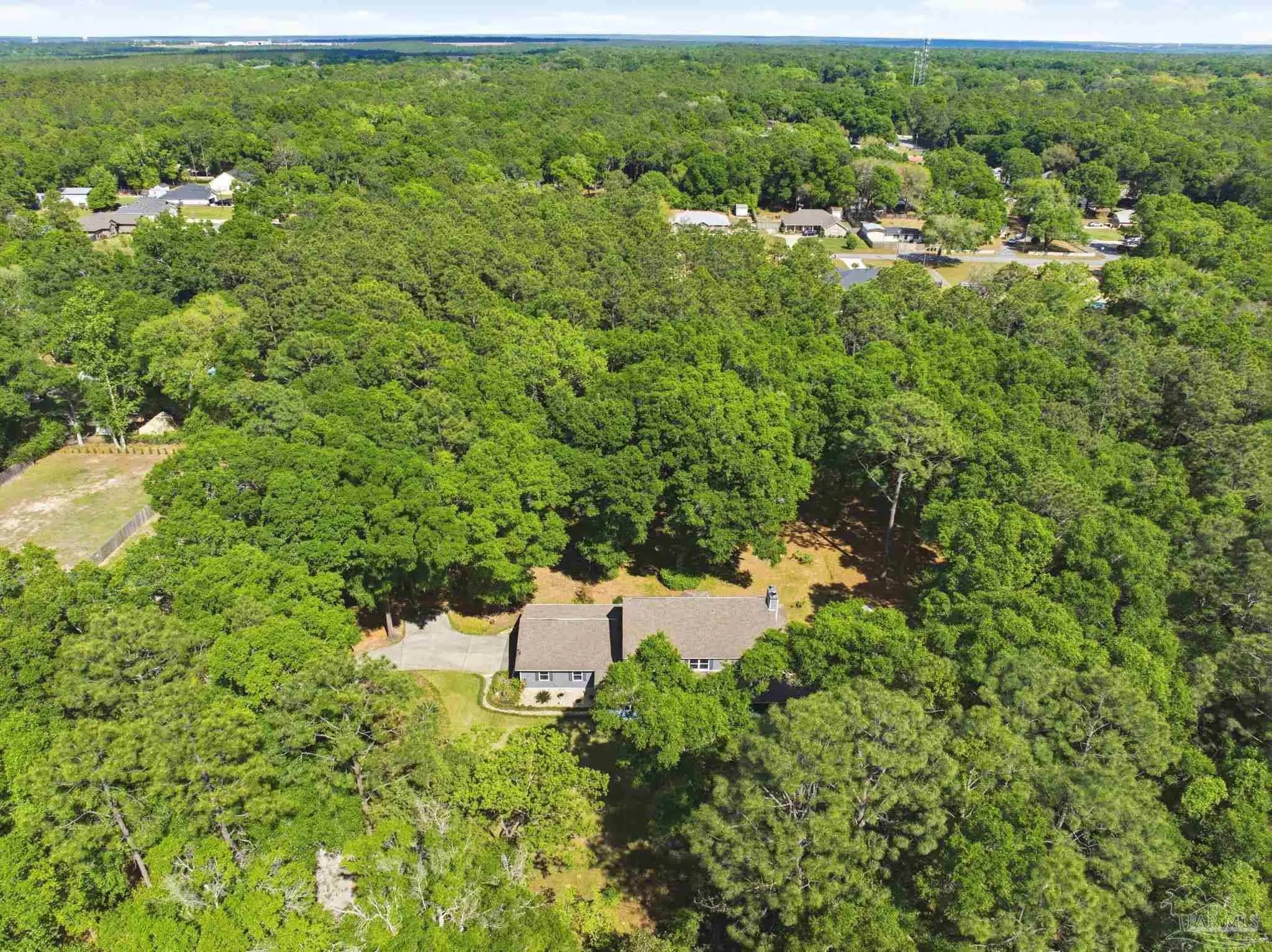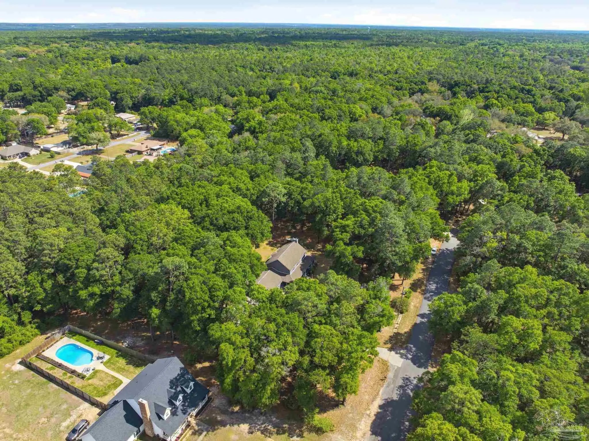 Nestled on 1.86 serene acres dotted with mature oak trees and thoughtfully cleared underbrush, this charming two-story traditional home offers 2,620 square feet of timeless craftsmanship and character featuring vinyl siding and a walk around porch. The property is rich with natural beauty, featuring a variety of trees and plantings offering endless opportunities for a new owner to personalize the landscape. Step through the custom front door into a generous foyer. To the right, a spacious living area showcases a built-in cast iron fireplace, crown molding, solid wood double doors, and upgraded ceiling fans. Straight ahead, the staircase opens into a bright, expansive kitchen filled with natural light, custom cabinetry, granite countertops, and a wall mounted stove. To the left, an ample dining room completes a full circular flow back to the kitchen. Tucked beneath the stairwell is a convenient half bath. Throughout the home, you’ll find solid real wood flooring in the living spaces and hallways, complemented by travertine in the kitchen and wet areas. The staircase itself is accented by a custom solid wood and metal banister, adding to the home’s distinctive charm. Upstairs, the second floor offers four generously sized bedrooms, each with custom wood shelf closets, along with a full hall bathroom featuring double pedestal sinks. The spacious primary suite provides room for both rest and relaxation and includes a wood-burning fireplace with an antique mantel and frame. The primary bathroom holds a walk-in closet, double-sink vanity, jetted tub, separate shower. This level also includes attic access via stairs behind a hall door. Additional features include a central vacuum system, double-paned vinyl windows and spray foam insulation for added efficiency. The true two-car garage is equipped with hurricane-rated doors and includes two generously sized storage closets, one climate controlled. This home is truly a must-see, offering far more than meets the eye.