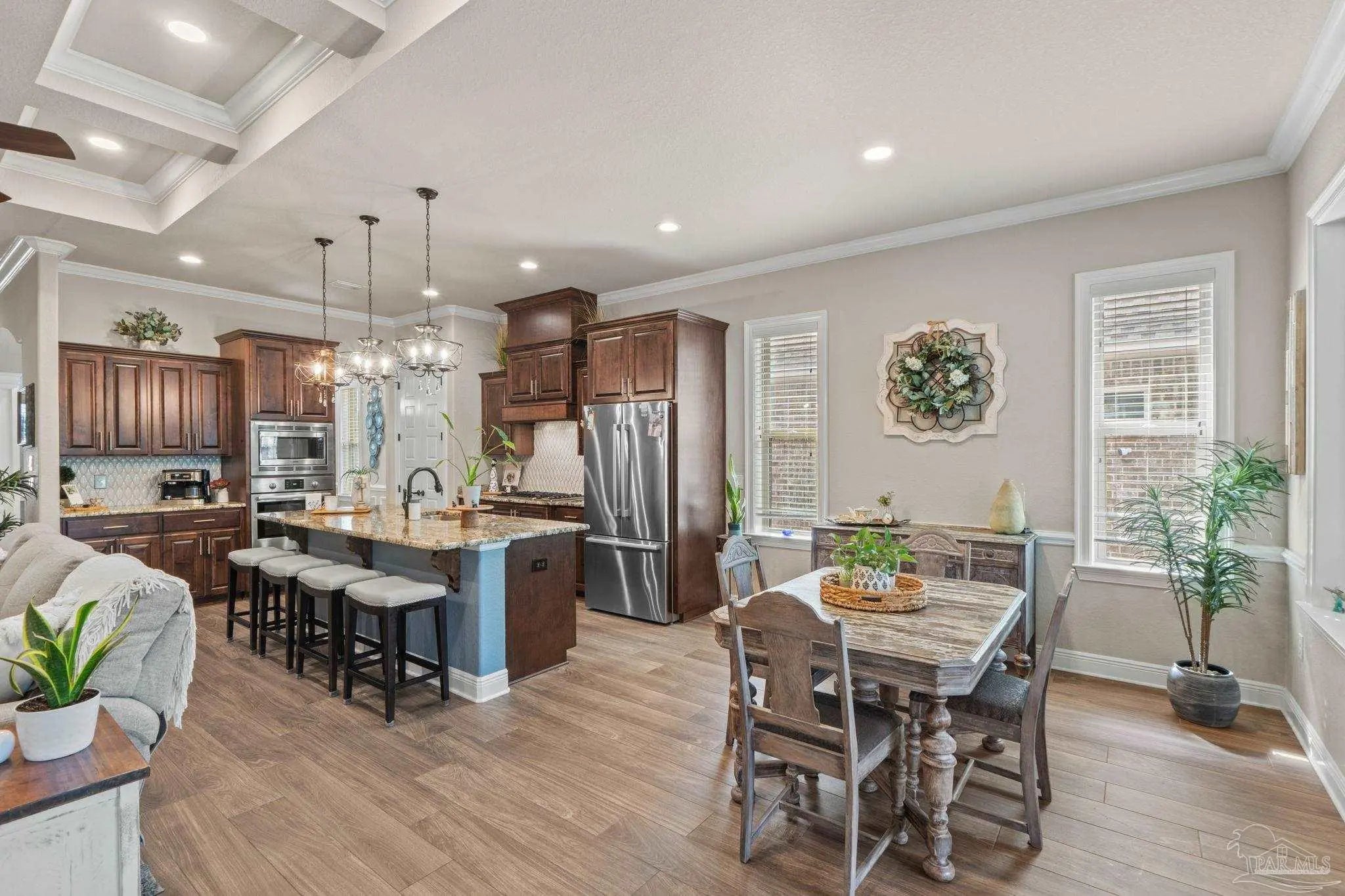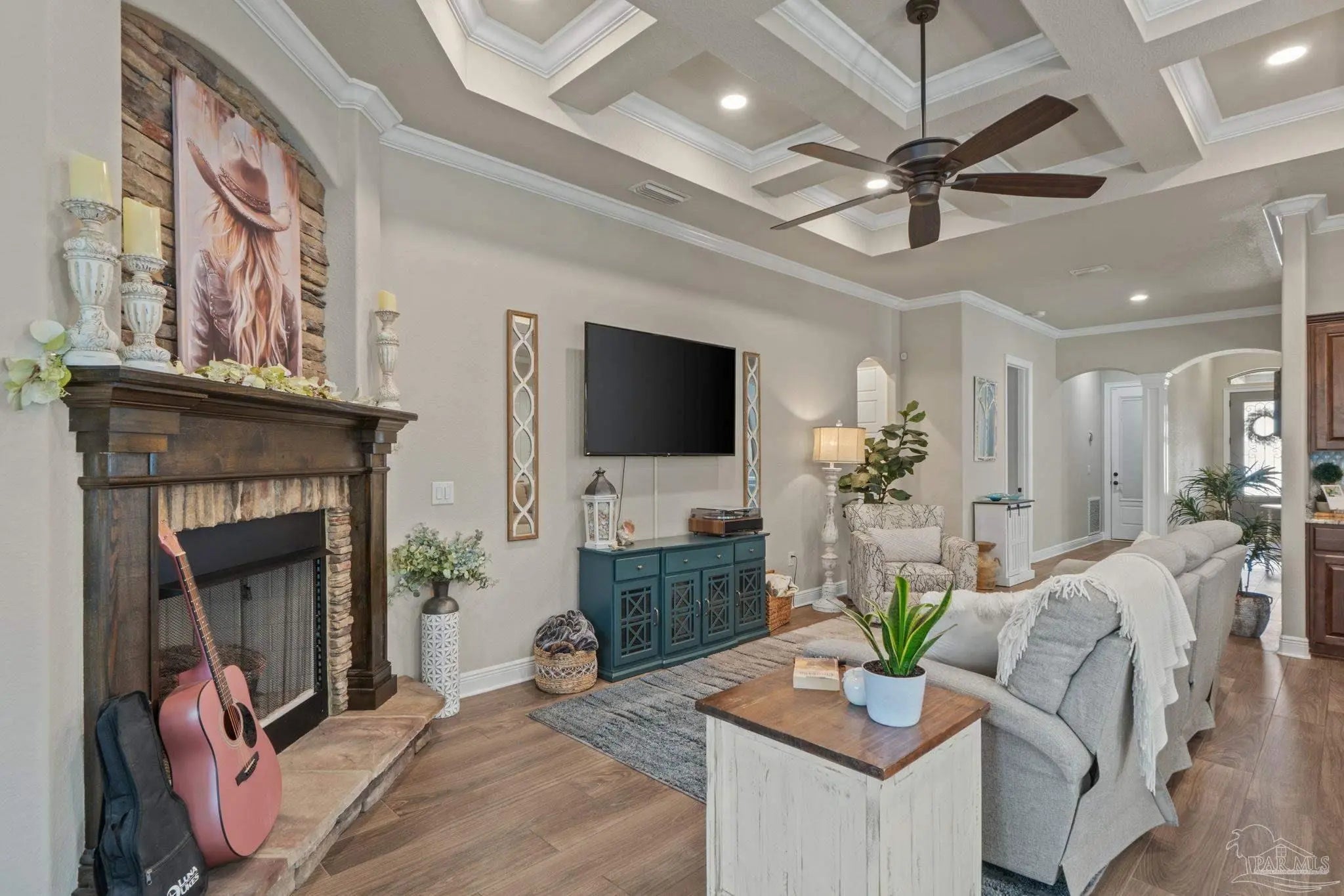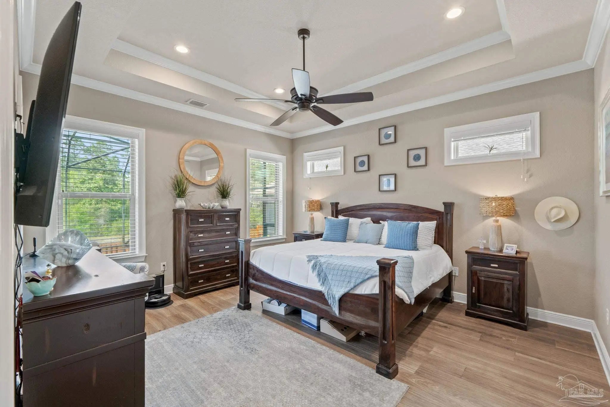 - Ceiling Fan(s), Crown Molding, High Ceilings, Recessed Lighting