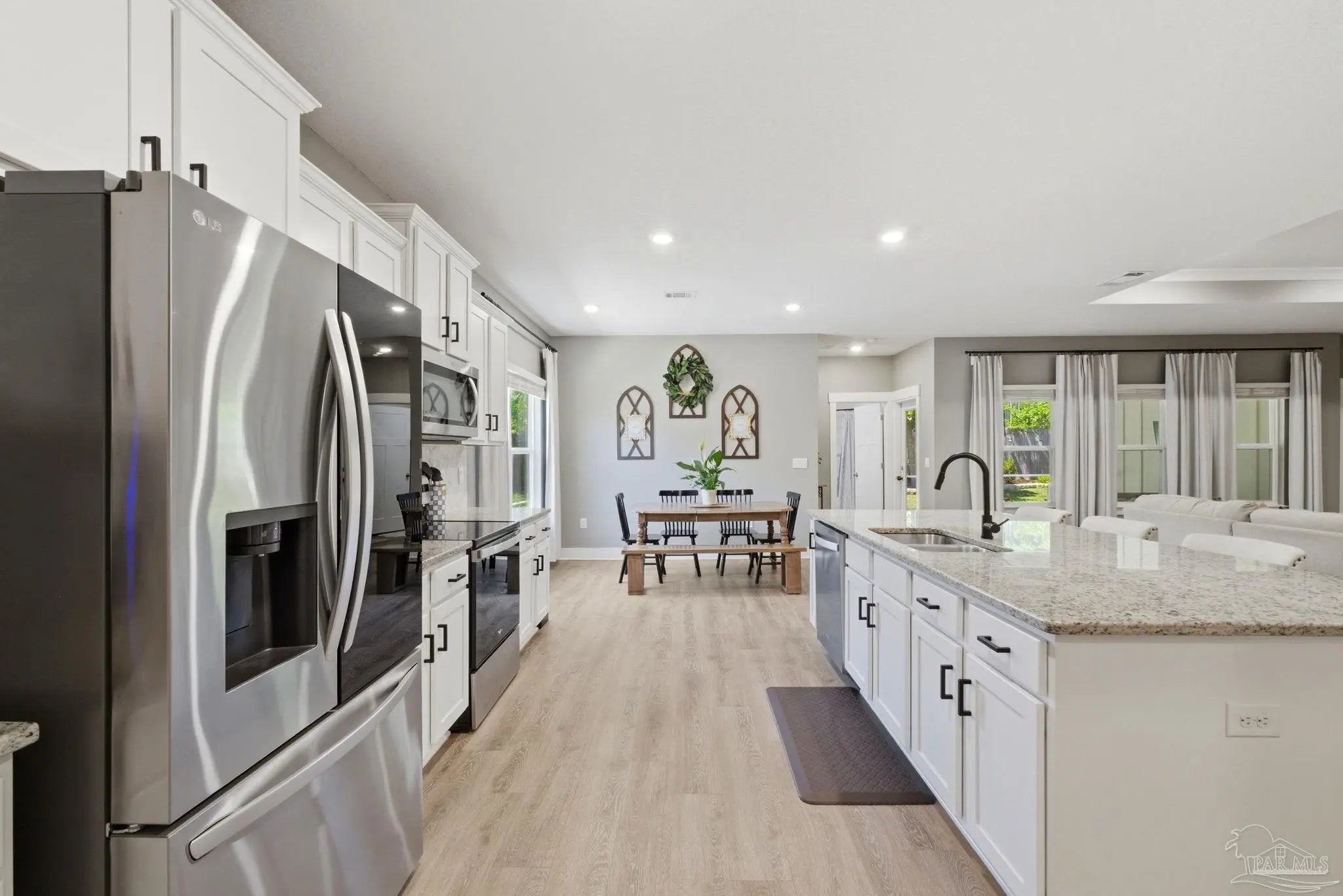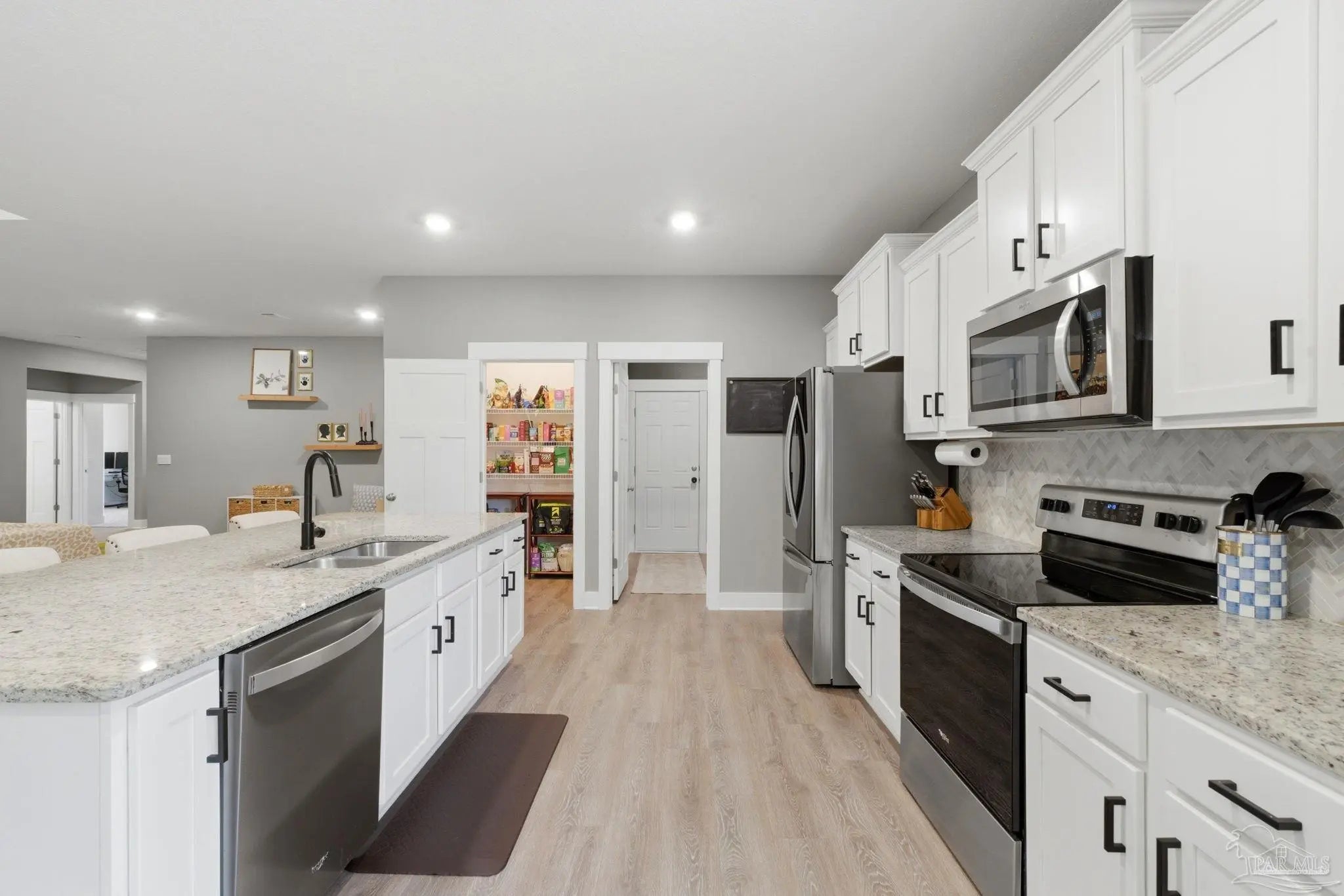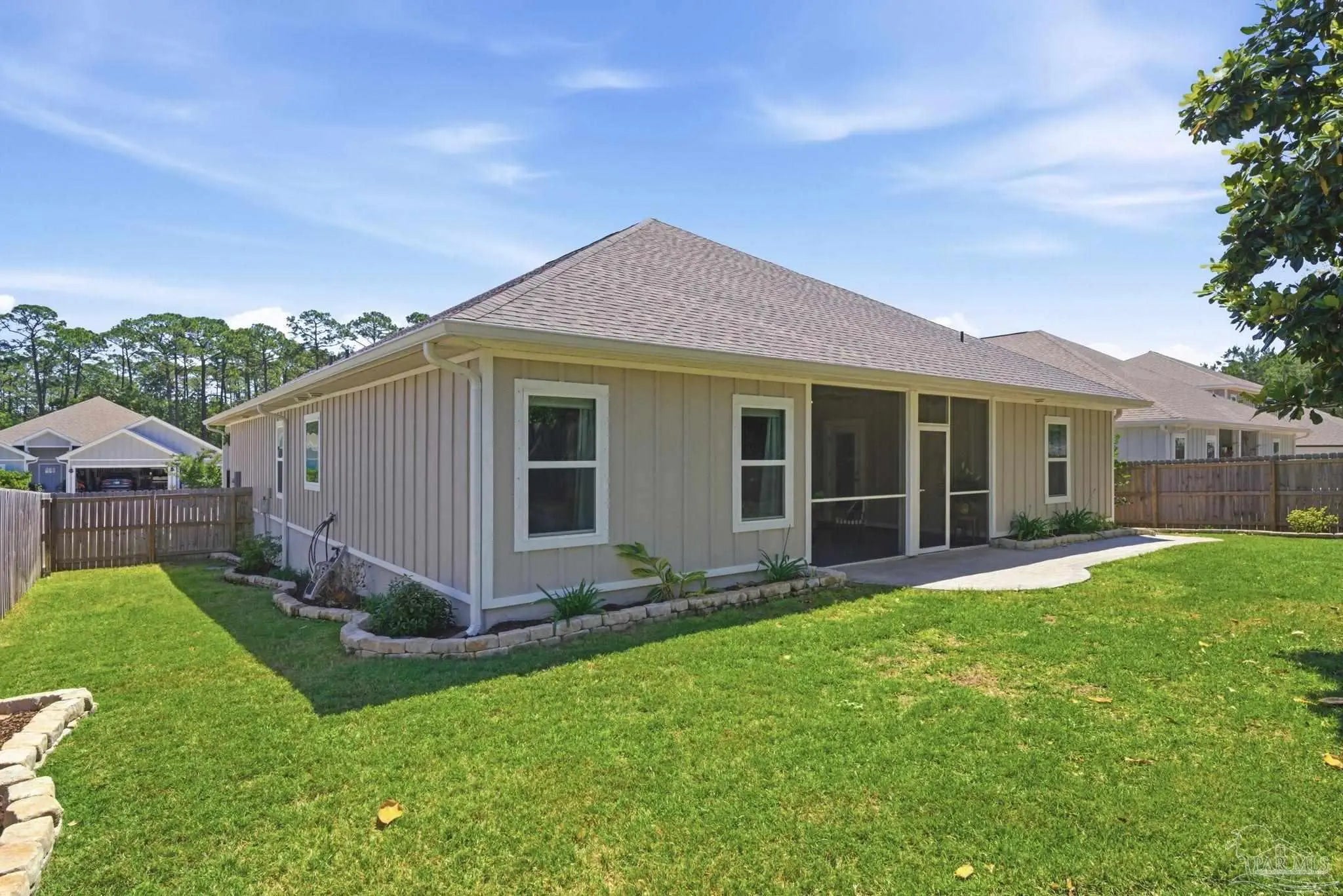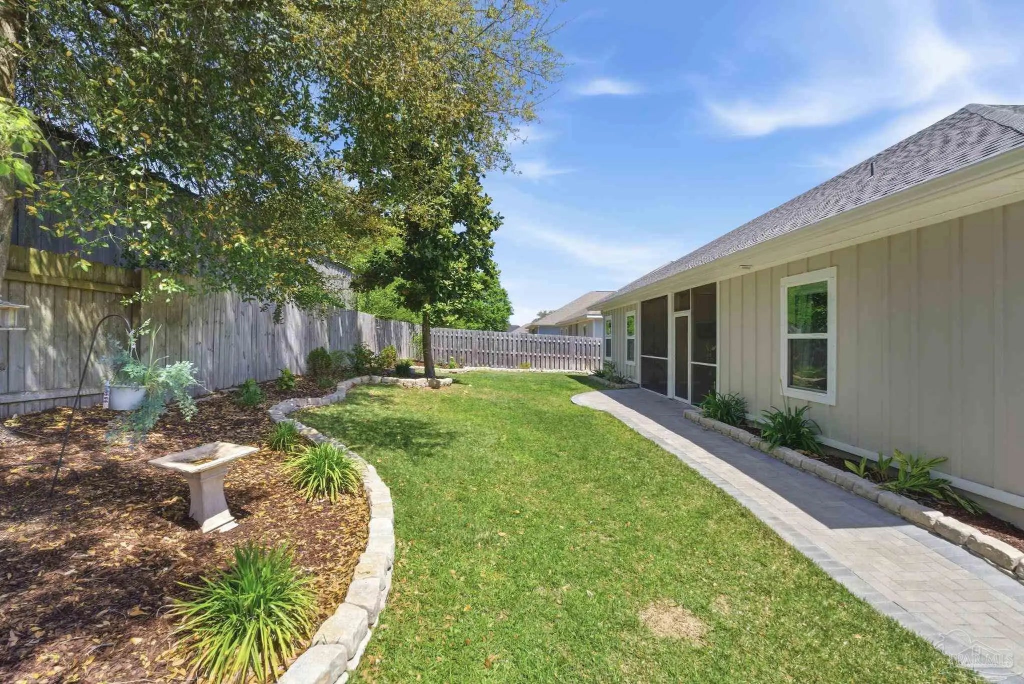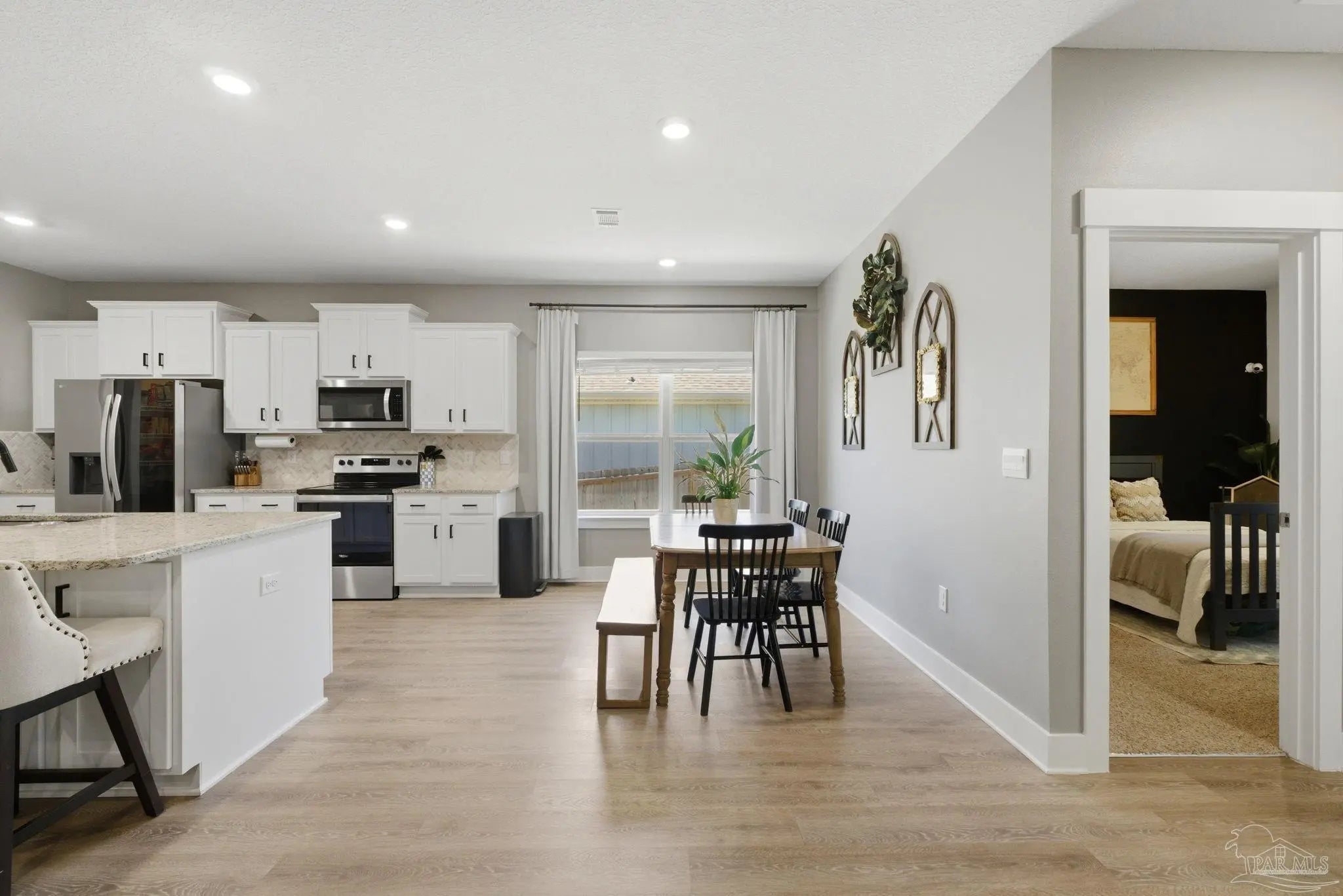 Welcome to 1567 Amaya Ln, a beautifully maintained 4-bedroom, 3-bathroom home offering space, upgrades, and an ideal layout in a prime Gulf Breeze location. The open-concept design is perfect for everyday living and entertaining, featuring granite countertops, stainless steel appliances, a breakfast island, and a custom herringbone backsplash. A large breakfast nook and separate dining area provide flexible space for gatherings. Wood-look engineered vinyl plank flooring runs through the main living areas, with carpet in the bedrooms for added comfort. The spacious primary suite includes a walk-in closet, double vanity, garden tub, and a separate shower, creating a private retreat. This home stands out with upgrades already completed, including a new roof (2026), gutters, updated paint, an upgraded refrigerator, and built-in laundry room shelving. The finished 3-car garage features a polyaspartic floor coating for a clean, durable finish, while the screened back patio offers a similar long-lasting surface. The backyard is enhanced with tasteful landscaping and a recently sealed paver walkway. Located near the Gulf Breeze Zoo and zoned for the new Soundside High School, this home also offers excellent proximity to major military bases, Woodlawn Beach boat ramp, and the walkable Soundside, making it easy to enjoy coastal living right outside your door.