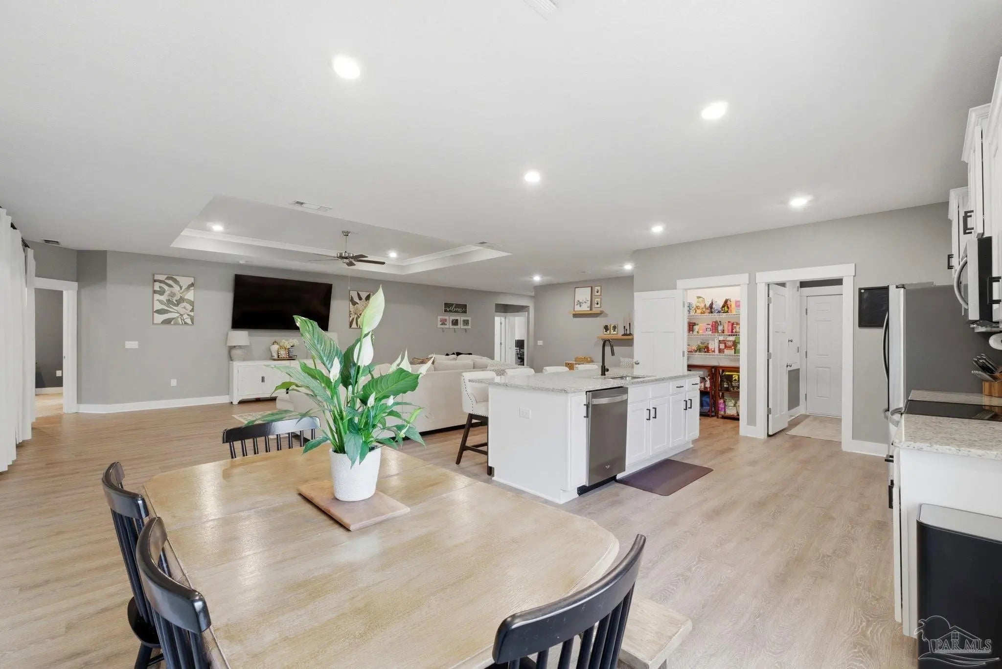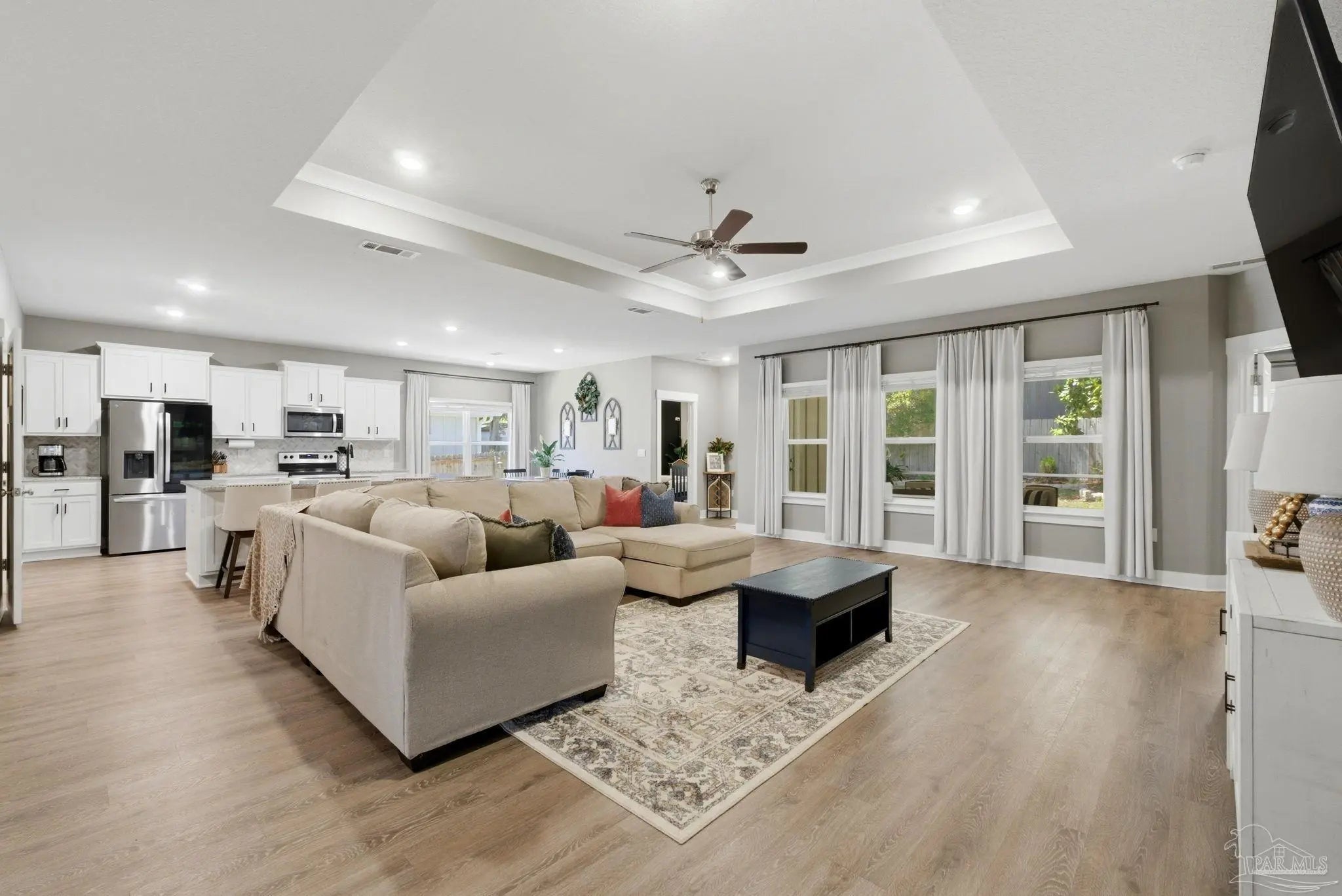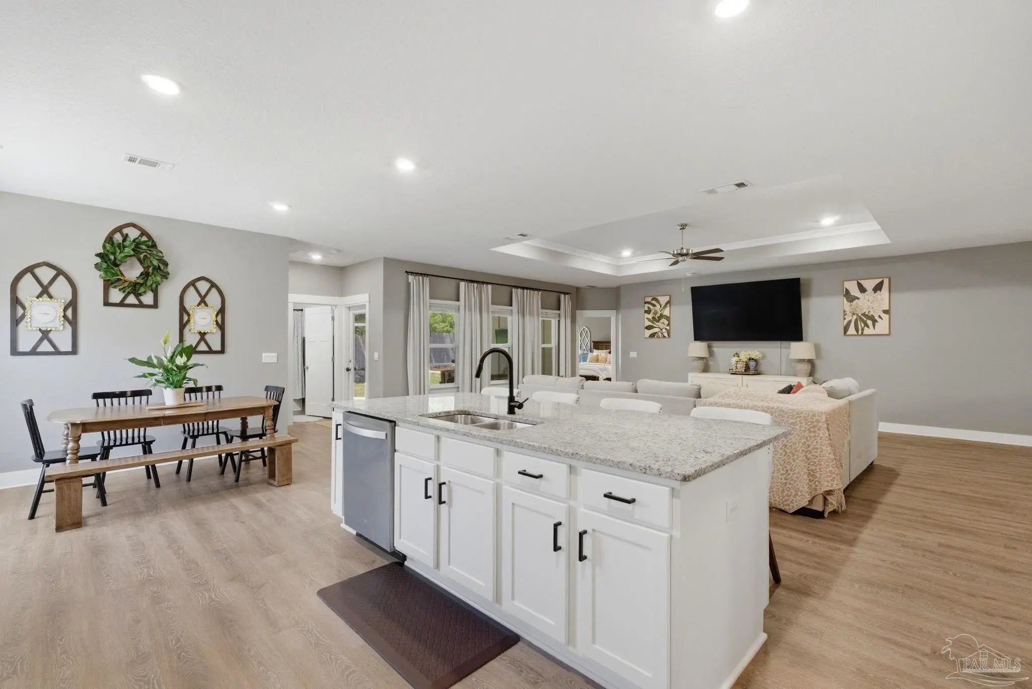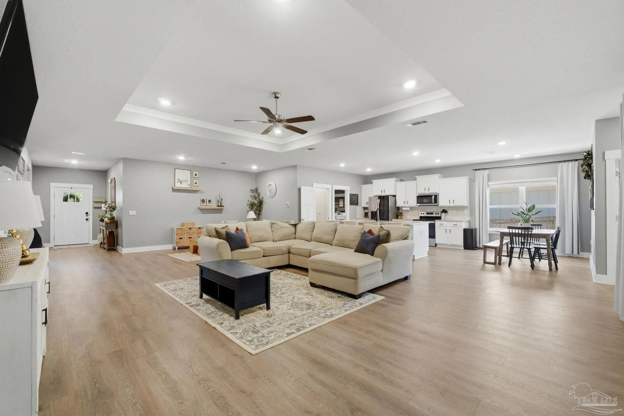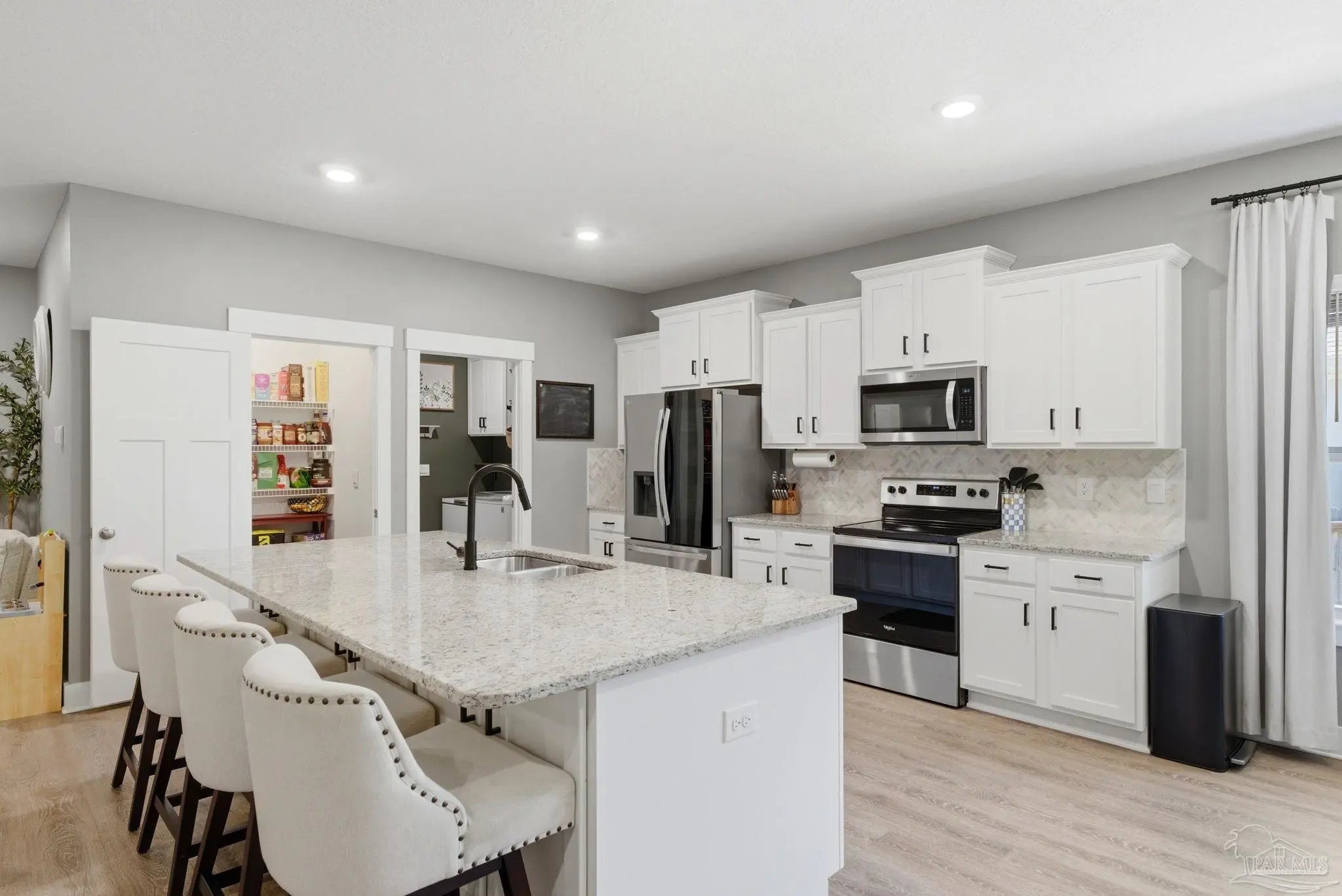 Welcome to 1567 Amaya Ln, a beautifully maintained 4-bedroom, 3-bathroom home offering space, upgrades, and an ideal layout in a prime Gulf Breeze location. The open-concept design is perfect for everyday living and entertaining, featuring granite countertops, stainless steel appliances, a breakfast island, and a custom herringbone backsplash. A large breakfast nook and separate dining area provide flexible space for gatherings. Wood-look engineered vinyl plank flooring runs through the main living areas, with carpet in the bedrooms for added comfort. The spacious primary suite includes a walk-in closet, double vanity, garden tub, and a separate shower, creating a private retreat. This home stands out with upgrades already completed, including a new roof (2026), gutters, updated paint, an upgraded refrigerator, and built-in laundry room shelving. The finished 3-car garage features a polyaspartic floor coating for a clean, durable finish, while the screened back patio offers a similar long-lasting surface. The backyard is enhanced with tasteful landscaping and a recently sealed paver walkway. Located near the Gulf Breeze Zoo and zoned for the new Soundside High School, this home also offers excellent proximity to major military bases, Woodlawn Beach boat ramp, and the walkable Soundside, making it easy to enjoy coastal living right outside your door.