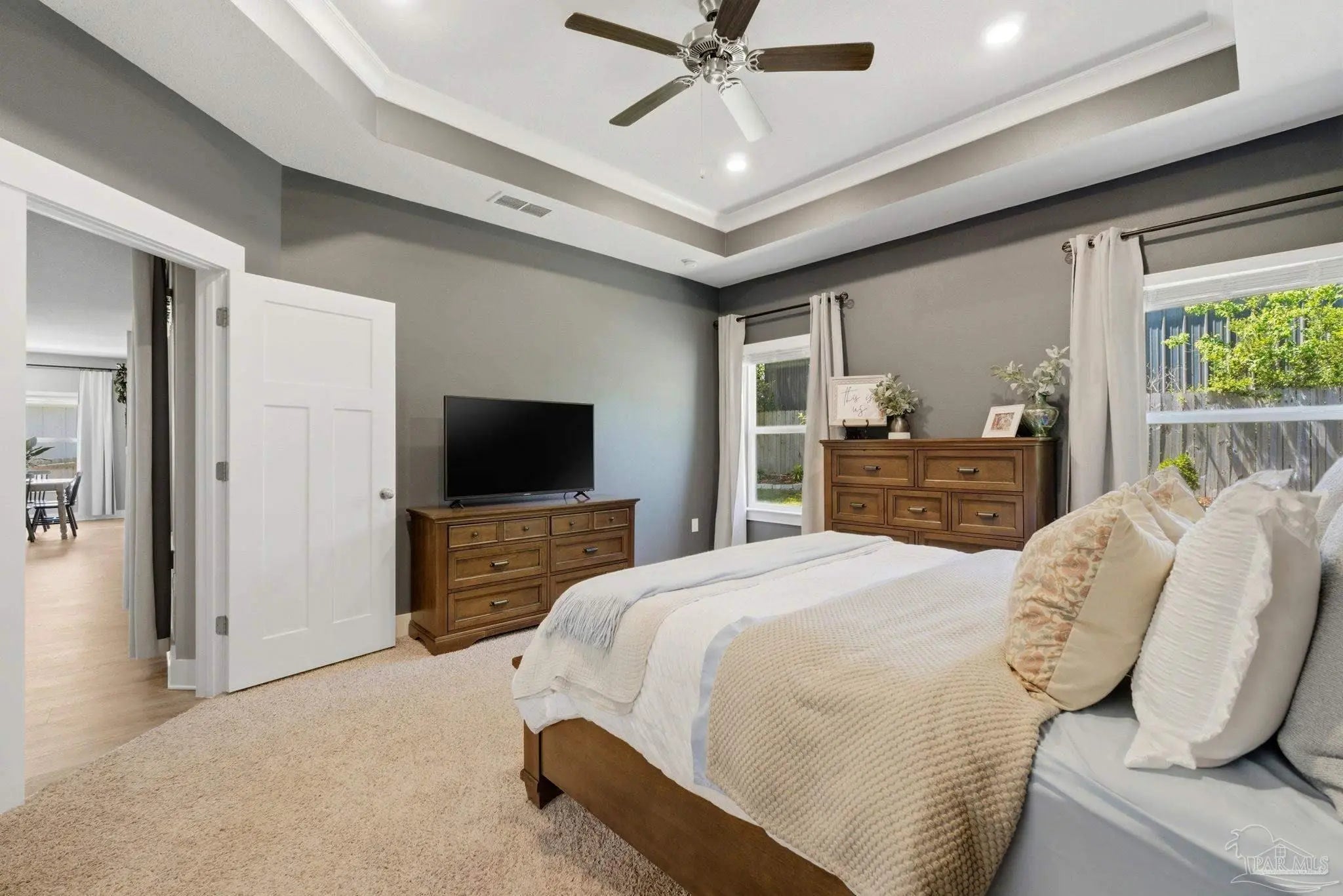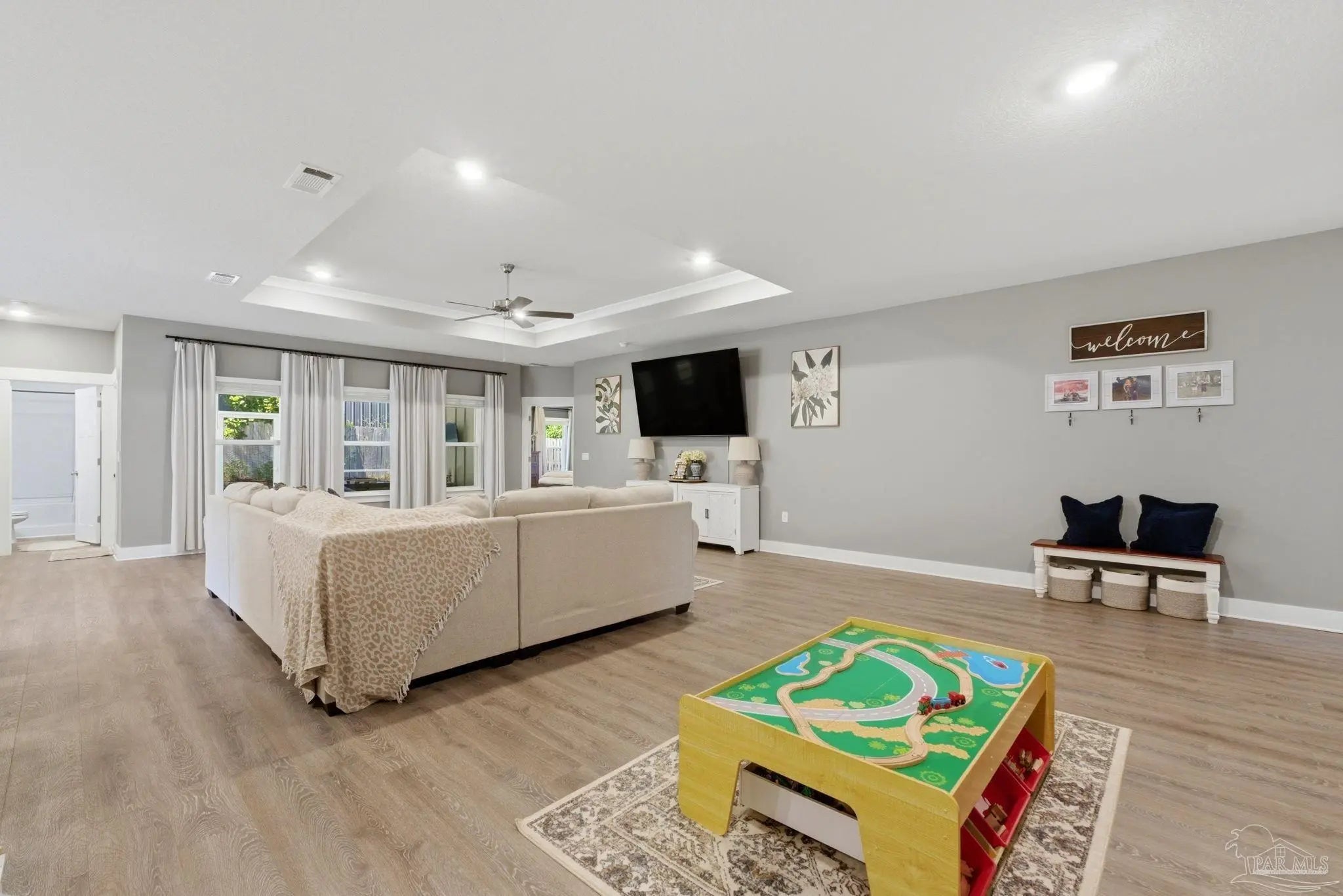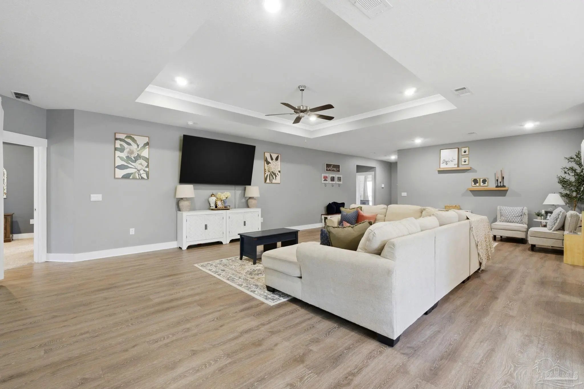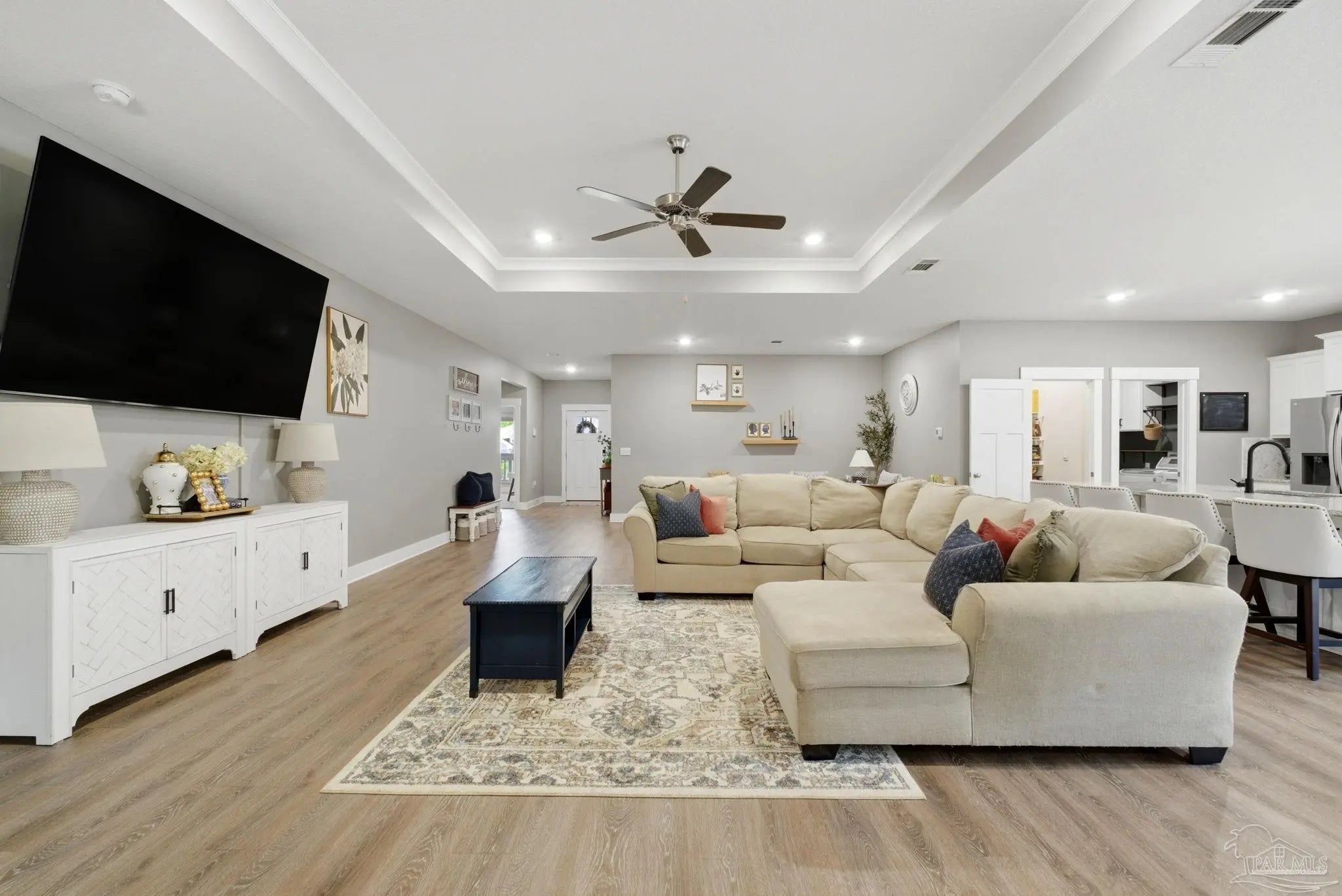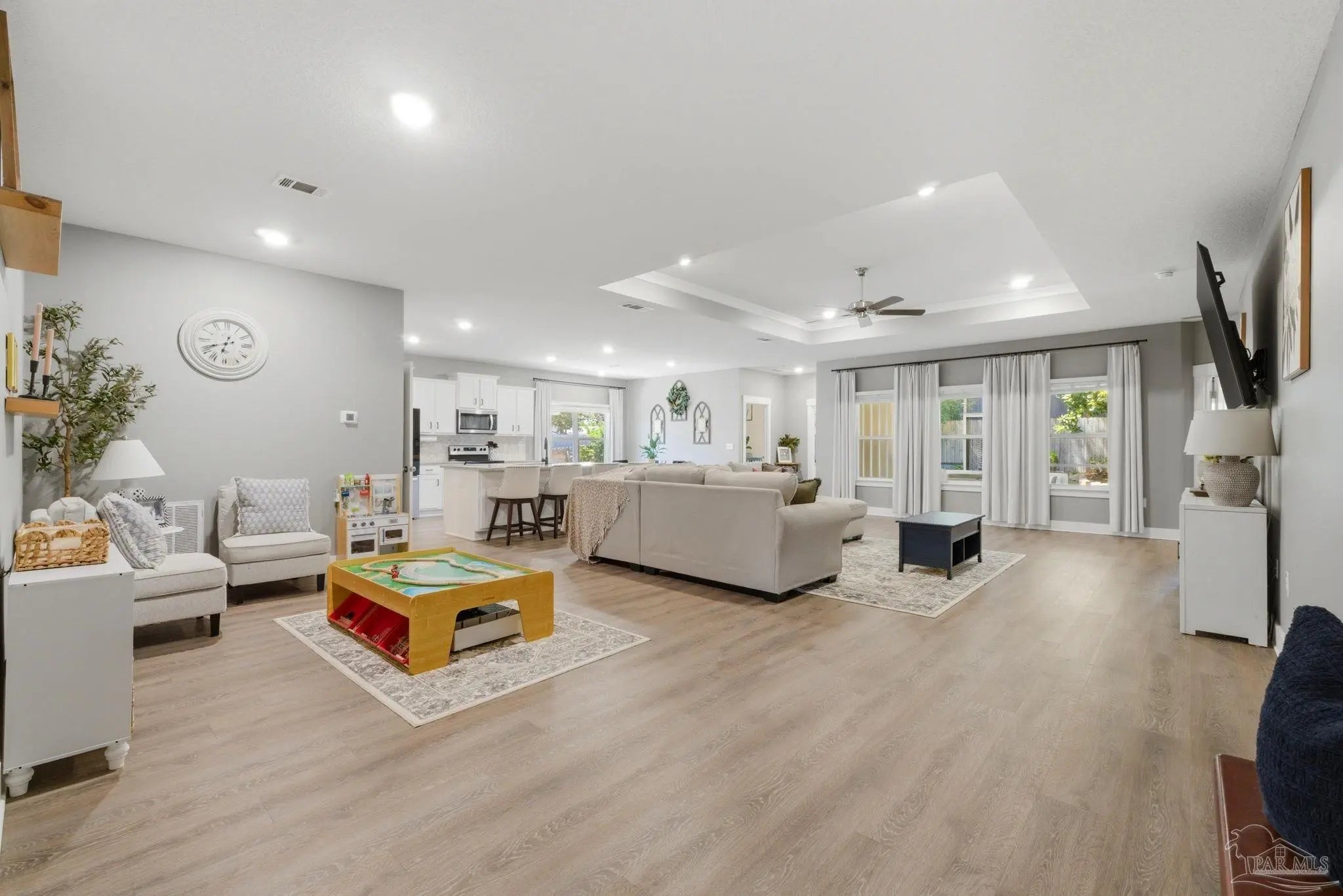 Welcome to 1567 Amaya Ln, a beautifully maintained 4-bedroom, 3-bathroom home offering space, upgrades, and an ideal layout in a prime Gulf Breeze location. The open-concept design is perfect for everyday living and entertaining, featuring granite countertops, stainless steel appliances, a breakfast island, and a custom herringbone backsplash. A large breakfast nook and separate dining area provide flexible space for gatherings. Wood-look engineered vinyl plank flooring runs through the main living areas, with carpet in the bedrooms for added comfort. The spacious primary suite includes a walk-in closet, double vanity, garden tub, and a separate shower, creating a private retreat. This home stands out with upgrades already completed, including a new roof (2026), gutters, updated paint, an upgraded refrigerator, and built-in laundry room shelving. The finished 3-car garage features a polyaspartic floor coating for a clean, durable finish, while the screened back patio offers a similar long-lasting surface. The backyard is enhanced with tasteful landscaping and a recently sealed paver walkway. Located near the Gulf Breeze Zoo and zoned for the new Soundside High School, this home also offers excellent proximity to major military bases, Woodlawn Beach boat ramp, and the walkable Soundside, making it easy to enjoy coastal living right outside your door.