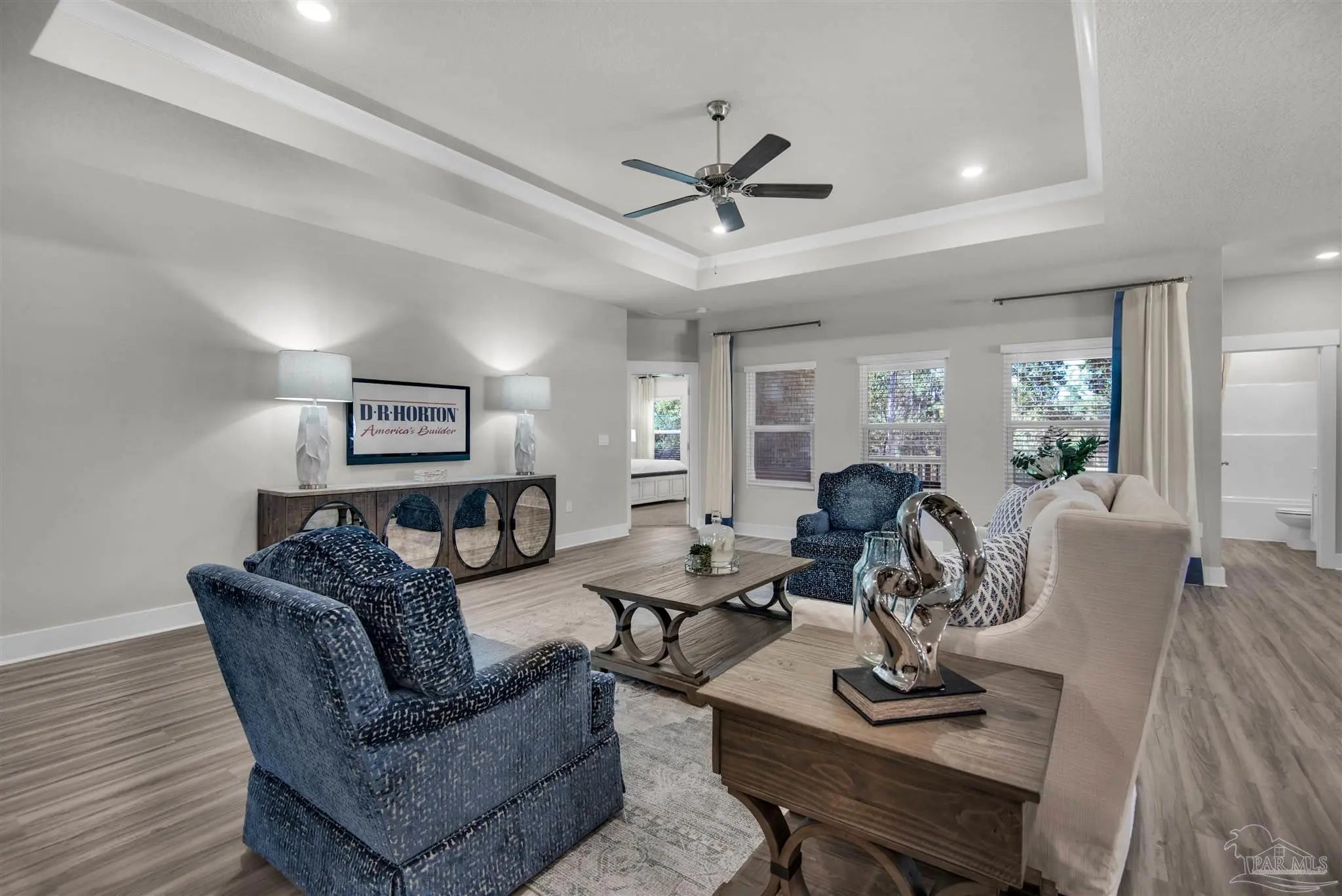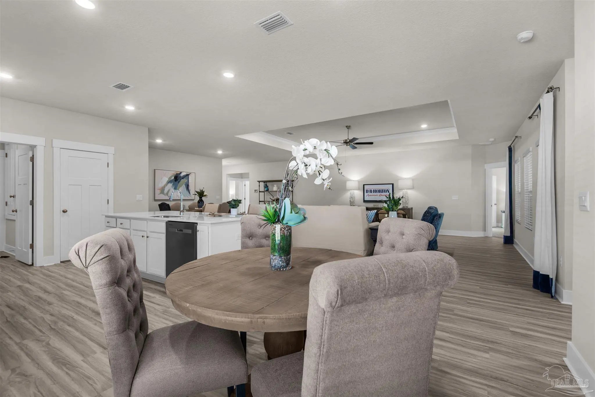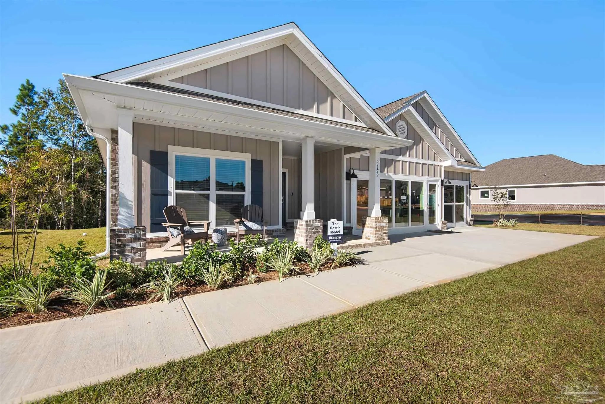 Welcome to 3239 Water Birch Rd! Conveniently situated off Devine Farms Road with easy access to Interstate 10, this desirable location offers smooth travel and close proximity to shopping, dining, and top local destinations. The Destin is a stunning 4 bedroom, 3 bath home with a covered patio and spacious 3-car garage, perfect for a small car or golf cart. Inside, you'll find elegant EVP flooring in common areas and cozy carpeting in the bedrooms. The open layout includes a generous breakfast nook and separate dining area. The kitchen boasts stunning quartz countertops, stainless steel appliances, a large island bar, and a corner pantry. The primary bedroom offers a walk-in closet and an adjoining bathroom with a double vanity, garden tub, and separate shower. Bedroom 2 is near the kitchen with a full guest bathroom, while Bedrooms 3 and 4 share a full bathroom in the hallway. Enjoy the large covered back porch for relaxing and grilling! Future residents can enjoy a relaxing pool, cabana, and fun-filled playground. Call or text 850-990-1227 to schedule a tour!