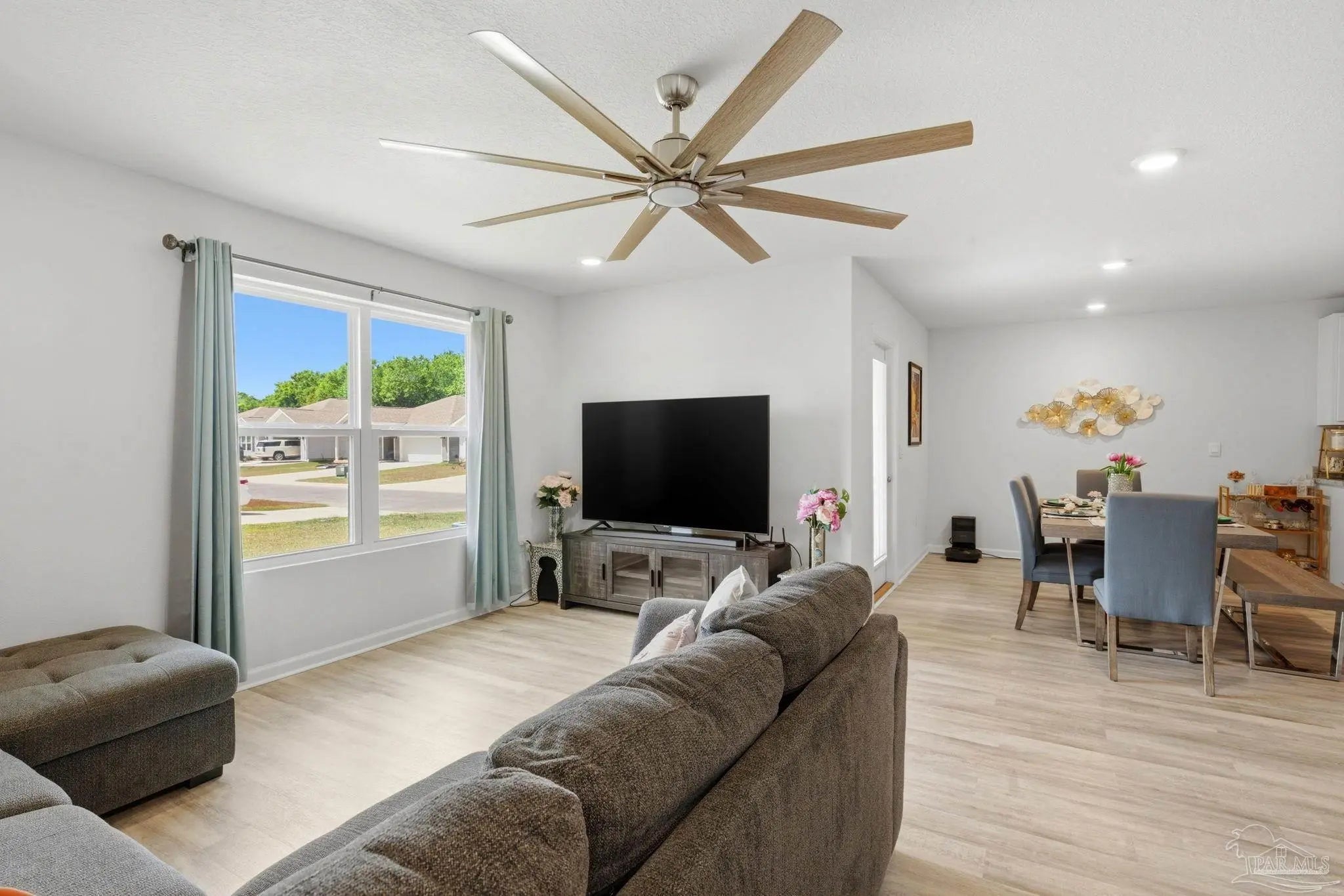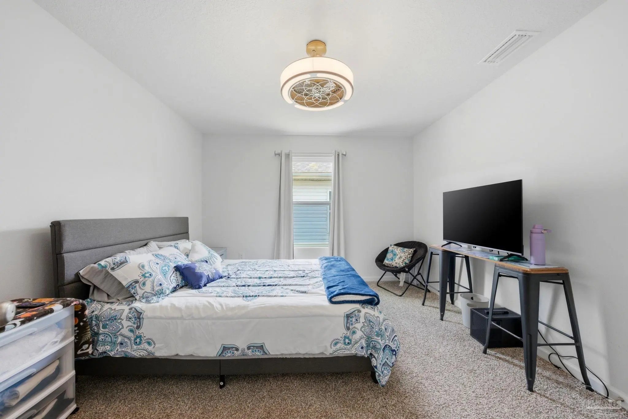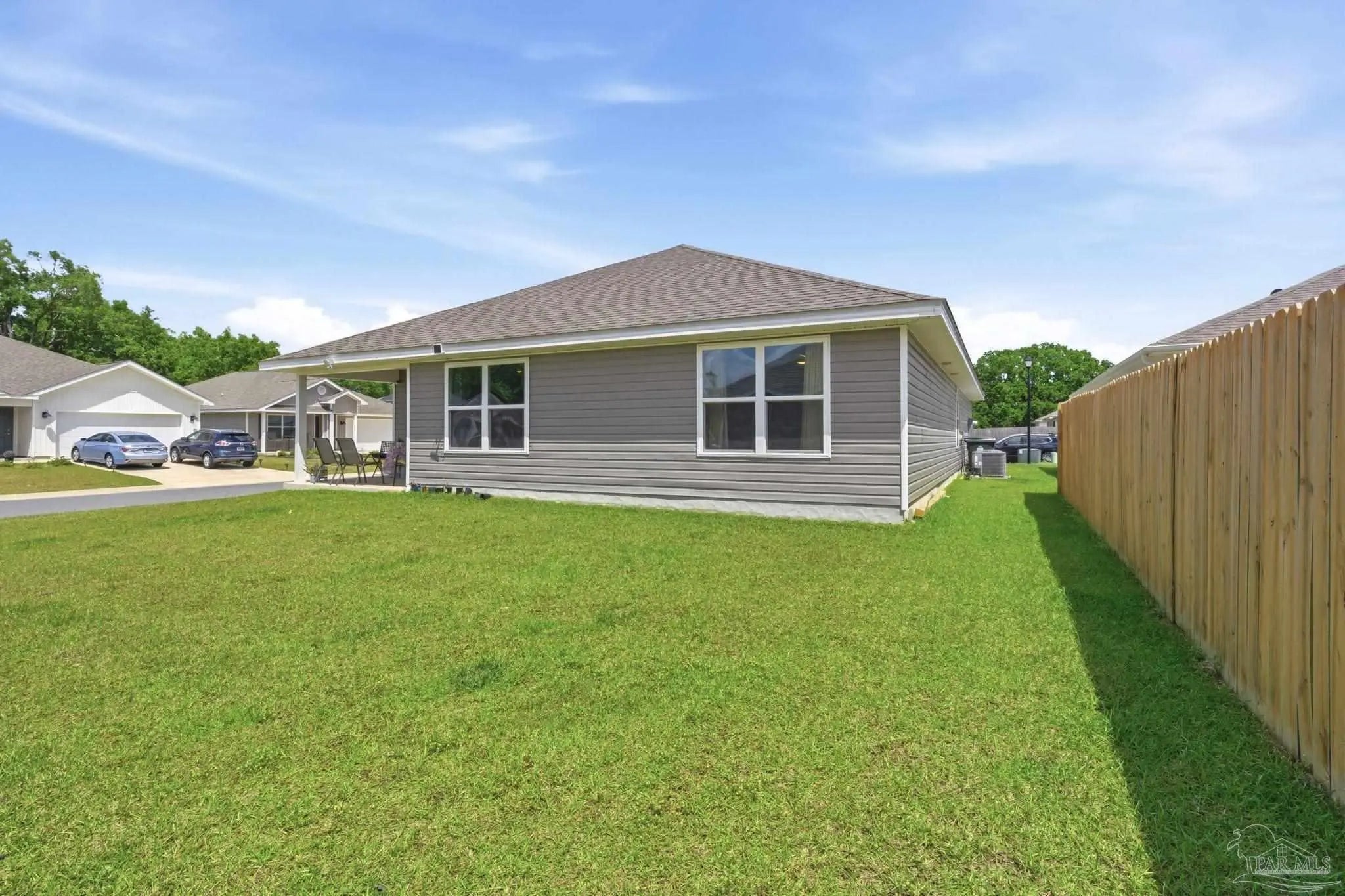 Welcome to this beautifully maintained 4-bedroom, 2-bath home in Paisleigh Place offering the perfect blend of modern style and everyday comfort. Step inside to a bright, open-concept layout that seamlessly connects the kitchen, dining, and living areas ideal for entertaining or relaxing at home. The kitchen features stainless steel appliances, a large island, ample cabinetry, and a pantry for extra storage. The split-bedroom design provides privacy, with three spacious secondary bedrooms at the front and a private primary suite tucked away in the back, complete with a walk-in closet and en-suite bath. Located in the West Pensacola community near Nine Mile Rd, close to shopping, dining, and everyday essentials.